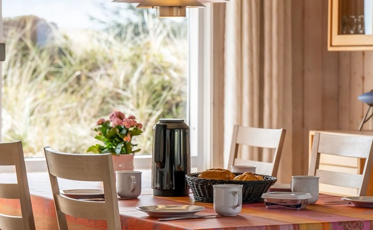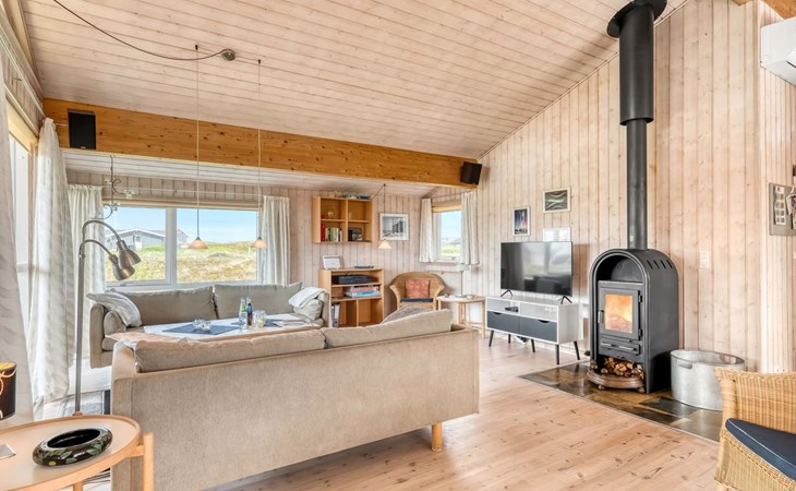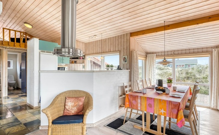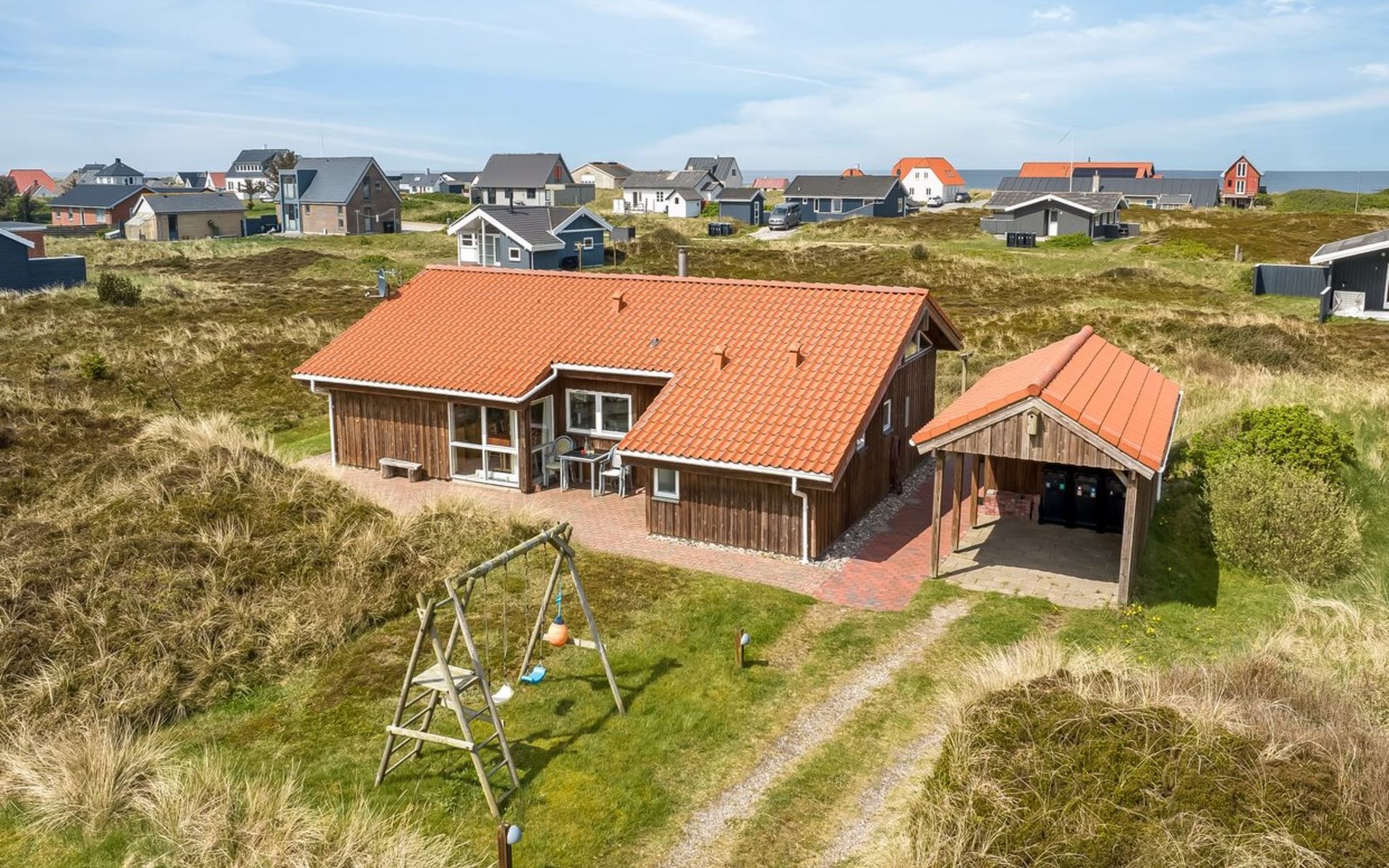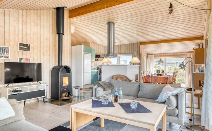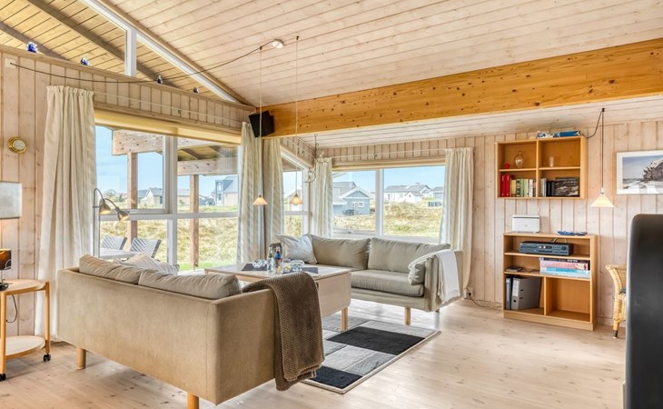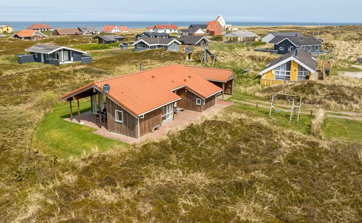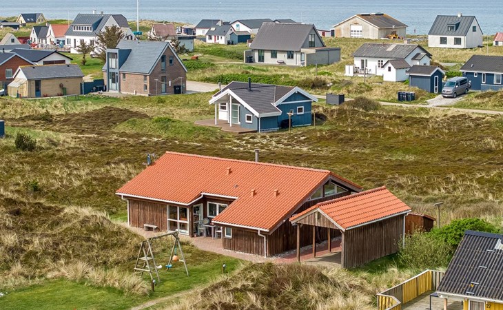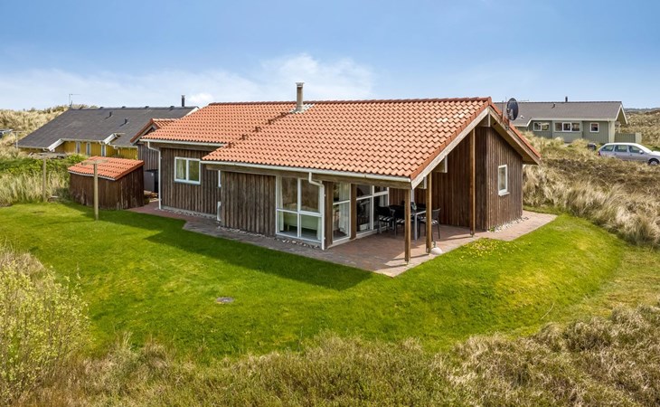 Eengezinswoning, bouwjaar 2000. 200 m van zee. Voor alleengebruik: terrein 1.674 m2. Terras (100 m2), barbecue. In het huis: sauna, wasmachine. Parkeerplaats bij het huis. Carport. Levensmiddelenwinkel 10 km. Golfterrein 25 km. De eigenaar accepteert geen jeugdgroepen.