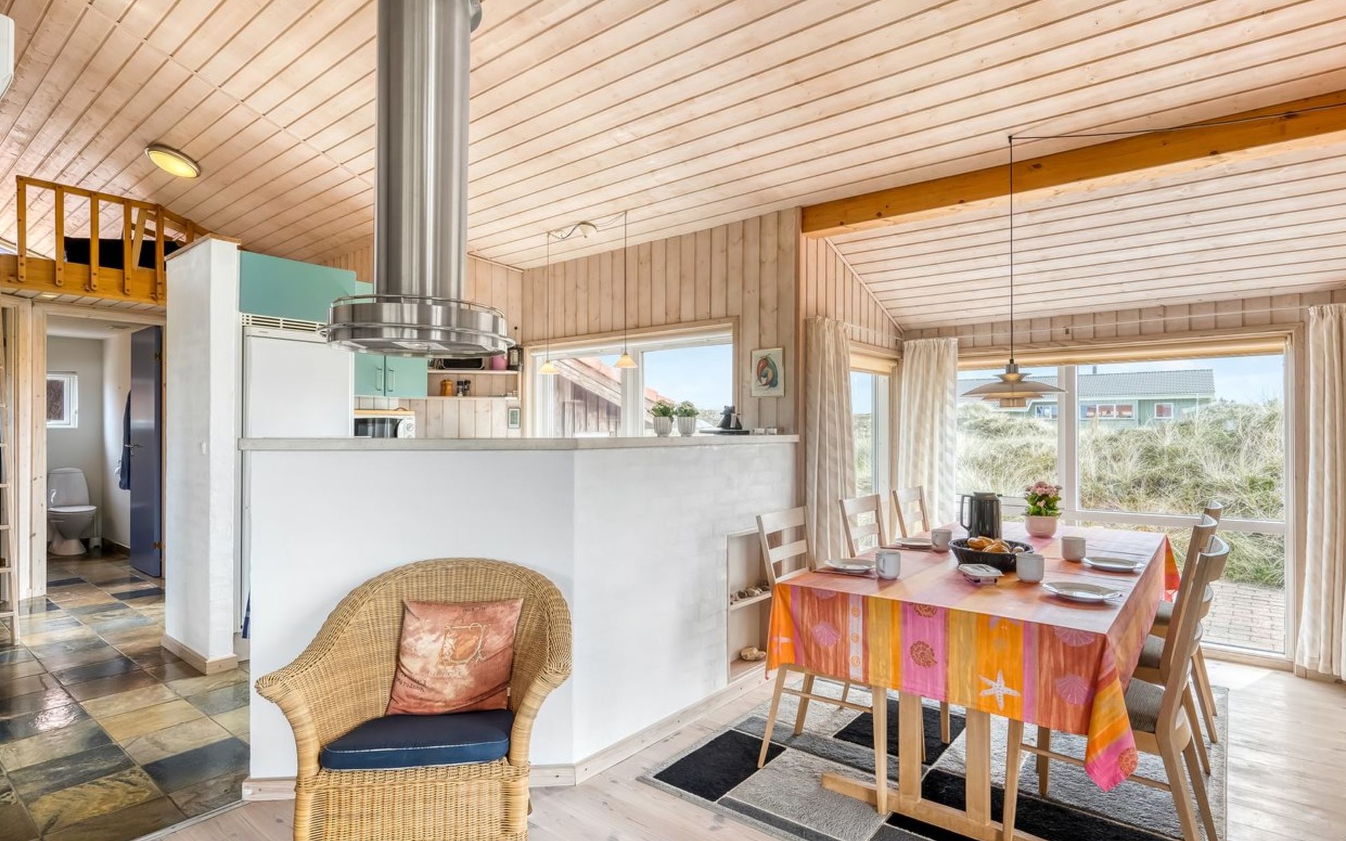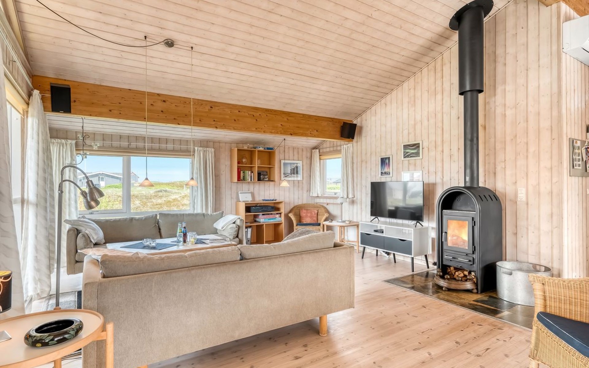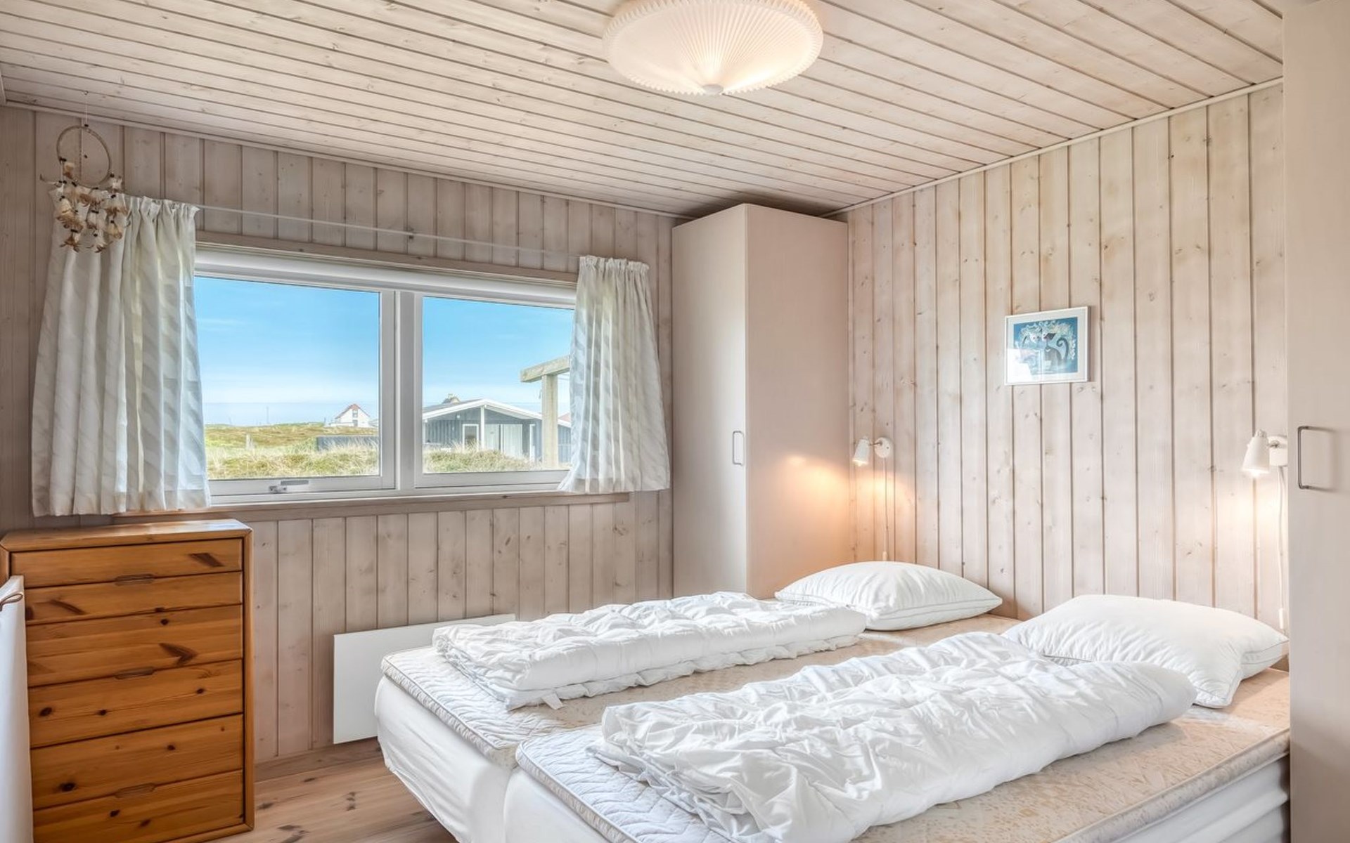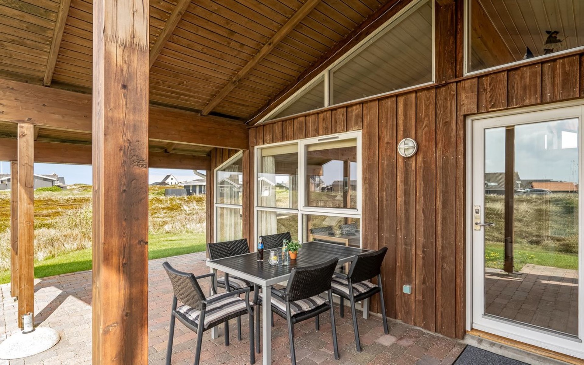 Eengezinswoning, bouwjaar 2000. 200 m van zee. Voor alleengebruik: terrein 1.674 m2. Terras (100 m2), barbecue. In het huis: sauna, wasmachine. Parkeerplaats bij het huis. Carport. Levensmiddelenwinkel 10 km. Golfterrein 25 km. De eigenaar accepteert geen jeugdgroepen.