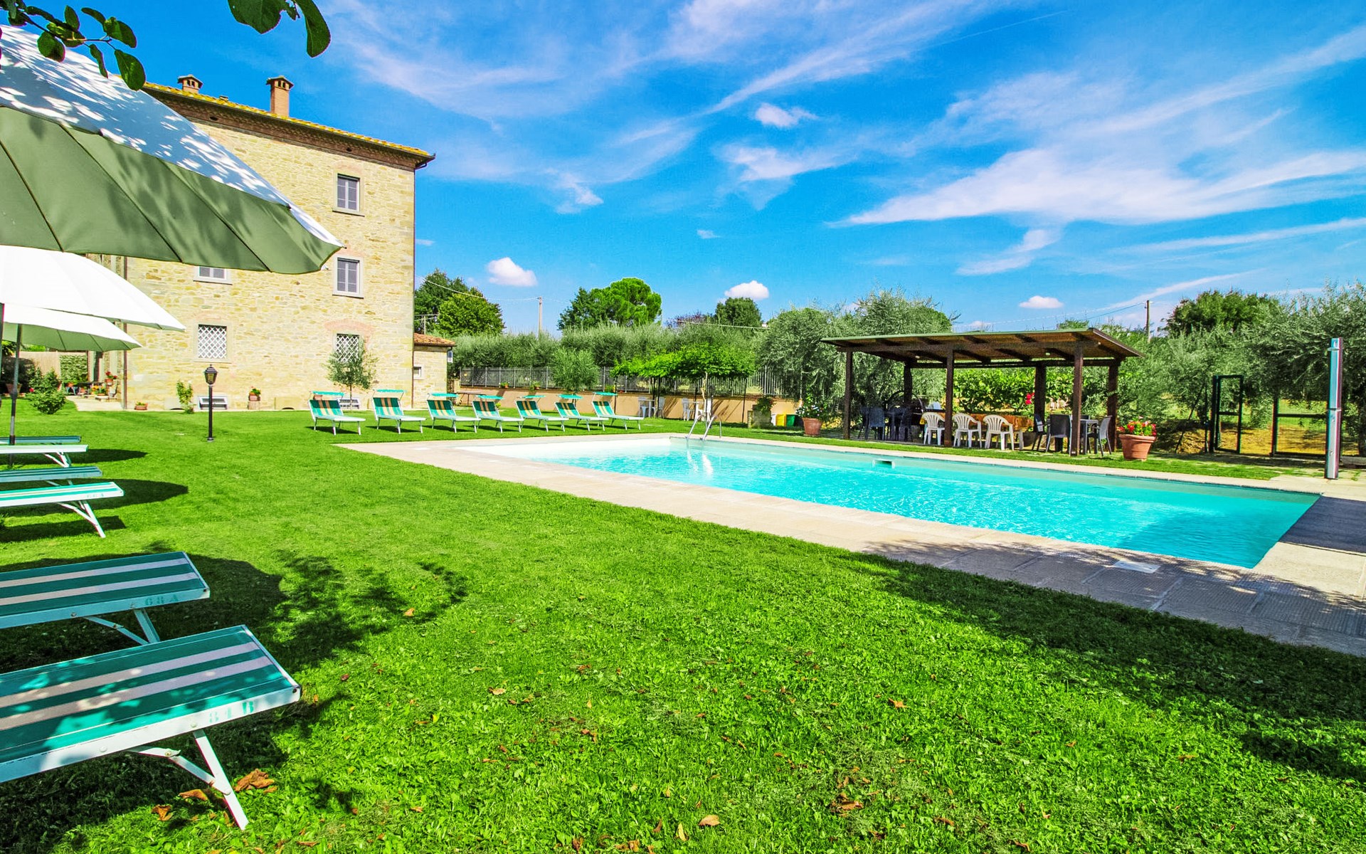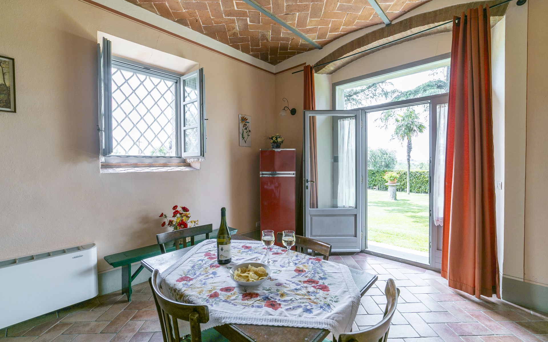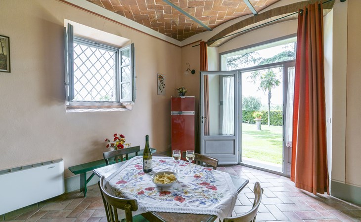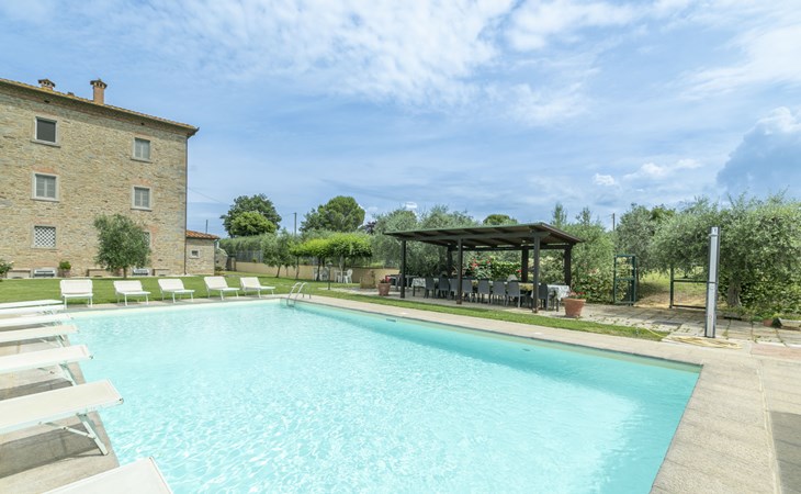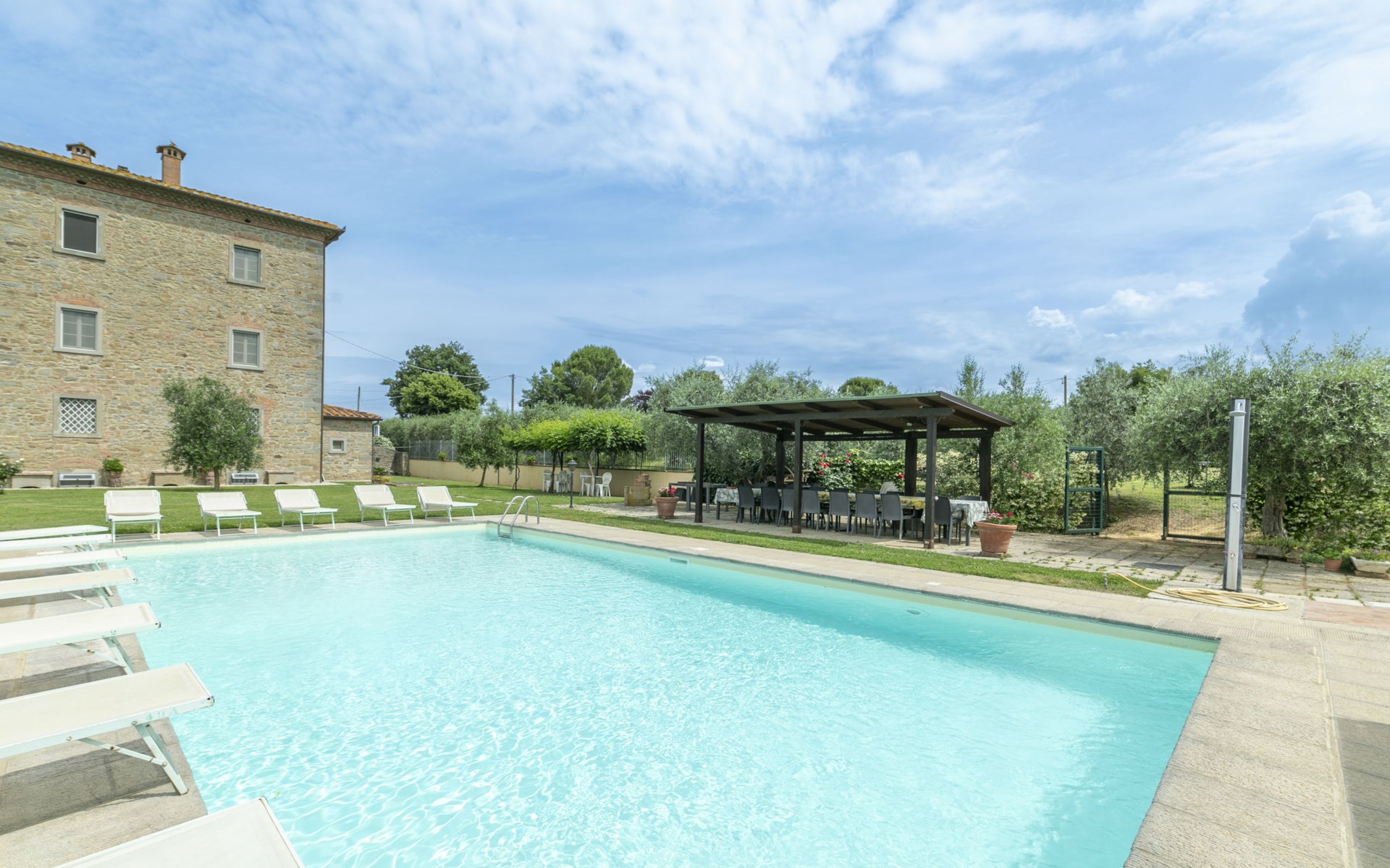 Zeer mooi villa "Le Rondini", 273 m boven zeeniveau, eenzijdig aangebouwd, bouwjaar 1700, gerenoveerd in 2016, omgeven door velden. In het gehucht La Fratta, 7 km van het centrum van Cortona, rustige, zonnige, verhoogde ligging, 20 km van het meer. Voor alleengebruik: tuin 1.000 m2 (omheind), openluchtzwembad (6 x 12 m, 120 - 150 cm diepte, seizoensgebonden beschikbaarheid: 01.Jun. - 30.Sep.). Buitendouche, prieel (30 m2), tuinmeubelen, barbecue. In het huis: tafeltennis. Overdekte parkeerplaats (voor 4 auto's) op 10 m. Levensmiddelenwinkel 1 km, supermarkt 5 km, treinstation "Camucia" 5 km, thermaalbad "Rapolano" 35 km, meer (zwemmen) "Trasimeno" 20 km. Attracties in de buurt: Castiglion Fiorentino 15 km, Castiglione Del Lago 23 km, Passignano Sul Trasimeno 28 km, Arezzo 30 km, Montepulciano 30 km, Perugia 50 km. Auto noodzakelijk. Groepen jongeren uitsluitend op aanvraag.