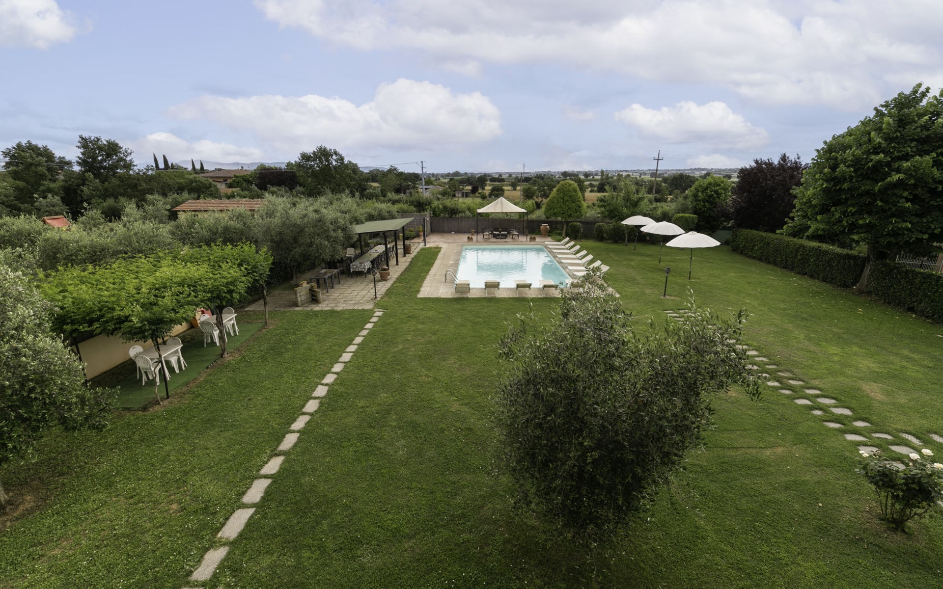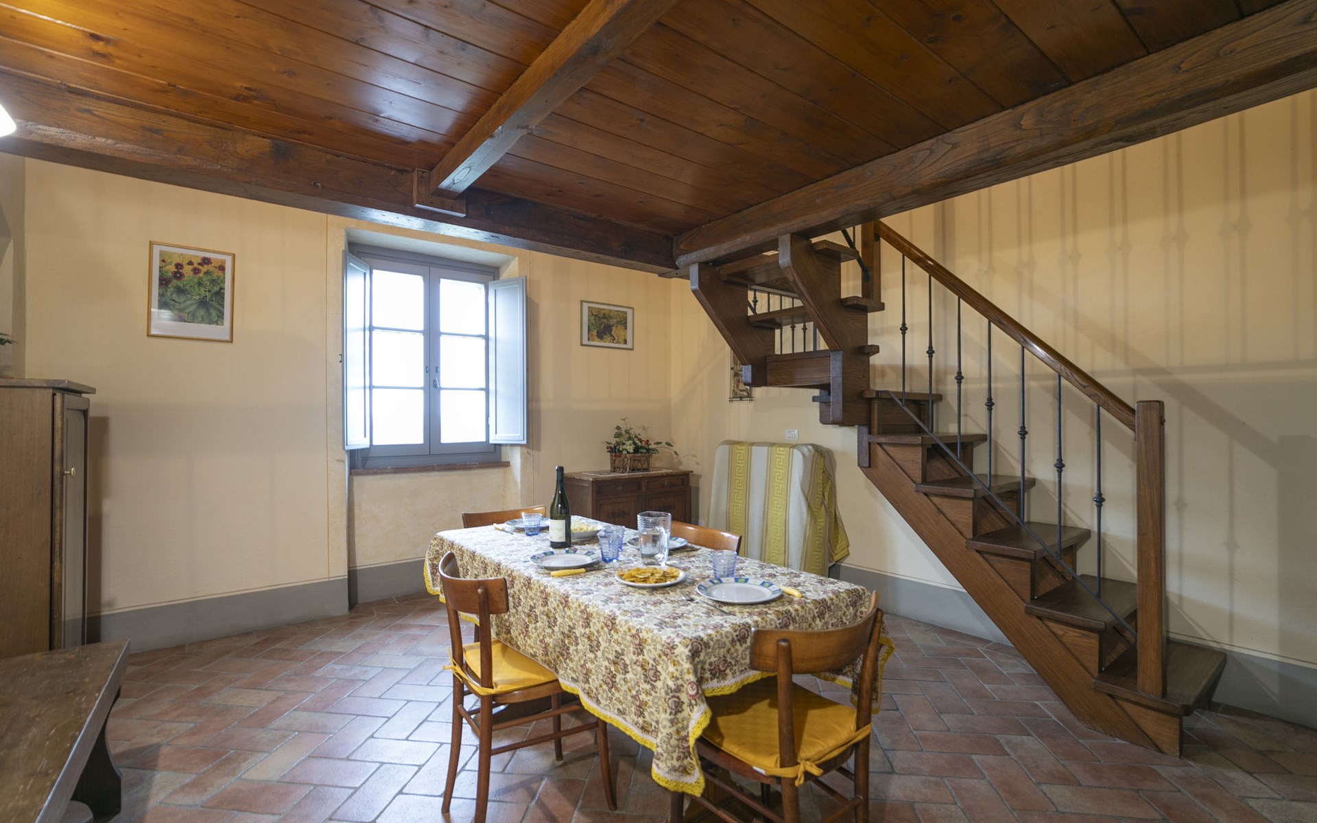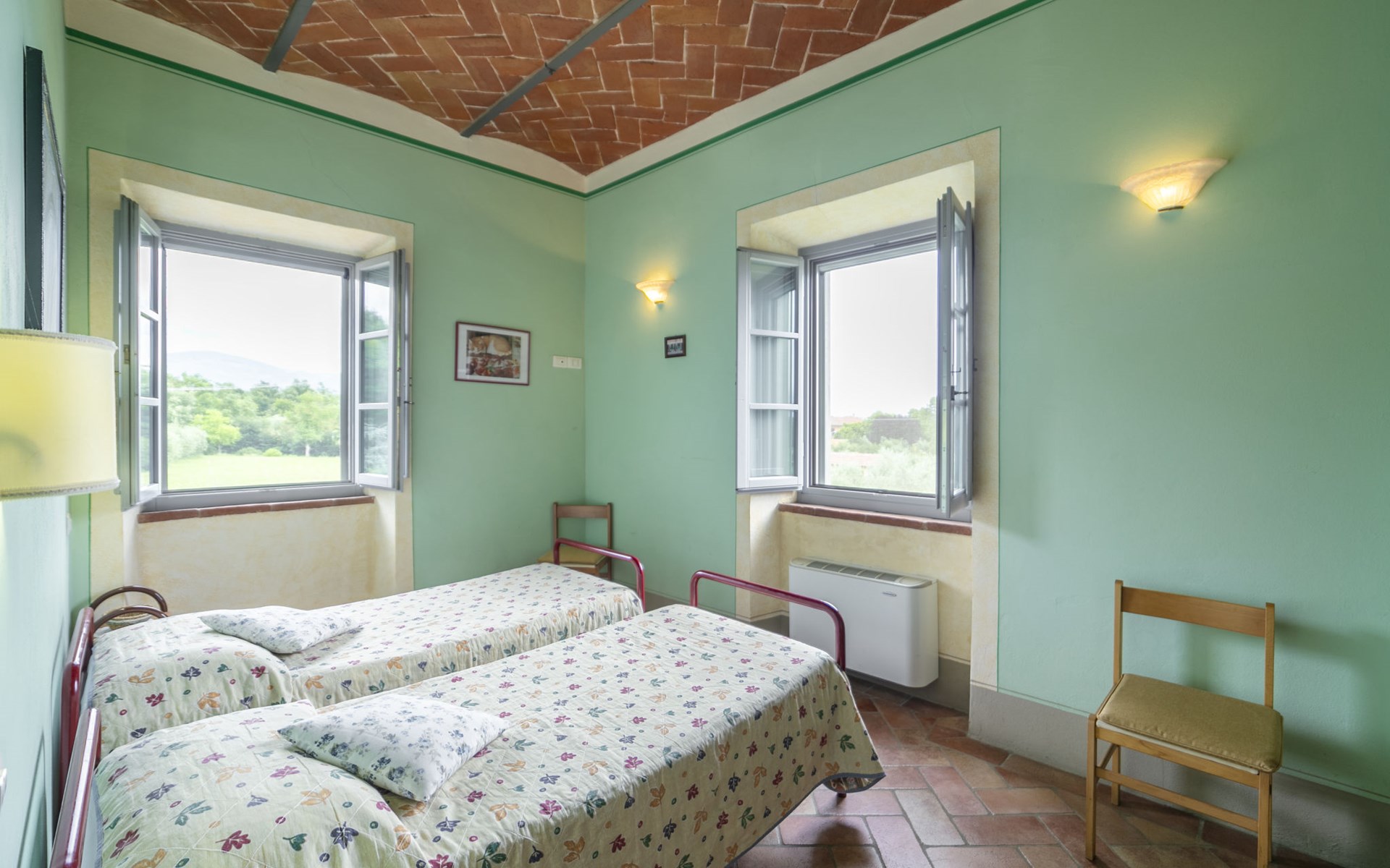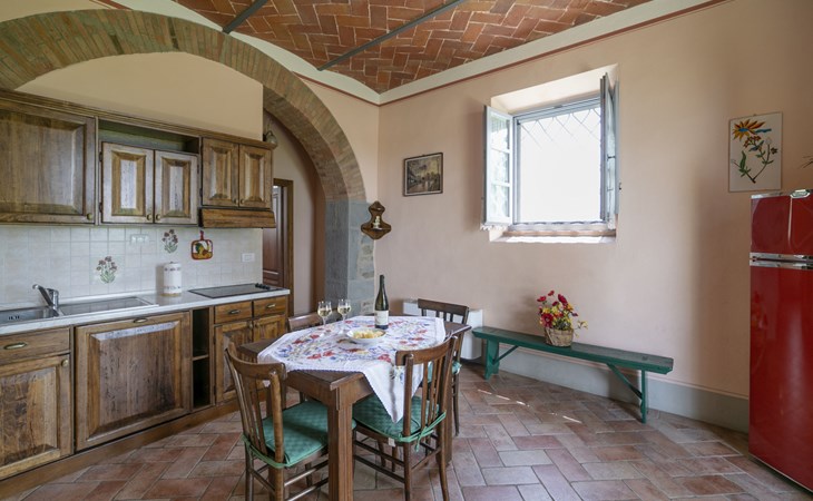 Zeer mooi villa "Le Rondini", 273 m boven zeeniveau, eenzijdig aangebouwd, bouwjaar 1700, gerenoveerd in 2016, omgeven door velden. In het gehucht La Fratta, 7 km van het centrum van Cortona, rustige, zonnige, verhoogde ligging, 20 km van het meer. Voor alleengebruik: tuin 1.000 m2 (omheind), openluchtzwembad (6 x 12 m, 120 - 150 cm diepte, seizoensgebonden beschikbaarheid: 01.Jun. - 30.Sep.). Buitendouche, prieel (30 m2), tuinmeubelen, barbecue. In het huis: tafeltennis. Overdekte parkeerplaats (voor 4 auto's) op 10 m. Levensmiddelenwinkel 1 km, supermarkt 5 km, treinstation "Camucia" 5 km, thermaalbad "Rapolano" 35 km, meer (zwemmen) "Trasimeno" 20 km. Attracties in de buurt: Castiglion Fiorentino 15 km, Castiglione Del Lago 23 km, Passignano Sul Trasimeno 28 km, Arezzo 30 km, Montepulciano 30 km, Perugia 50 km. Auto noodzakelijk. Groepen jongeren uitsluitend op aanvraag.