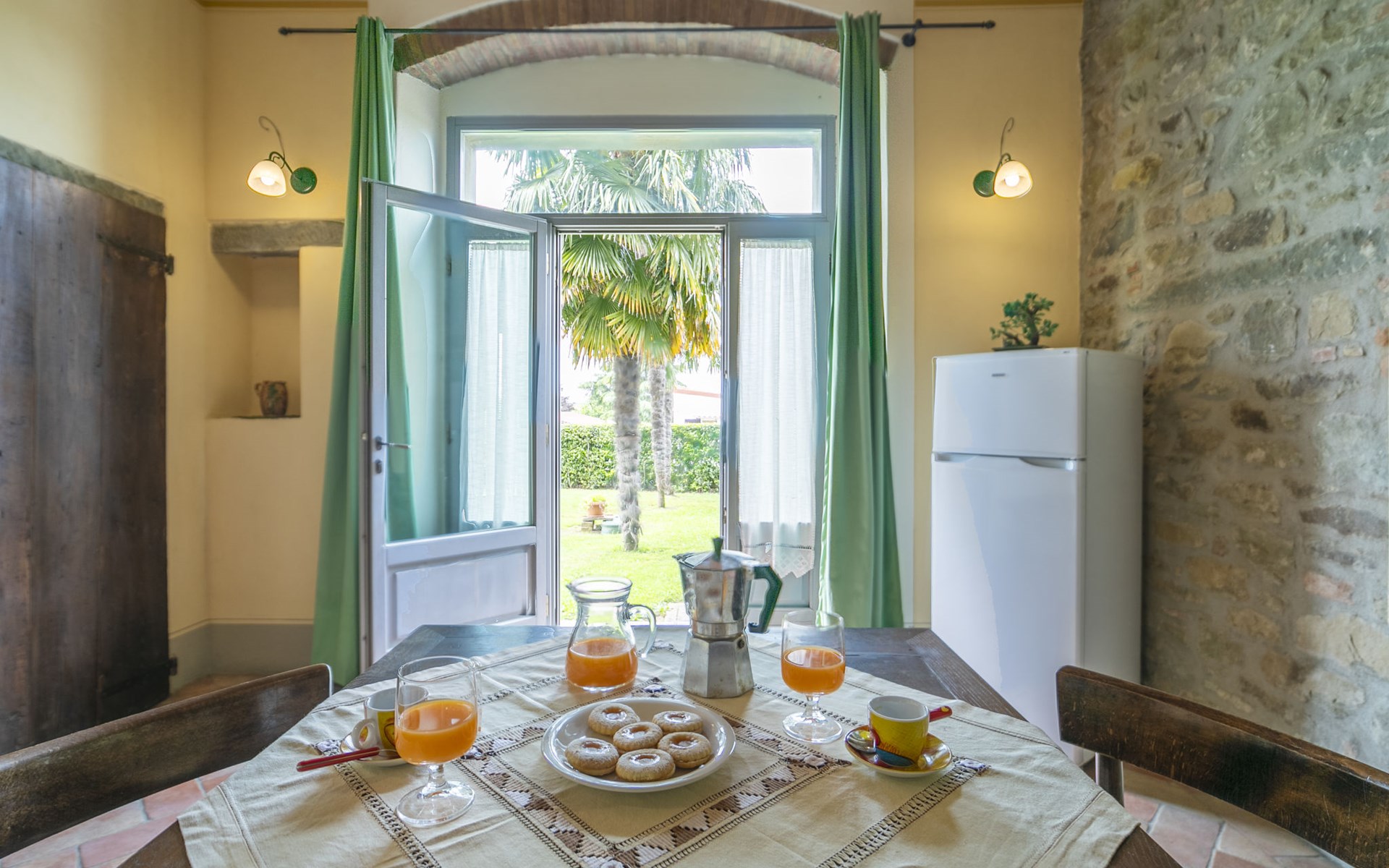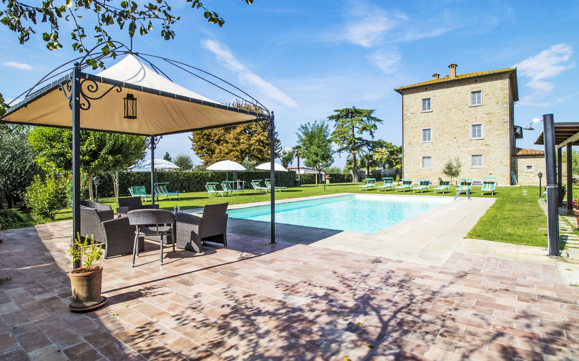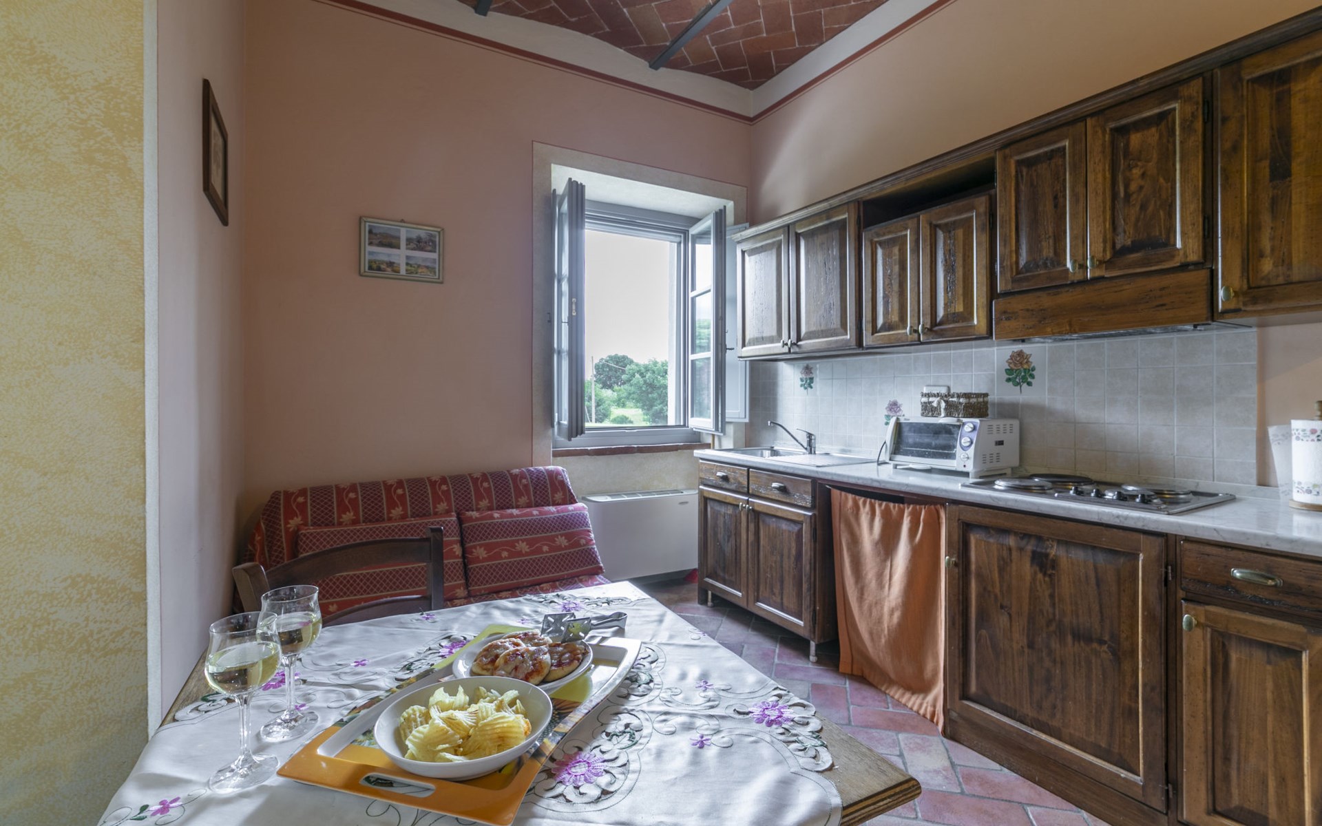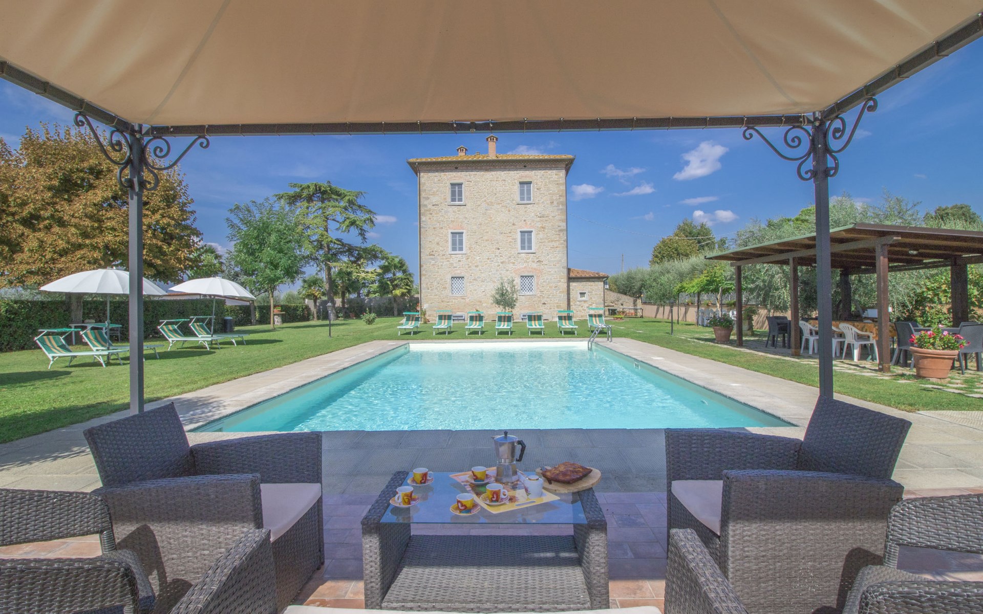 Zeer mooi villa "Le Rondini", 273 m boven zeeniveau, eenzijdig aangebouwd, bouwjaar 1700, gerenoveerd in 2016, omgeven door velden. In het gehucht La Fratta, 7 km van het centrum van Cortona, rustige, zonnige, verhoogde ligging, 20 km van het meer. Voor alleengebruik: tuin 1.000 m2 (omheind), openluchtzwembad (6 x 12 m, 120 - 150 cm diepte, seizoensgebonden beschikbaarheid: 01.Jun. - 30.Sep.). Buitendouche, prieel (30 m2), tuinmeubelen, barbecue. In het huis: tafeltennis. Overdekte parkeerplaats (voor 4 auto's) op 10 m. Levensmiddelenwinkel 1 km, supermarkt 5 km, treinstation "Camucia" 5 km, thermaalbad "Rapolano" 35 km, meer (zwemmen) "Trasimeno" 20 km. Attracties in de buurt: Castiglion Fiorentino 15 km, Castiglione Del Lago 23 km, Passignano Sul Trasimeno 28 km, Arezzo 30 km, Montepulciano 30 km, Perugia 50 km. Auto noodzakelijk. Groepen jongeren uitsluitend op aanvraag.