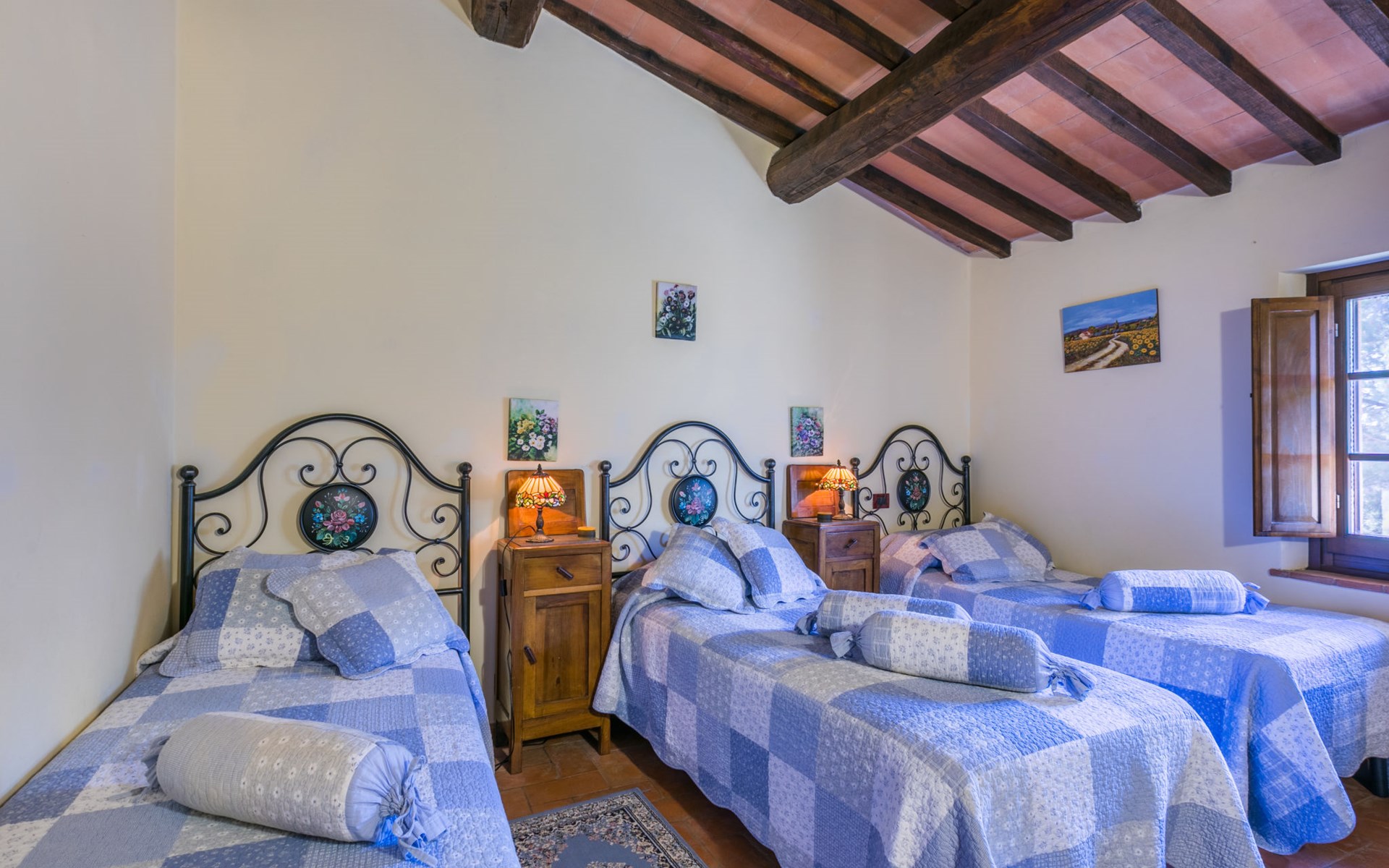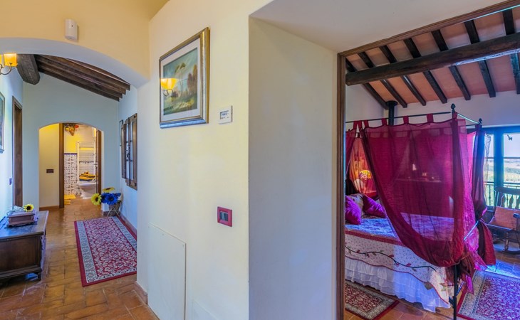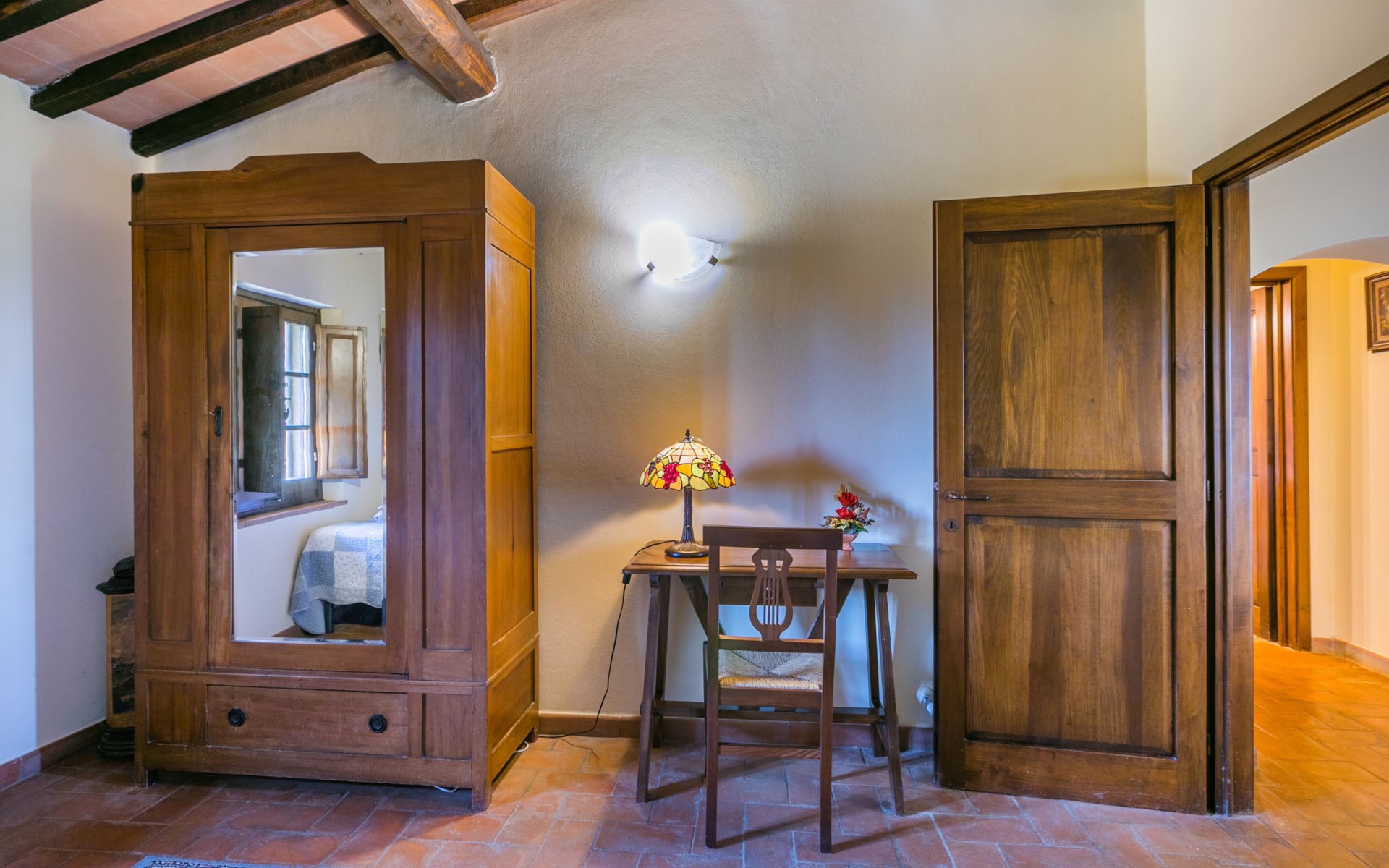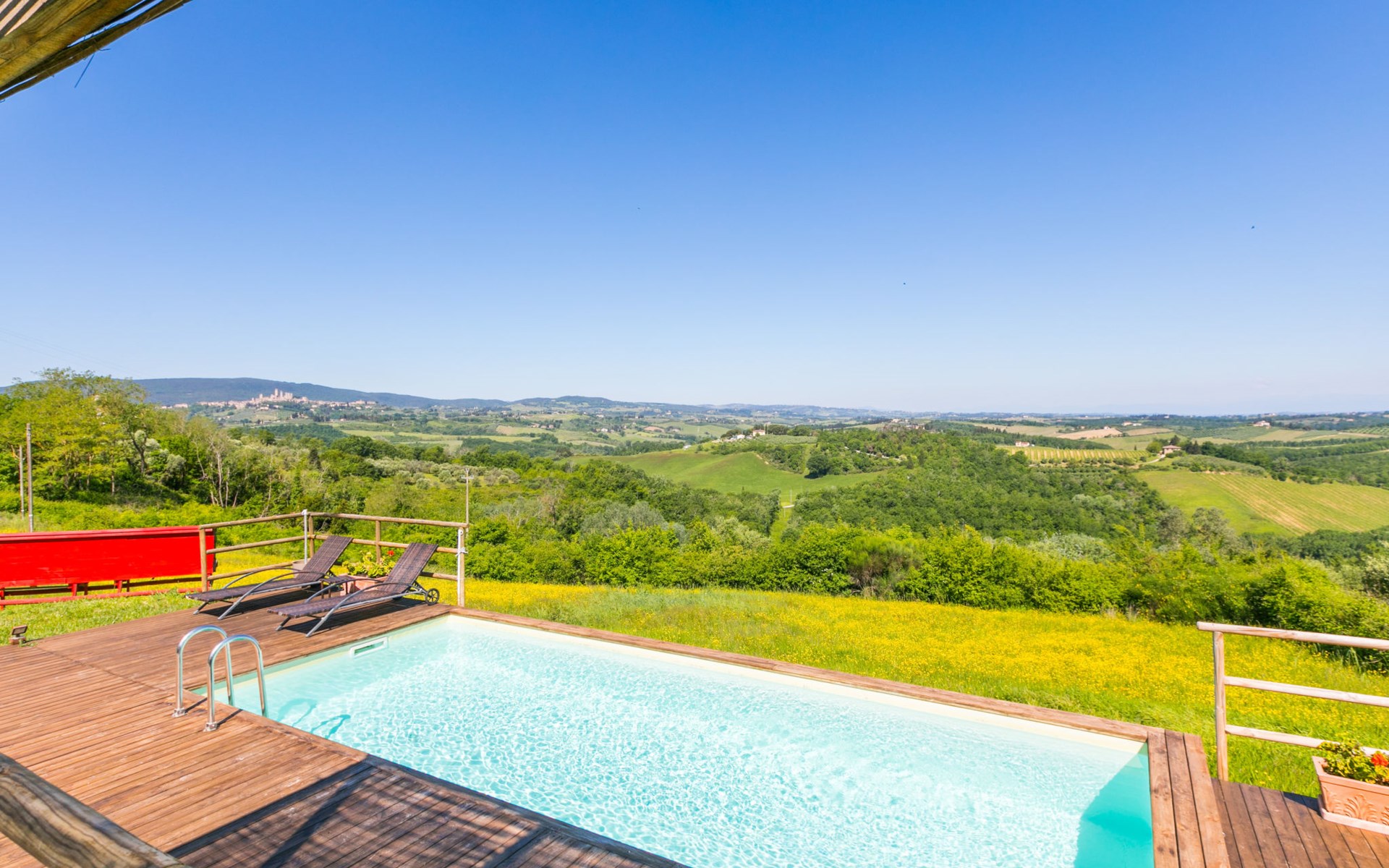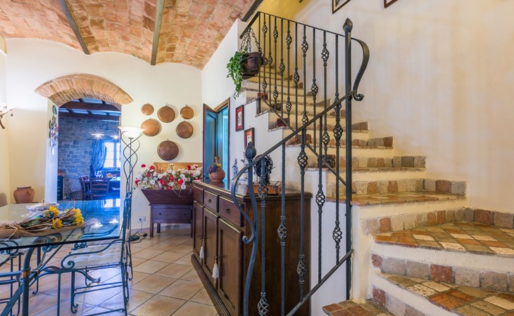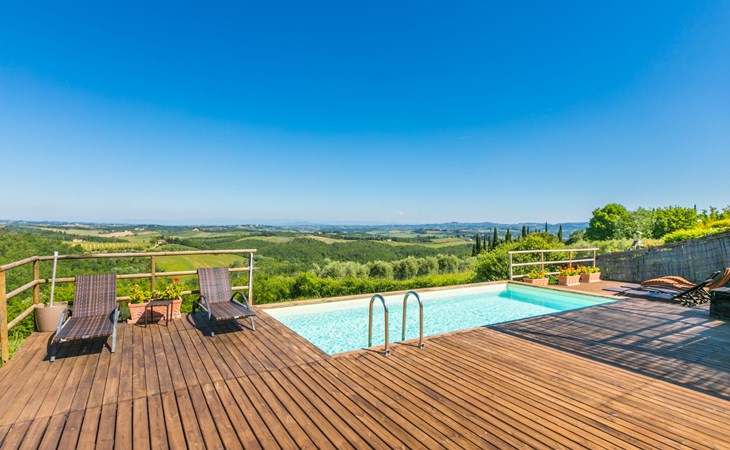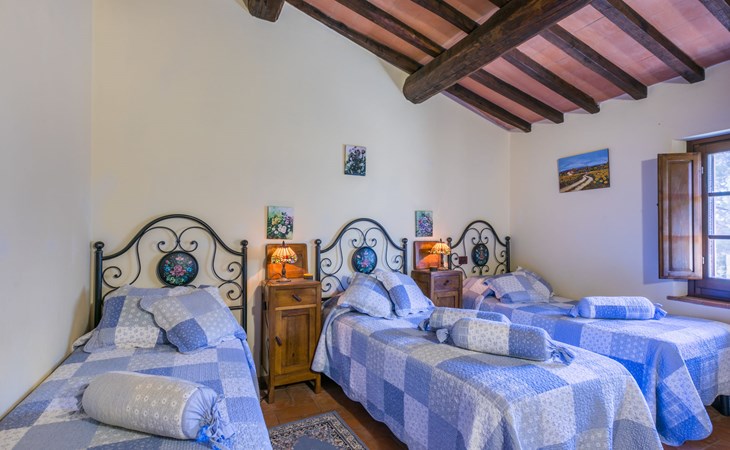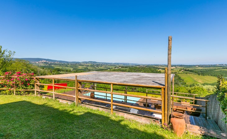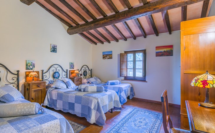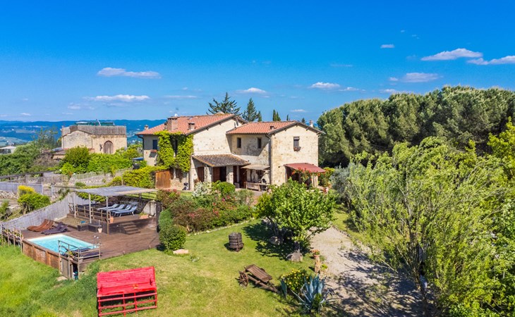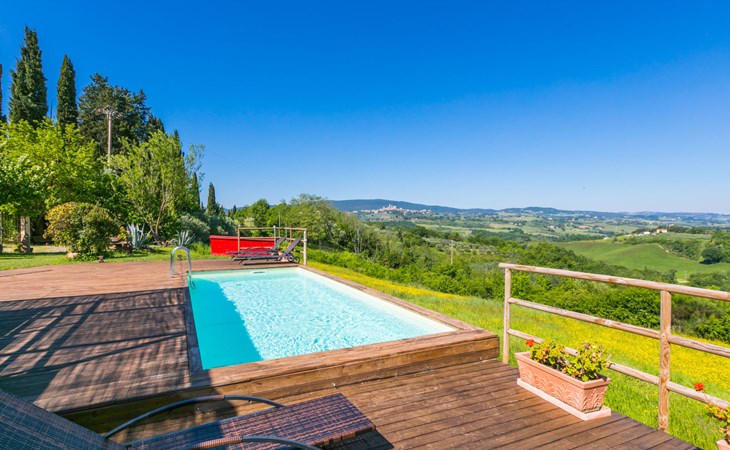 Casaglia 8 km van San Gimignano: Zeer mooi, gezellig landhuis "Podere San Lorenzo", eenzijdig aangebouwd, gerenoveerd in 2005, omgeven door weiden, velden en wijngaarden. In het gehucht Casaglia. 8 km van het centrum van San Gimignano, 8 km van het centrum van Poggibonsi, 30 km van het centrum van Siena, zonnige, verhoogde ligging tegen een helling, 80 km van zee, 80 km van het strand, te midden van groen. Voor alleengebruik: tuin op verschillende niveaus, 2.000 m2 (omheind) met bloemen en bomen, wilde tuin, weide, boomgaard, openluchtzwembad (verhoogd) (6 x 3 m, 140 cm diepte, seizoensgebonden beschikbaarheid: 01.Mei. - 10.Okt.). Buitendouche, terras, tuinmeubelen, barbecue, onderhoud zwembad door de eigenaar/tuinman. 2 km lange toegangsweg (onverharde weg). Parkeerplaats (voor 3 auto's) op het terrein. Winkel 5 km, levensmiddelenwinkel 5 km, supermarkt 5 km, winkelcentrum 5 km, restaurant 500 m, fietsverhuur 8 km, bushalte 6 km, treinstation "Poggibonsi" 5 km, zandstrand "Cecina Mare" 80 km. Attracties in de buurt: Certaldo 16 km, Volterra 40 km, Firenze 60 km, Pisa 94 km. Auto noodzakelijk. Geschikt voor families. Het objekt is geschikt voor 8 volwassenen groepen jongeren uitsluitend op aanvraag.