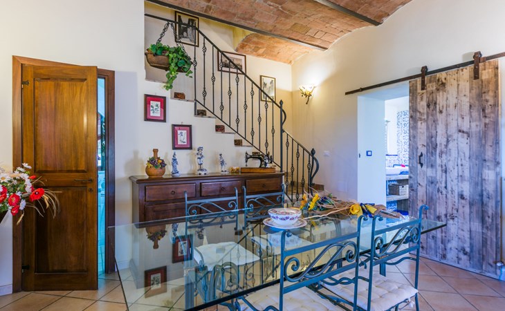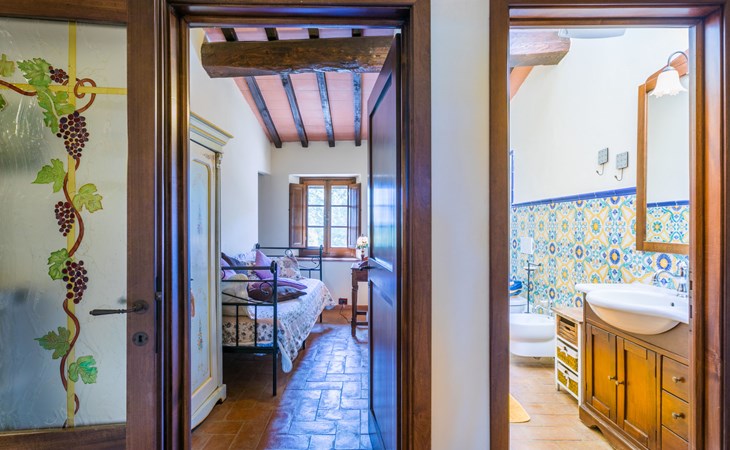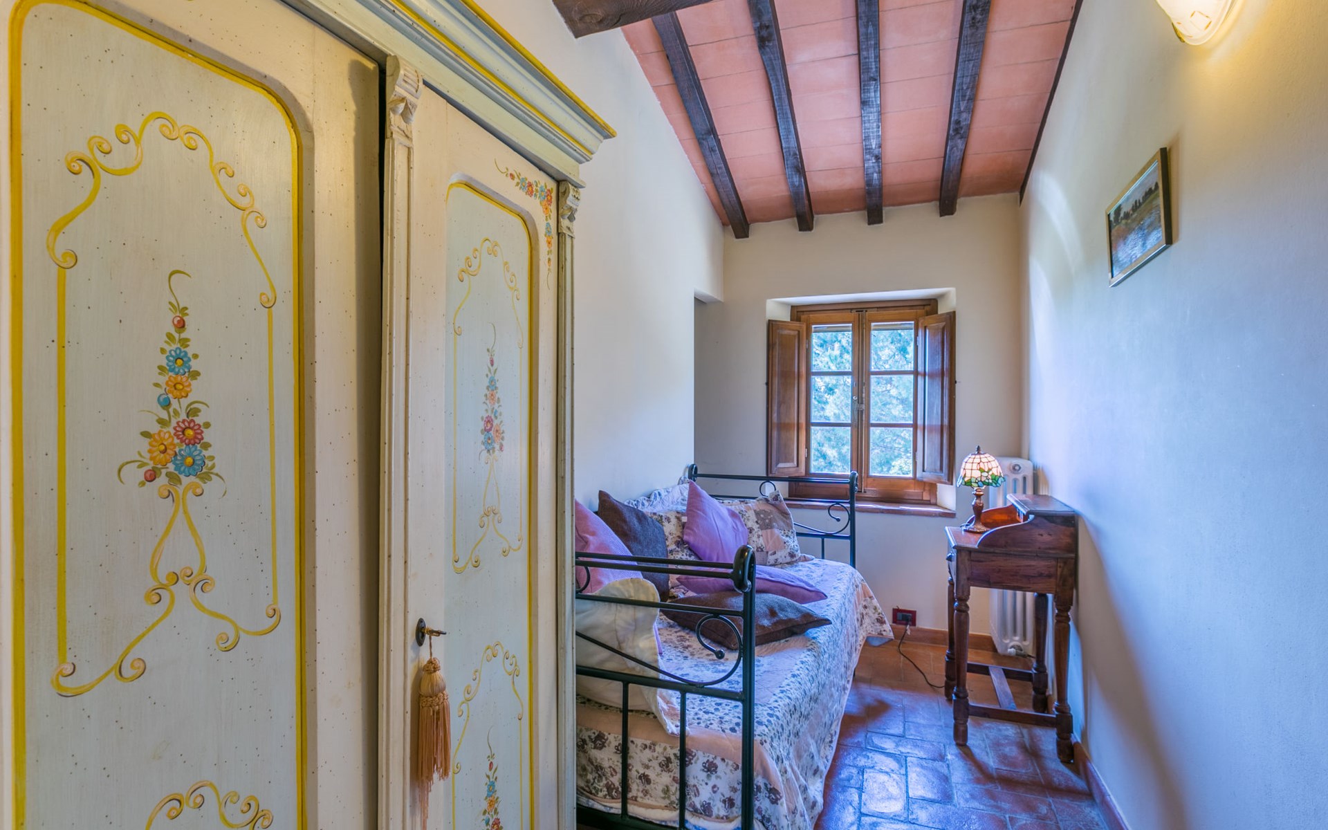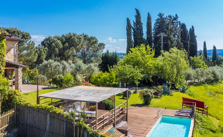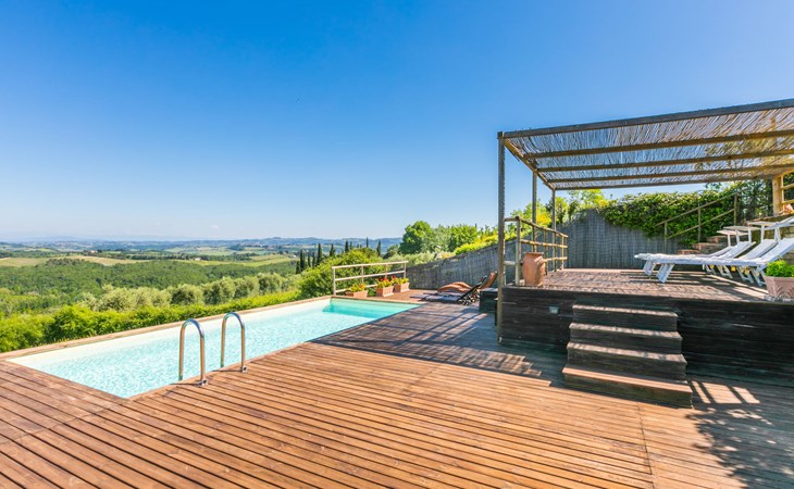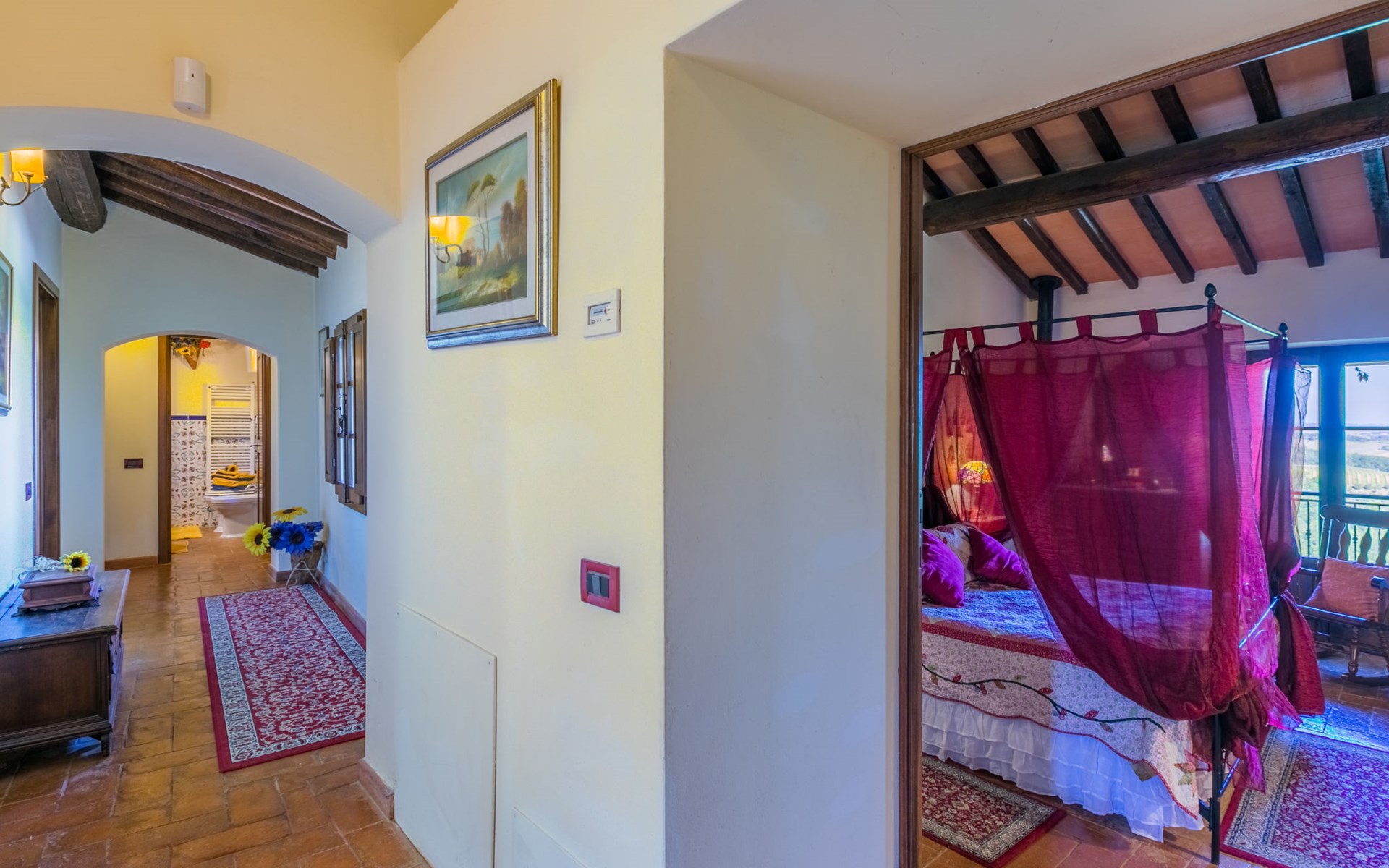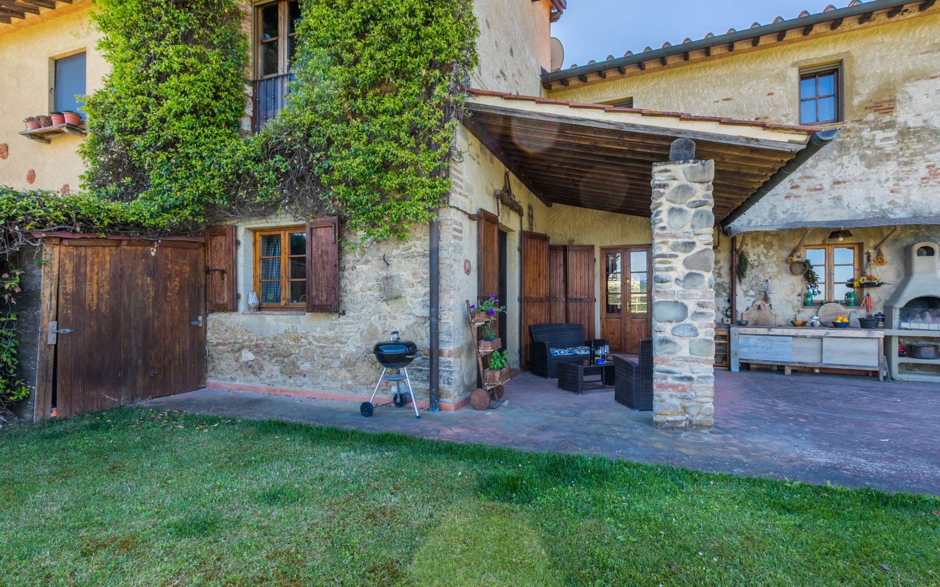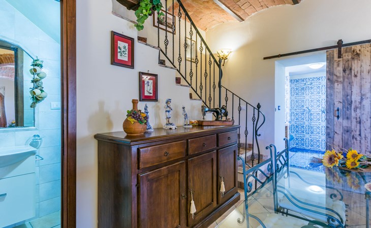 Casaglia 8 km van San Gimignano: Zeer mooi, gezellig landhuis "Podere San Lorenzo", eenzijdig aangebouwd, gerenoveerd in 2005, omgeven door weiden, velden en wijngaarden. In het gehucht Casaglia. 8 km van het centrum van San Gimignano, 8 km van het centrum van Poggibonsi, 30 km van het centrum van Siena, zonnige, verhoogde ligging tegen een helling, 80 km van zee, 80 km van het strand, te midden van groen. Voor alleengebruik: tuin op verschillende niveaus, 2.000 m2 (omheind) met bloemen en bomen, wilde tuin, weide, boomgaard, openluchtzwembad (verhoogd) (6 x 3 m, 140 cm diepte, seizoensgebonden beschikbaarheid: 01.Mei. - 10.Okt.). Buitendouche, terras, tuinmeubelen, barbecue, onderhoud zwembad door de eigenaar/tuinman. 2 km lange toegangsweg (onverharde weg). Parkeerplaats (voor 3 auto's) op het terrein. Winkel 5 km, levensmiddelenwinkel 5 km, supermarkt 5 km, winkelcentrum 5 km, restaurant 500 m, fietsverhuur 8 km, bushalte 6 km, treinstation "Poggibonsi" 5 km, zandstrand "Cecina Mare" 80 km. Attracties in de buurt: Certaldo 16 km, Volterra 40 km, Firenze 60 km, Pisa 94 km. Auto noodzakelijk. Geschikt voor families. Het objekt is geschikt voor 8 volwassenen groepen jongeren uitsluitend op aanvraag.
