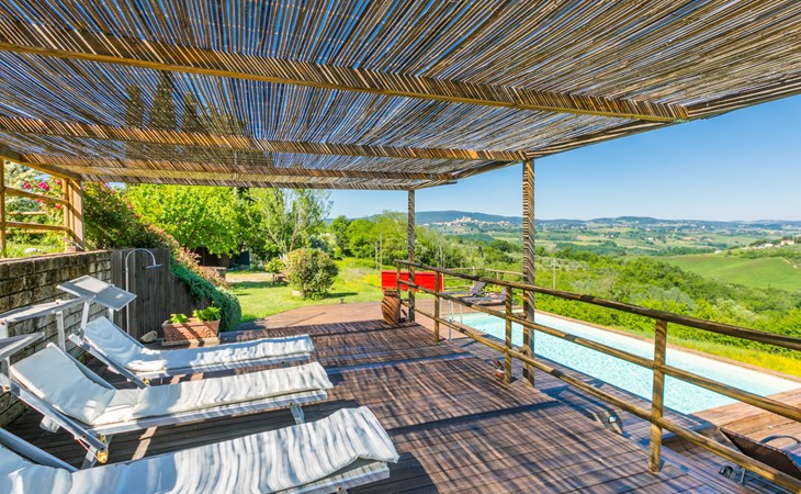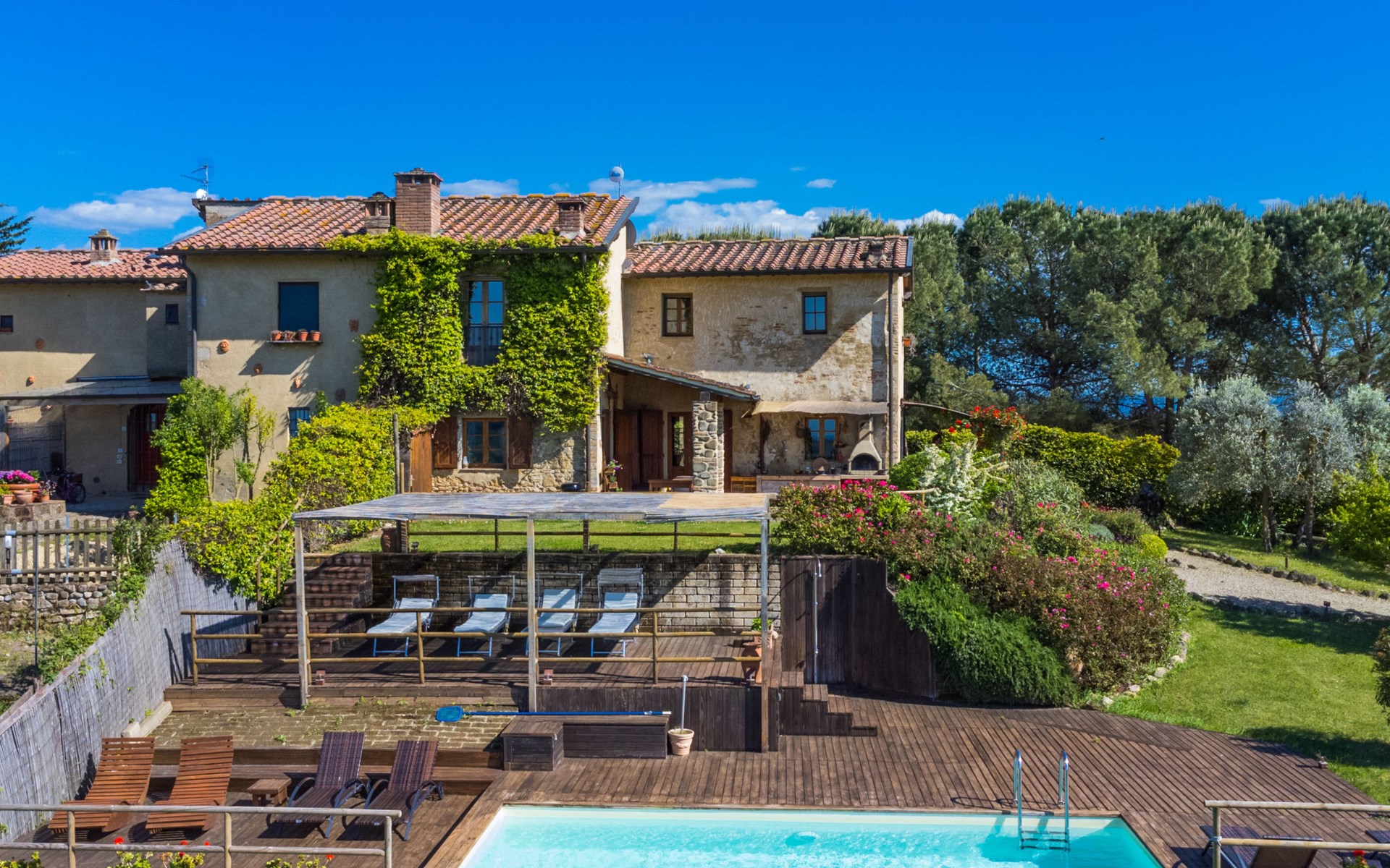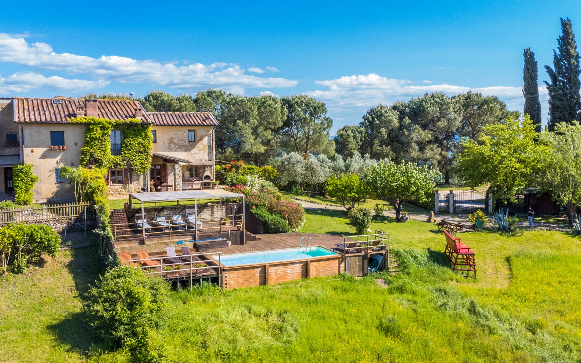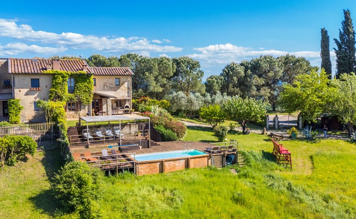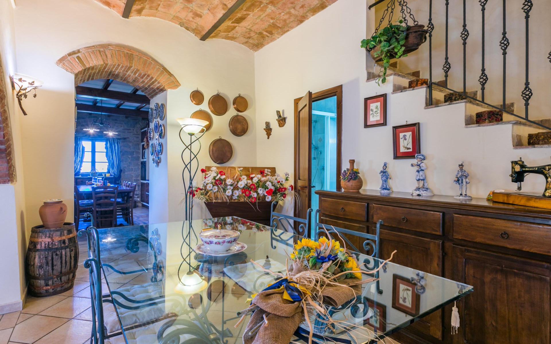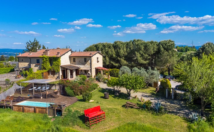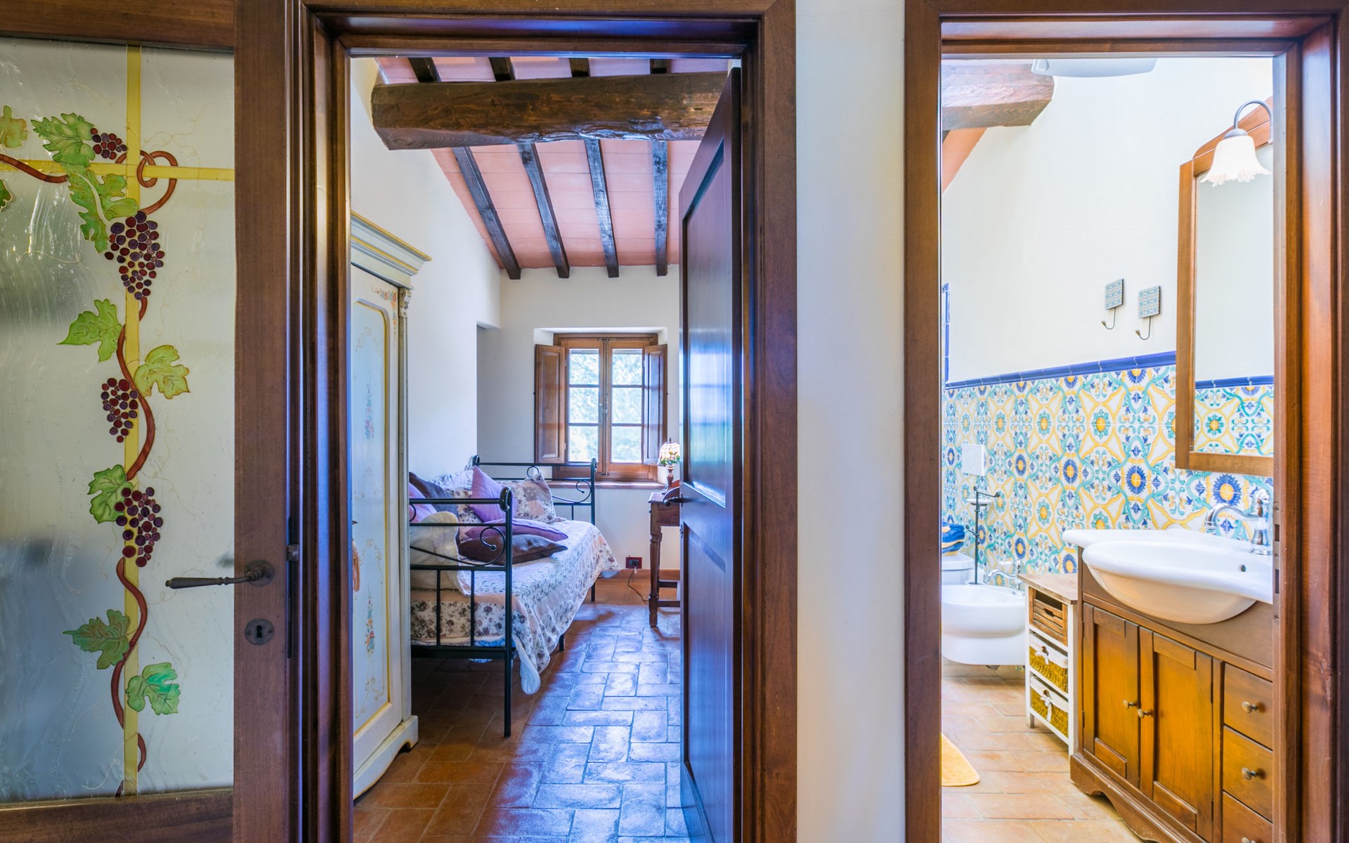 Casaglia 8 km van San Gimignano: Zeer mooi, gezellig landhuis "Podere San Lorenzo", eenzijdig aangebouwd, gerenoveerd in 2005, omgeven door weiden, velden en wijngaarden. In het gehucht Casaglia. 8 km van het centrum van San Gimignano, 8 km van het centrum van Poggibonsi, 30 km van het centrum van Siena, zonnige, verhoogde ligging tegen een helling, 80 km van zee, 80 km van het strand, te midden van groen. Voor alleengebruik: tuin op verschillende niveaus, 2.000 m2 (omheind) met bloemen en bomen, wilde tuin, weide, boomgaard, openluchtzwembad (verhoogd) (6 x 3 m, 140 cm diepte, seizoensgebonden beschikbaarheid: 01.Mei. - 10.Okt.). Buitendouche, terras, tuinmeubelen, barbecue, onderhoud zwembad door de eigenaar/tuinman. 2 km lange toegangsweg (onverharde weg). Parkeerplaats (voor 3 auto's) op het terrein. Winkel 5 km, levensmiddelenwinkel 5 km, supermarkt 5 km, winkelcentrum 5 km, restaurant 500 m, fietsverhuur 8 km, bushalte 6 km, treinstation "Poggibonsi" 5 km, zandstrand "Cecina Mare" 80 km. Attracties in de buurt: Certaldo 16 km, Volterra 40 km, Firenze 60 km, Pisa 94 km. Auto noodzakelijk. Geschikt voor families. Het objekt is geschikt voor 8 volwassenen groepen jongeren uitsluitend op aanvraag.