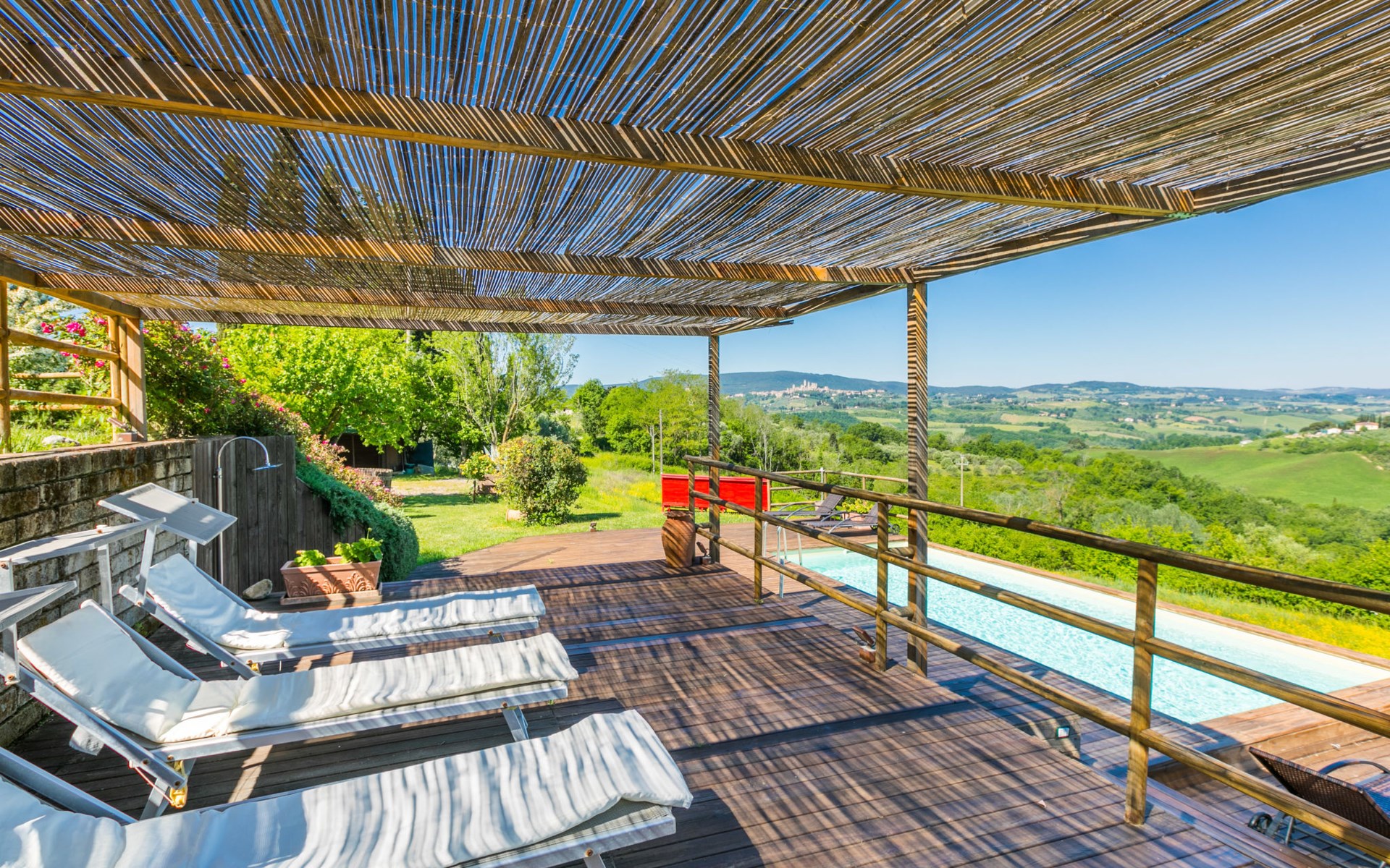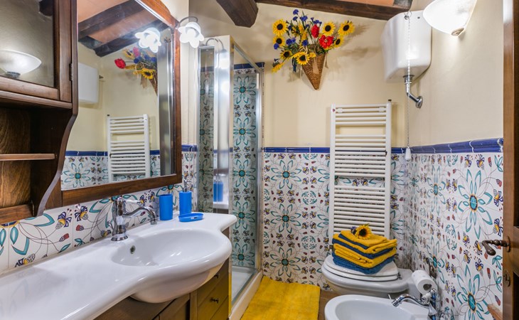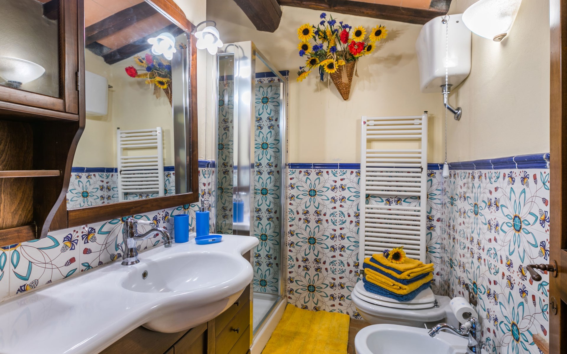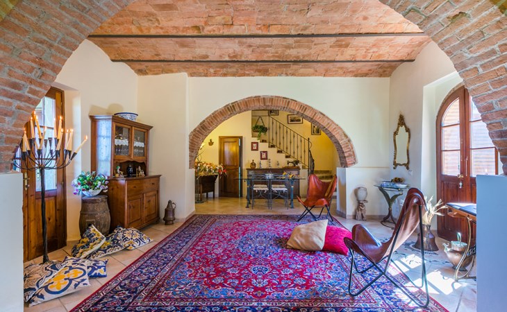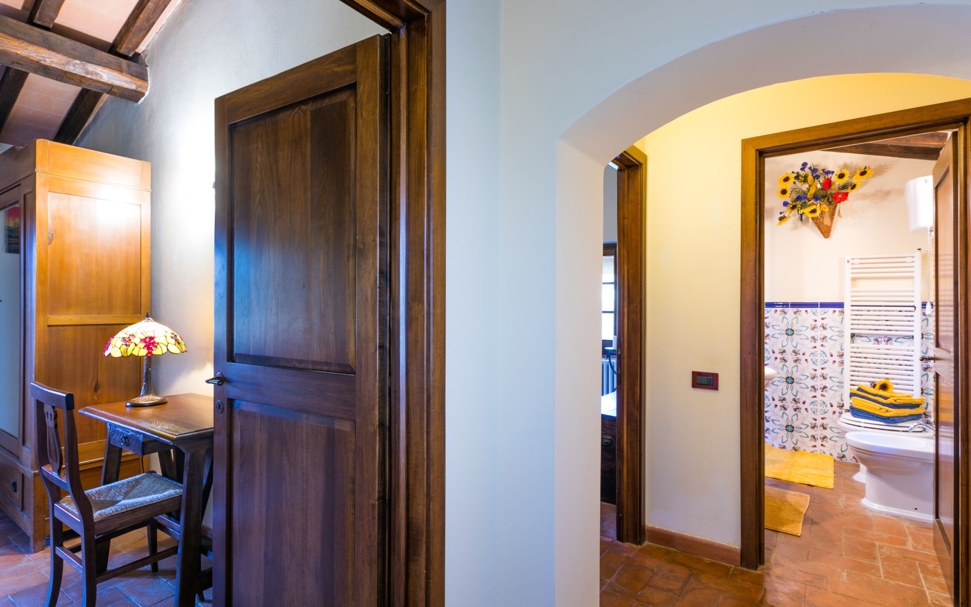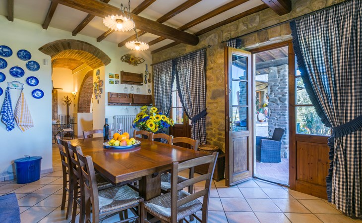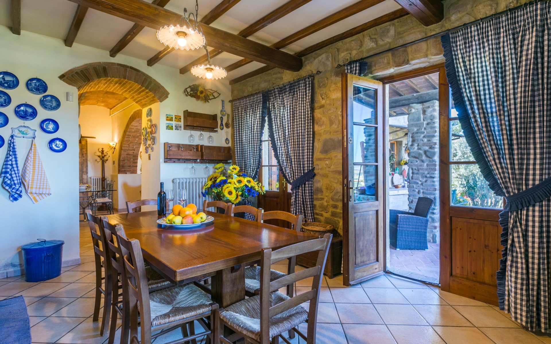 Casaglia 8 km van San Gimignano: Zeer mooi, gezellig landhuis "Podere San Lorenzo", eenzijdig aangebouwd, gerenoveerd in 2005, omgeven door weiden, velden en wijngaarden. In het gehucht Casaglia. 8 km van het centrum van San Gimignano, 8 km van het centrum van Poggibonsi, 30 km van het centrum van Siena, zonnige, verhoogde ligging tegen een helling, 80 km van zee, 80 km van het strand, te midden van groen. Voor alleengebruik: tuin op verschillende niveaus, 2.000 m2 (omheind) met bloemen en bomen, wilde tuin, weide, boomgaard, openluchtzwembad (verhoogd) (6 x 3 m, 140 cm diepte, seizoensgebonden beschikbaarheid: 01.Mei. - 10.Okt.). Buitendouche, terras, tuinmeubelen, barbecue, onderhoud zwembad door de eigenaar/tuinman. 2 km lange toegangsweg (onverharde weg). Parkeerplaats (voor 3 auto's) op het terrein. Winkel 5 km, levensmiddelenwinkel 5 km, supermarkt 5 km, winkelcentrum 5 km, restaurant 500 m, fietsverhuur 8 km, bushalte 6 km, treinstation "Poggibonsi" 5 km, zandstrand "Cecina Mare" 80 km. Attracties in de buurt: Certaldo 16 km, Volterra 40 km, Firenze 60 km, Pisa 94 km. Auto noodzakelijk. Geschikt voor families. Het objekt is geschikt voor 8 volwassenen groepen jongeren uitsluitend op aanvraag.