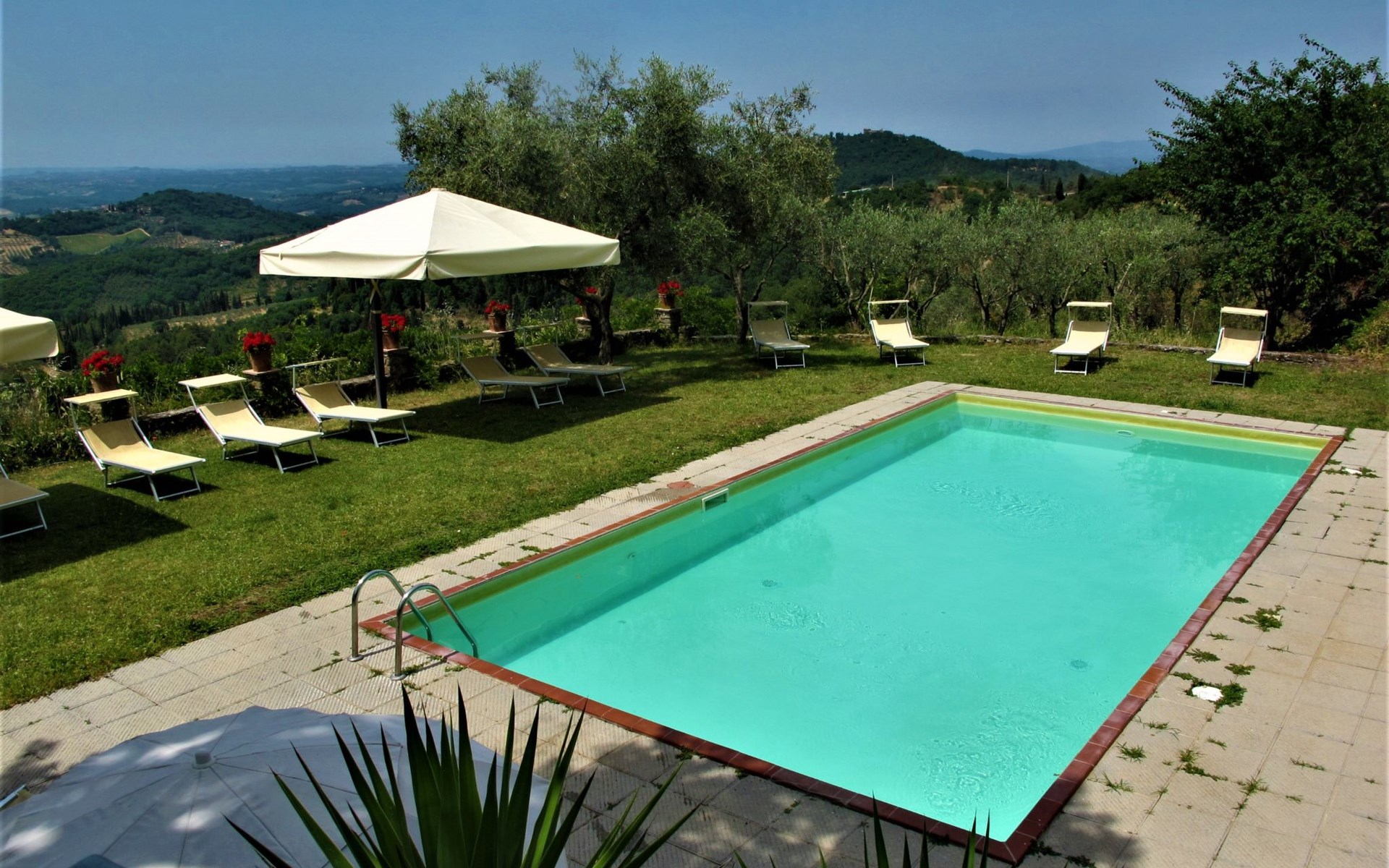 Herenhuis "Panzalla", vrijstaand, omgeven door velden en wijngaarden. 6 appartementen in de woning. Huurobject bestaande uit hoofd-/ bijgebouw, 4 km van het centrum van San Polo in Chianti, 16 km van het centrum van Impruneta, 23 km van het centrum van Firenze, geïsoleerde, zonnige, verhoogde ligging, te midden van groen. Voor medegebruik: wild terrein, tuin op verschillende niveaus met bloemen en bomen, weide, openluchtzwembad omheind (10 x 5 m, 150 cm diepte, seizoensgebonden beschikbaarheid: 06.Mei. - 07.Okt.). Buitendouche, terras, tuinmeubelen, barbecue, onderhoud zwembad door de eigenaar/tuinman. In het huis: receptie, internetaansluiting, Internet (WiFi), wasmachine (voor medegebruik). 2 km lange rommelige toegangsweg (onverharde weg). Parkeerplaats op het terrein. Supermarkt 4 km, restaurant 4 km, bakkerij 4 km, bushalte "San Polo in Chianti" 4 km. Golfterrein (18 holes) 13 km. Attracties in de buurt: Greve in Chianti 20 km, Radda in Chianti 38 km, San Gimignano 58 m, Siena 75 m, Arezzo 65 m. Auto noodzakelijk. Geschikt voor families, baby uitrusting (incl.). Het is mogelijk een kookcursus te boeken. Lokale verkoop van streekproducten. De eigenaar woont op hetzelfde terrein. De woningen kunnen onderling van inrichting verschillen.