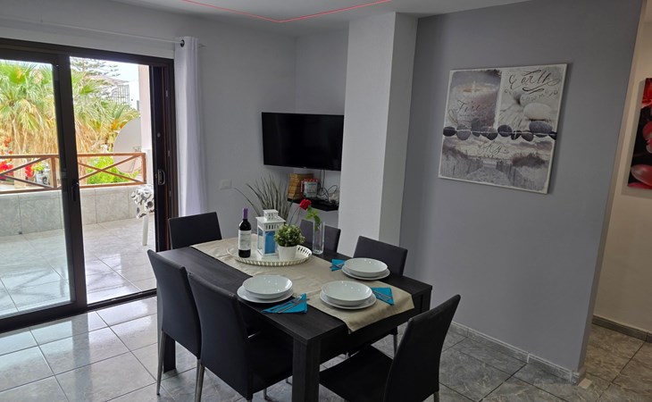 Het appartement San Marino heeft een centrale ligging in Los Cristianos, en biedt voldoende ruimte voor de grote familie. Er is een groot verwarmd zwembad met ligstoelen en een kinderbad. Het appartement heeft een groot terras met een indirect uitzicht op zee door de palmbomen overal. U kunt hier in de avond met een glas wijn.