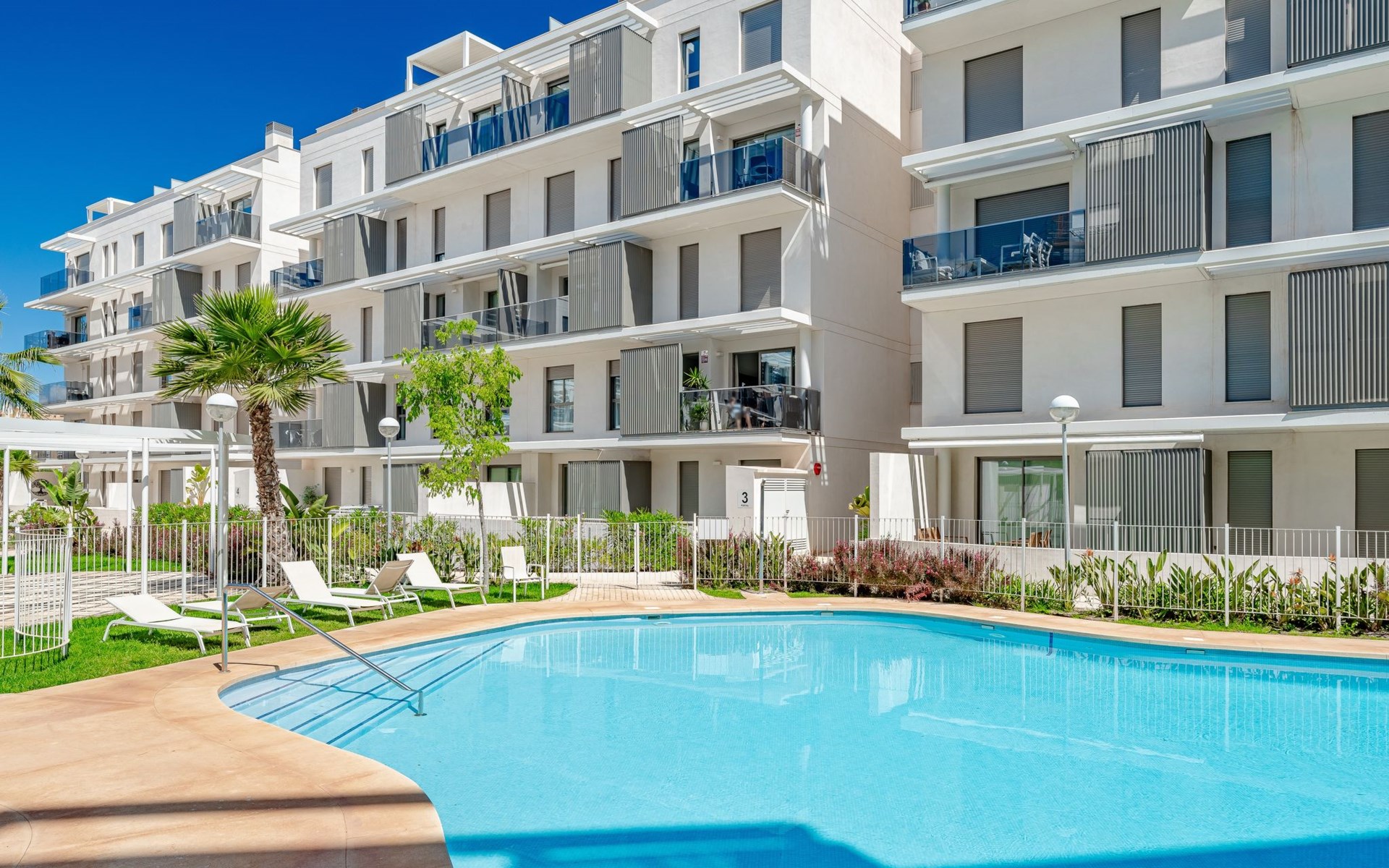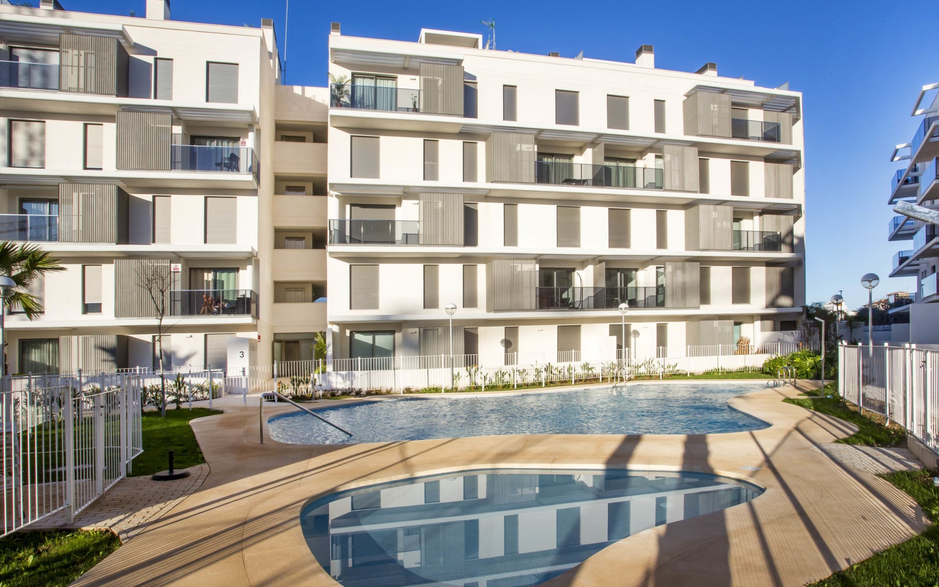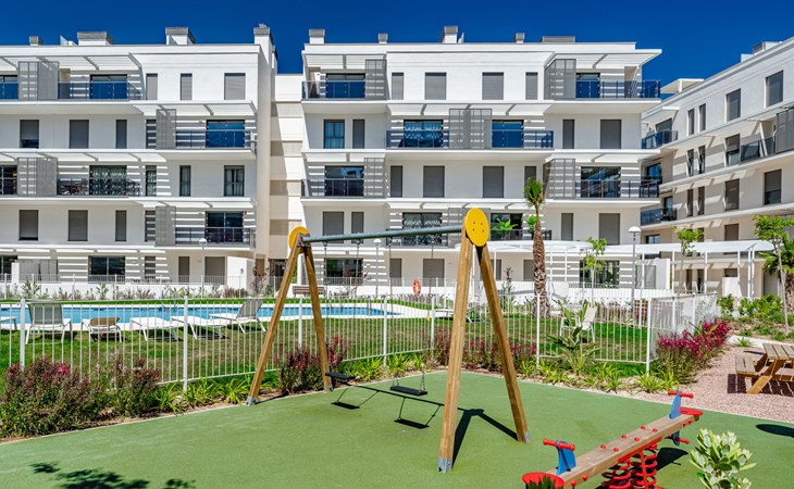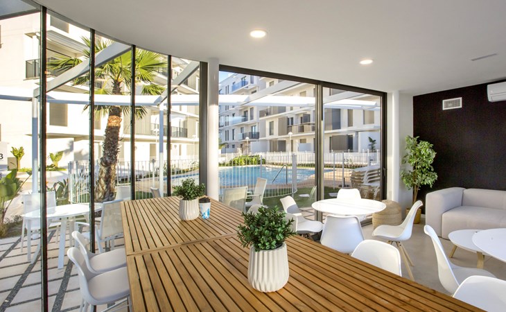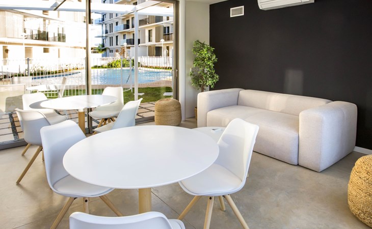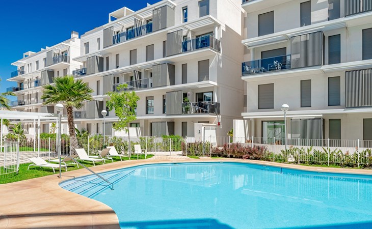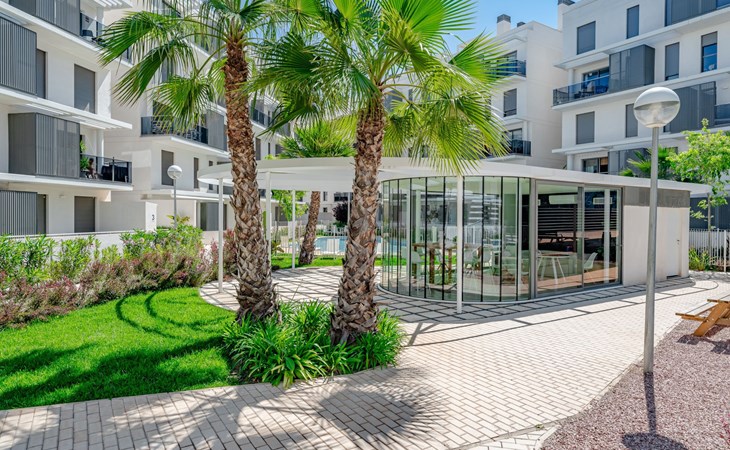 Zeer groot, zeer moderne flatgebouw "Marina Real III". In de plaats, 500 m van het centrum van Dénia, rustige, zonnige ligging, 350 m van zee, 750 m van het strand. Voor medegebruik: groot, mooie, verzorgde tuin met gazon en bomen, 2 zwembaden (20 x 15 m, 40 - 210 cm diepte, seizoensgebonden beschikbaarheid: 01.Jan. - 31.Dec.) met trap. Onregelmatig zwembad. Kinderzwembad, buitendouche, tuinmeubelen, kinderspeelplaats. In het huis: lift. Gemeenschappelijke garage. Supermarkt 100 m, restaurant 500 m, café 450 m, bushalte 1.1 km, treinstation 1 km, veerboot 2 km, zandstrand "Marineta Cassiana" 700 m. Jachthaven, surfschool, zeilschool 500 m. De eigenaar accepteert geen jeugdgroepen.