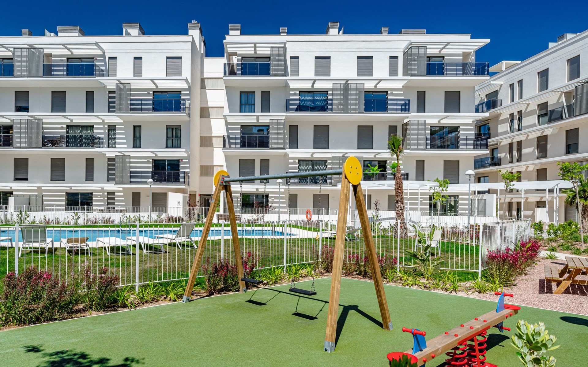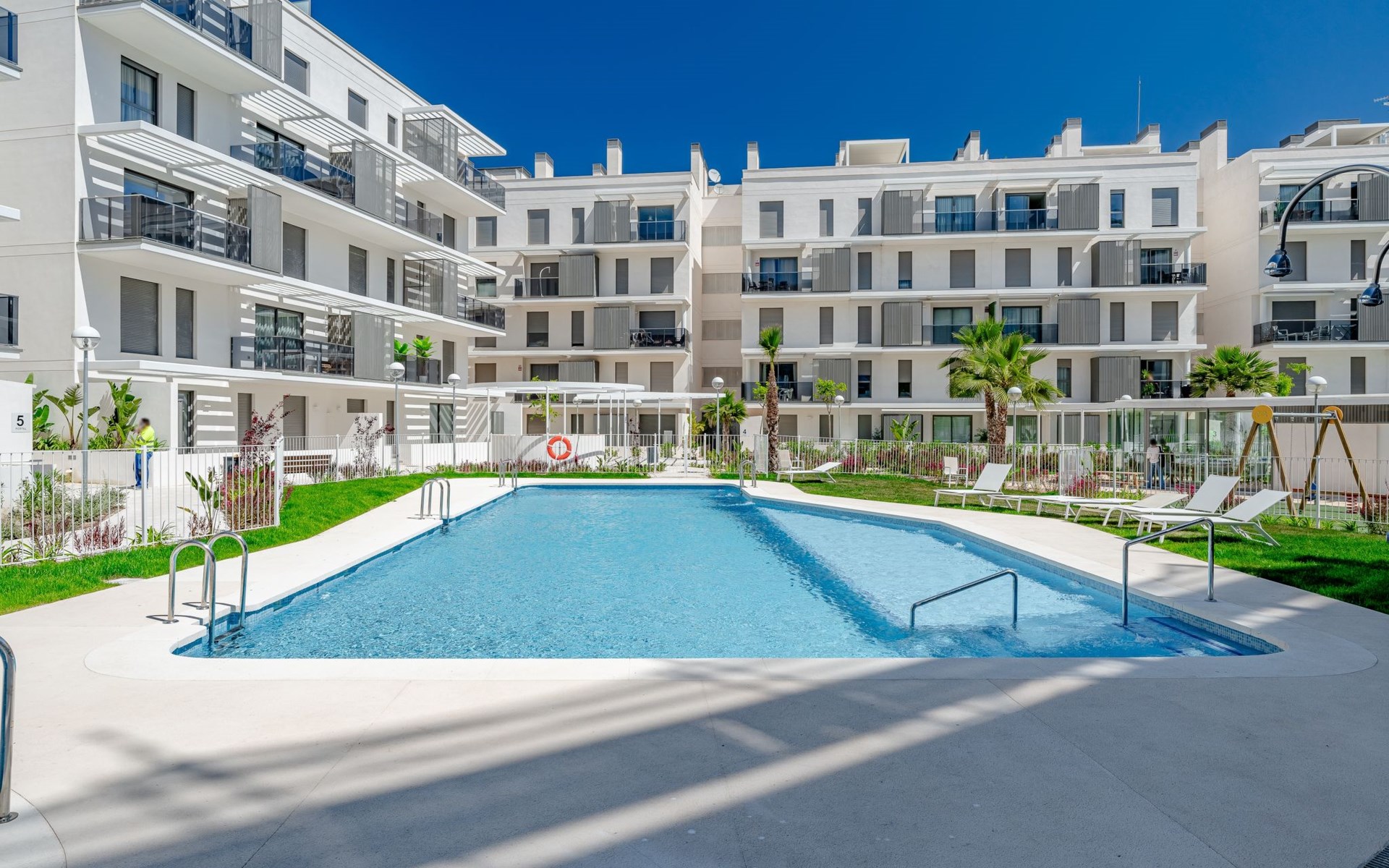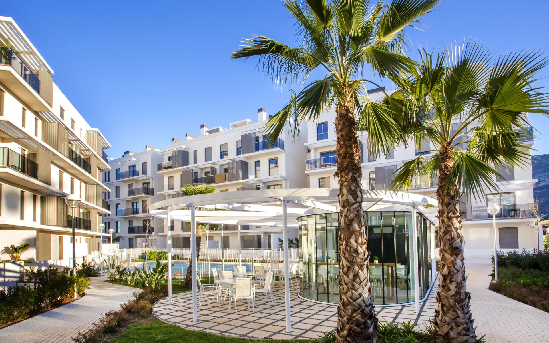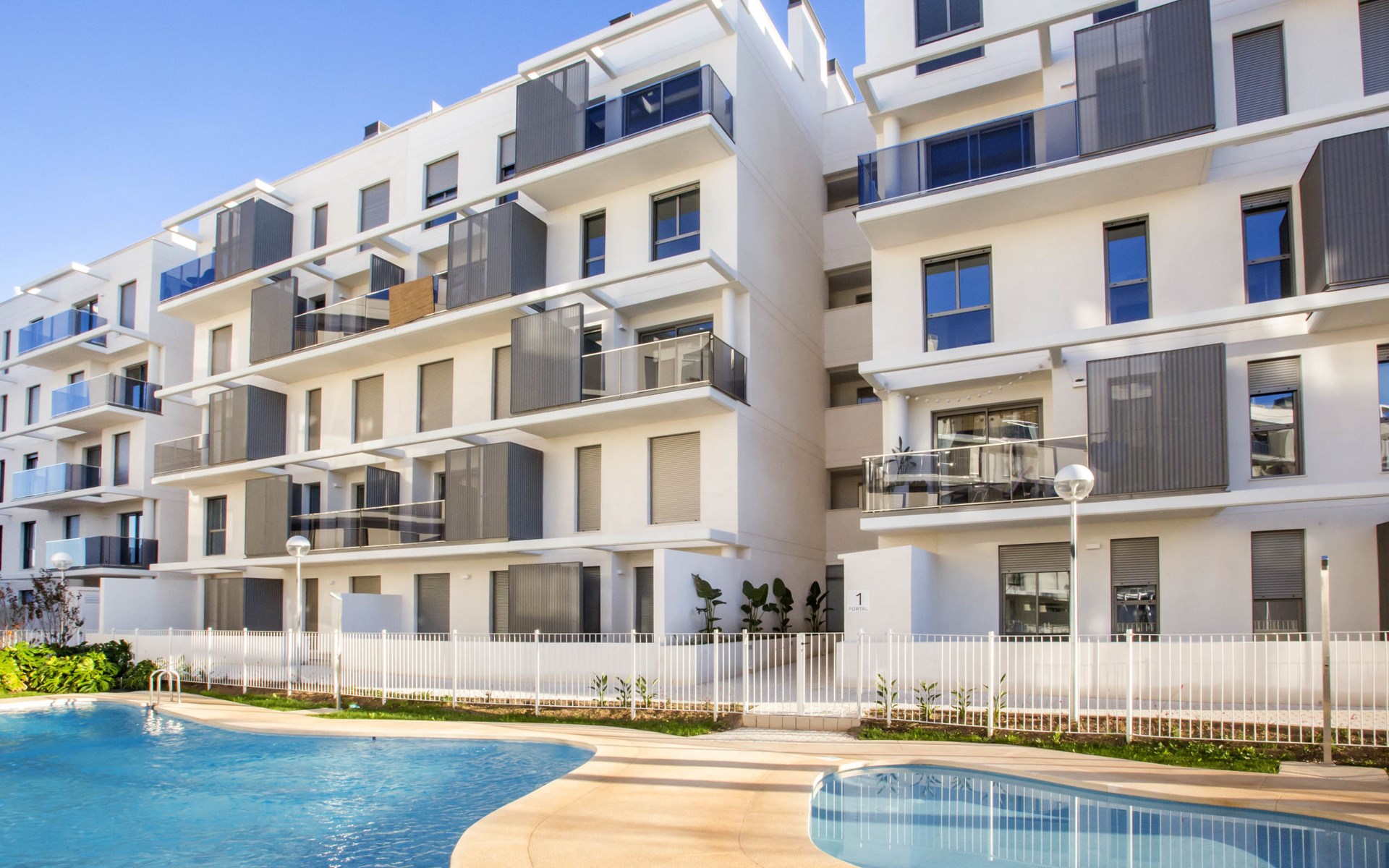 Zeer groot, zeer moderne flatgebouw "Marina Real III". In de plaats, 500 m van het centrum van Dénia, rustige, zonnige ligging, 350 m van zee, 750 m van het strand. Voor medegebruik: groot, mooie, verzorgde tuin met gazon en bomen, 2 zwembaden (20 x 15 m, 40 - 210 cm diepte, seizoensgebonden beschikbaarheid: 01.Jan. - 31.Dec.) met trap. Onregelmatig zwembad. Kinderzwembad, buitendouche, tuinmeubelen, kinderspeelplaats. In het huis: lift. Gemeenschappelijke garage. Supermarkt 100 m, restaurant 500 m, café 450 m, bushalte 1.1 km, treinstation 1 km, veerboot 2 km, zandstrand "Marineta Cassiana" 700 m. Jachthaven, surfschool, zeilschool 500 m. De eigenaar accepteert geen jeugdgroepen.