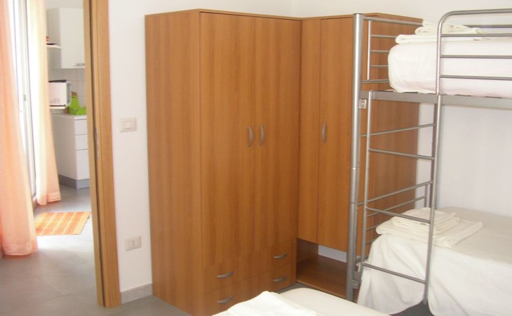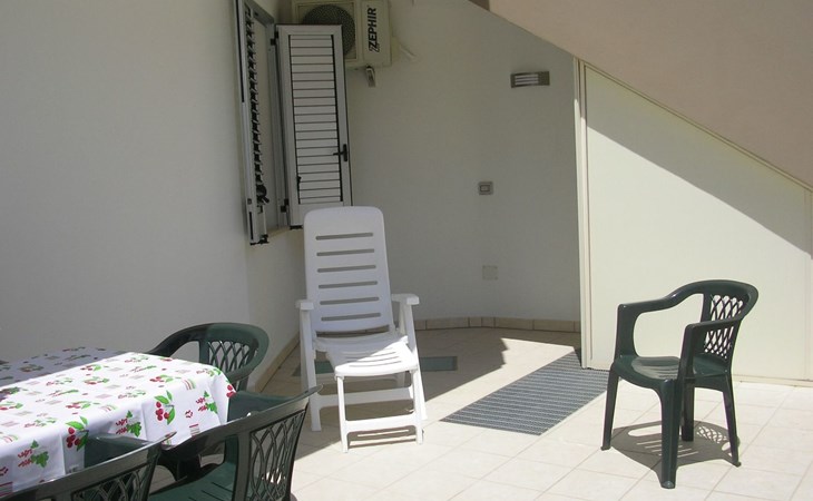 Comfortable flat for six people north of Gallipoli The modern villa is newly built and is located in Lido Conchiglie, north of Gallipoli. It is very bright and is only 150 metres from the sea, which is easily accessed by low cliffs. The lovely beach, equipped and free, stretches for 5 kilometres from Riva Bella to Lido Conchiglie and is only 500 metres from the house. Nearby there is also a hill planted with pines and shrubs, with footpaths for long walks in the green. About 3 kilometres away are the Rio Bo Fashion Club and the Latin Quarter discos as well as the Splash water park.Lecce, the Baroque city par excellence, is a 20-minute drive away. Lido Conchiglie is served by buses (Salento in Bus), which connect Lecce with the main seaside resorts on the Ionian coast (such as Porto Cesareo and Gallipoli) and the Adriatic coast (Torre dell'Orso, Santa Cesarea, Castro,...).The service runs from June to September. Within a radius of 300 metres there are: supermarket, pharmacy, church, bars, restaurants and pizzerias. There is a daily market and once a week there is a larger market.The villa consists of two bedrooms: one with a double bed and a bunk bed (sleeps 4), the other with two single beds, a living room/kitchen, a bathroom and a balcony at the back with laundry facilities. There is a terrace in front with table, armchairs and sunshade. There is an outside parking space enclosed by a gate. It is furnished with new furniture and has the following comforts: beds with wooden slats, air conditioning/heating in every room, outdoor shower with hot/cold water, washing machine, built-in safe, 32" satellite Led TV and free internet access although the signal is not very good. The live-in kitchen is equipped with a hob, electric oven, microwave, fridge, toaster and is furnished with armchairs.GUESTS, ON ARRIVAL, WILL FIND THE FACILITY DISINFECTED FOR THE CORONA VISUR. IT075070C200099445