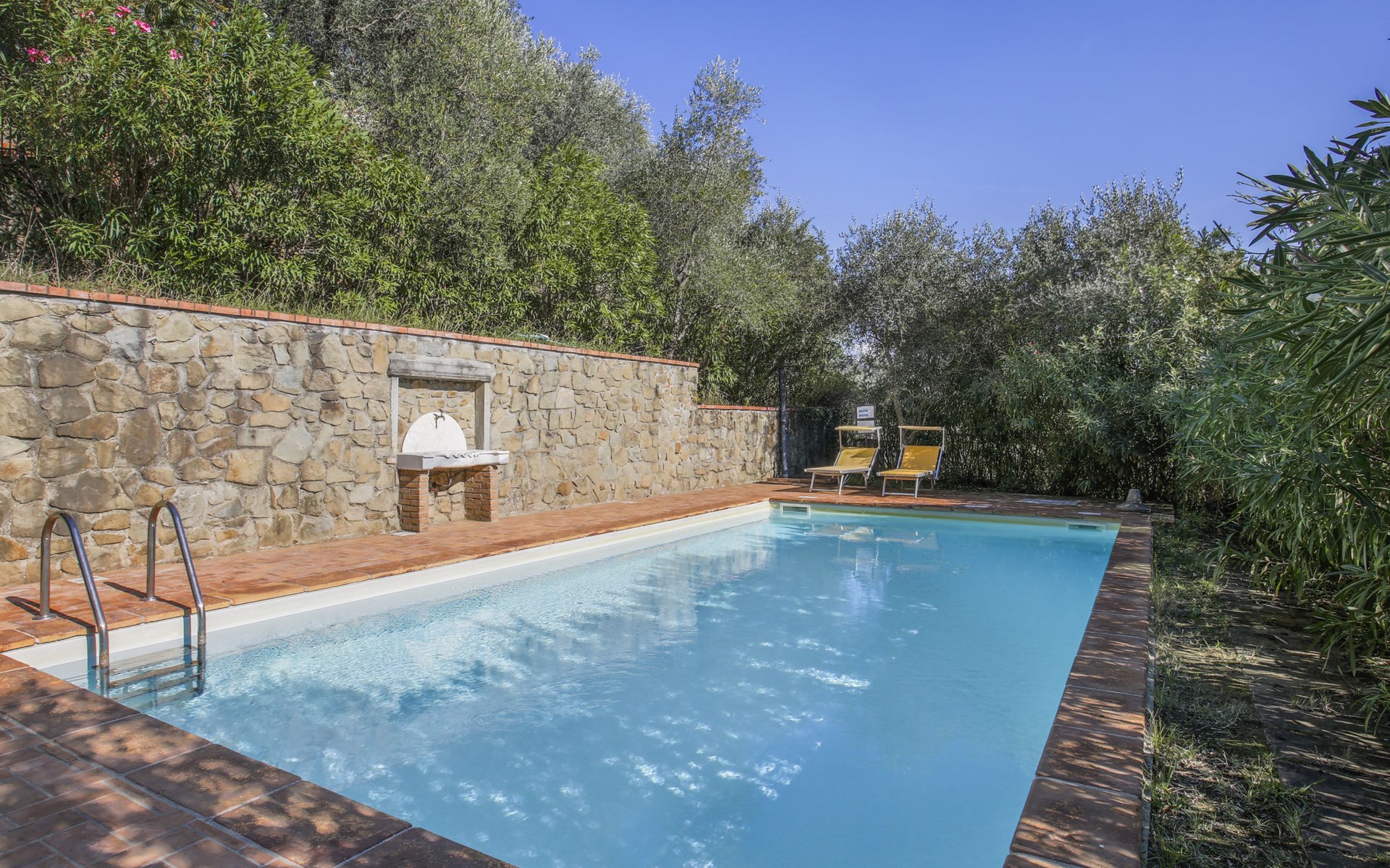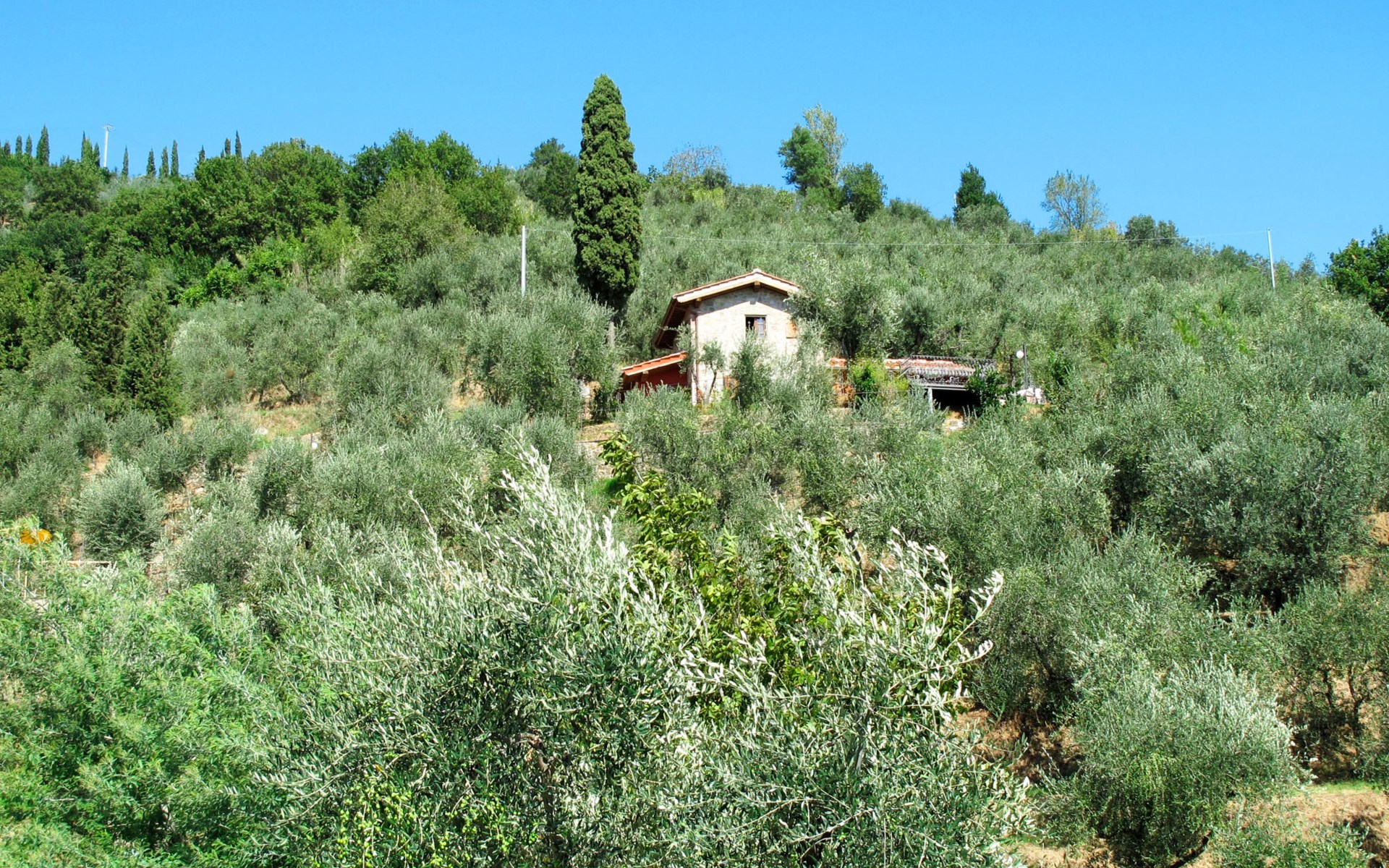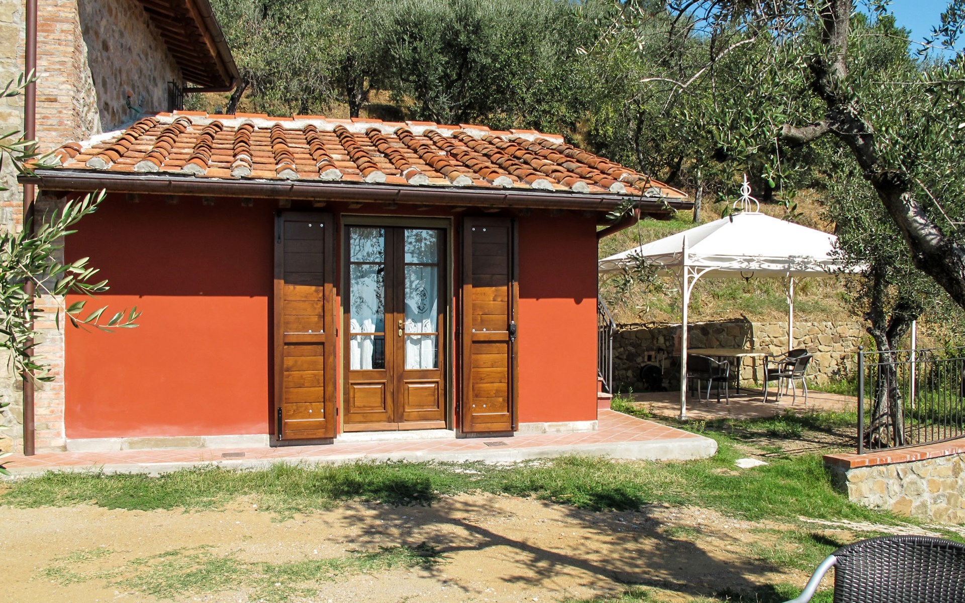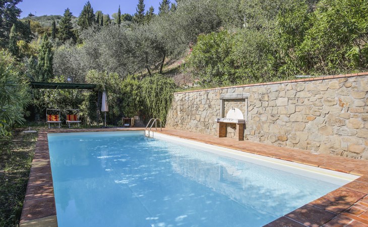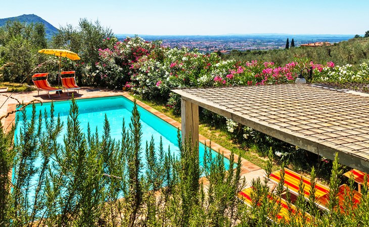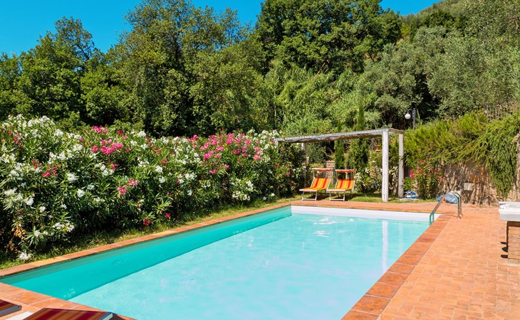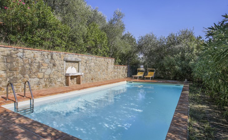 Mooi, rustieke, comfortabel landhuis "Iacopo", 150 m boven zeeniveau, omgeven door bomen en velden. 4 km van het centrum van Montecatini Terme, 30 km van het centrum van Lucca, 50 km van het centrum van Firenze, geïsoleerde, zonnige ligging tegen een helling, 55 km van zee, te midden van groen. Voor medegebruik: tafeltennis. Voor alleengebruik: groot tuin op verschillende niveaus, 2 ha met planten en bomen, wilde tuin, openluchtzwembad omheind (9 x 4 m, 110 - 150 cm diepte, seizoensgebonden beschikbaarheid: 25.Apr. - 15.Okt.). Buitendouche, patio, terras, tuinmeubelen, onderhoud zwembad door de eigenaar/tuinman. In het complex: sauna, stoombad, hot tub (alles extra). 400 m lange smalle toegangsweg (200 m onverharde weg). Parkeerplaats op het terrein. Levensmiddelenwinkel 600 m, supermarkt 1.5 km, restaurant 200 m, bushalte 3 km, treinstation "Montecatini Terme" 4 km, zandstrand "Lido di Camaiore" 55 km. Golfterrein (18 holes) 10 km. Lokale verkoop van streekproducten. Let op: De Spa bevindt zich in de boerderij op ongeveer 300 m. hoogte. Restaurant op de boerderij een dag per week geopend.