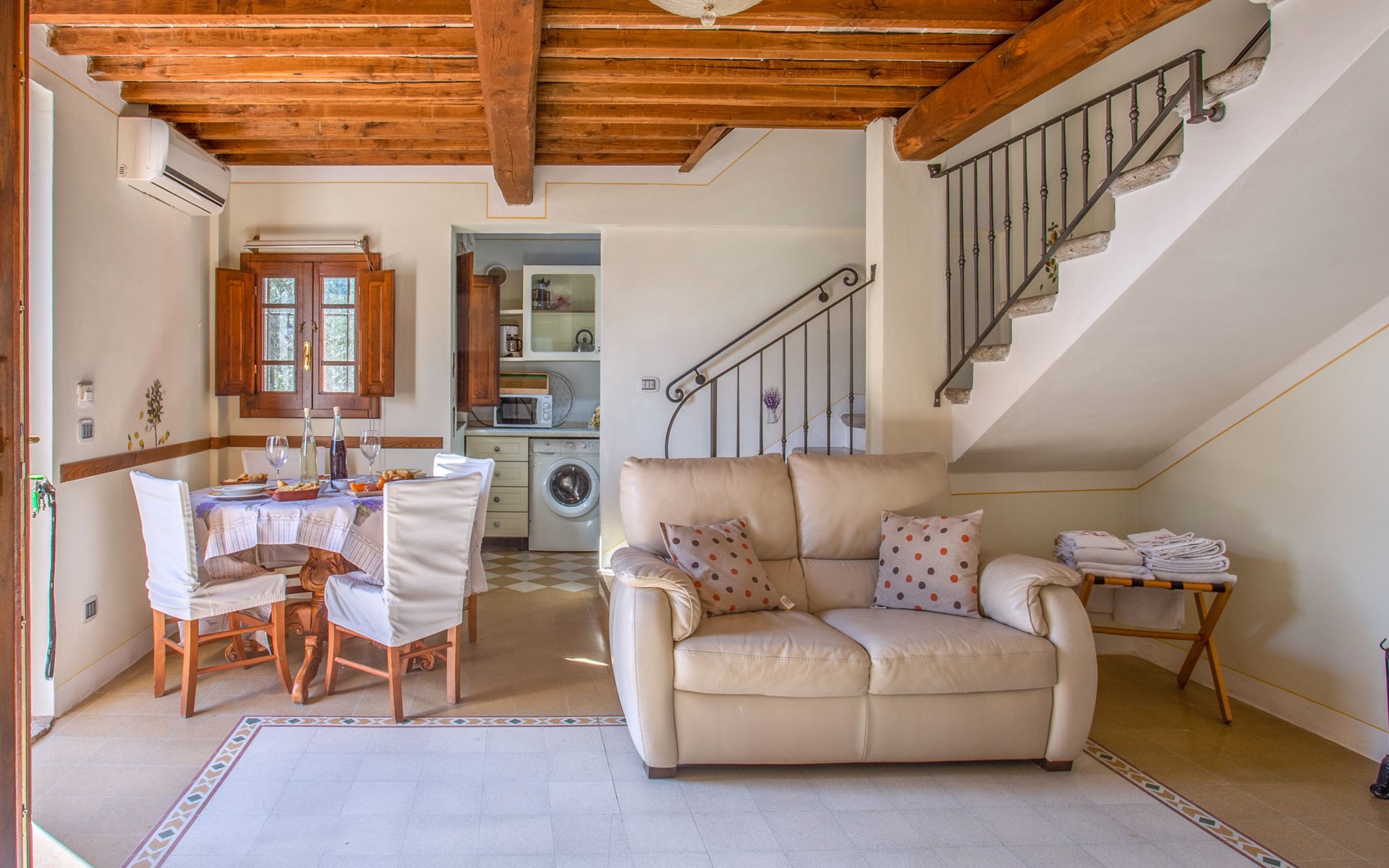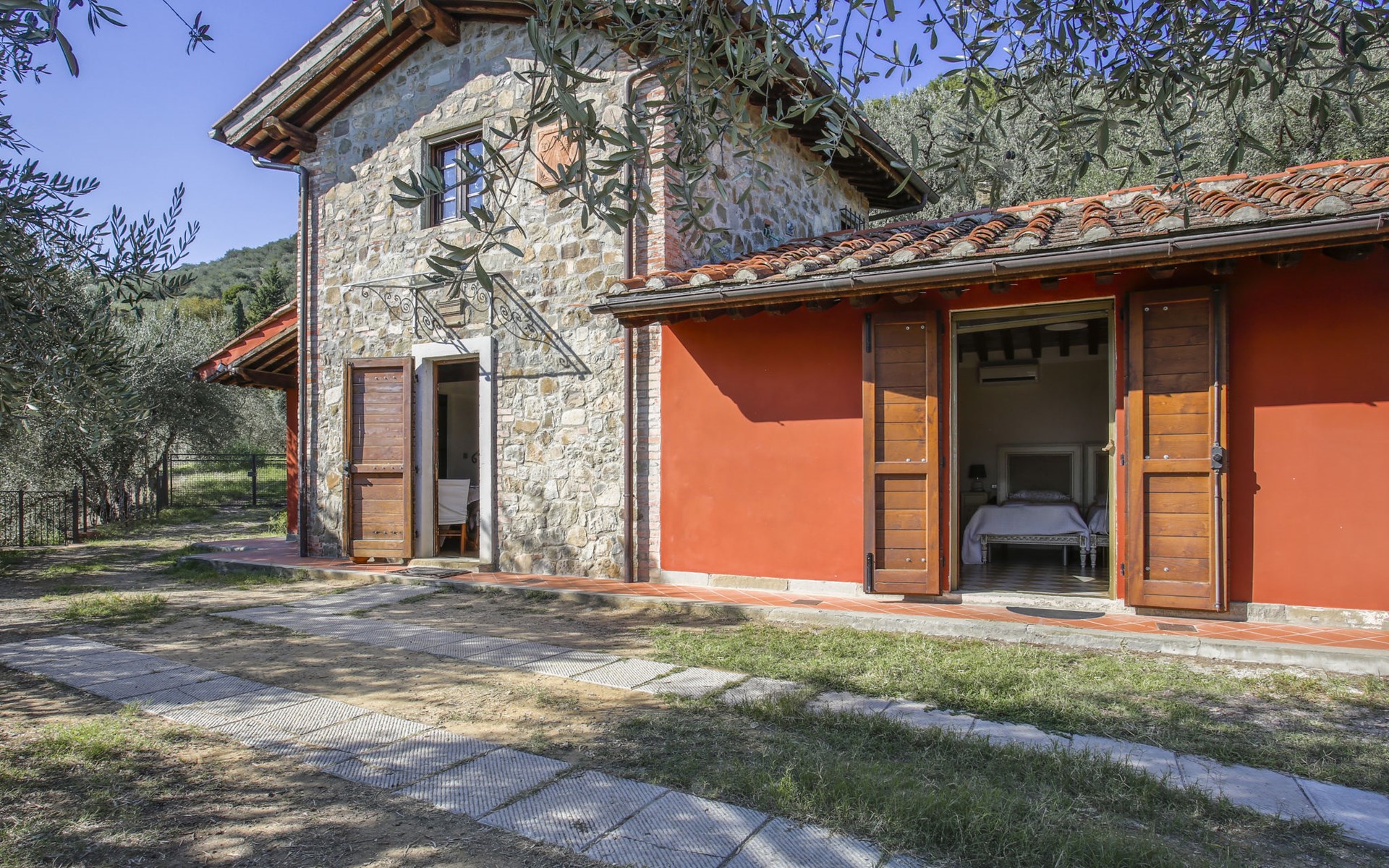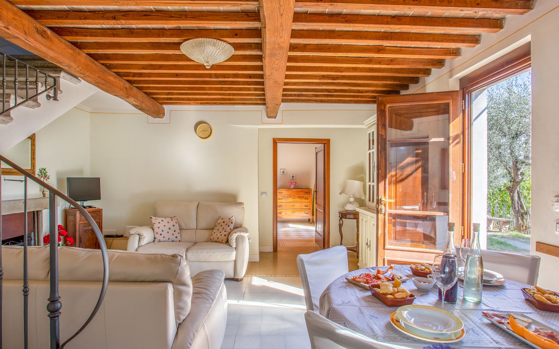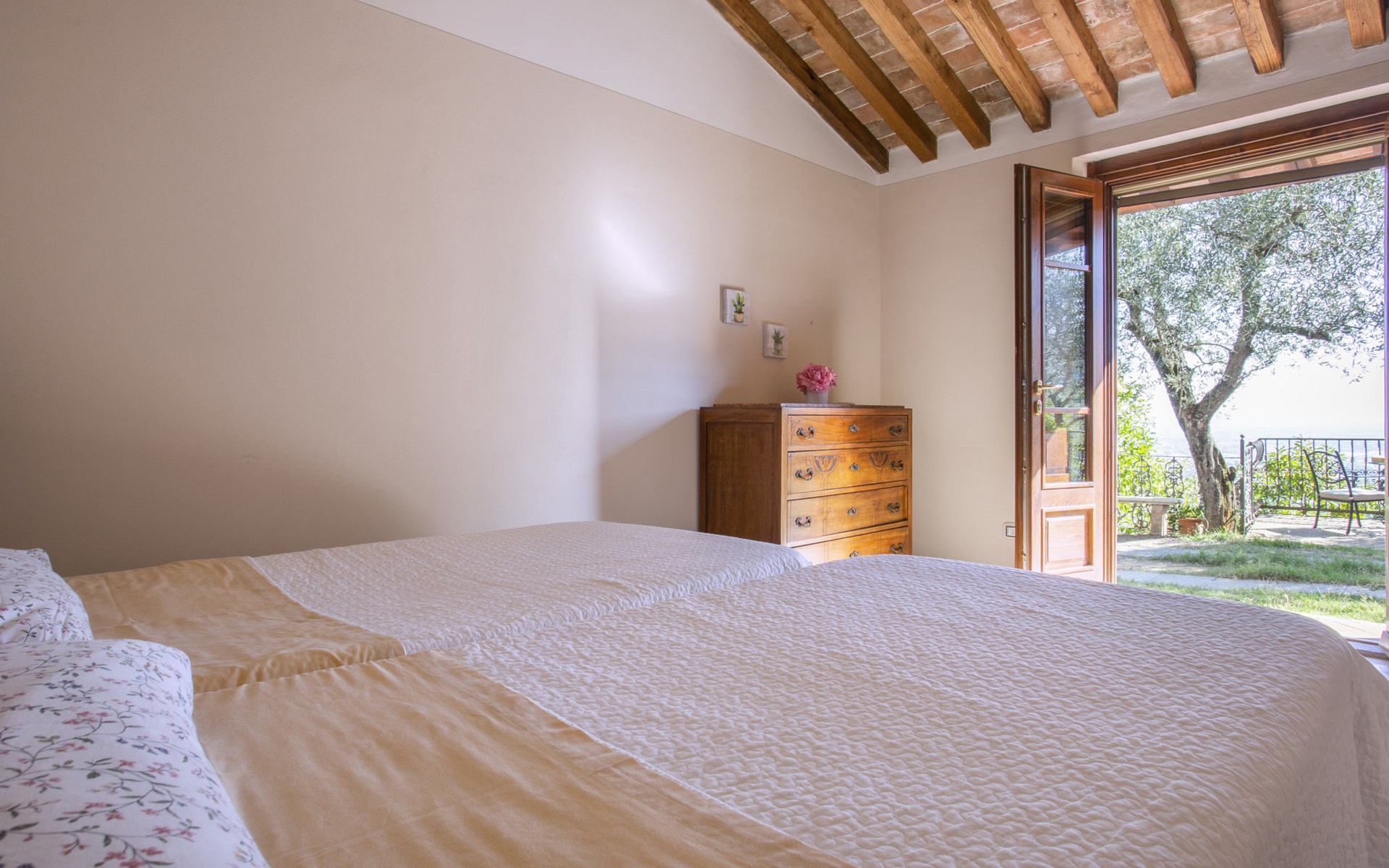 Mooi, rustieke, comfortabel landhuis "Iacopo", 150 m boven zeeniveau, omgeven door bomen en velden. 4 km van het centrum van Montecatini Terme, 30 km van het centrum van Lucca, 50 km van het centrum van Firenze, geïsoleerde, zonnige ligging tegen een helling, 55 km van zee, te midden van groen. Voor medegebruik: tafeltennis. Voor alleengebruik: groot tuin op verschillende niveaus, 2 ha met planten en bomen, wilde tuin, openluchtzwembad omheind (9 x 4 m, 110 - 150 cm diepte, seizoensgebonden beschikbaarheid: 25.Apr. - 15.Okt.). Buitendouche, patio, terras, tuinmeubelen, onderhoud zwembad door de eigenaar/tuinman. In het complex: sauna, stoombad, hot tub (alles extra). 400 m lange smalle toegangsweg (200 m onverharde weg). Parkeerplaats op het terrein. Levensmiddelenwinkel 600 m, supermarkt 1.5 km, restaurant 200 m, bushalte 3 km, treinstation "Montecatini Terme" 4 km, zandstrand "Lido di Camaiore" 55 km. Golfterrein (18 holes) 10 km. Lokale verkoop van streekproducten. Let op: De Spa bevindt zich in de boerderij op ongeveer 300 m. hoogte. Restaurant op de boerderij een dag per week geopend.