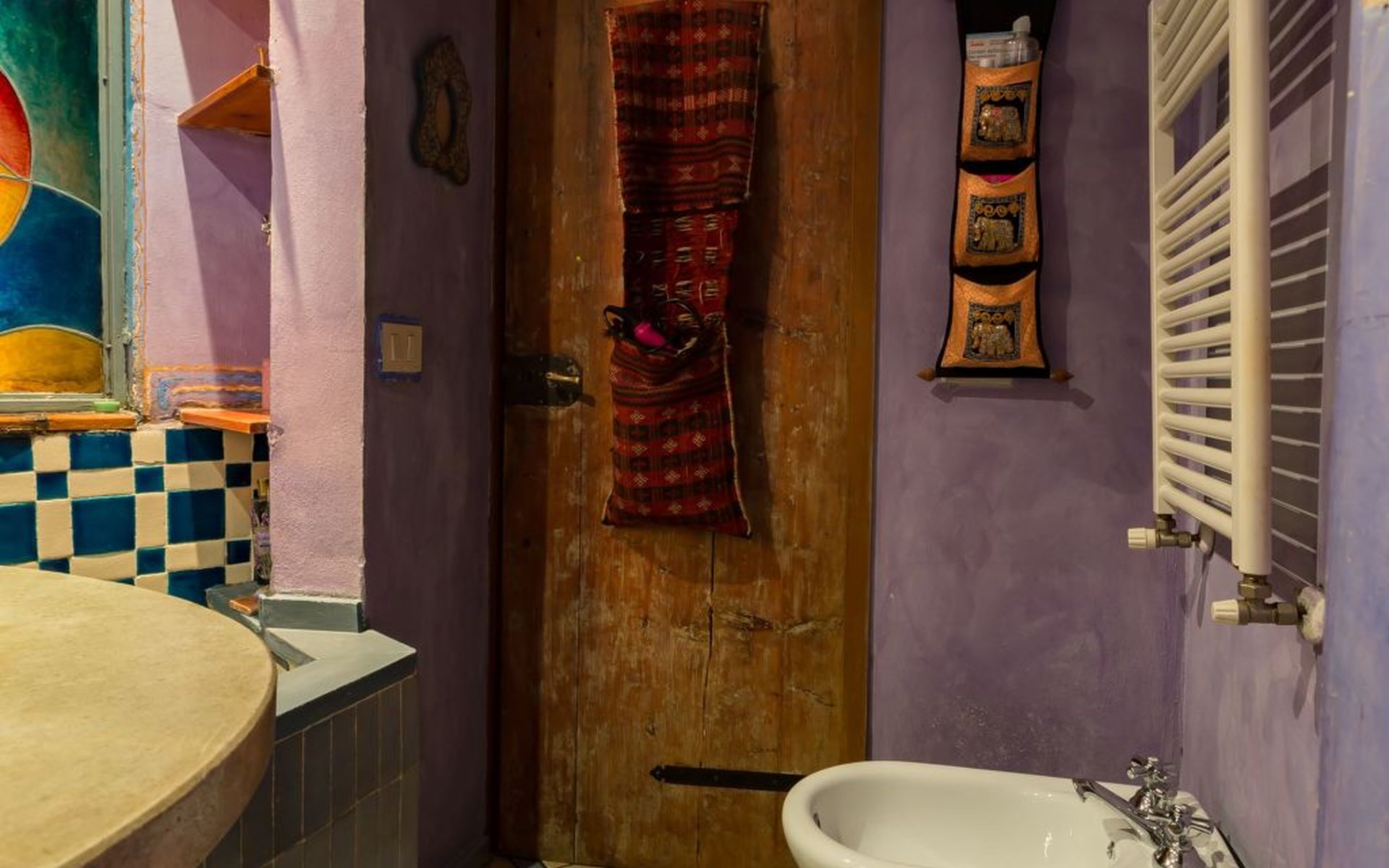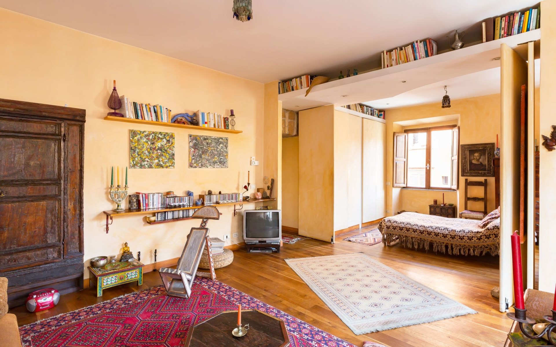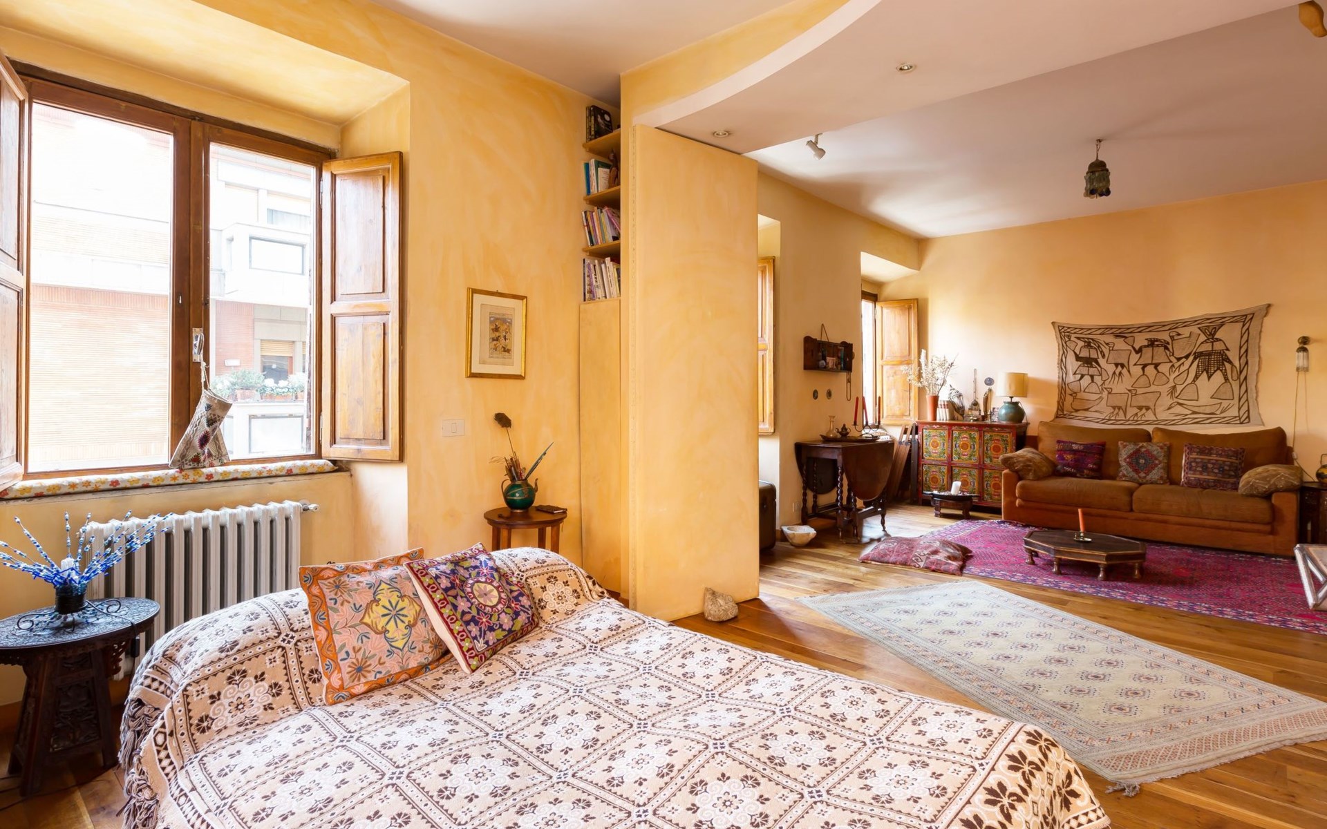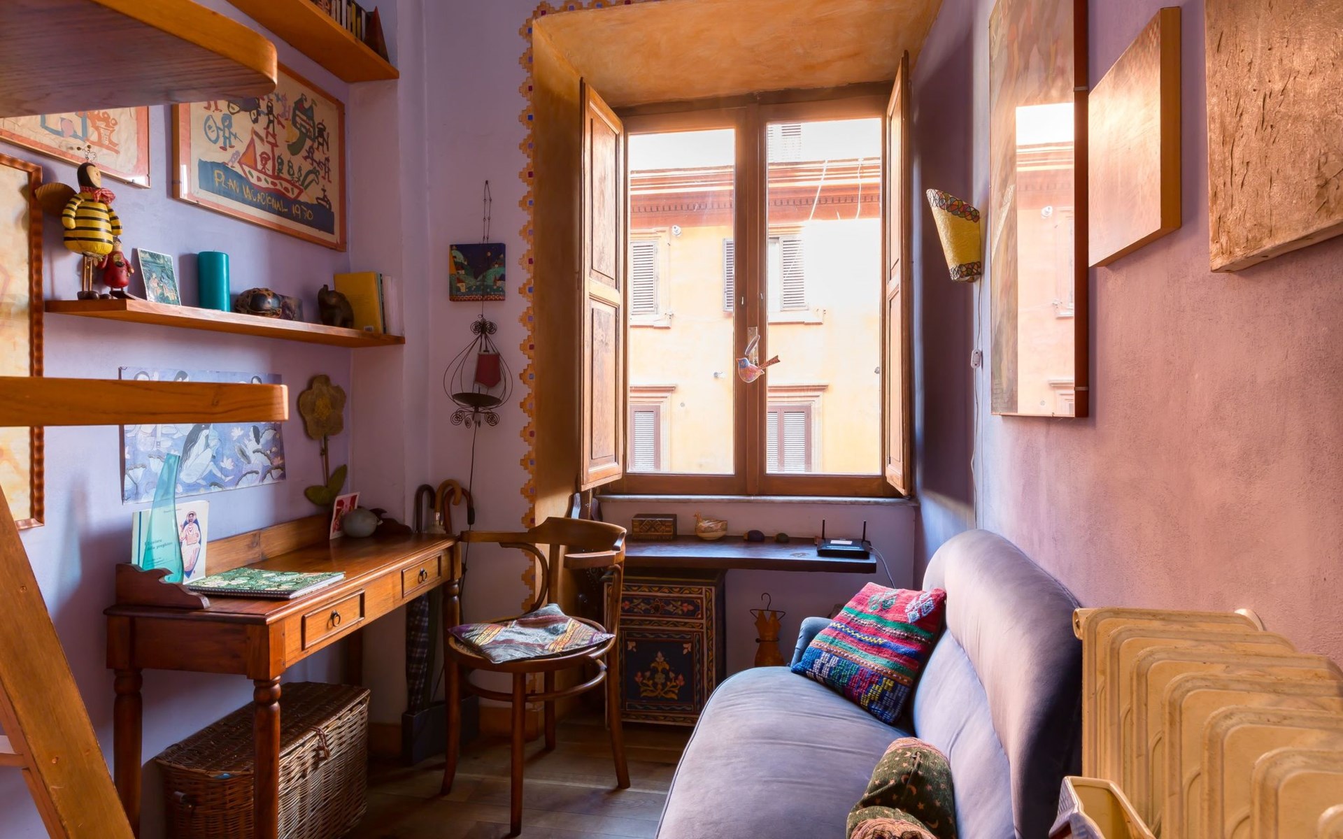 The Celio is a typical Roman quarter in the historic centre. The Colosseum is only a few metres away and is well connected by public transport. The Colosseum metro station is only 300 metres away.We are in the heart of history and you will not need public transport to reach Rome's main attractions.This bohemian-style house, with many windows, is very bright and has been built with natural, quality materials. It is embellished with works of art and antiques, oak parquet floors, books and much more. This charming, bright and cosy house is equipped with everything you need: towels, sheets, blankets, shower gel, shampoo, hairdryer, etc. The kitchen is equipped with everything you need for cooking, including some basic breakfast items (coffee, milk, tea, biscuits, etc.).You can walk to the most important historical sites, including the Spanish Steps, Piazza Navona, the Pantheon, Trastevere and more. The area is well served by public transport and offers numerous restaurants, bars, shops and supermarkets.Our house is very bright, built with natural materials, embellished with art objects and antiques and with a warm oak parquet floor. The bathroom is equipped with a Moroccan-style bathtub, perfect for relaxing after a day exploring the sights of Rome. The kitchen is equipped with everything you need for cooking, including a practical dishwasher. The bedroom has a double bed, the living room has a double sofa bed and the two rooms are separated by large wooden sliding doors. The single bed is located in another room above the library, accessible by a staircase. The total area is 75 square metres, just a few steps from the Colosseum. Washing machine and Wi-Fi internet access are included. IT058091C2ZMUYYQHS