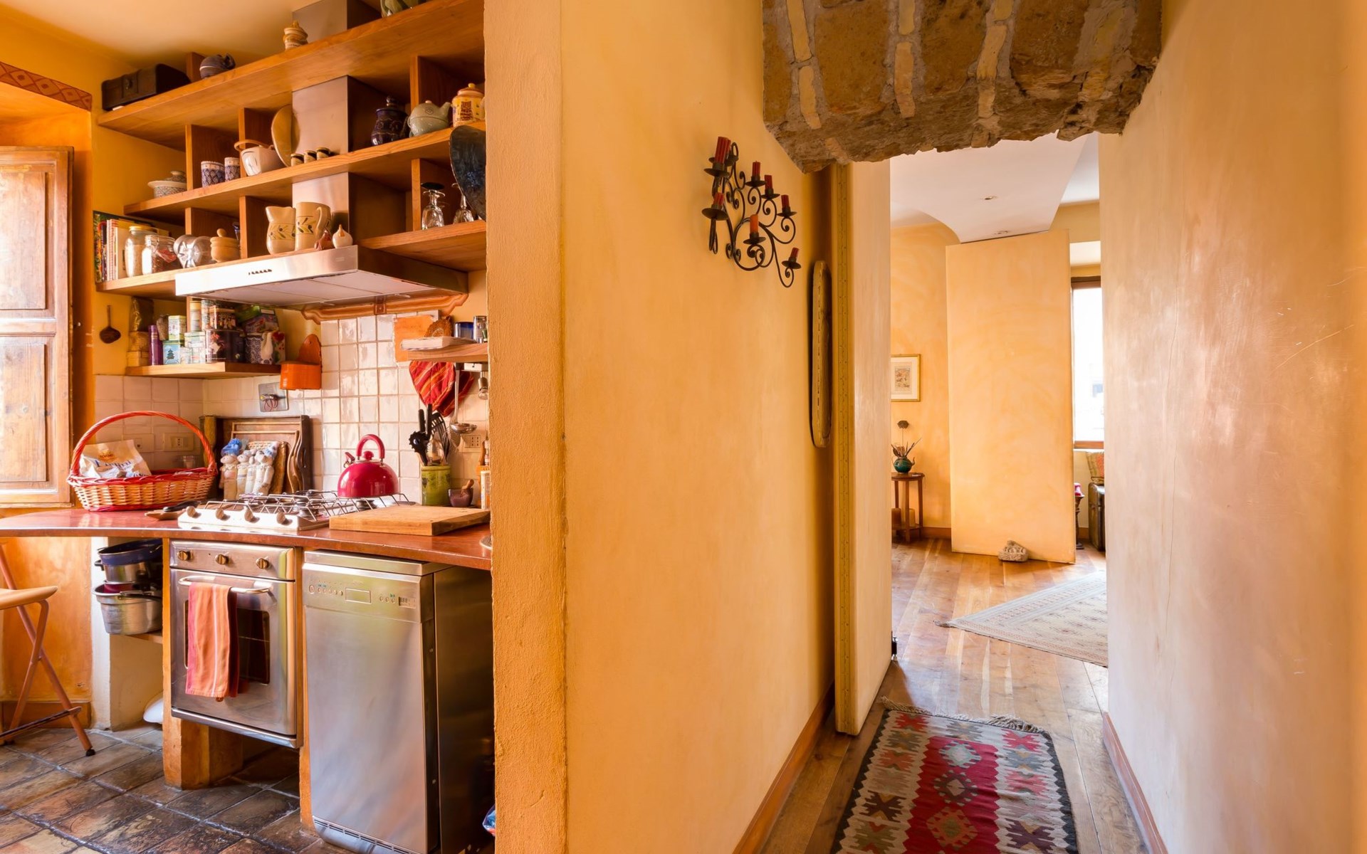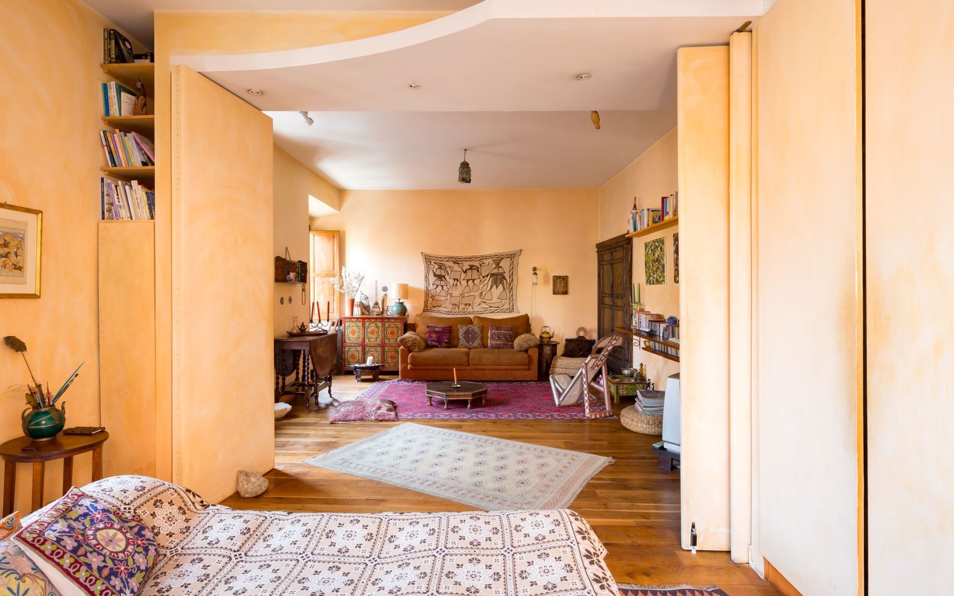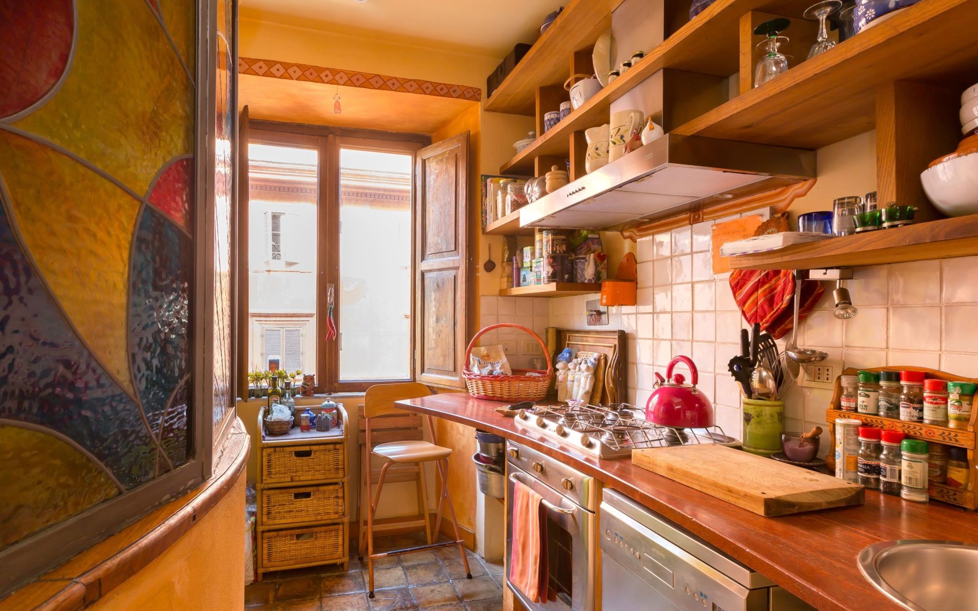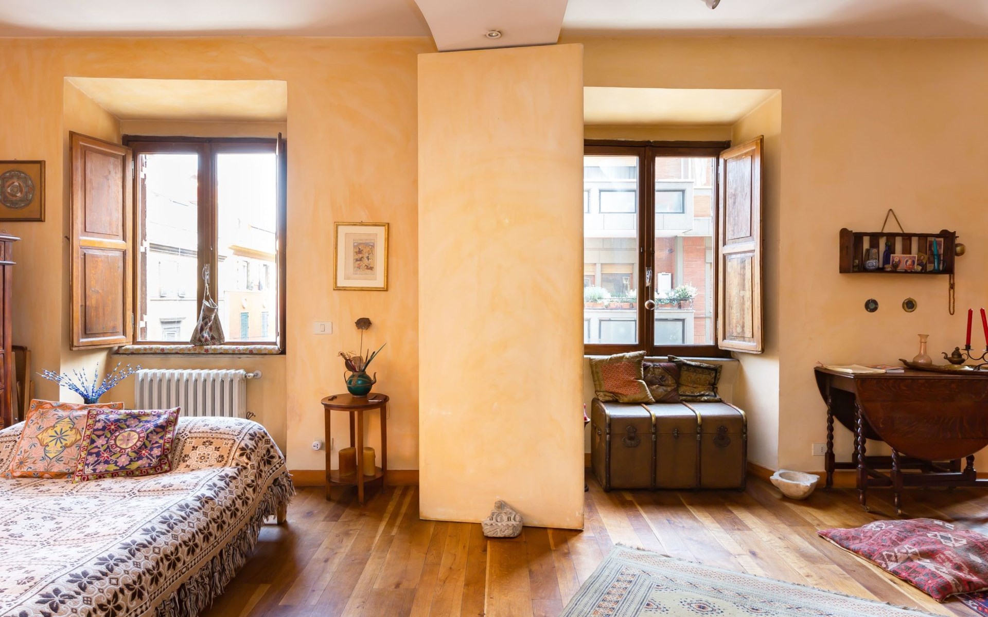 The Celio is a typical Roman quarter in the historic centre. The Colosseum is only a few metres away and is well connected by public transport. The Colosseum metro station is only 300 metres away.We are in the heart of history and you will not need public transport to reach Rome's main attractions.This bohemian-style house, with many windows, is very bright and has been built with natural, quality materials. It is embellished with works of art and antiques, oak parquet floors, books and much more. This charming, bright and cosy house is equipped with everything you need: towels, sheets, blankets, shower gel, shampoo, hairdryer, etc. The kitchen is equipped with everything you need for cooking, including some basic breakfast items (coffee, milk, tea, biscuits, etc.).You can walk to the most important historical sites, including the Spanish Steps, Piazza Navona, the Pantheon, Trastevere and more. The area is well served by public transport and offers numerous restaurants, bars, shops and supermarkets.Our house is very bright, built with natural materials, embellished with art objects and antiques and with a warm oak parquet floor. The bathroom is equipped with a Moroccan-style bathtub, perfect for relaxing after a day exploring the sights of Rome. The kitchen is equipped with everything you need for cooking, including a practical dishwasher. The bedroom has a double bed, the living room has a double sofa bed and the two rooms are separated by large wooden sliding doors. The single bed is located in another room above the library, accessible by a staircase. The total area is 75 square metres, just a few steps from the Colosseum. Washing machine and Wi-Fi internet access are included. IT058091C2ZMUYYQHS
