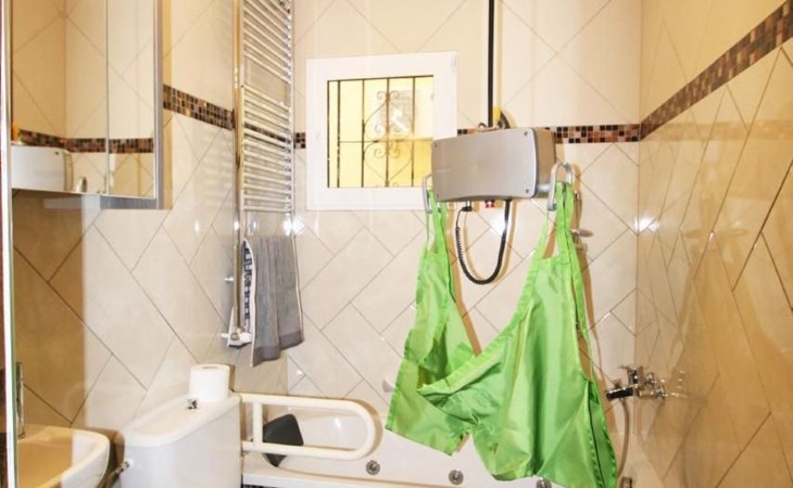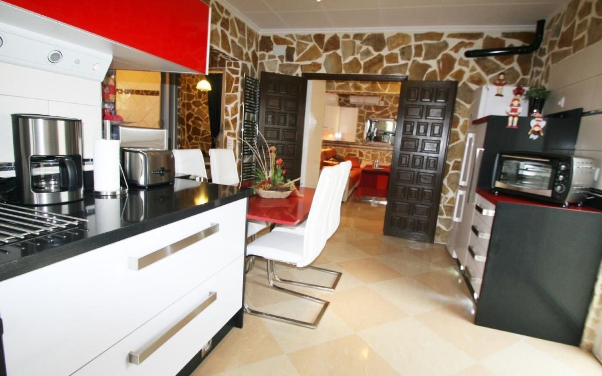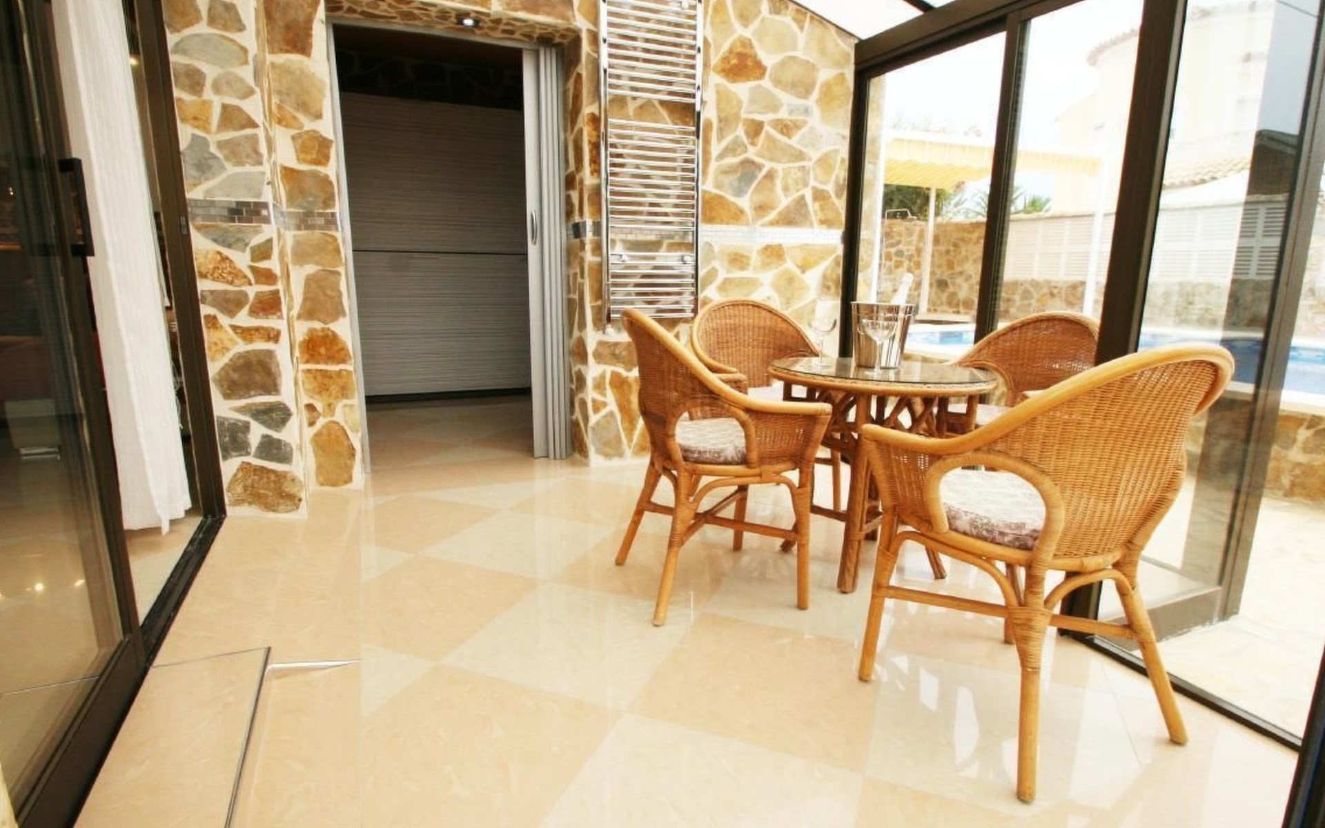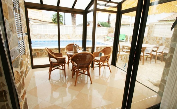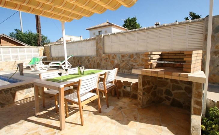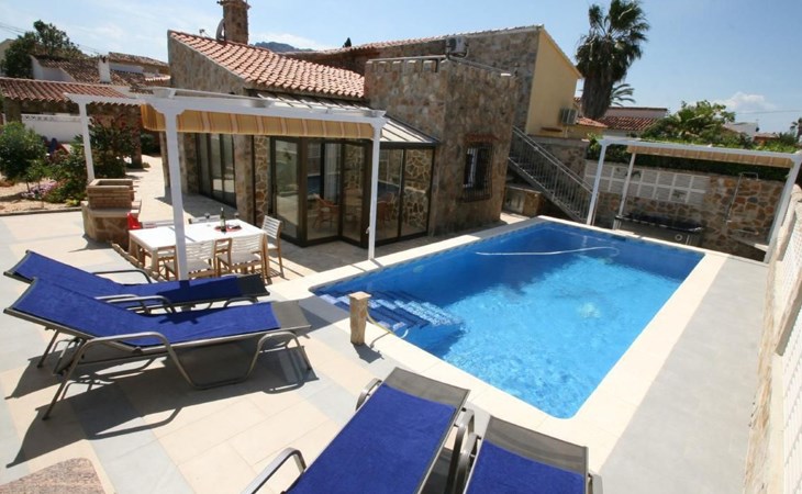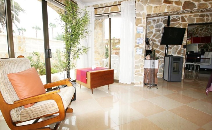 Maximaal 2 huisdieren/honden toegestaan. This sun-drenched Villa Sonnenschein showcases the unique natural stone style. This villa is located in a purely residential area in Els Poblets, Costa Blanca. The beach road, "Las Marinas" is known for its 15 km length and numerous different beaches. Here you will find the impressive, dreamlike sandy beaches to the natural beaches, stone beach and pebble beach. Everything is in the immediate vicinity. It is only 700 m to the centre of Els Poblets and 8 km to the centre of the district town of Dénia. There you will find the harbour with the ferry to the Balearic Islands and many other excursion possibilities. Els Poblets is located halfway between the airports of Alicante and Valencia (approx. 100 km). You can simply choose the cheaper airport.You can also easily reach us by car via the AP7 motorway exit Ondara/Dénia. This is probably safer than travelling by plane during the pandemic. Many guests use this option.SurroundingsHire facilities: boat hire, bicycle hireSports facilities in the area: fishing, basketball, football pitch, golf course, canoeing, climbing, mountain biking, paragliding, cycling tours, riding arena / riding facilities, rowing, sailing, sports centre, squash, surfing, diving, tennis, water skiingPlease note that the deposit must be transferred to the service provider prior to arrival. The refund will be made no later than 14 days after the end of your holiday!SurroundingsHire facilities: boat hire, bicycle hireSports facilities in the area : Fishing, Basketball, Mountaineering, Football pitch, Golf course, Canoeing, Climbing, Mountain biking, Paragliding, Cycling tours, Riding stables (guests), Riding arena / riding facilities, Rowing, Sailing, Sports centre, Squash, Surfing, Diving, Tennis, Water skiingGarden and outdoor facilitiesLeisure facilities at the property : Swimming pool, Whirlpool additionally bookableGarden equipment : garden shed, garden furniture available, barbecue, pavilionThis sun-drenched villa EG Sonnenschein showcases the unique natural stone style. This villa has everything you would expect from a first-class holiday home, such as 3D HD TV, various air conditioning converters and a pellet stove for cosy hours in the sofa area. The high-quality designer high-gloss kitchen with its top-of-the-range equipment invites you to cook and bake so that you can spoil yourself and your loved ones. It has a gas hob and electric oven. The spacious living area with its large sofa area invites you to linger. The beautiful conservatory will also provide you with wonderful, relaxing hours. The holiday home has a private saltwater pool. The entire complex is wheelchair accessible and suitable for senior citizens. Many aids such as a care bed and hoist can also be booked, making the holiday home attractive for those with more severe disabilities. Special features: The natural stones used with the large climate converters regulate a pleasant, even room climate and the special beds will give you restful nights. You will certainly not want to miss this special interaction afterwards.Brief descriptionMiscellaneous : Non-smoking houseShort description 1Number of kitchens : 1Other rooms : Winter gardenLiving room 1Other living room equipment : Modern, open-plan living area with comfort sofa with an extra bed integrated (Italian system (160 * 190)) the sofa can be converted into a bed for two people, underfloor heating and gas central heating, as well as a pellet stove and an air conditioning converter. Of course, this villa also offers a 3D HD satellite TV and 5.1 surround system with a 3D DVD player.Bedroom 1Other bedroom furnishings: bedroom with underfloor heating, gas central heating and air conditioning converter, a four-door built-in wardrobe, two high-quality beds and mattresses (two electric care beds can be booked). HD satellite flat screen, iron with ironing board, hoover, safe, mirror and chest of drawers;Bedroom 2Other bedroom furnishings: bedroom with underfloor heating, gas central heating and air conditioning converter, a two-door built-in wardrobe and an HD satellite flatscreen, bedside cabinet. Cot can be booked additionally.Bedroom 3Other bedroom furnishings: Bedroom with underfloor heating, gas central heating and air conditioning converter as well as a wardrobe bunk bed. A wardrobe and games are available.Kitchen 1Other kitchen equipment : Modern, open high-gloss kitchen with underfloor heating and gas central heating and a dining room table, four-burner ceramic hob (lowered, wheelchair accessible), two-burner gas hob (lowered, wheelchair accessible), sink (wheelchair accessible), microwave 3 in 1, oven with 3 heating systems, fridge, freezer, grill, dishwasher, washing machine with tumble dryer, Senseo and coffee machine, egg boiler, toaster, 3 in 1 (waffle iron, sandwich maker and steaker), raclette with hot stone, orange squeezer, food processor, kettle, chocolate fondue and much more.SurroundingsExcursions: In the immediate vicinity there are (wheelchair accessible) excursion destinations; Consum 0.6 km, Lidl supermarket 4 km, Aldi supermarket 8 km or 9 km, hospital 7 km, indoor and outdoor swimming pools in the village and up to 4 km in the surrounding area, Denia district town 8 km and harbour town with ferries to Ibiza, Mallorca, etc. Calpe Tower and city walls of the old town, old church Iglesia Vieja, Princes' Promenade, Penón Nature Park, walking mosaic archaeological museum, Benidorm Palace beach promenade. Successful evening entertainment with live music and various shows, as well as flamenco. Animal and safari parks, Mundomar with many animal shows including dolphins, orcas etc. Terra Mitica theme park with water parks and many other attractions, Cueva de las Calaveras The impressive stalactite cave can also be visited and travelled through with a wheelchair using wooden ramps. An extremely interesting experience.Location description : Els Poblets is a Spanish municipality in the Comunidad Valen