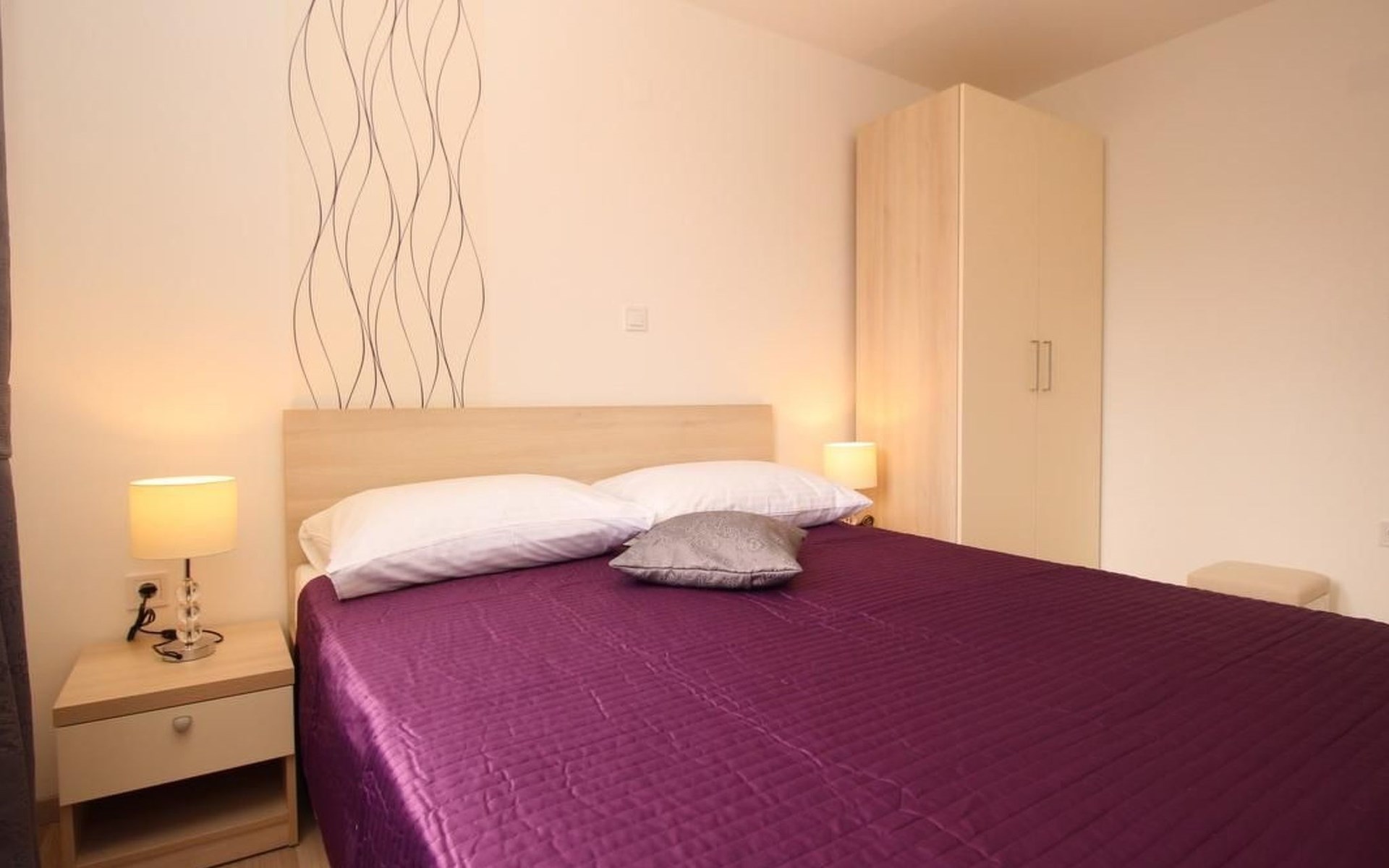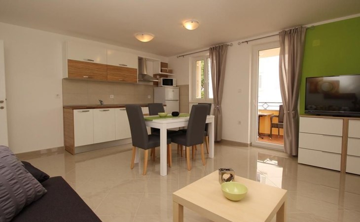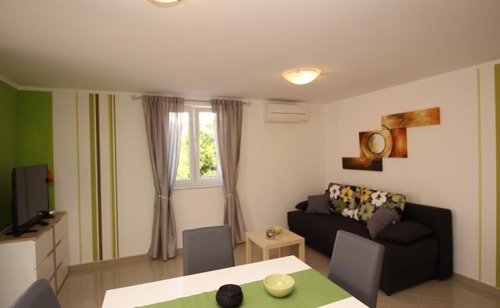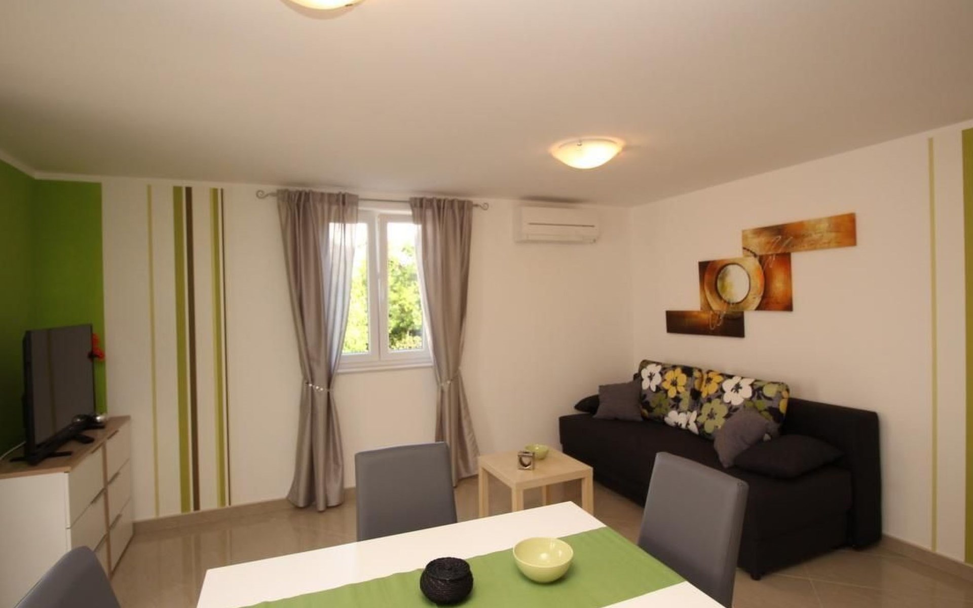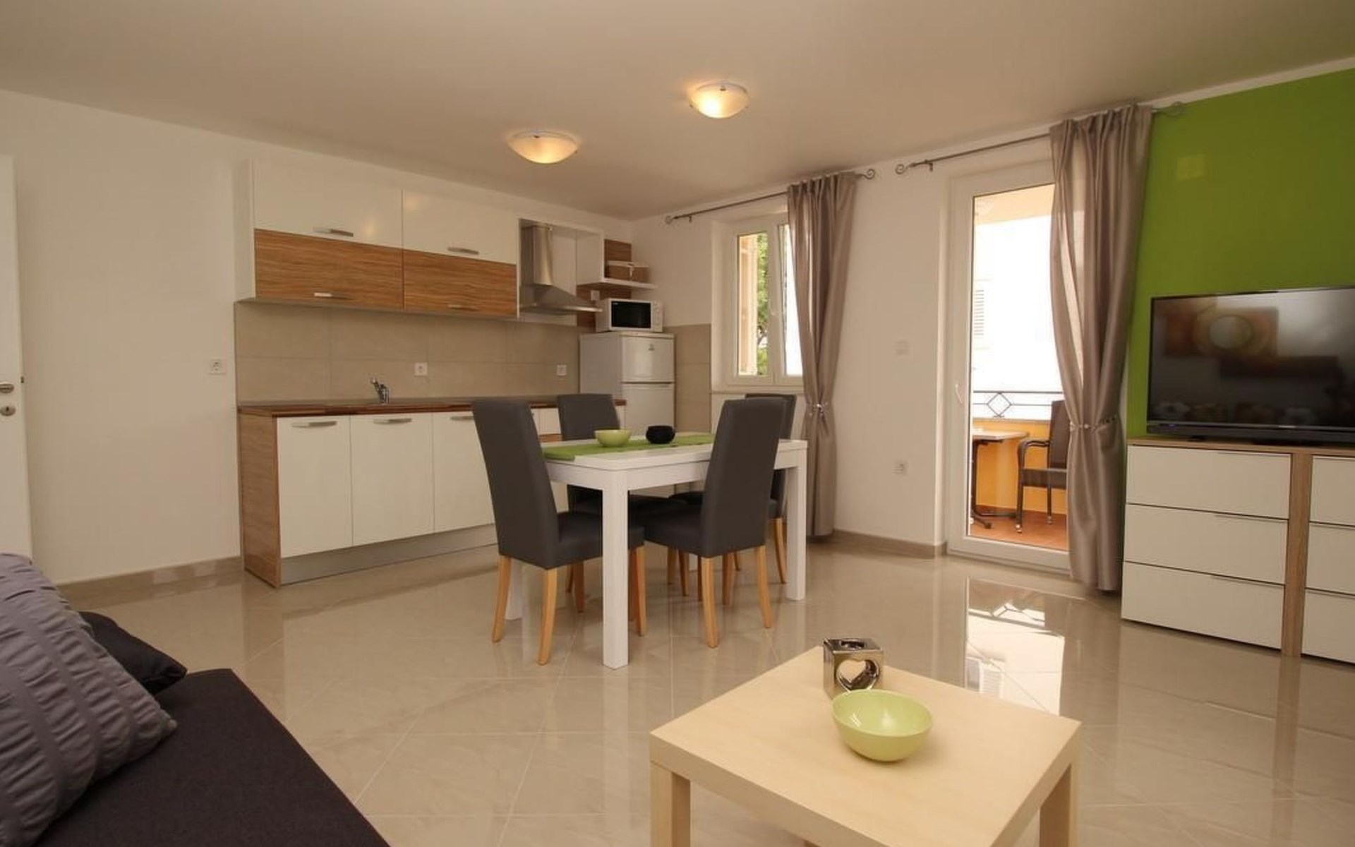 No. of persons: 2-4 Places: 60 m2 (1st floor) Equipment holiday flat: Bedroom : double room , double bed Living area : living room, dining room and kitchen are one unit; two additional sleeping possibilities on a sofa bed; dining table and seating for all persons; tiled kitchen : kitchenette, crockery, cooking pots, cutlery, etc. are available, tea towels available, electric cooker, number of hotplates: 4, fridge with freezer compartment, coffee machine, microwave, dishwasher, kettle Bathroom : bathroom with WC, with shower.dish towels available, electric cooker, number of hotplates: 4, fridge with freezer compartment, coffee machine, microwave, dishwasher, kettle Bathroom : bathroom with toilet, with shower Special features of the accommodation unit : air conditioning, air conditioning included in price: No. 1, satellite TV, safe, bed linen (change weekly, for longer stays every 2 weeks), towels available (1 large, 1 small/person and week), no pets, internet (WLAN), free use, The prices include the following additional costs: change of bed linen (weekly), final cleaning as well as the consumption of electricity, gas and water. Information balcony : private balcony, partly covered, table and chairs for the balcony are available, balcony surface: 5sqm Outdoor area : car park General information about the holiday home : swimming pool, pool/heated