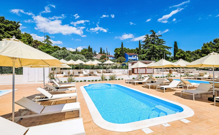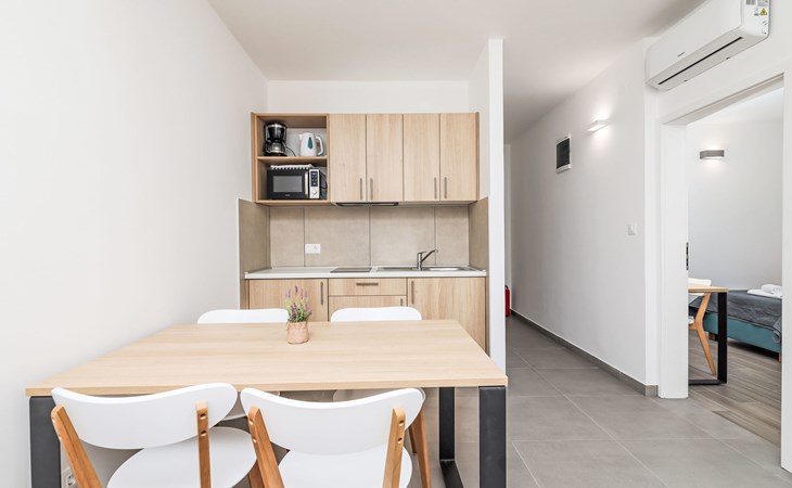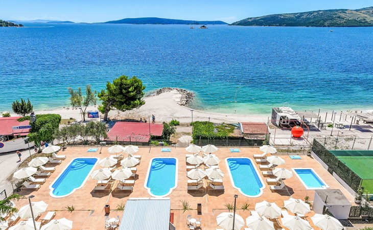 Vakantiecomplex "Medena". In de wijk Seget Donji, 3 km van het centrum van Trogir, 30 km van het centrum van Split, direct aan zee, direct aan het strand. Voor medegebruik: terrein met planten en bomen, 3 zwembaden (31 m2, 140 cm diepte, seizoensgebonden beschikbaarheid: 01.Apr. - 01.Nov.) met trap. Kinderzwembad, buitendouche, tennisbaan (extra), basketbal (extra), kinderspeelplaats. In het complex: receptie, restaurant, internetaansluiting, wasserette. Beschikbaar: fietsen (extra). Ontbijt volpension half pension op verzoek op aanvraag (extra). Luchthaventransfer (extra). Parkeerplaats (extra) op het terrein. Bushalte 650 m, kiezelstrand "Medena". Het objekt is geschikt voor 2 volwassenen + 2 kinderen. Vliegveld 8 km van het huis. De afgebeelde foto is slechts een voorbeeld. 1 slaapbank voor twee personen in de woon/eetkamer, deze is geschikt voor 2 kinderen tot 12 jaar oud.