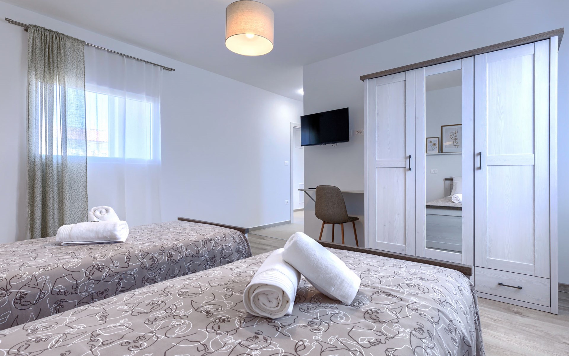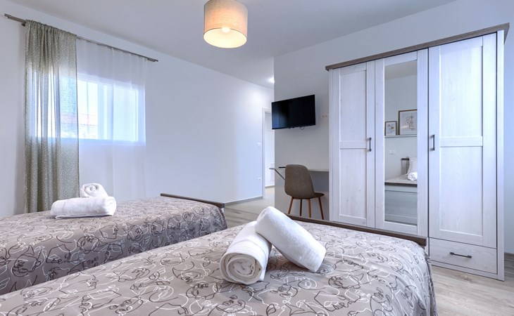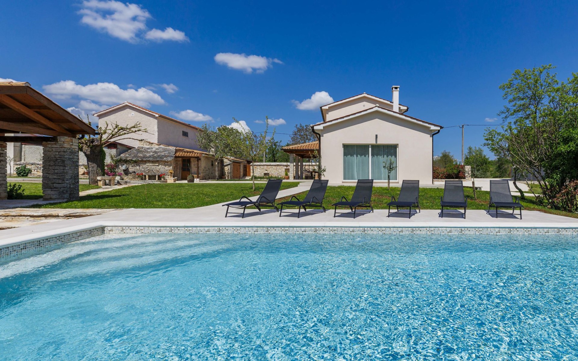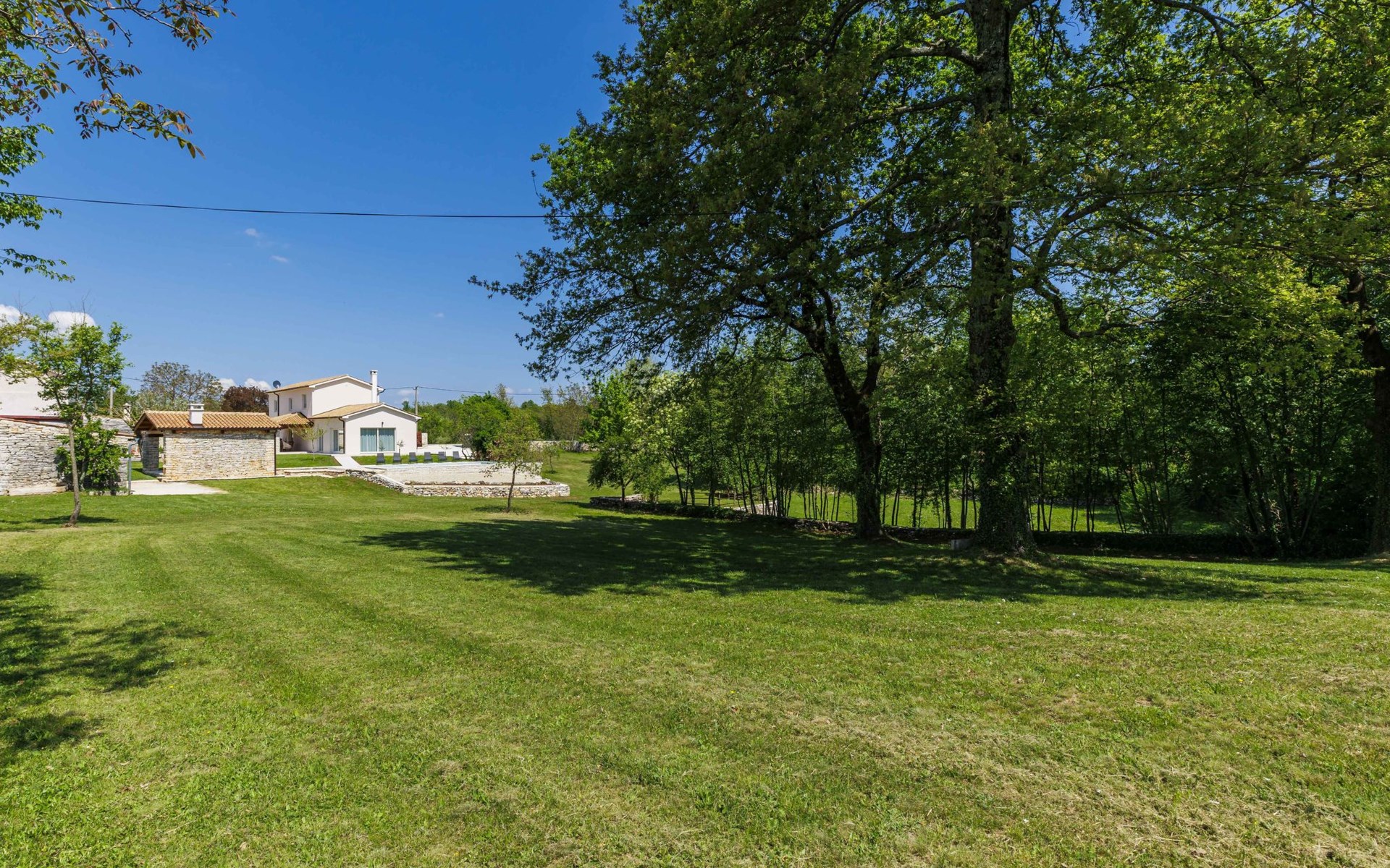 Moderne, luxueuze villa "Jolanda", van 2 verdiepingen, bouwjaar 2024. In het gehucht Pamići, 4 km van het centrum van Žminj, 25 km van zee, 25 km van het strand. Voor alleengebruik: terrein 7.000 m2 met gazon en bomen, openluchtzwembad hoekig (9 x 4 m, 36 m2, 140 cm diepte, seizoensgebonden beschikbaarheid: 01.Mei. - 01.Okt.) met trap. Buitendouche, barbecue, grill, kinderspeelplaats (schommel). In het huis: internetaansluiting, wasmachine. Parkeerplaats (voor 4 auto's) bij het huis op het terrein. Winkel 2.8 km, supermarkt 2.8 km, restaurant 3 km, bushalte 3.9 km, kiezelstrand 25 km. Attracties in de buurt: adventure park 20 km, zip line 15 km.