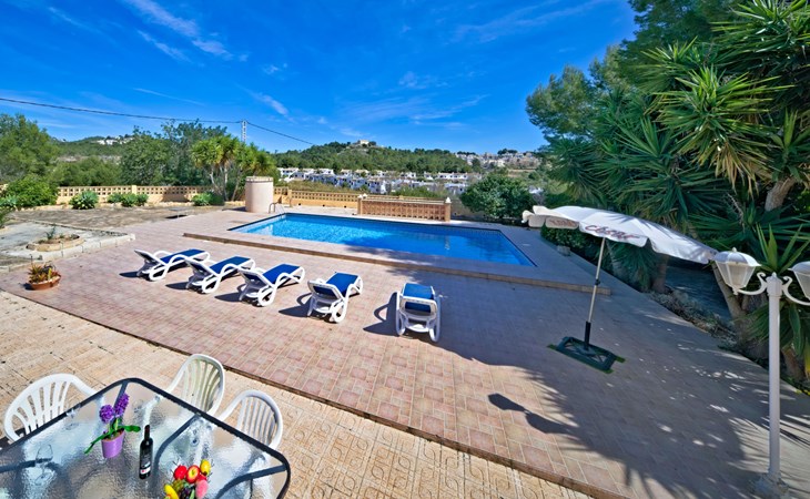 Garduix: Villa "Consuelo". In de wijk Garduix, 2 km van het centrum van Calpe, 25 km van het centrum van Benidorm, rustige, zonnige ligging, 2.2 km van zee, 2.2 km van het strand. Voor alleengebruik: terrein 1.500 m2 (omheind), tuin met planten, openluchtzwembad hoekig (10 x 5 m, seizoensgebonden beschikbaarheid: 01.Jan. - 31.Dec.). WC bij het zwembad, buitendouche, tennisbaan, grill, parkeerplaats op het terrein. Winkel 1.8 km, supermarkt 1.8 km, restaurant 1.5 km, bushalte 1.6 km, zandstrand "Playa El Arenal" 2.2 km. Attracties in de buurt: Parque Acuatico Aqualandia 25 km, Parque de Atracciones Terra Mitica 35 km. Wandelgebied Parque Natural Penon de Ifach 4 km.