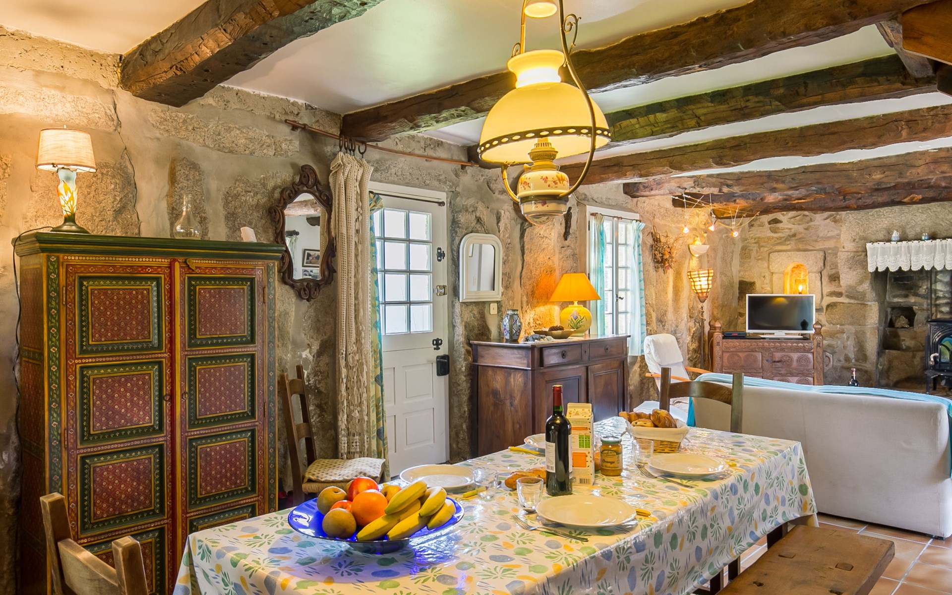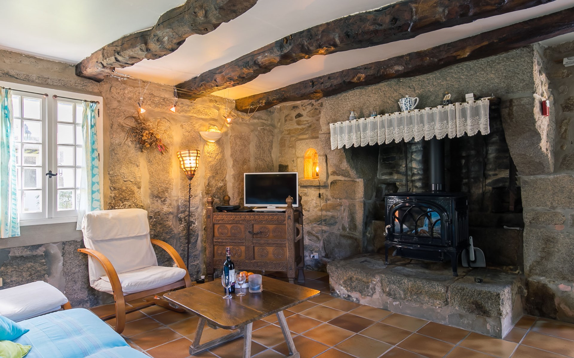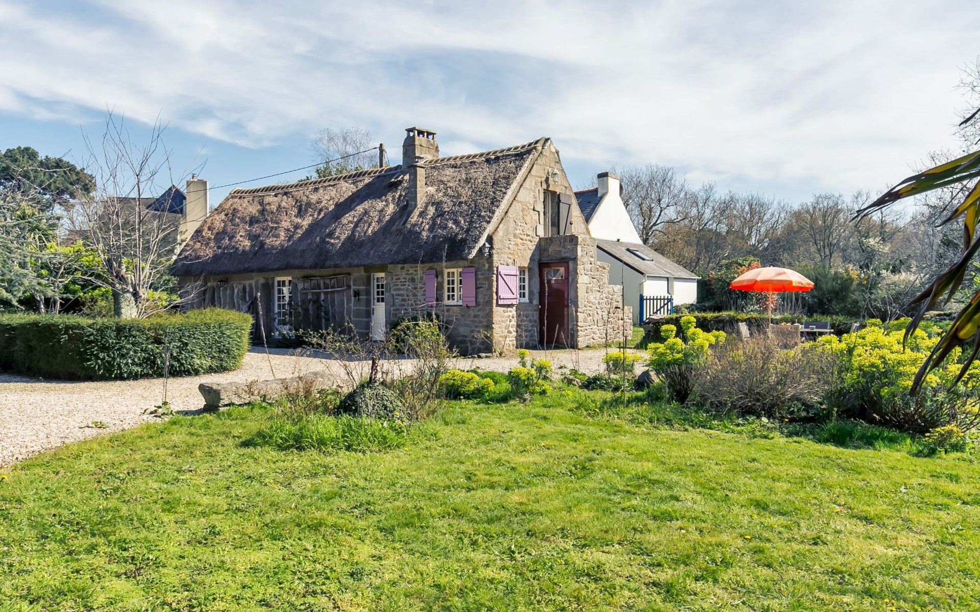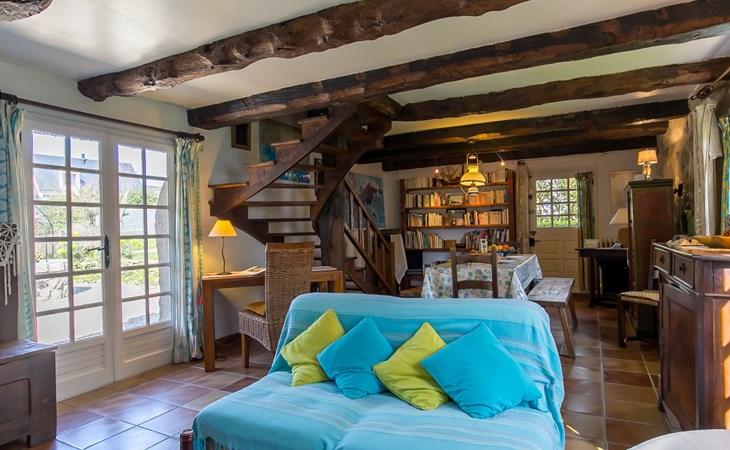 Tregunc: Oude, historische cottage "Chaumiere Natelliou", van 2 verdiepingen. 2 km van het centrum van Tregunc, rustige ligging in een woonwijk, 2 km van zee, 2 km van het strand, aan een doodlopende weg. Voor alleengebruik: groot tuin met gazon en bomen. Terras, tuinmeubelen, barbecue, parkeerplaats op het terrein. Winkel 2 km, levensmiddelenwinkel 2 km, supermarkt 1.8 km, winkelcentrum 7 km, restaurant 2 km, bar 2 km, bakkerij 2.2 km, café 2 km, bushalte 1 km, zandstrand "Plage de Pouldohan" 2.4 km, overdekt zwembad 3.8 km, thermaalbad "Thalasso Concarneau" 7 km. Jachthaven 6.4 km, golfterrein (18 holes) 14 km, surfschool 3.6 km, zeilschool 3.6 km, wandelroutes 1 km vanaf het huis. Attracties in de buurt: Pont-Aven, Ville des Peintres 11 km, Concarneau, Ville Close 6.6 km, Pointe de Trévignon 8 km, Chaumières de Kerascoët, Névez 12 km, Quimper 31 km. Auto noodzakelijk.
