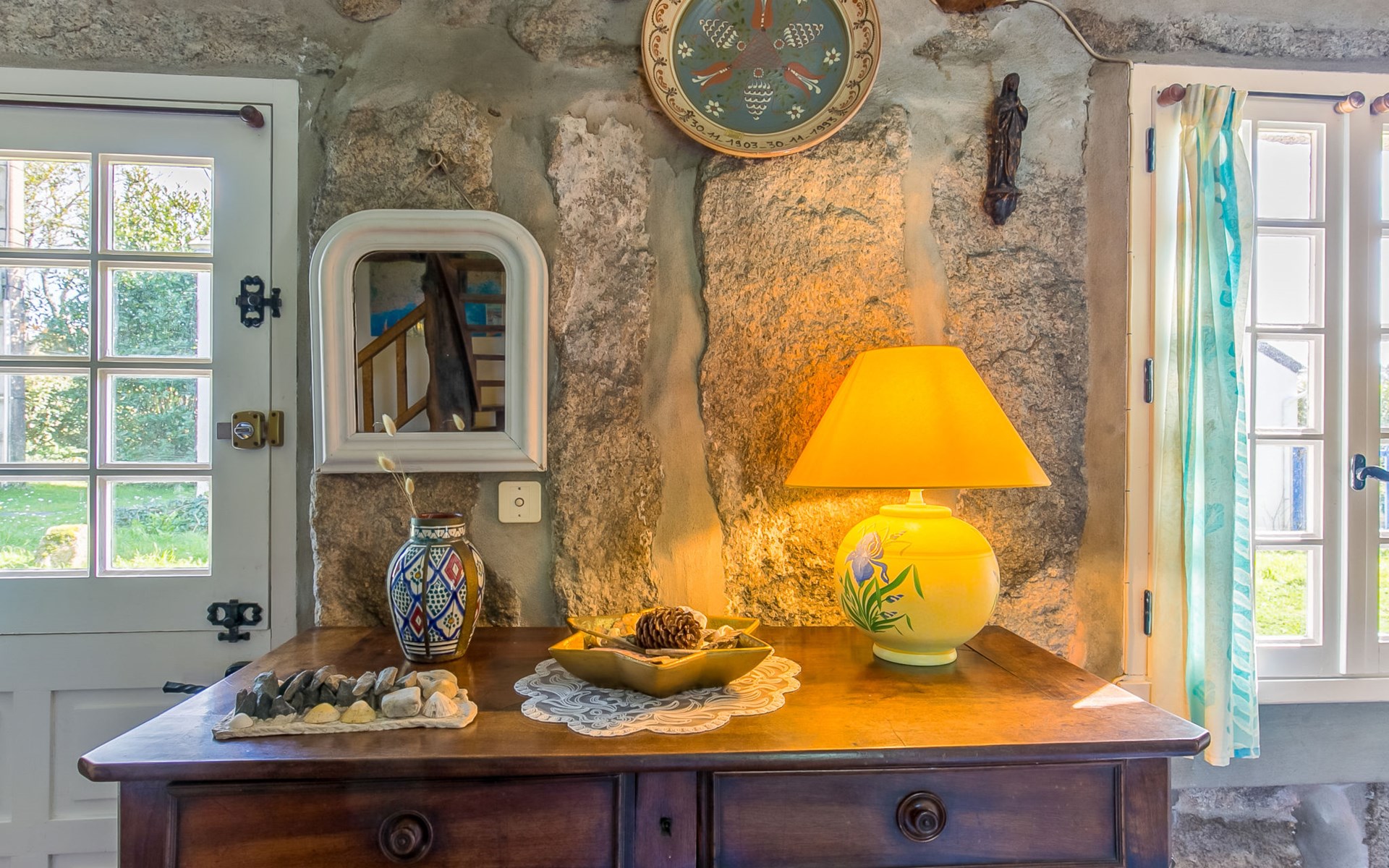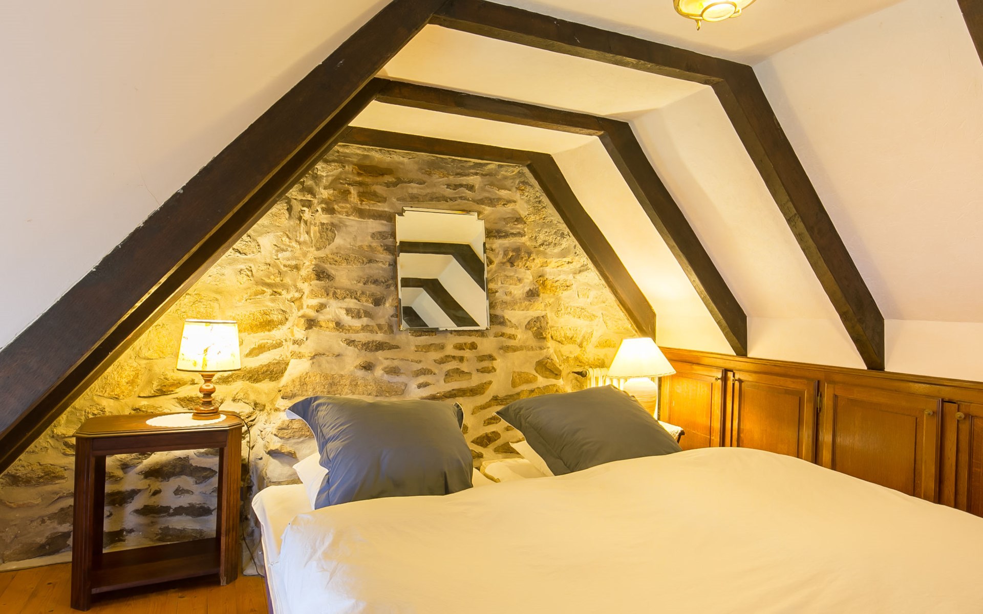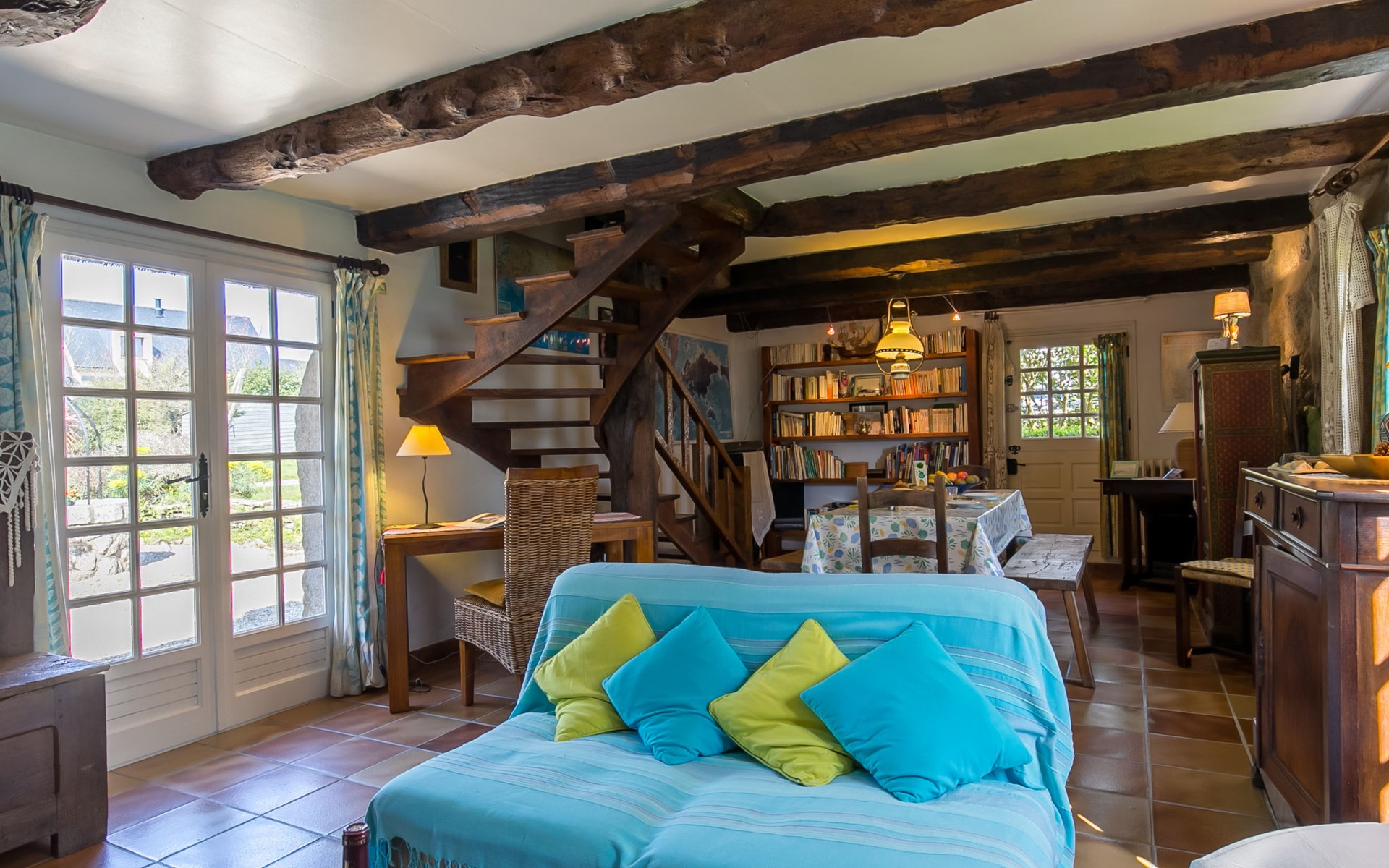 Tregunc: Oude, historische cottage "Chaumiere Natelliou", van 2 verdiepingen. 2 km van het centrum van Tregunc, rustige ligging in een woonwijk, 2 km van zee, 2 km van het strand, aan een doodlopende weg. Voor alleengebruik: groot tuin met gazon en bomen. Terras, tuinmeubelen, barbecue, parkeerplaats op het terrein. Winkel 2 km, levensmiddelenwinkel 2 km, supermarkt 1.8 km, winkelcentrum 7 km, restaurant 2 km, bar 2 km, bakkerij 2.2 km, café 2 km, bushalte 1 km, zandstrand "Plage de Pouldohan" 2.4 km, overdekt zwembad 3.8 km, thermaalbad "Thalasso Concarneau" 7 km. Jachthaven 6.4 km, golfterrein (18 holes) 14 km, surfschool 3.6 km, zeilschool 3.6 km, wandelroutes 1 km vanaf het huis. Attracties in de buurt: Pont-Aven, Ville des Peintres 11 km, Concarneau, Ville Close 6.6 km, Pointe de Trévignon 8 km, Chaumières de Kerascoët, Névez 12 km, Quimper 31 km. Auto noodzakelijk.