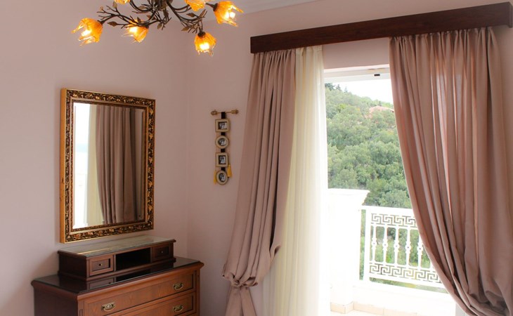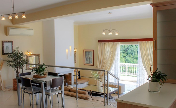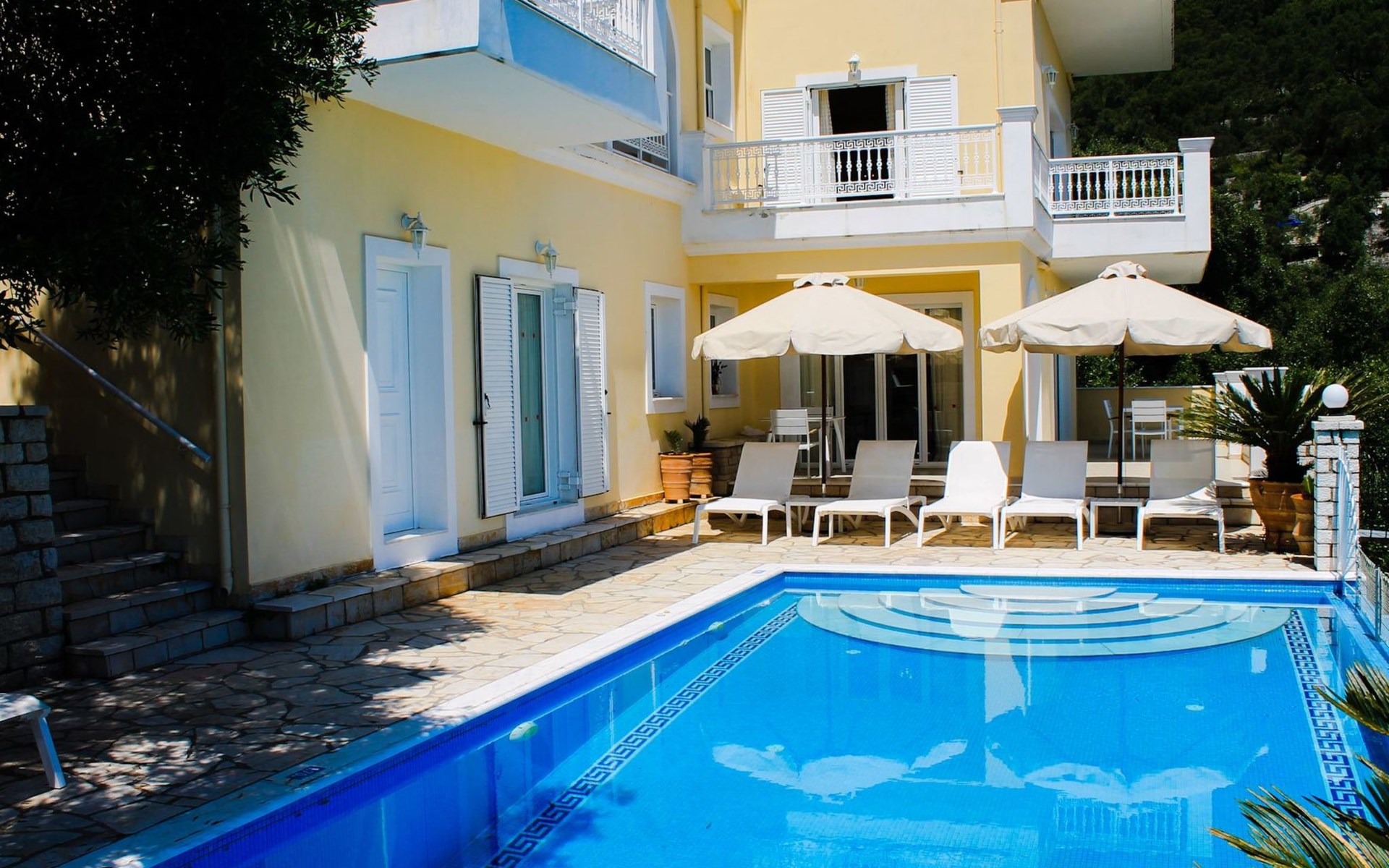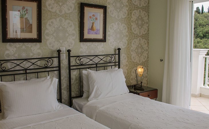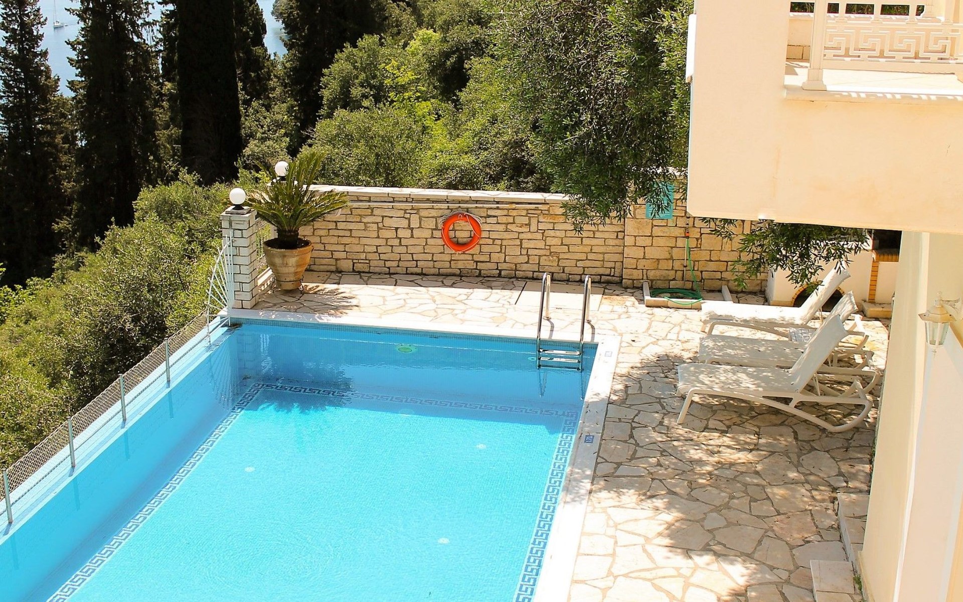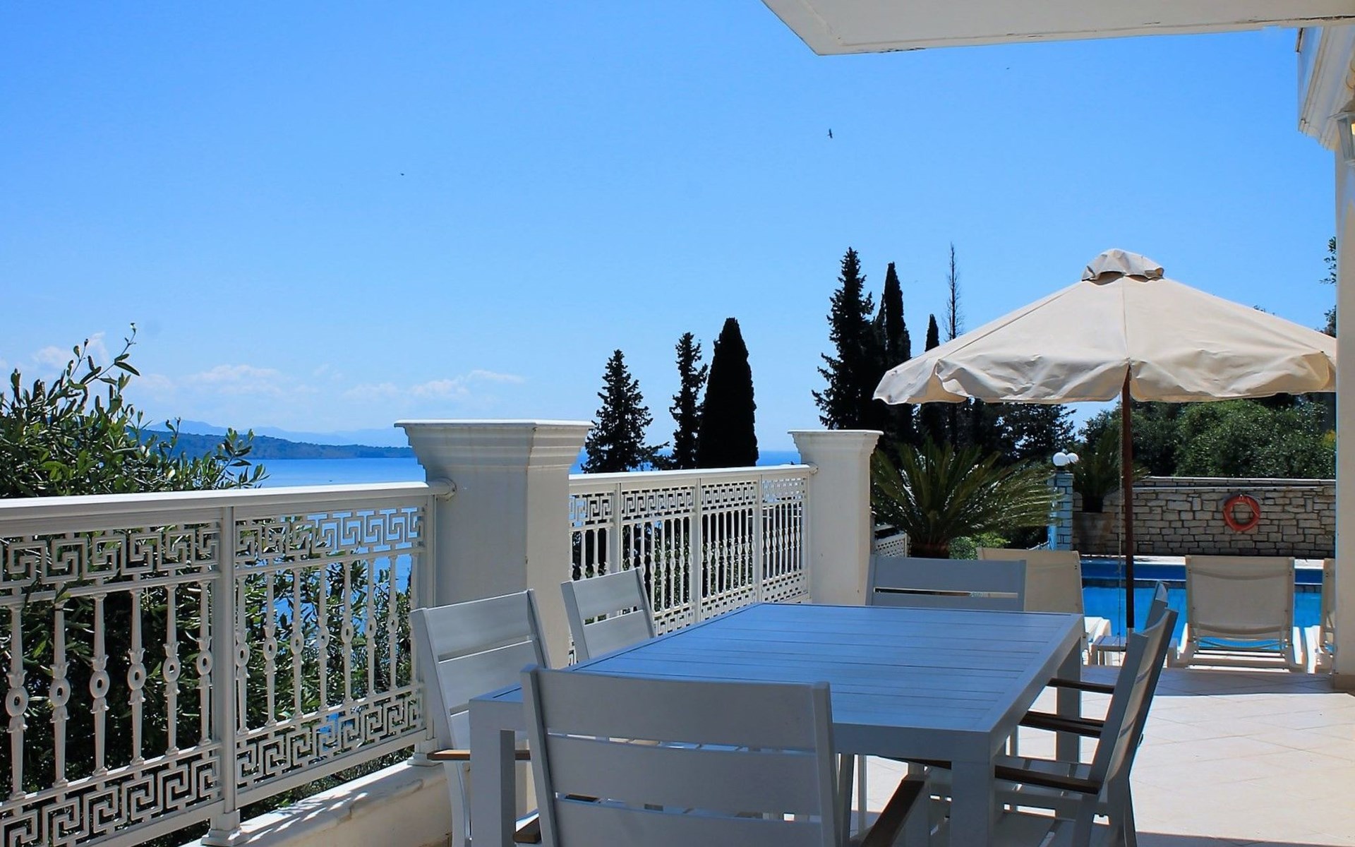 Vlachatika is a village located above the green bay of Kalami with a beautiful view of the coast of Albania. The village is situated along the main road that connects Corfu town to Kassiopi. Luxury villas and apartments have been built on its slopes that reach the sea and are rented to visitors looking for a peaceful vacation in an exquisite natural scenery. There is one tavern in Vlachatika, but Kalami, with its beautiful pebble beach and blue waters, has more to offer.Kalami is located about 30km away from the capital of Corfu, to the northeast of the island. Offering various accommodation options, Kalami is an amazing place to stay at on holidays, while the quiet natural environment of the area will provide you with relaxation and peaceful moments.Near the beach of Kalami you can also enjoy some excellent, traditional taverns, bars and shops, while there are much more amenities and shop opportunities in the main part of the village of Kalami. Finally, you should not miss the chance to visit the White House of the Durrells, located in Kalami, which inspired Gerald Durrell to write remarkable stories about his life and family.Villa Kyriaki is only a few meters above the well-known village of Kalami, where the English author Lauren Darrell penned his renowned novel, My Family and the Other Animals. The property is situated on the crest of a small hill, providing its visitors with beautiful and unimpeded views of the Albanian coast as well as an unrivalled sunrise view. The villa, which includes 4 bedrooms and 5 bathrooms, is suitable for large parties or anyone who wants to spend their vacation in a stylish setting.As you walk into the villa, you come across one of the two large living rooms, which has a terrace and a beautiful view of the Ionian sea. A small kitchenette and a w/c are also located on the same floor. The internal staircase leads to the first floor where the bedrooms are. The first bedroom has a double bed and a private bathroom. The other two bedrooms, both with twin beds, are on the same floor and have en-suite bathrooms. Each one of the top floor bedrooms has a private balcony with views of the pool and the sea.On the ground floor of the building you find the main living room, the spacious and fully-equipped kitchen, and the dining area. The large balcony door of the living room leads you to the pool, which has a beautiful view of the sea in Kalami. Guests can spend their time relaxing and having fun while absorbing all that nature and this unique house offer lavishly. On the same level, you'll find the master bedroom and the family bathroom.Experience luxury in our villa's fifth bedroom, available only for groups of nine or ten. Conveniently located opposite the main entrance, it offers privacy and comfort. This special bedroom features a spacious double bed, a private bathroom with a bathtub, and stunning sea views.Villa Kyriaki is ideal for those who want to spend their vacation relaxed by the pool while also being close to bars, that respect the tranquility of the area, and organized beaches.BedroomsΒedroom 1: Queen size double bed en-suite bathroom, private balconyΒedroom 2: Twin beds, en-suite bathroom, private balconyΒedroom 3: Twin beds, en-suite bathroom, private balconyΒedroom 4: Queen size double bedΒedroom 5: Queen size double bed en-suite bathroom, private balconyVilla Kyriaki is ideal for those who want to spend their vacation relaxed by the pool while also being close to bars, that respect the tranquility of the area, and organized beaches. 0829K91000409300