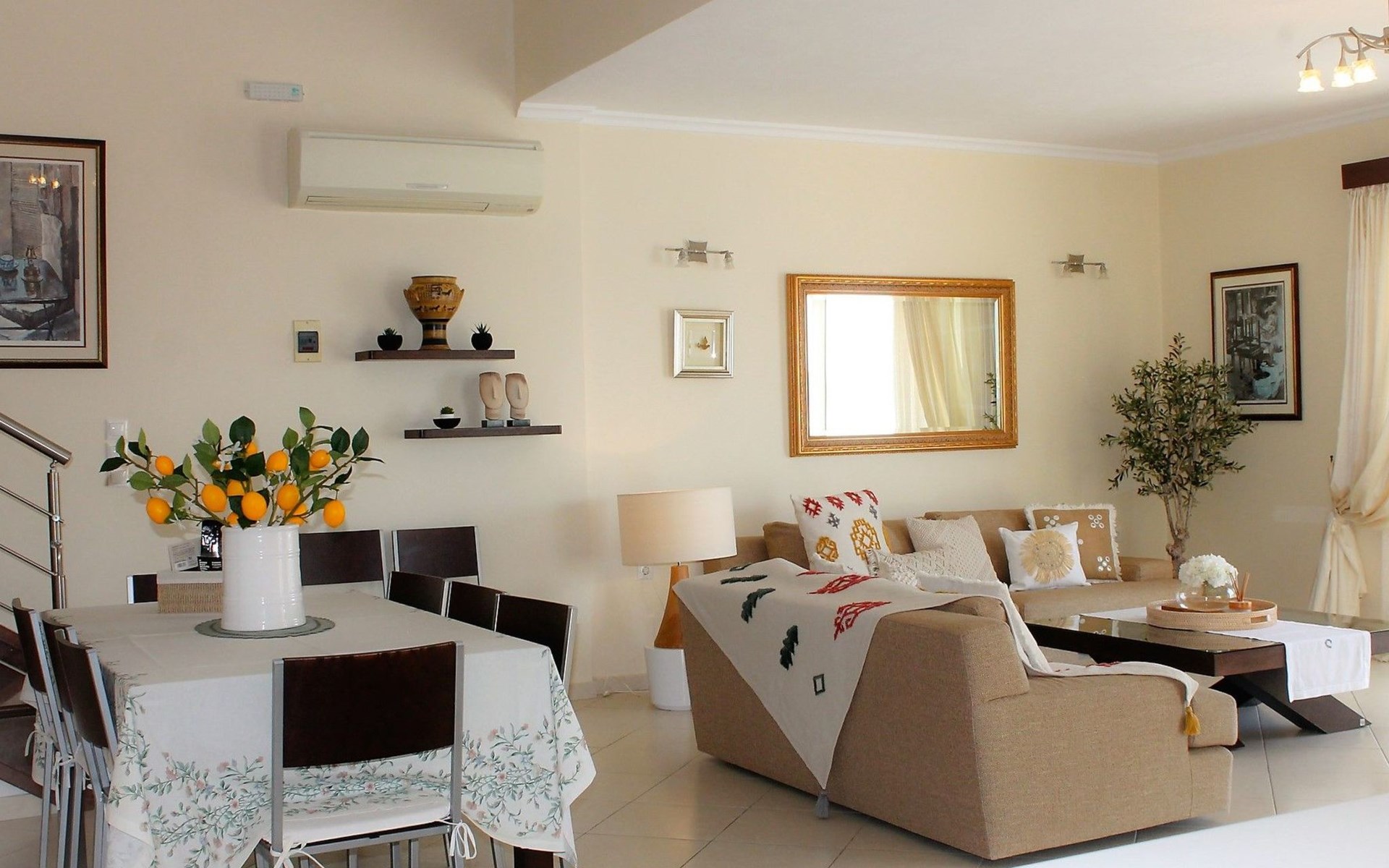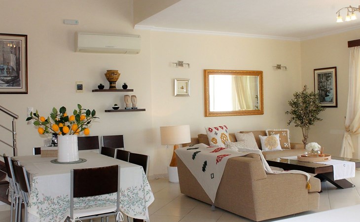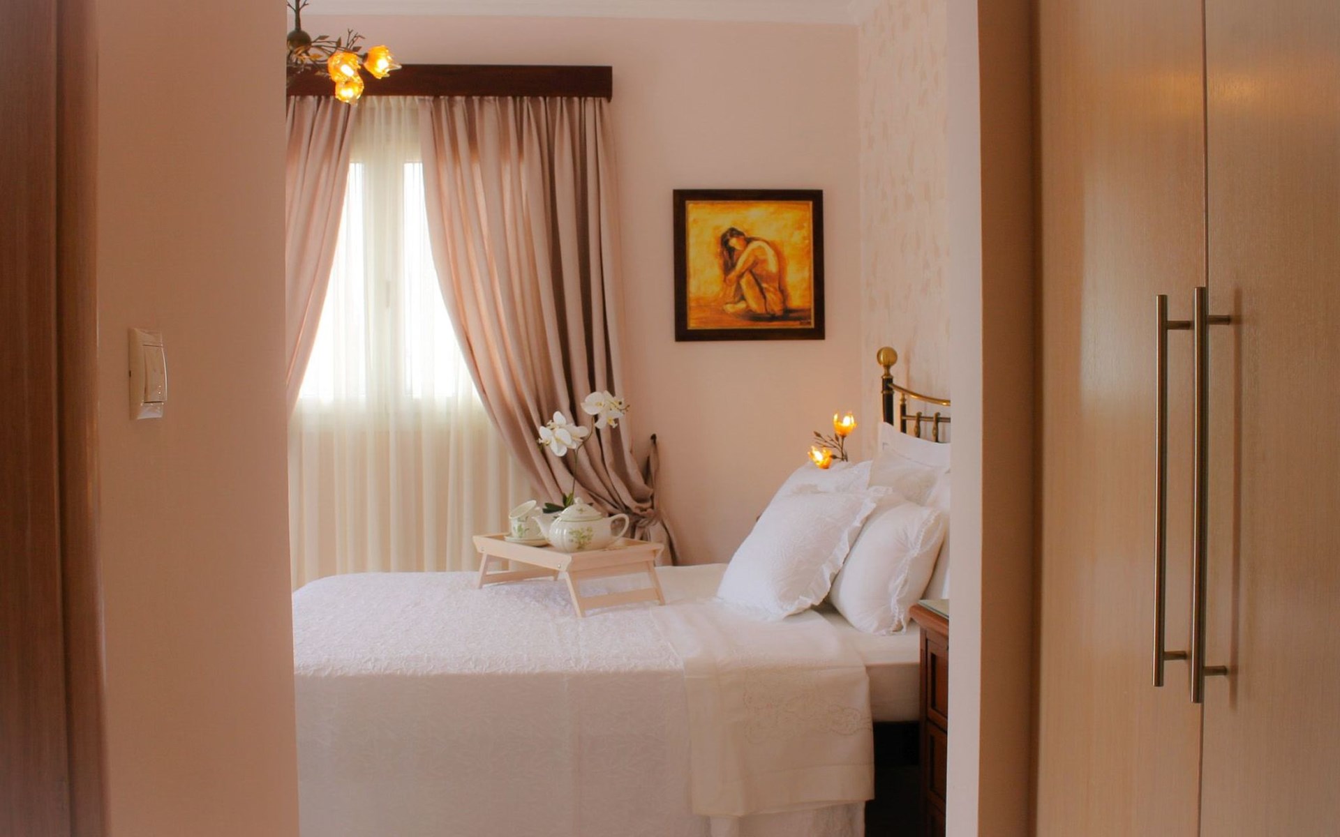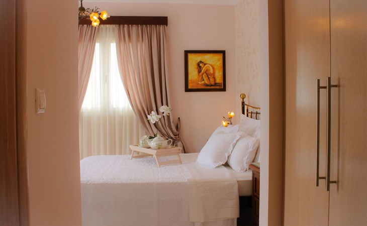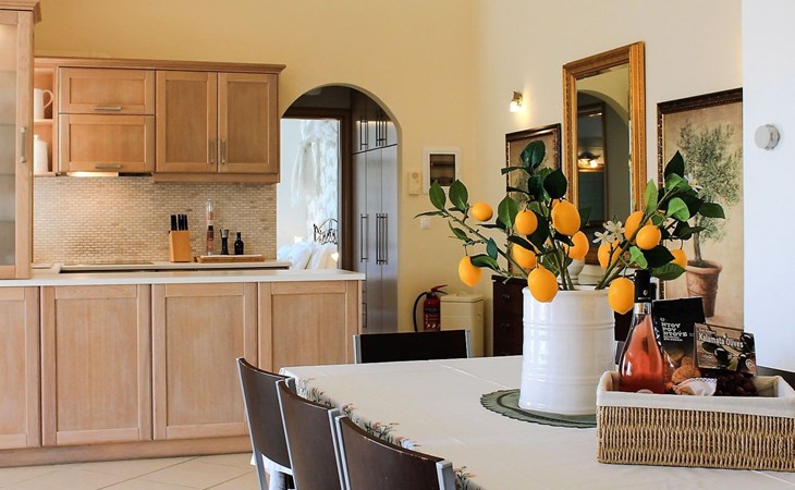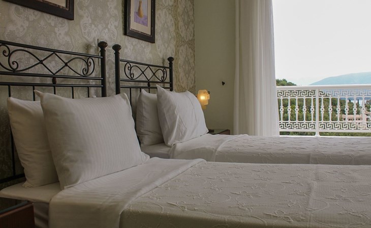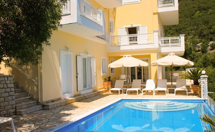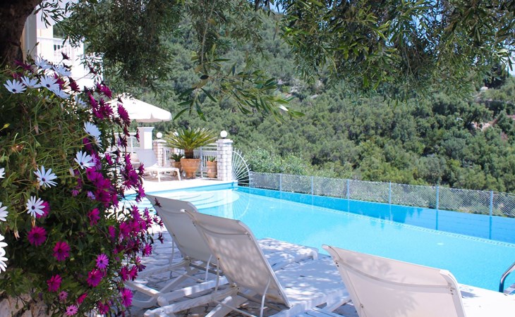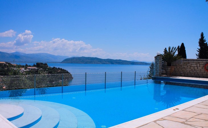 Vlachatika is a village located above the green bay of Kalami with a beautiful view of the coast of Albania. The village is situated along the main road that connects Corfu town to Kassiopi. Luxury villas and apartments have been built on its slopes that reach the sea and are rented to visitors looking for a peaceful vacation in an exquisite natural scenery. There is one tavern in Vlachatika, but Kalami, with its beautiful pebble beach and blue waters, has more to offer.Kalami is located about 30km away from the capital of Corfu, to the northeast of the island. Offering various accommodation options, Kalami is an amazing place to stay at on holidays, while the quiet natural environment of the area will provide you with relaxation and peaceful moments.Near the beach of Kalami you can also enjoy some excellent, traditional taverns, bars and shops, while there are much more amenities and shop opportunities in the main part of the village of Kalami. Finally, you should not miss the chance to visit the White House of the Durrells, located in Kalami, which inspired Gerald Durrell to write remarkable stories about his life and family.Villa Kyriaki is only a few meters above the well-known village of Kalami, where the English author Lauren Darrell penned his renowned novel, My Family and the Other Animals. The property is situated on the crest of a small hill, providing its visitors with beautiful and unimpeded views of the Albanian coast as well as an unrivalled sunrise view. The villa, which includes 4 bedrooms and 5 bathrooms, is suitable for large parties or anyone who wants to spend their vacation in a stylish setting.As you walk into the villa, you come across one of the two large living rooms, which has a terrace and a beautiful view of the Ionian sea. A small kitchenette and a w/c are also located on the same floor. The internal staircase leads to the first floor where the bedrooms are. The first bedroom has a double bed and a private bathroom. The other two bedrooms, both with twin beds, are on the same floor and have en-suite bathrooms. Each one of the top floor bedrooms has a private balcony with views of the pool and the sea.On the ground floor of the building you find the main living room, the spacious and fully-equipped kitchen, and the dining area. The large balcony door of the living room leads you to the pool, which has a beautiful view of the sea in Kalami. Guests can spend their time relaxing and having fun while absorbing all that nature and this unique house offer lavishly. On the same level, you'll find the master bedroom and the family bathroom.Experience luxury in our villa's fifth bedroom, available only for groups of nine or ten. Conveniently located opposite the main entrance, it offers privacy and comfort. This special bedroom features a spacious double bed, a private bathroom with a bathtub, and stunning sea views.Villa Kyriaki is ideal for those who want to spend their vacation relaxed by the pool while also being close to bars, that respect the tranquility of the area, and organized beaches.BedroomsΒedroom 1: Queen size double bed en-suite bathroom, private balconyΒedroom 2: Twin beds, en-suite bathroom, private balconyΒedroom 3: Twin beds, en-suite bathroom, private balconyΒedroom 4: Queen size double bedΒedroom 5: Queen size double bed en-suite bathroom, private balconyVilla Kyriaki is ideal for those who want to spend their vacation relaxed by the pool while also being close to bars, that respect the tranquility of the area, and organized beaches. 0829K91000409300