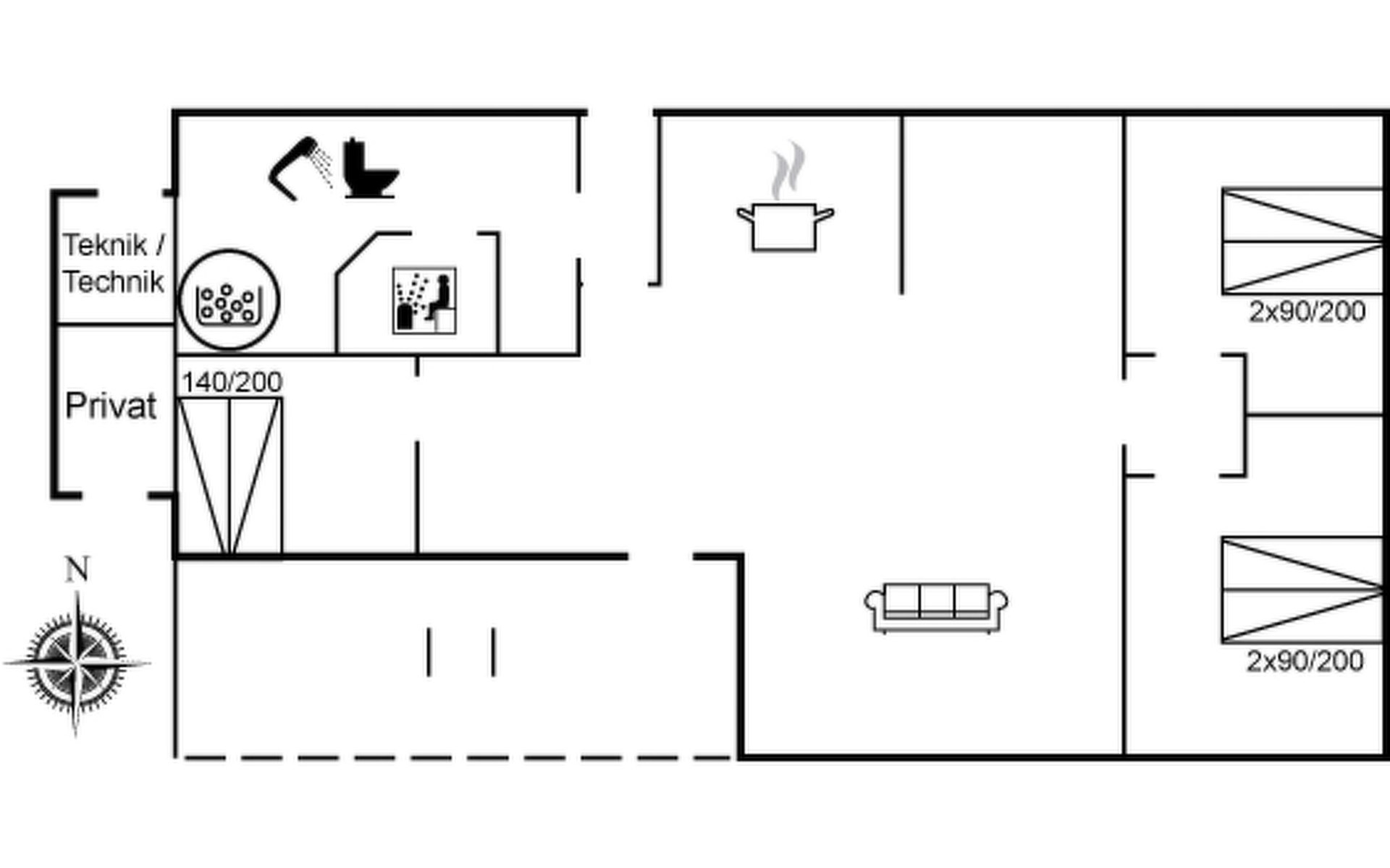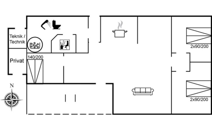 Eengezinswoning, bouwjaar 1960. 3.8 km van zee. Voor alleengebruik: wild terrein 2.500 m2. Terras (25 m2), barbecue, kinderspeelplaats (schommel). In het huis: sauna, trampoline, wasmachine, droger. Parkeerplaats bij het huis. Levensmiddelenwinkel 800 m. De eigenaar accepteert geen jeugdgroepen.