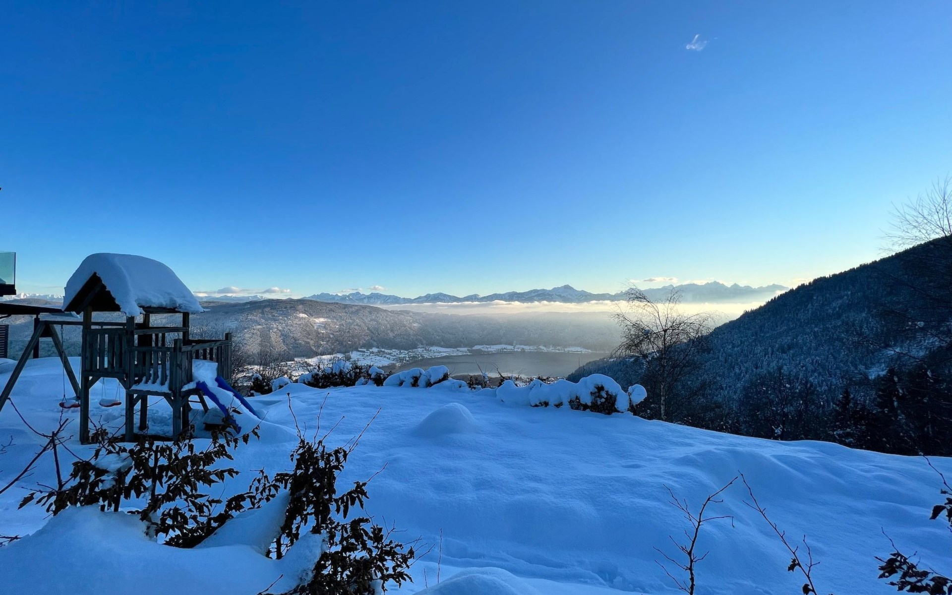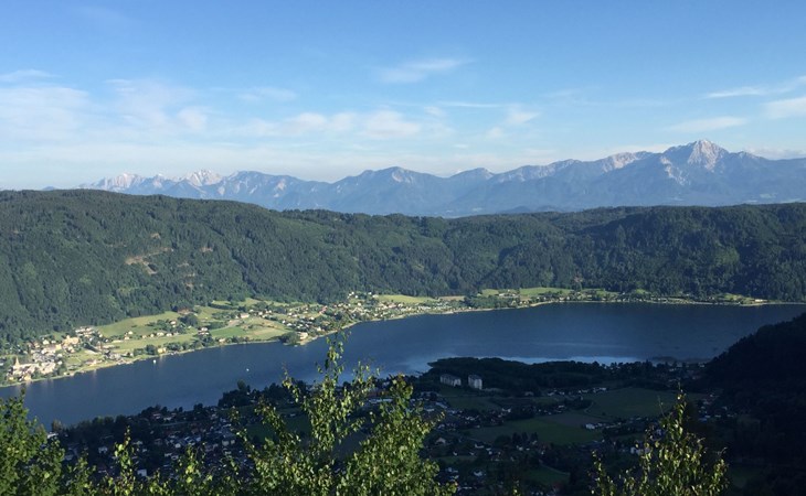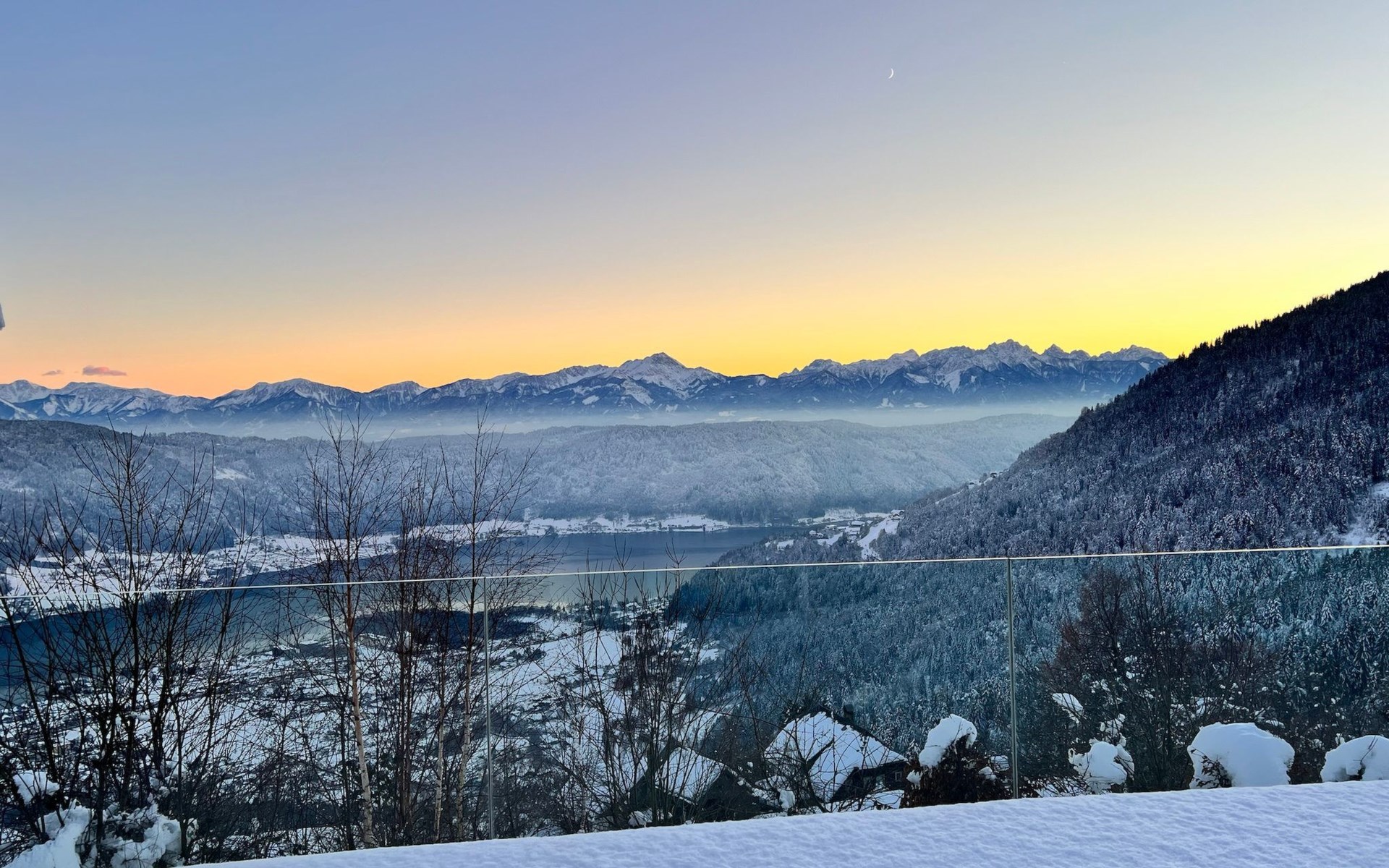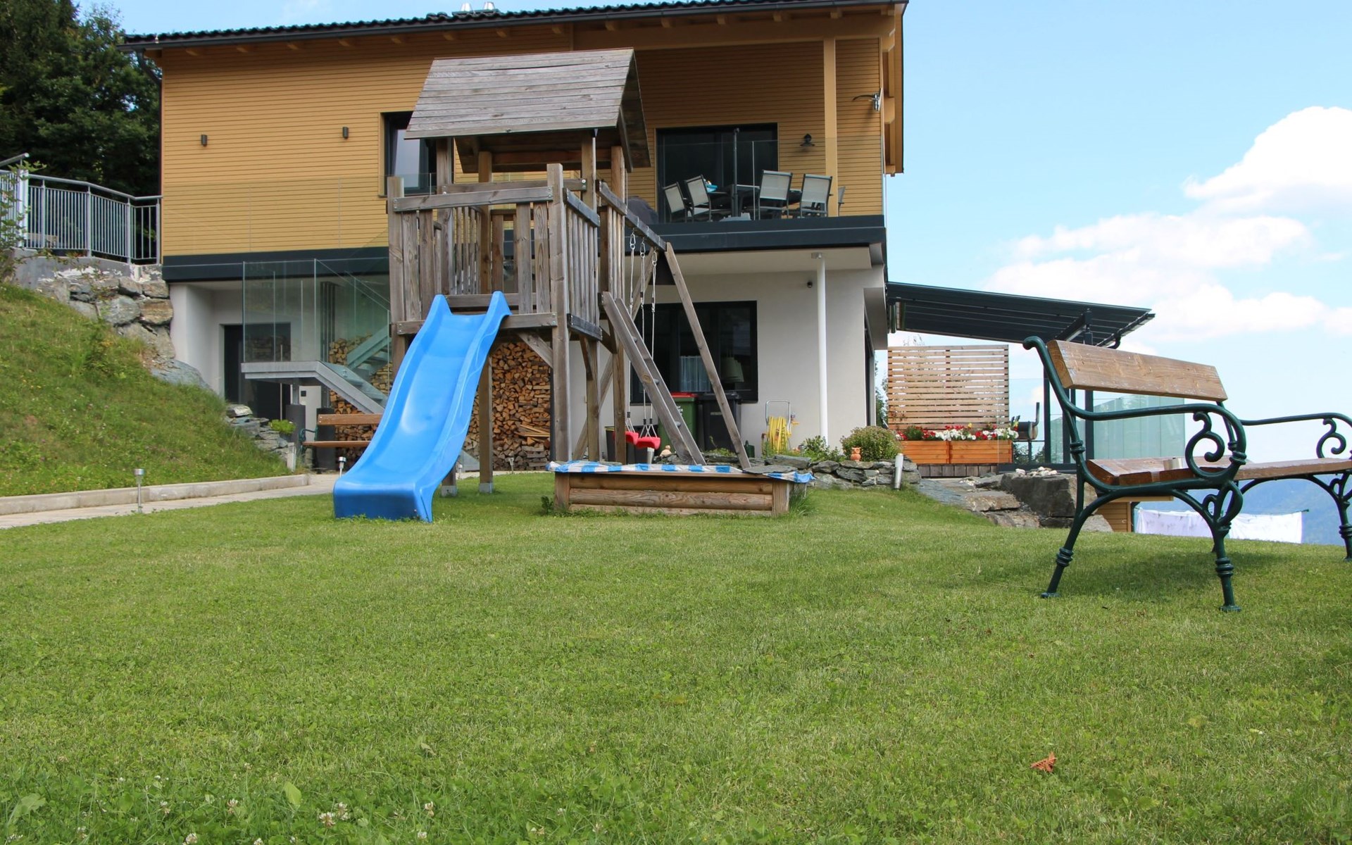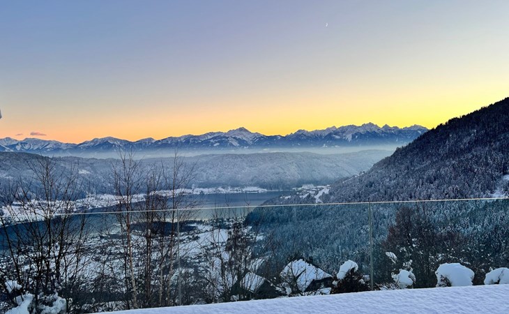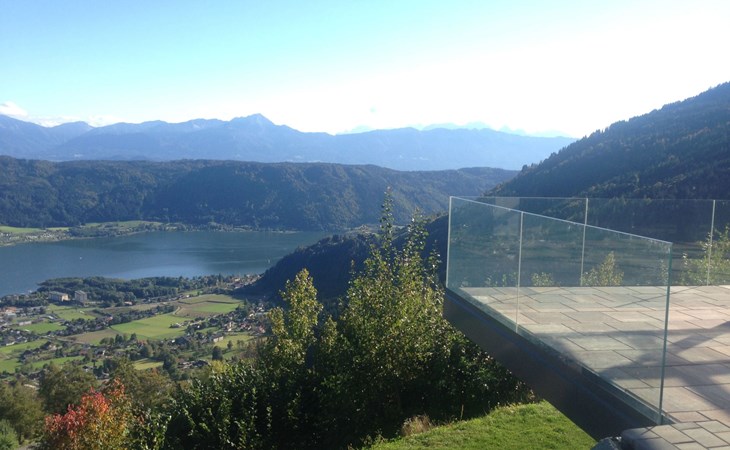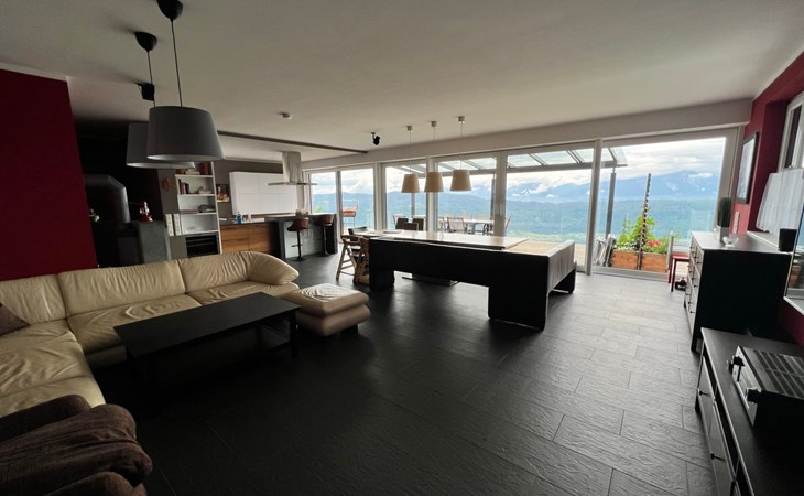 This holiday accommodation is on the ground floor of a detached single-family house amidst nature.The living room opens onto the big 100m² terrace that faces south, with a table, chairs, a grill and a breathtaking view of the mountains and Ossiacher See. Whether in spring, summer, autumn or winter – this view of nature has a special charm in any season. The generous garden provides garden furniture and play equipment and is for shared use with a further apartment. You can relax here, read a good book or spend leisurely evenings with friends and family. Two car parking spaces are available.Its 120m² of living space for up to four people comprises two bedrooms, an open living room with a kitchen, a bathroom and a guest WC. The open living room provides a TV, a sofa and further seating. The fireplace stove with a glass front, also in the living room, is available for use. The required firewood is provided free of charge. In addition, the living room has a cooking island that includes an induction hob, an oven, microwave, fridge, dishwasher and capsules coffee machine. The bedrooms are each furnished with a double bed (180 x 200cm). The bathroom has a shower, washbasin, washing machine and hairdryer. There is a separate guest WC next to it. Each room has heating and underfloor heating, so it is pleasant also in winter.The nearest grocery shop and various bars, clubs, restaurants are just 4km away. It is just a ten-minute walk to Ossiacher See, where you can swim. You can see it from the accommodation. You can go on a bike tour around the lake and make use of the recreational activities at Ossiacher See. It is 15 minutes to the cable car to Gerlitzen and just 25 minutes to Villach. It is an hour’s drive to the top ski resorts of the Alps such as Nassfeld, Kranjska Gora and Bad Kleinkirchheim. It is a two-hour drive to the sea in Slovenia or Italy.Please note that pets are not allowed. The wellness and fitness area with a sauna, a variety of fitness equipment, several wellness loungers and a shower is for use free of charge, shared with a further apartment. High-speed wireless Internet access is available throughout the property, including on the terrace. There is also a stereo system with a Bose surround sound system for use free of charge. The capsules for the Nespresso machine are available from the owner at a supplementary charge, or else you can bring your own. The wine chilling cupboard with two temperature zones can be filled with some items for you on request at a supplementary charge.
