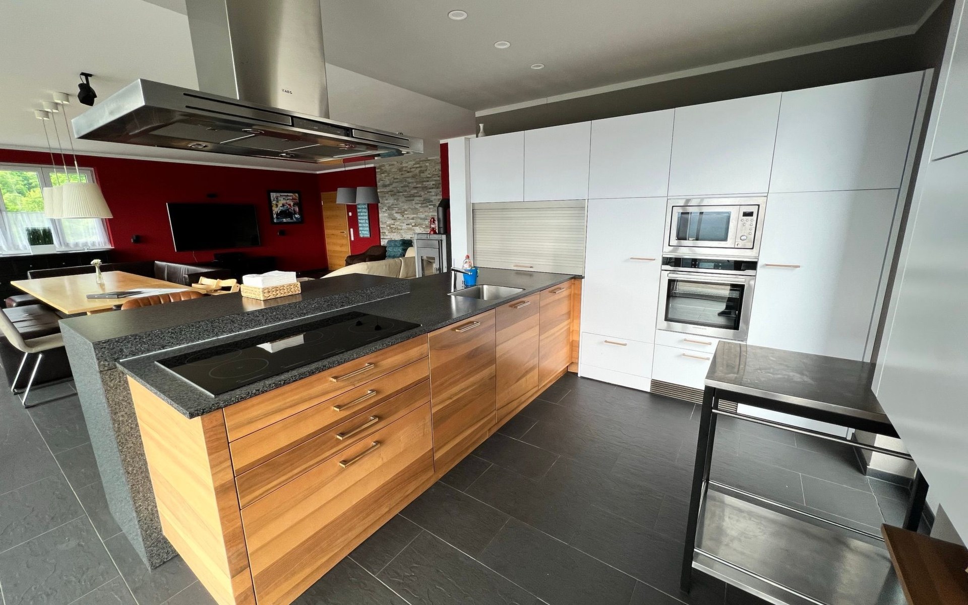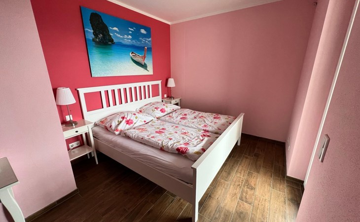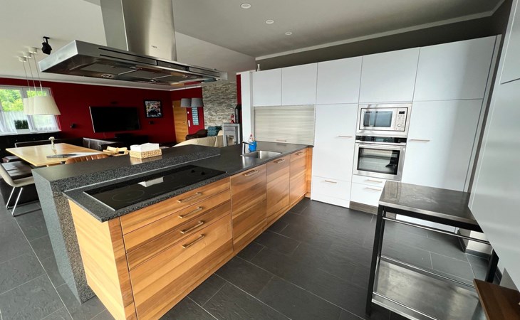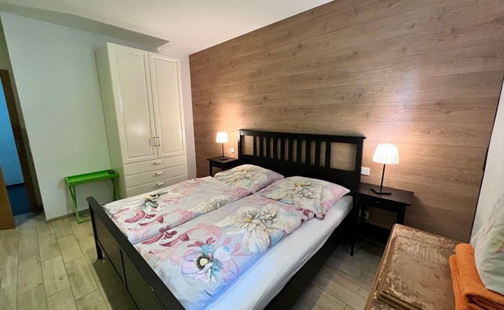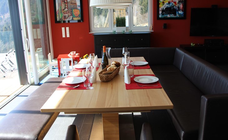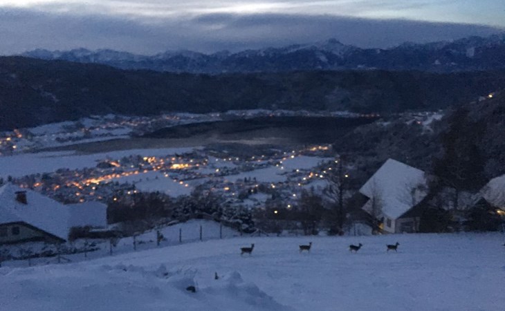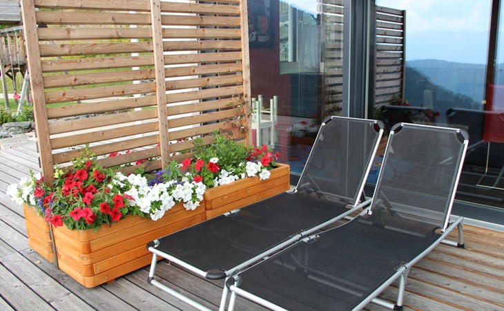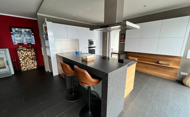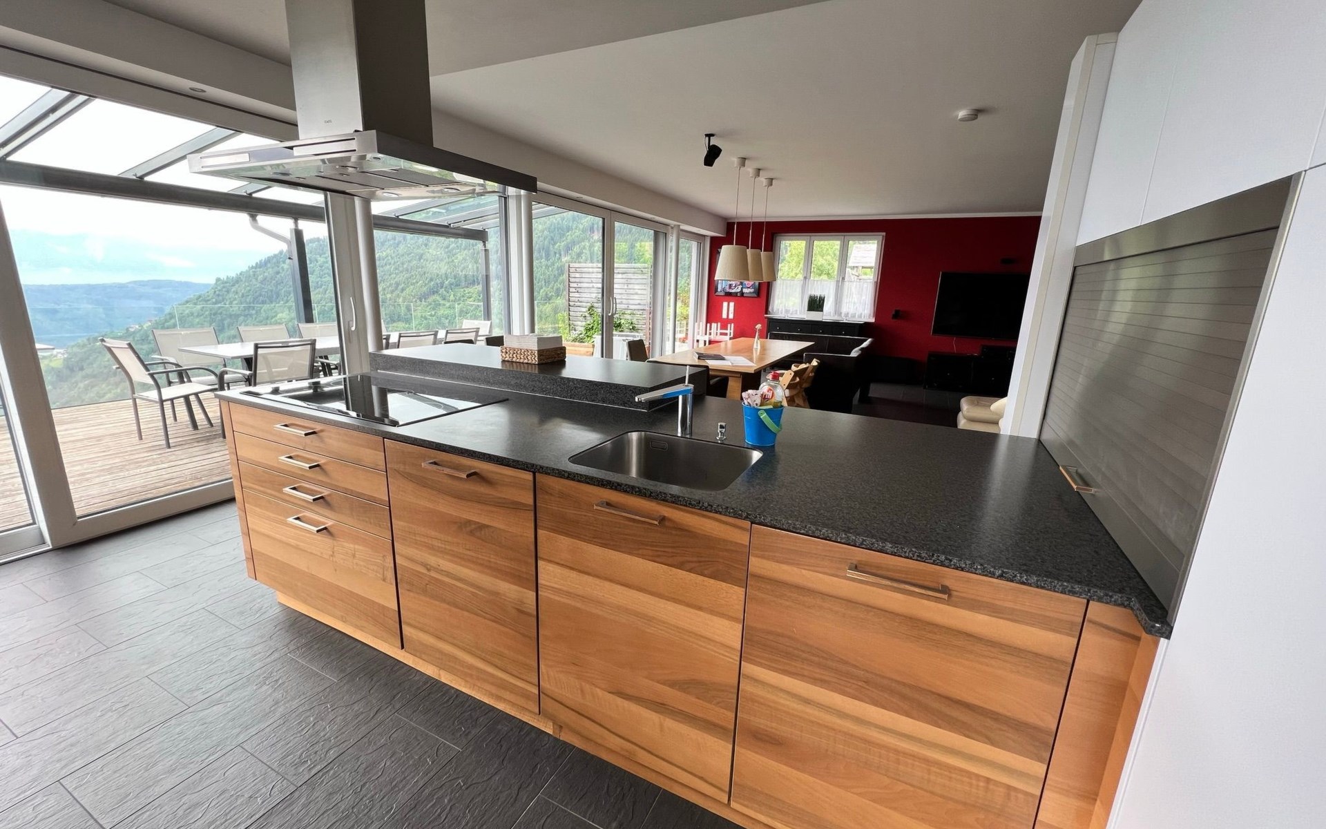 This holiday accommodation is on the ground floor of a detached single-family house amidst nature.The living room opens onto the big 100m² terrace that faces south, with a table, chairs, a grill and a breathtaking view of the mountains and Ossiacher See. Whether in spring, summer, autumn or winter – this view of nature has a special charm in any season. The generous garden provides garden furniture and play equipment and is for shared use with a further apartment. You can relax here, read a good book or spend leisurely evenings with friends and family. Two car parking spaces are available.Its 120m² of living space for up to four people comprises two bedrooms, an open living room with a kitchen, a bathroom and a guest WC. The open living room provides a TV, a sofa and further seating. The fireplace stove with a glass front, also in the living room, is available for use. The required firewood is provided free of charge. In addition, the living room has a cooking island that includes an induction hob, an oven, microwave, fridge, dishwasher and capsules coffee machine. The bedrooms are each furnished with a double bed (180 x 200cm). The bathroom has a shower, washbasin, washing machine and hairdryer. There is a separate guest WC next to it. Each room has heating and underfloor heating, so it is pleasant also in winter.The nearest grocery shop and various bars, clubs, restaurants are just 4km away. It is just a ten-minute walk to Ossiacher See, where you can swim. You can see it from the accommodation. You can go on a bike tour around the lake and make use of the recreational activities at Ossiacher See. It is 15 minutes to the cable car to Gerlitzen and just 25 minutes to Villach. It is an hour’s drive to the top ski resorts of the Alps such as Nassfeld, Kranjska Gora and Bad Kleinkirchheim. It is a two-hour drive to the sea in Slovenia or Italy.Please note that pets are not allowed. The wellness and fitness area with a sauna, a variety of fitness equipment, several wellness loungers and a shower is for use free of charge, shared with a further apartment. High-speed wireless Internet access is available throughout the property, including on the terrace. There is also a stereo system with a Bose surround sound system for use free of charge. The capsules for the Nespresso machine are available from the owner at a supplementary charge, or else you can bring your own. The wine chilling cupboard with two temperature zones can be filled with some items for you on request at a supplementary charge.
