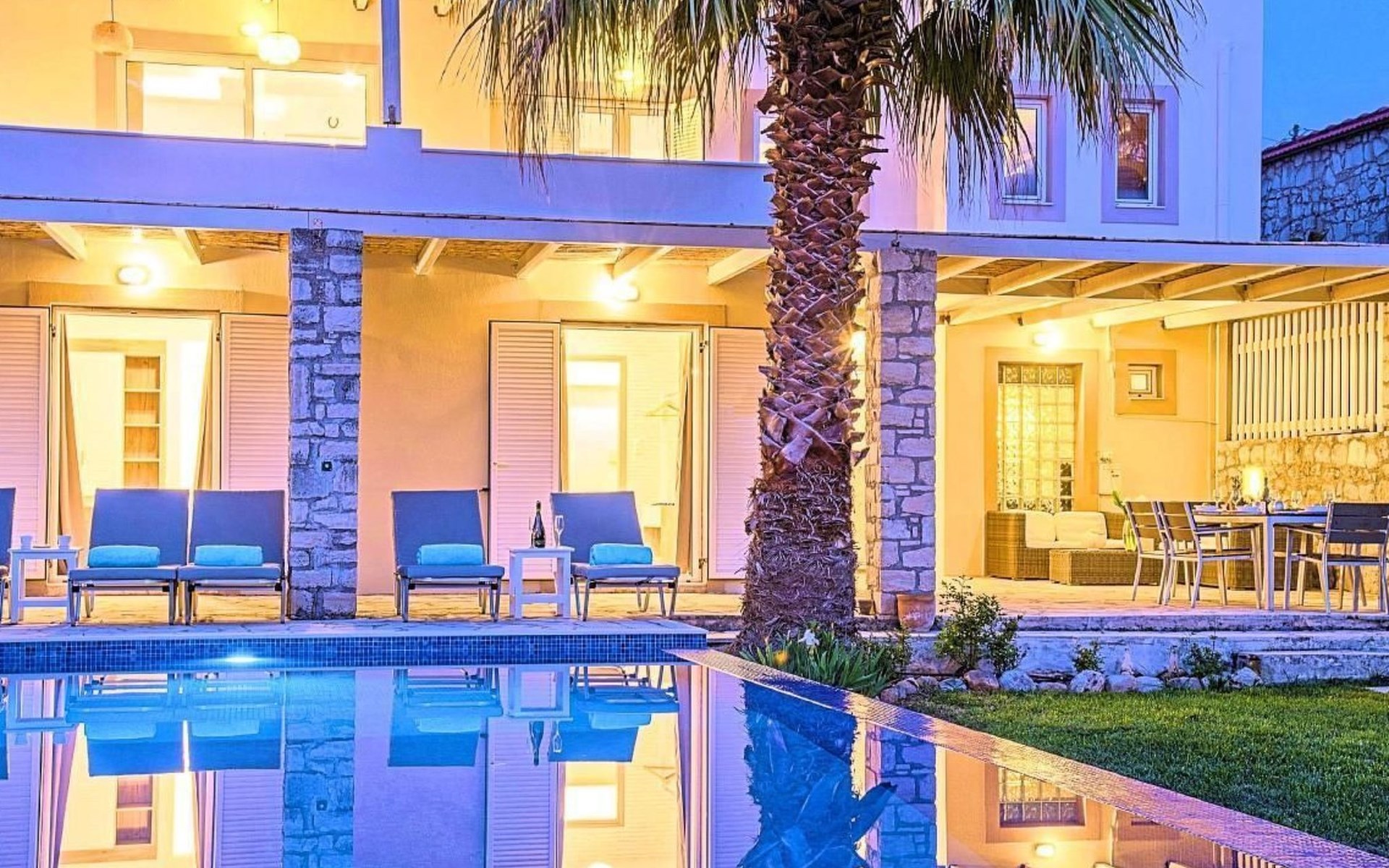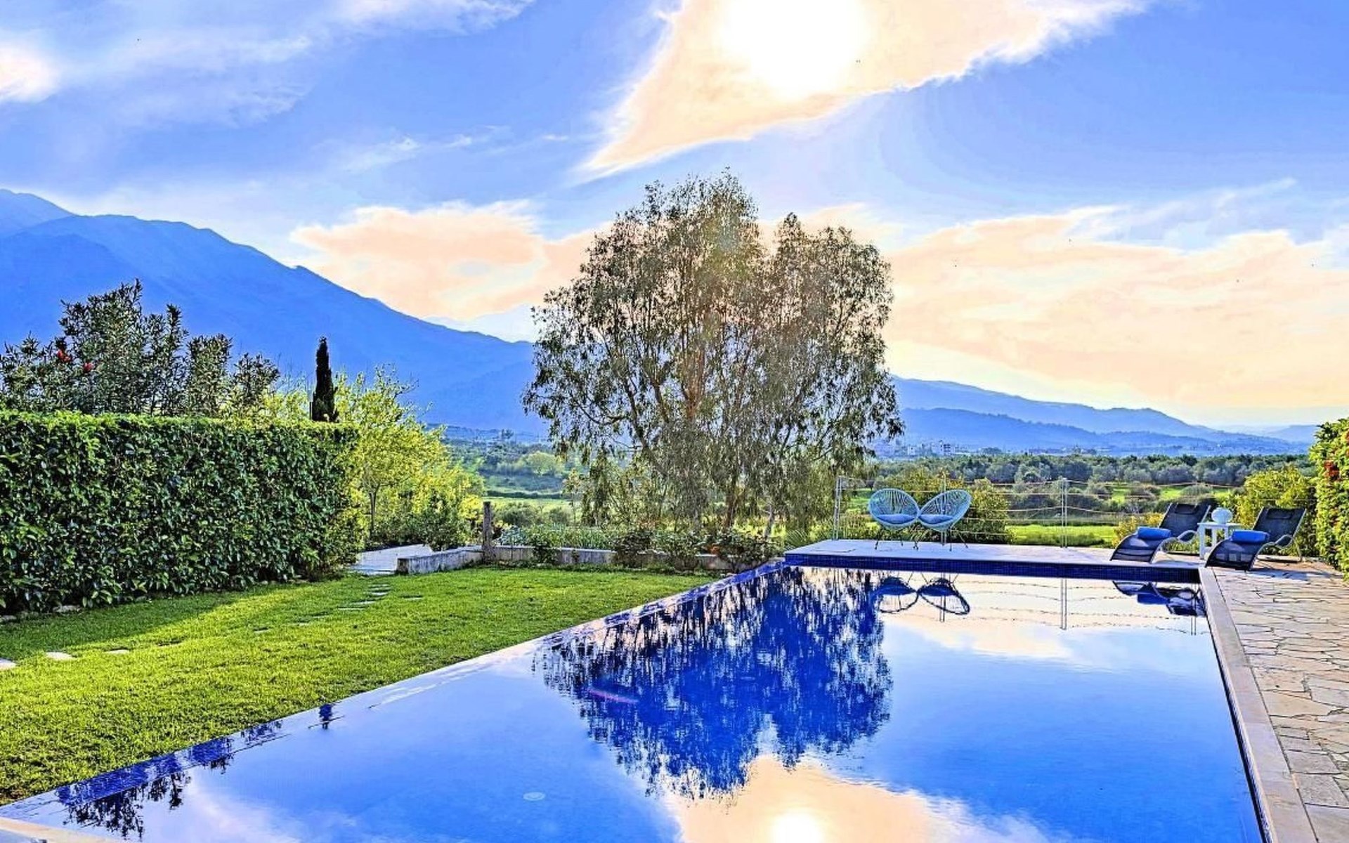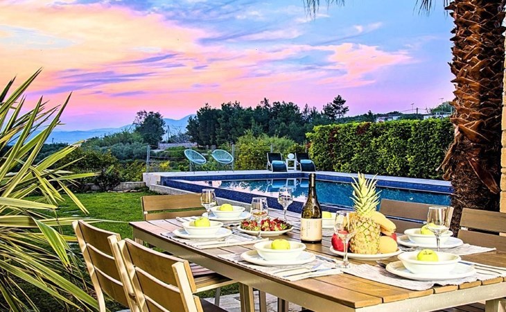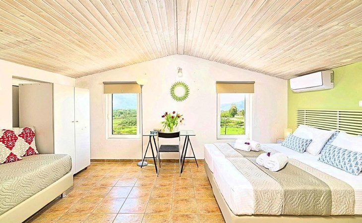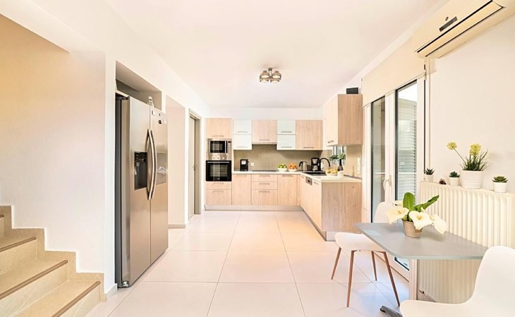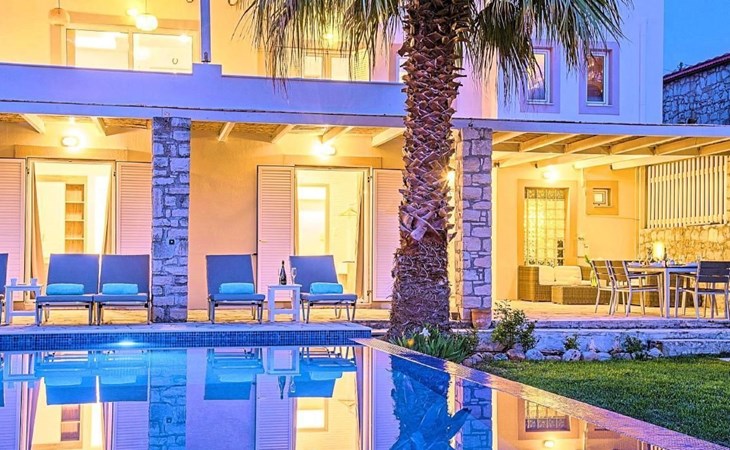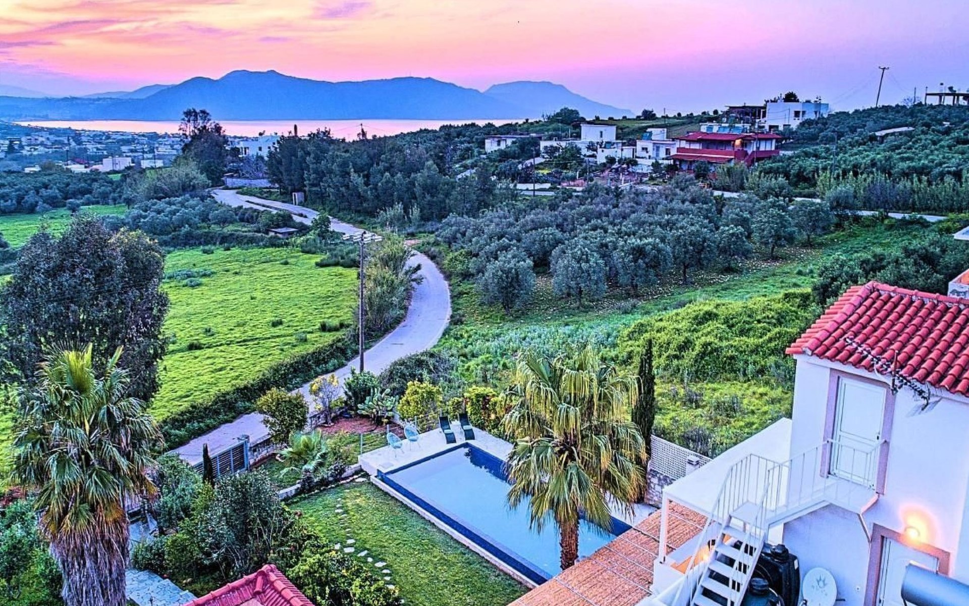 Cretan Mansion is a modern 5-bedroom villa.Located at the village Dramia, Apokoronas municipality, quite close to the tourist village of Kavros, just five hundred meters from the sandy beach of Georgioupolis – Episkopi, at the foot of the White Mountains at the northeastern corner of the prefecture of Chania.Built in 2006 with modern design, it affords guests with everything they need in order to enjoy a relaxing and enjoyable holiday.The rooms of the Mansion are functionally decorated.Its 5 bedrooms all fully equipped and spacious, all with private bathrooms.The lounges, dining rooms, kitchens are equipped with everything essential for a comfortable holiday.The gardens of the Mansion are surrounded by hand-made stone fences full of blossoming bushes, fruit trees and white oleanders.Swim in the private pool. Enjoy your coffee or drink at one of the terraces of our Mansion, looking out towards the White Mountains and the sandy beach of Georgioupolis.As you gaze at the valley surrounding the village, which is covered by a thick olive grove, you will relax immersed in aromas of rosemary, lavender and mint, engulfing you in a dream of the natural scent of the Cretan land.The outdoor pool is heated and can reach 6 to 8 degrees more that the air temperature with maximum value of 29°CShort descriptionOther : Non-smoking houseShort description 1Number of kitchens : 2SurroundingNearby sports facilities : FishingRental Facilities : Boat rental serviceGarden and outdoorGarden facilities : Garden furniture provided, GrillOn-site leisure facilities : Outdoor swimming pool exclusive use, Swimming poolBuilt with modern design, it affords guests with everything they need in order to enjoy a relaxing and enjoyable holiday. The rooms of the Mansion are functionally decorated. Its 5 bedrooms all fully equipped and spacious, all with private bathrooms. The lounges, dining rooms, kitchens are equipped with everything essential for a comfortable holiday. The gardens of the Mansion are surrounded by hand-made stone fences full of blossoming bushes, fruit trees and white oleanders. Swim in the private pool. Enjoy your coffee or drink at one of the terraces of our Mansion, looking out towards the White Mountains and the sandy beach of Georgioupolis. As you gaze at the valley surrounding the village, which is covered by a thick olive grove, you will relax immersed in aromas of rosemary, lavender and mint, engulfing you in a dream of the natural scent of the Cretan land.The Mansion is built on 4 levels and can accommodate up to 15 people, all 12 months year round. The first level of the west garden and the pool has 2 independent studios with their own private entrances. The same level of the main building has a lounge with a corner sofa seating 5 people, with an auxiliary kitchen and a spacious bedroom. Outside the same level, at the western garden overlooking the pool, there is a large dining space with sun loungers. Inside, a staircase leads upstairs to the second level of the Mansion. The main entrance from the upper street and the east garden is at this level. This second level has a fully equipped kitchen, a large lounge with comfortable sofas, a guest bathroom and a vast terrace with a dining table. At the third and fourth level there are the master bedroom of the mansion, a large loft bedroom, and two more terraces.Our village, Dramia, today is a small, quiet, residential village of 250 inhabitants, administratively belonging to the municipality of Apokoronas. The position and orientation of the village are ideal. It is located among olive groves and looks over the plain of Kournas.The outdoor pool is heated and can reach 6 to 8 degrees more that the 24 h average air temperature with maximum value of 29°C. 1042K10002994601