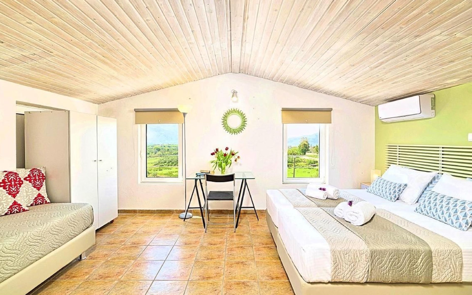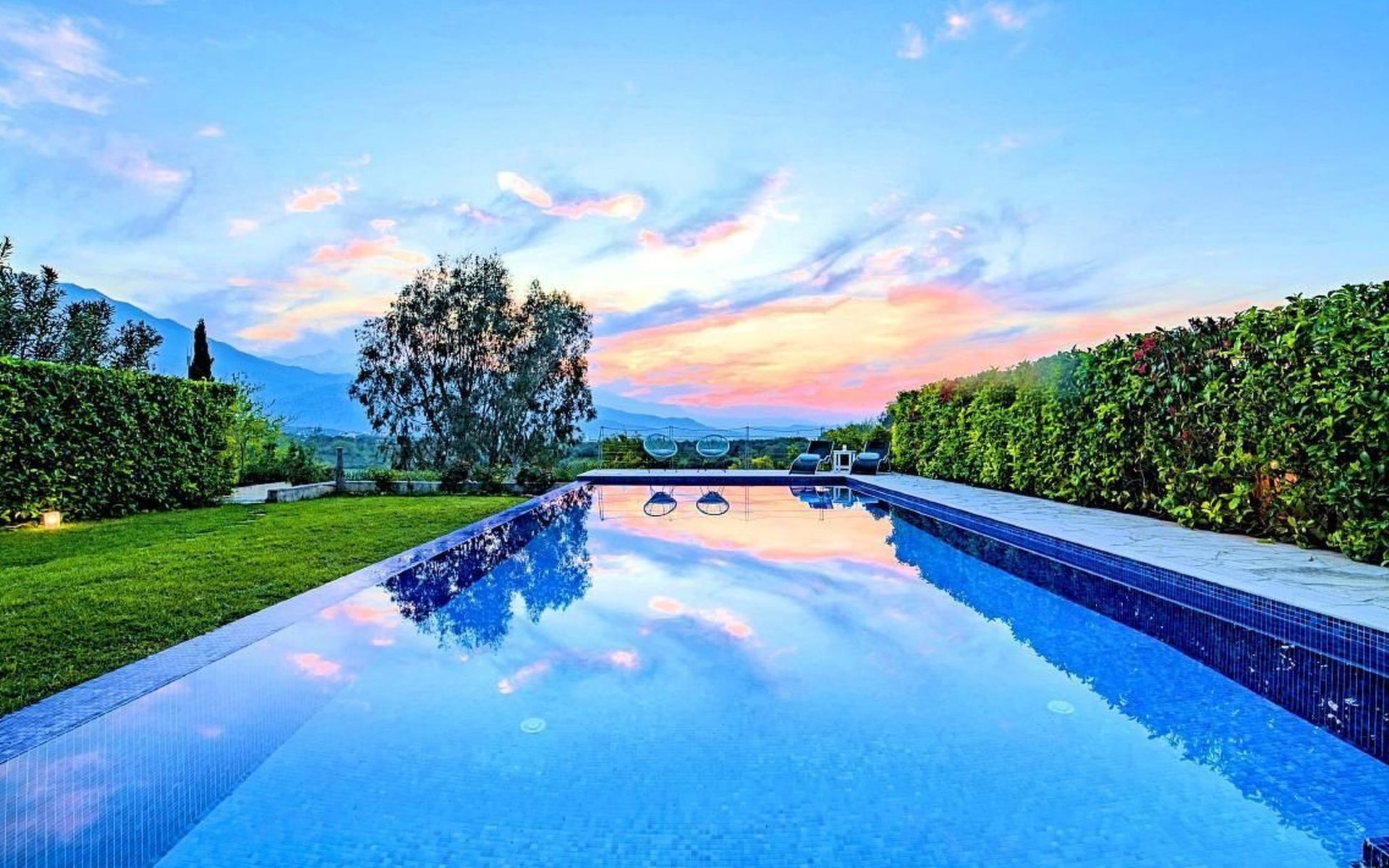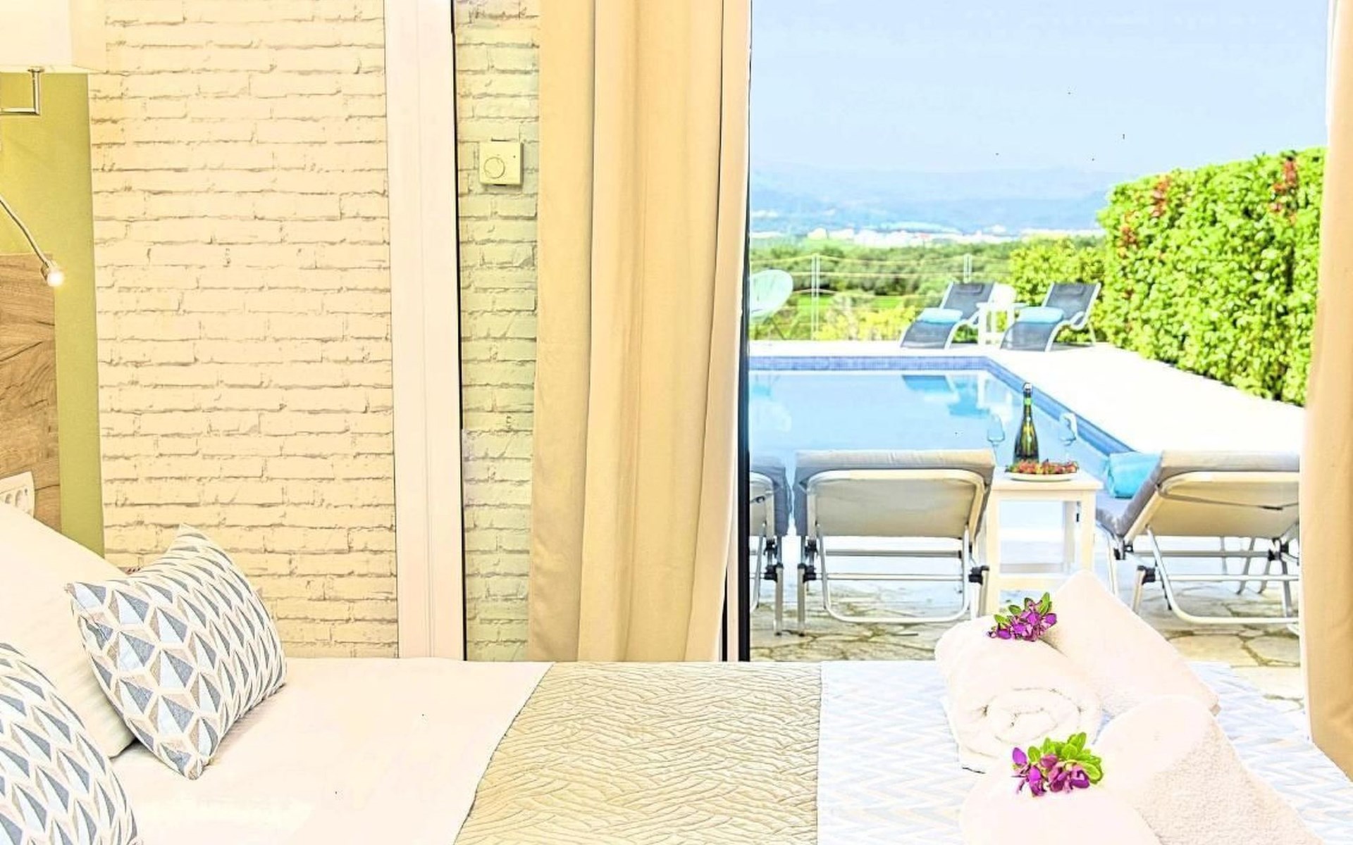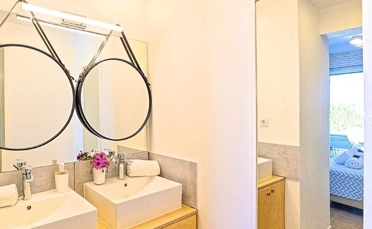 Cretan Mansion is a modern 5-bedroom villa.Located at the village Dramia, Apokoronas municipality, quite close to the tourist village of Kavros, just five hundred meters from the sandy beach of Georgioupolis – Episkopi, at the foot of the White Mountains at the northeastern corner of the prefecture of Chania.Built in 2006 with modern design, it affords guests with everything they need in order to enjoy a relaxing and enjoyable holiday.The rooms of the Mansion are functionally decorated.Its 5 bedrooms all fully equipped and spacious, all with private bathrooms.The lounges, dining rooms, kitchens are equipped with everything essential for a comfortable holiday.The gardens of the Mansion are surrounded by hand-made stone fences full of blossoming bushes, fruit trees and white oleanders.Swim in the private pool. Enjoy your coffee or drink at one of the terraces of our Mansion, looking out towards the White Mountains and the sandy beach of Georgioupolis.As you gaze at the valley surrounding the village, which is covered by a thick olive grove, you will relax immersed in aromas of rosemary, lavender and mint, engulfing you in a dream of the natural scent of the Cretan land.The outdoor pool is heated and can reach 6 to 8 degrees more that the air temperature with maximum value of 29°CShort descriptionOther : Non-smoking houseShort description 1Number of kitchens : 2SurroundingNearby sports facilities : FishingRental Facilities : Boat rental serviceGarden and outdoorGarden facilities : Garden furniture provided, GrillOn-site leisure facilities : Outdoor swimming pool exclusive use, Swimming poolBuilt with modern design, it affords guests with everything they need in order to enjoy a relaxing and enjoyable holiday. The rooms of the Mansion are functionally decorated. Its 5 bedrooms all fully equipped and spacious, all with private bathrooms. The lounges, dining rooms, kitchens are equipped with everything essential for a comfortable holiday. The gardens of the Mansion are surrounded by hand-made stone fences full of blossoming bushes, fruit trees and white oleanders. Swim in the private pool. Enjoy your coffee or drink at one of the terraces of our Mansion, looking out towards the White Mountains and the sandy beach of Georgioupolis. As you gaze at the valley surrounding the village, which is covered by a thick olive grove, you will relax immersed in aromas of rosemary, lavender and mint, engulfing you in a dream of the natural scent of the Cretan land.The Mansion is built on 4 levels and can accommodate up to 15 people, all 12 months year round. The first level of the west garden and the pool has 2 independent studios with their own private entrances. The same level of the main building has a lounge with a corner sofa seating 5 people, with an auxiliary kitchen and a spacious bedroom. Outside the same level, at the western garden overlooking the pool, there is a large dining space with sun loungers. Inside, a staircase leads upstairs to the second level of the Mansion. The main entrance from the upper street and the east garden is at this level. This second level has a fully equipped kitchen, a large lounge with comfortable sofas, a guest bathroom and a vast terrace with a dining table. At the third and fourth level there are the master bedroom of the mansion, a large loft bedroom, and two more terraces.Our village, Dramia, today is a small, quiet, residential village of 250 inhabitants, administratively belonging to the municipality of Apokoronas. The position and orientation of the village are ideal. It is located among olive groves and looks over the plain of Kournas.The outdoor pool is heated and can reach 6 to 8 degrees more that the 24 h average air temperature with maximum value of 29°C. 1042K10002994601