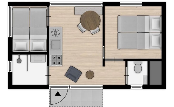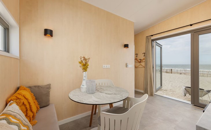 Onze Beach Houses zijn geschikt voor maximaal 4 personen en zijn slim en comfortabel ingericht. De lichte woonkamer beschikt over een gezellige zithoek en een open keuken, voorzien van onder andere een koel-vriescombinatie, koffiecupapparaat en waterkoker. Via de woonkamer stap je zo de veranda op: een heerlijke plek om de dag te beginnen met een kop koffie, te genieten van de zon of ’s avonds samen na te praten terwijl je de zee op de achtergrond hoort.