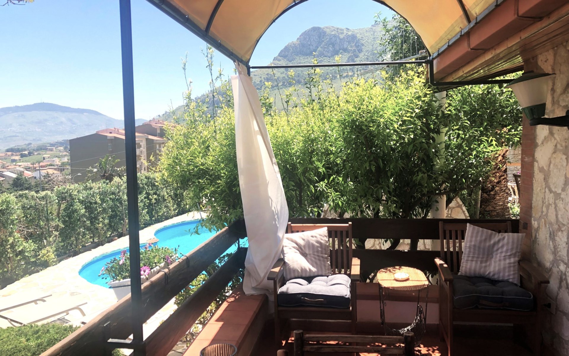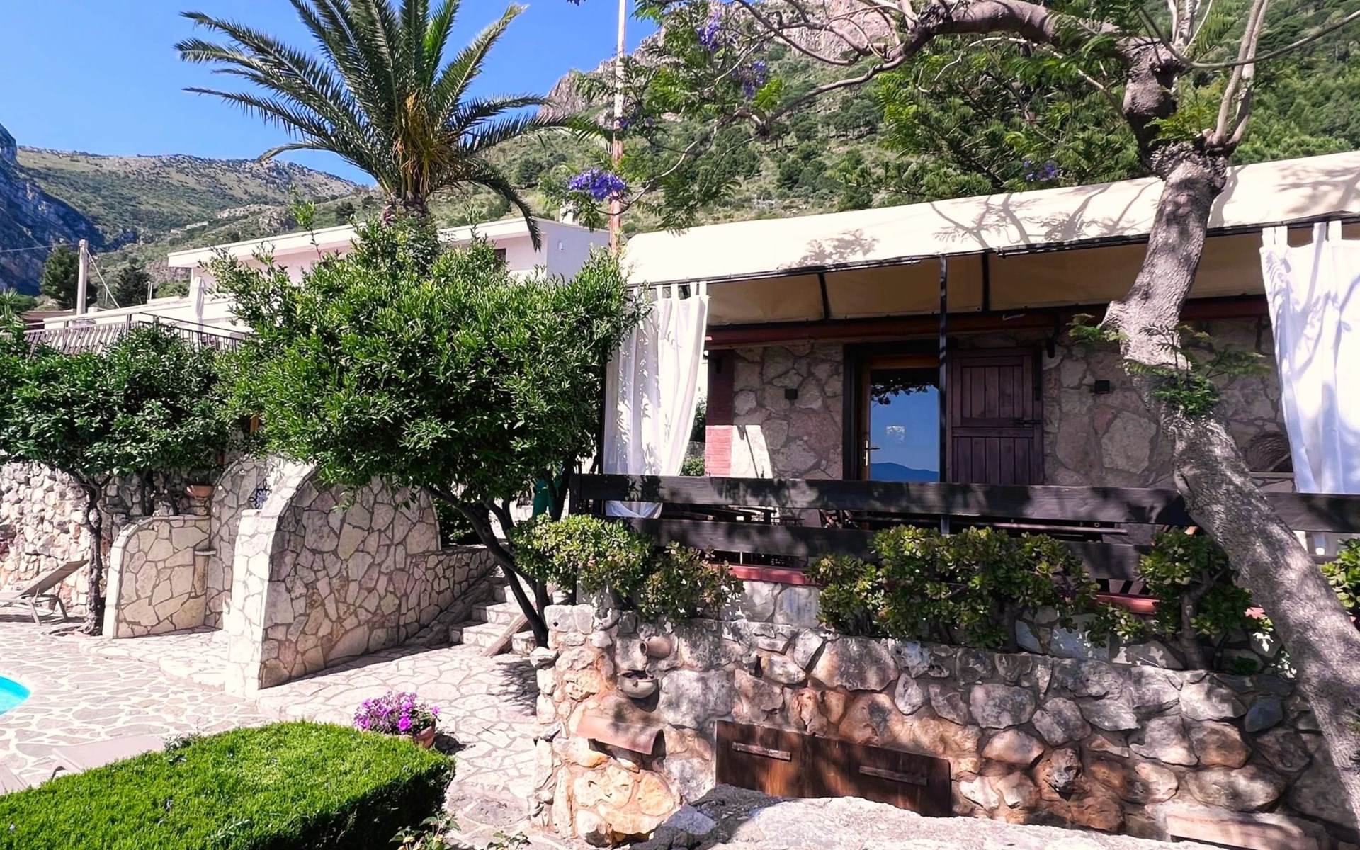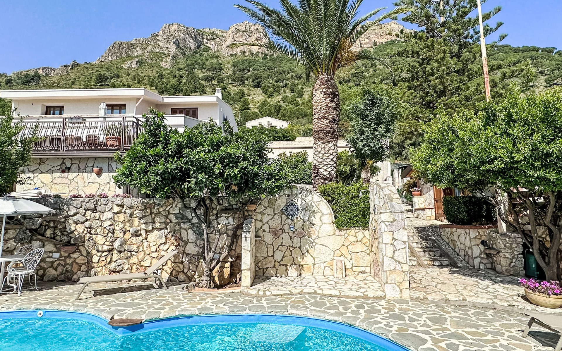 Appartementencomplex van 2 verdiepingen. 4 appartementen in de woning. Huurobject bestaande uit hoofd-/ bijgebouw, 1.5 km van het centrum van Castellammare del Golfo, rustige, zonnige ligging tegen een helling, 3 km van zee, 3 km van het strand. Voor medegebruik: terrein 1.000 m2 (omheind), openluchtzwembad (10 x 4 m, 140 cm diepte, seizoensgebonden beschikbaarheid: 01.Apr. - 31.Okt. openingstijden zwembad: 09:00-13:00 en 16:00-19:00). Onregelmatig zwembad. Buitendouche, tuinmeubelen, barbecue, onderhoud zwembad door de eigenaar/tuinman. In het complex: wasmachine (voor medegebruik), Verwarming ter plaatse te betalen (01.Apr. - 30.Nov.), verwarming alleen beschikbaar van 01.Dec. - 31.Mrt.. 250 m lange steile toegangsweg. Parkeerplaats op het terrein. Levensmiddelenwinkel 1 km, supermarkt 1 km, restaurant 1 km, bar 1 km, bushalte 14 km, zandstrand "Castellammare del Golfo" 3 km. Attracties in de buurt: Segesta Parco Archeologico 20 km, Trapani/Porto Aliscali per Isole Egadi 38 km, Erice 38 km, San Vito lo Capo 45 km, Marsala e Saline 60 km, Palermo 60 km. Auto noodzakelijk. Gesloten residentie met een elektrische deur. De eigenaar woont in hetzelfde huis. De eigenaar heeft een hond.
