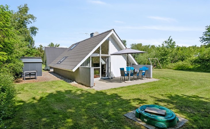 Eengezinswoning, bouwjaar 1976. 450 m van zee. Voor alleengebruik: wild terrein 1.391 m2, overdekt zwembad. Barbecue, kinderspeelplaats (schommel). In het huis: tafelvoetbal, wasmachine, droger. Parkeerplaats bij het huis. Levensmiddelenwinkel 500 m. De eigenaar accepteert geen jeugdgroepen.