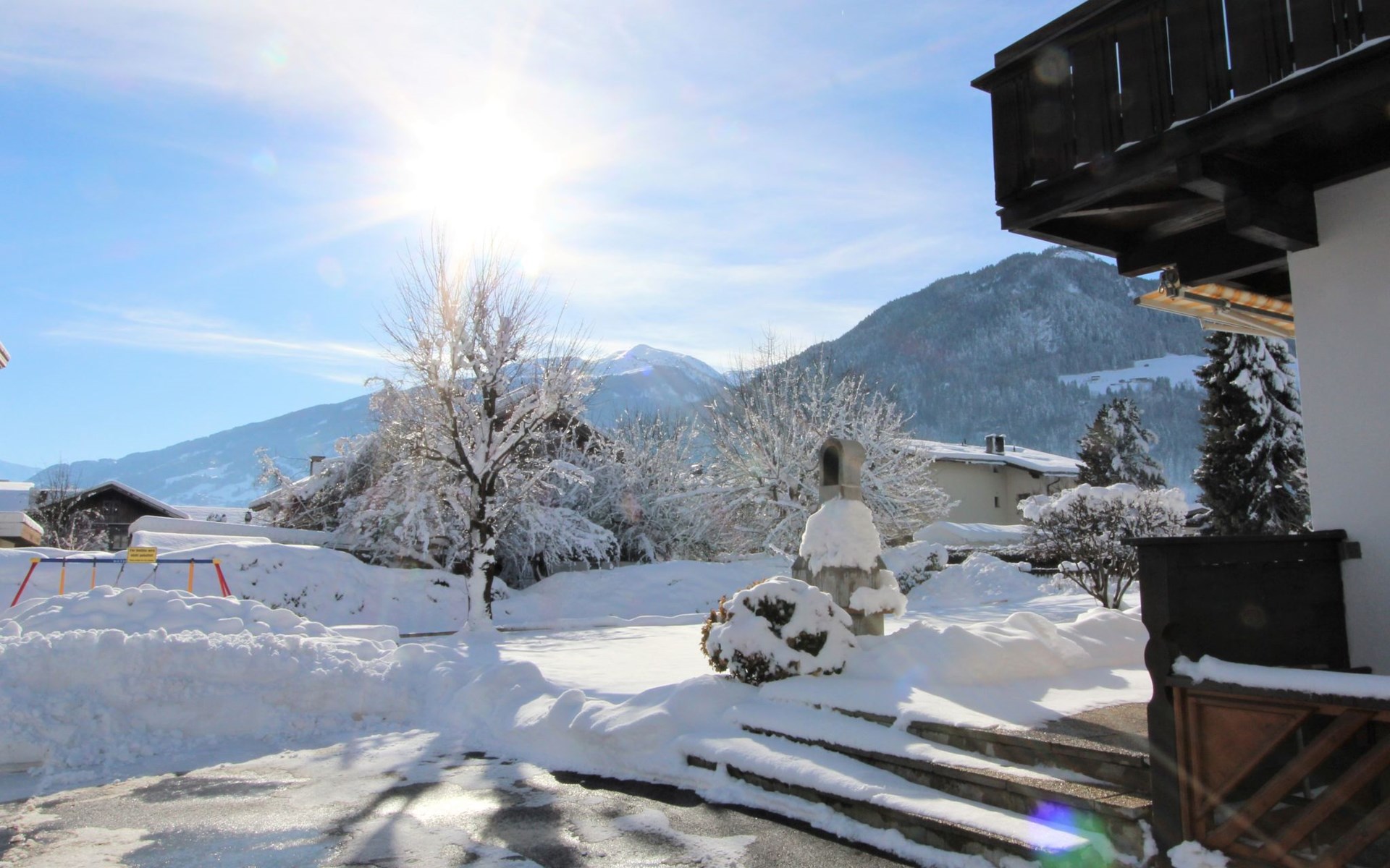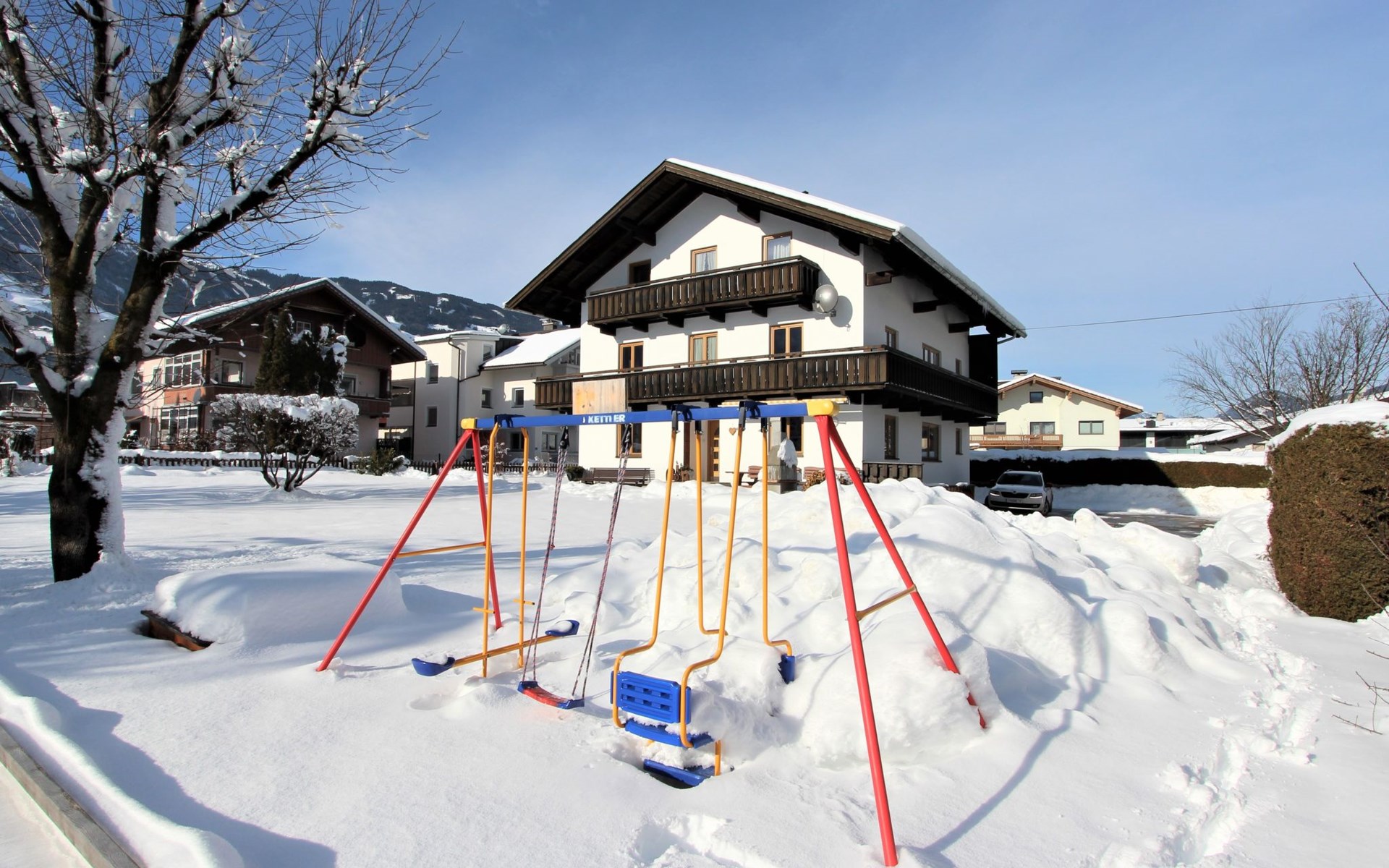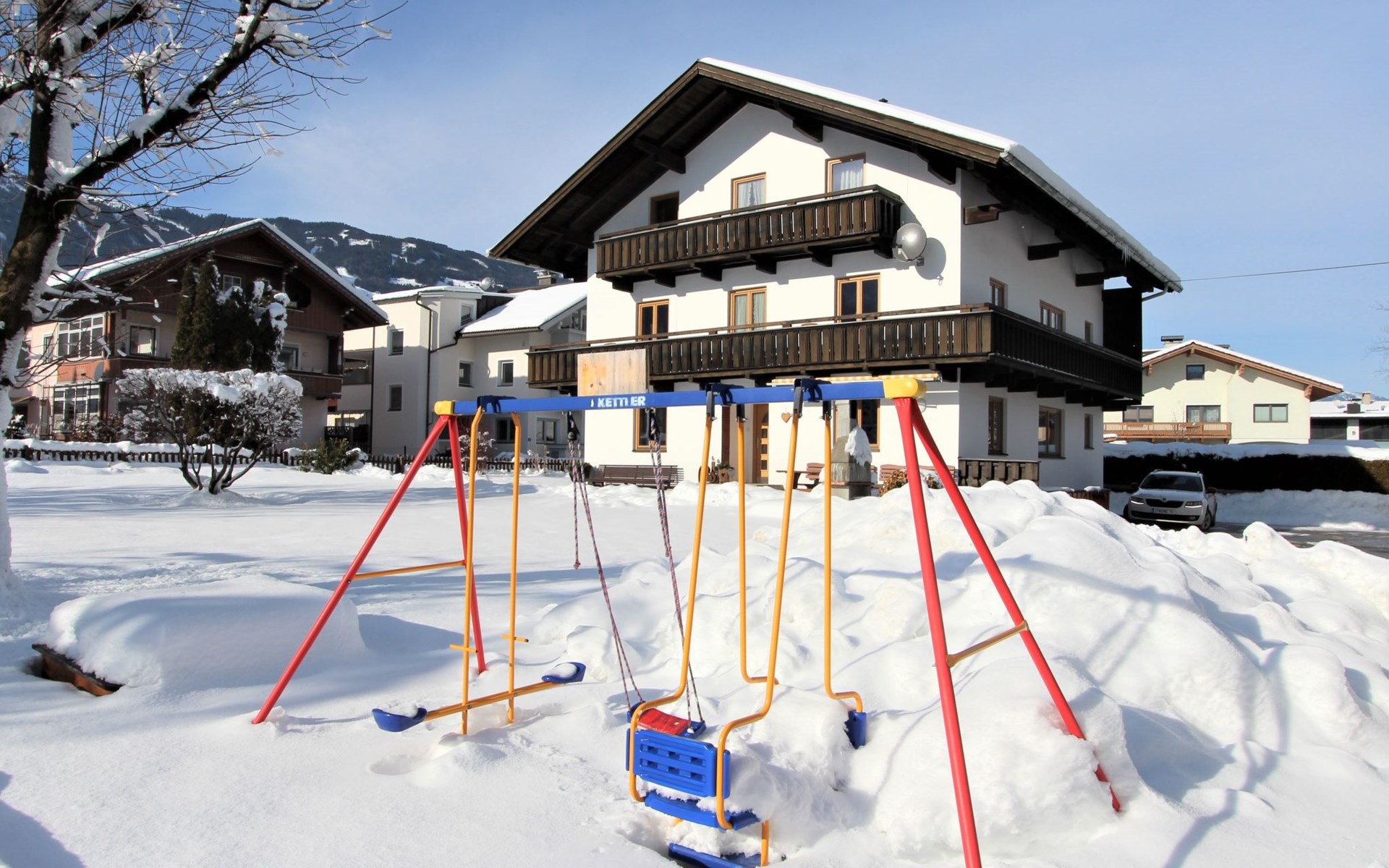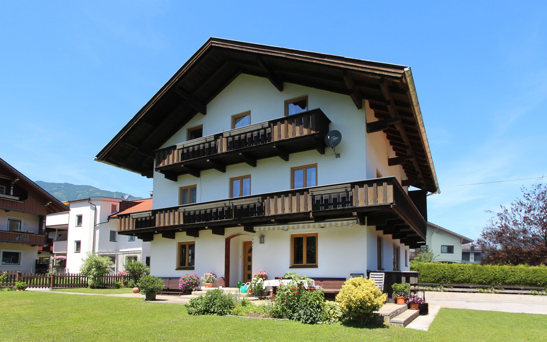 Uderns: Groot, gezellig huis "Sonnblick", van 3 verdiepingen. In de plaats Uderns, 2.5 km van het centrum van Fügen, 4 km van het centrum van Kaltenbach, centrale, zonnige ligging in een woonwijk, 7 km van het meer, 3 km van het skigebied. Voor alleengebruik: terrein 1.000 m2, groot, mooie, verzorgde tuin 350 m2 met bloemen en bomen, ligweide. Kinderspeelplaats (schommel, zandbak). In het huis: Internet (WiFi), bergruimte voor fietsen, berging voor ski's, centrale verwarming, wasmachine. Toegangsweg tot aan het huis. Parkeerplaats (voor 6 auto's) bij het huis. Supermarkt 500 m, restaurant 100 m, bushalte "Uderns Bahnhof" 200 m, treinstation "Uderns Bahnhof" 200 m, openluchtzwembad 2 km, overdekt zwembad 2 km, thermaalbad "Erlebnistherme Fügen" 2 km, meer (zwemmen) "Schlitterer Badesee" 7 km. Golfterrein (18 holes) 1 km, wandelroutes 100 m vanaf het huis, fietspad 200 m, kabelbaan op 3 km, ski faciliteiten 3 km, skibushalte 200 m. Attracties in de buurt: Theaterfestival Steudltenn 50 m. Bekende skigebieden kunnen gemakkelijk worden bereikt: Spieljoch 3 km, Hochzillertal-Hochfügen 4.5 km. Groepen jongeren uitsluitend op aanvraag. Gratis skibus. Gratis skibus naar het skigebied Spieljoch en Hochzillertal.