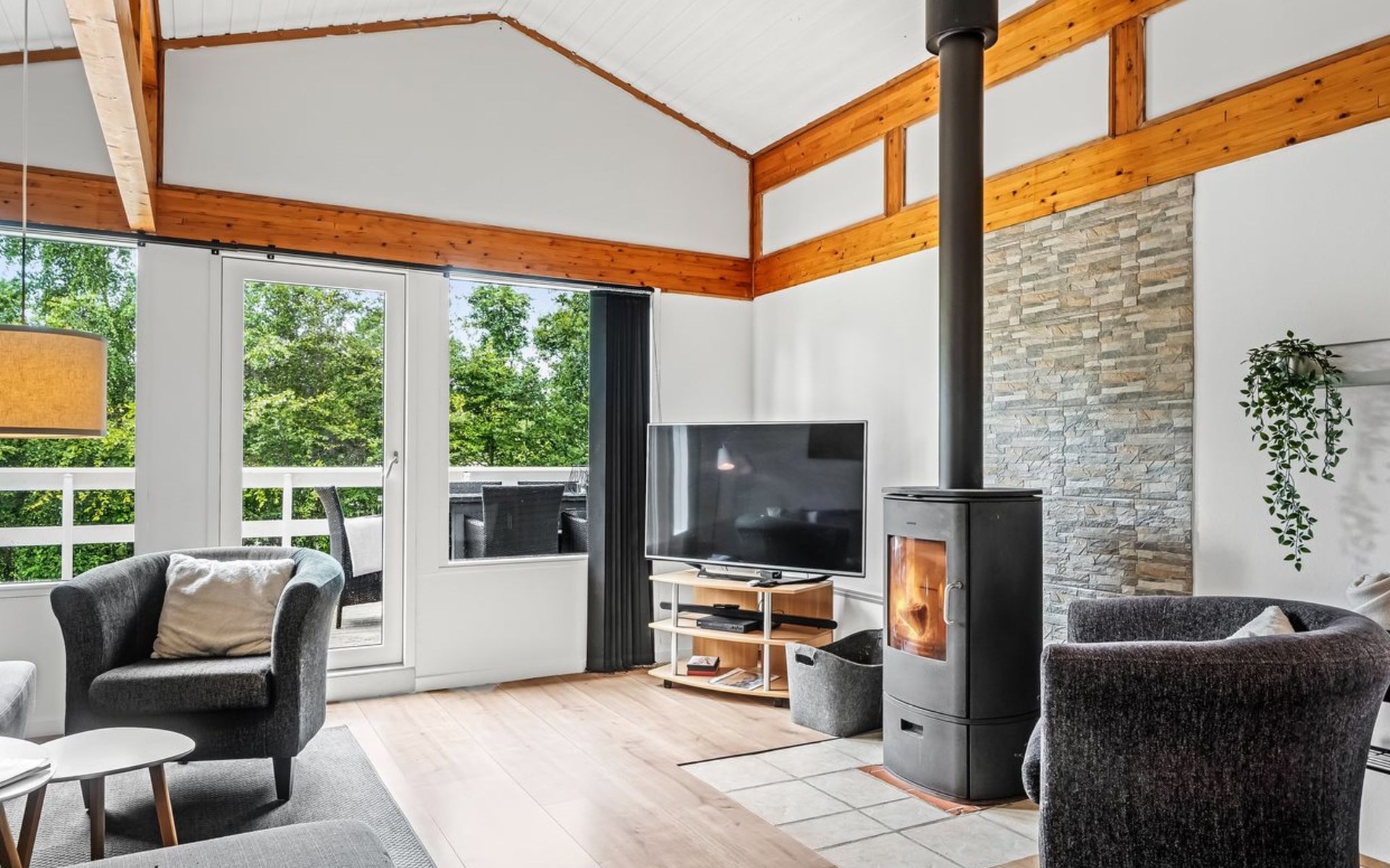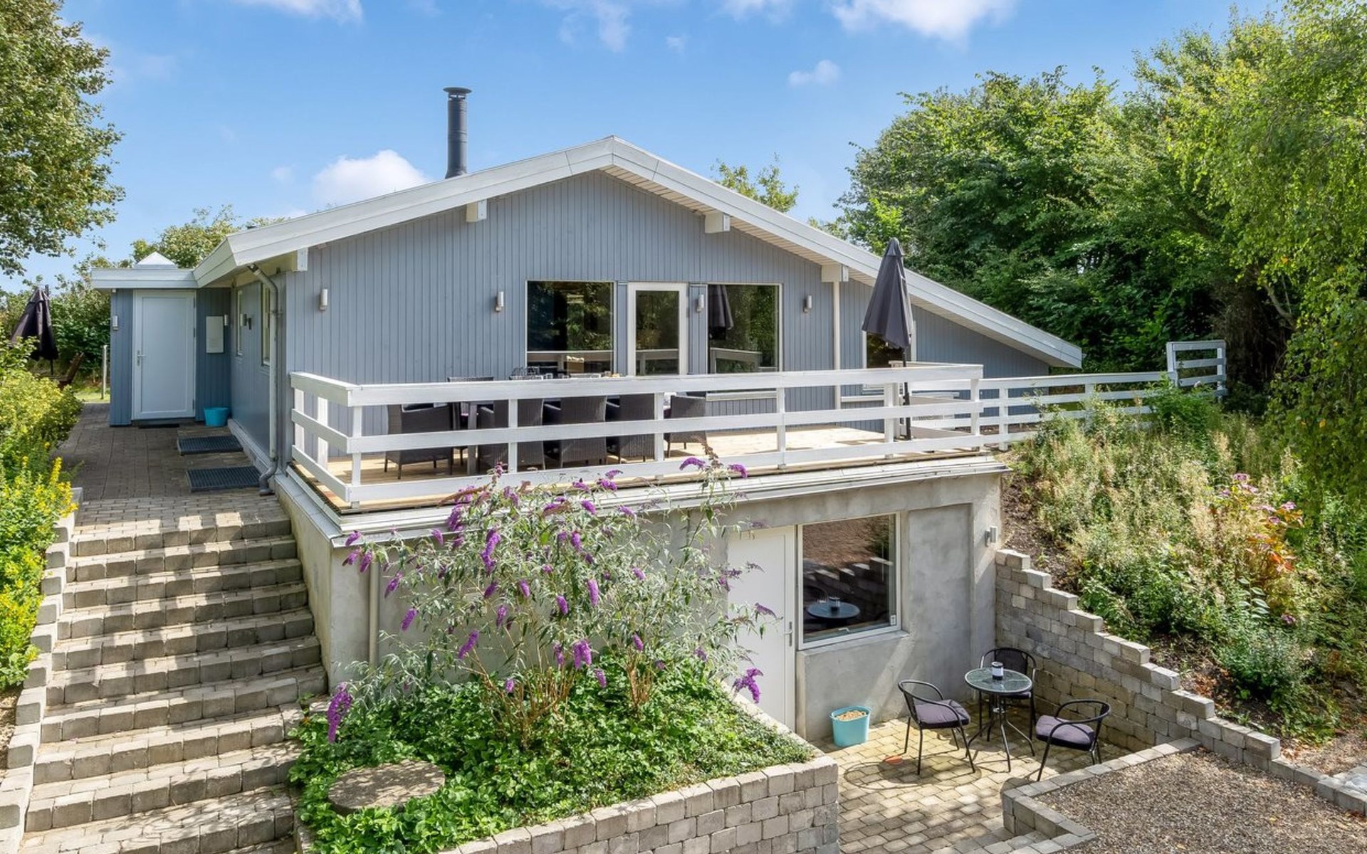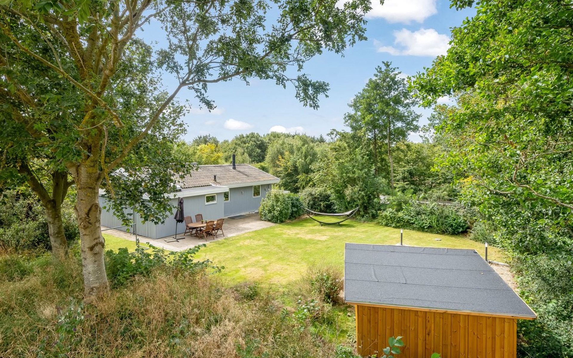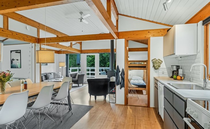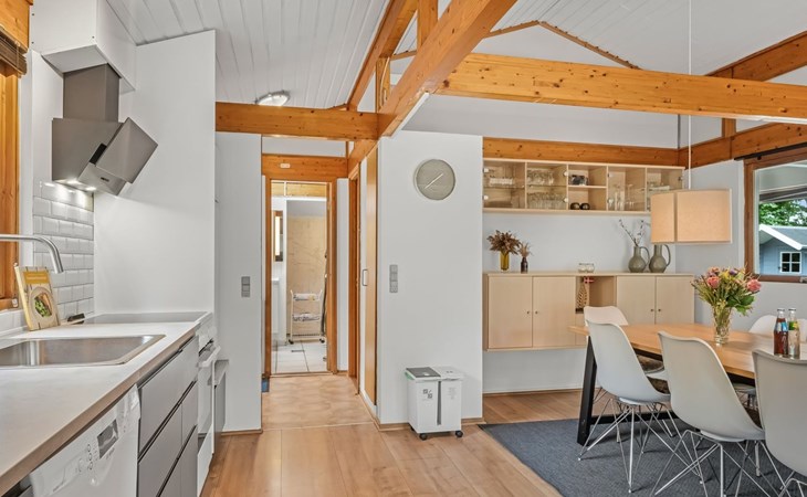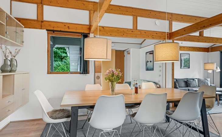 Eengezinswoning, bouwjaar 1979. Voor alleengebruik: wild terrein 1.387 m2. Terras (50 m2), barbecue, kinderspeelplaats (schommel). In het huis: tafelvoetbal, wasmachine, droger. Parkeerplaats bij het huis. Oplaadstation. Levensmiddelenwinkel 7 km. De eigenaar accepteert geen jeugdgroepen.