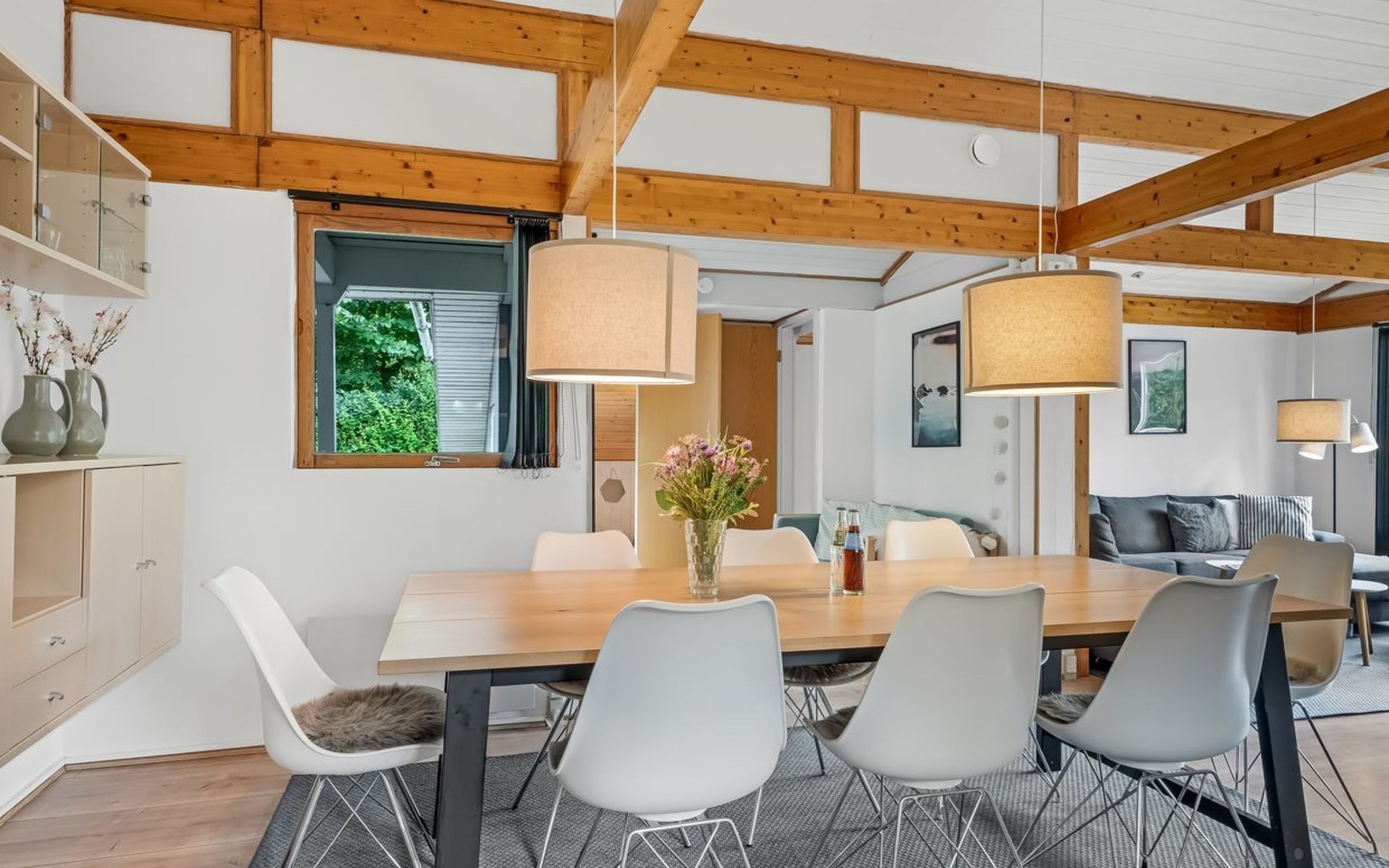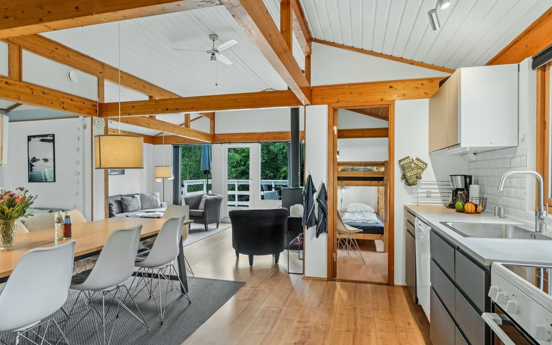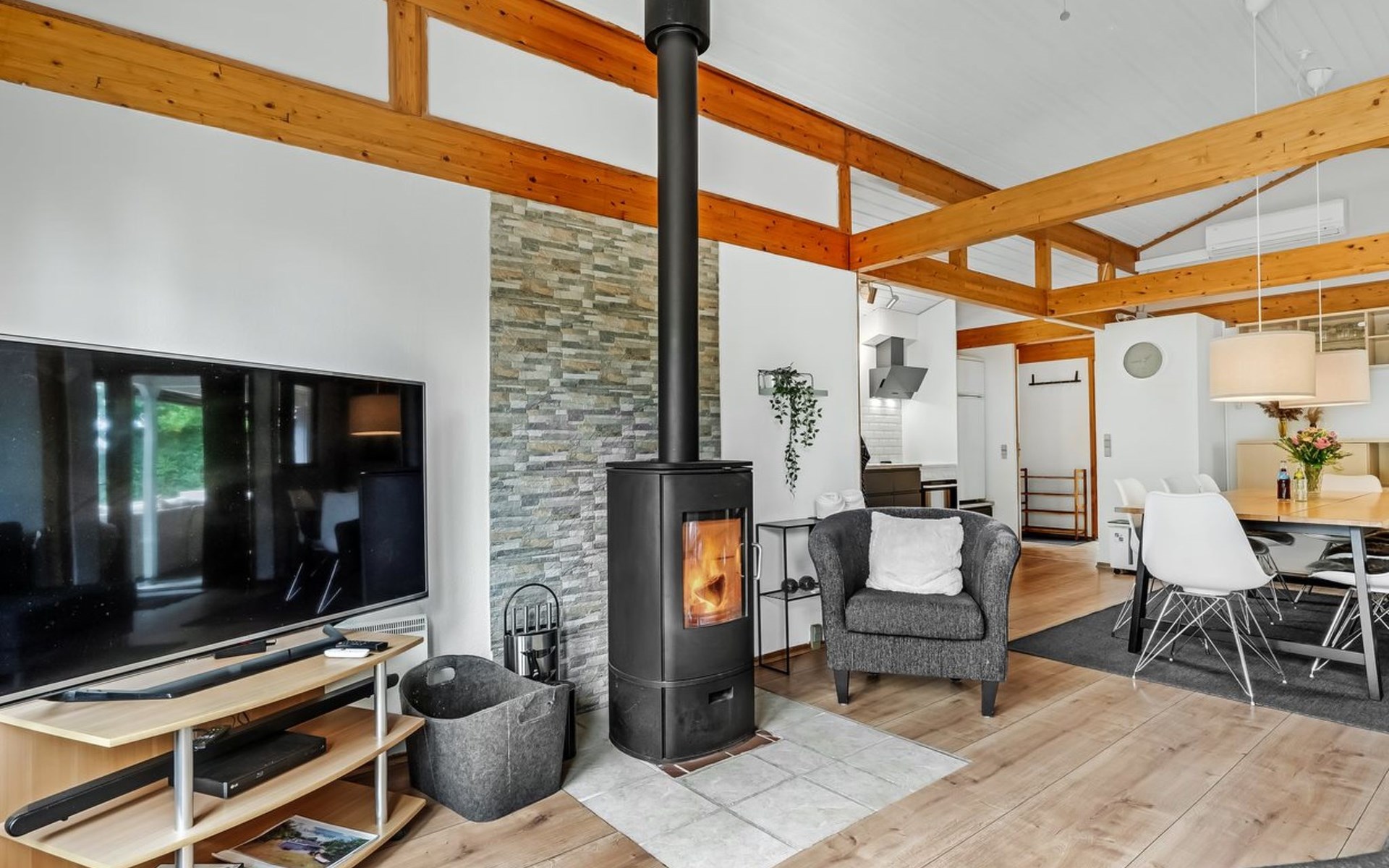 Eengezinswoning, bouwjaar 1979. Voor alleengebruik: wild terrein 1.387 m2. Terras (50 m2), barbecue, kinderspeelplaats (schommel). In het huis: tafelvoetbal, wasmachine, droger. Parkeerplaats bij het huis. Oplaadstation. Levensmiddelenwinkel 7 km. De eigenaar accepteert geen jeugdgroepen.
