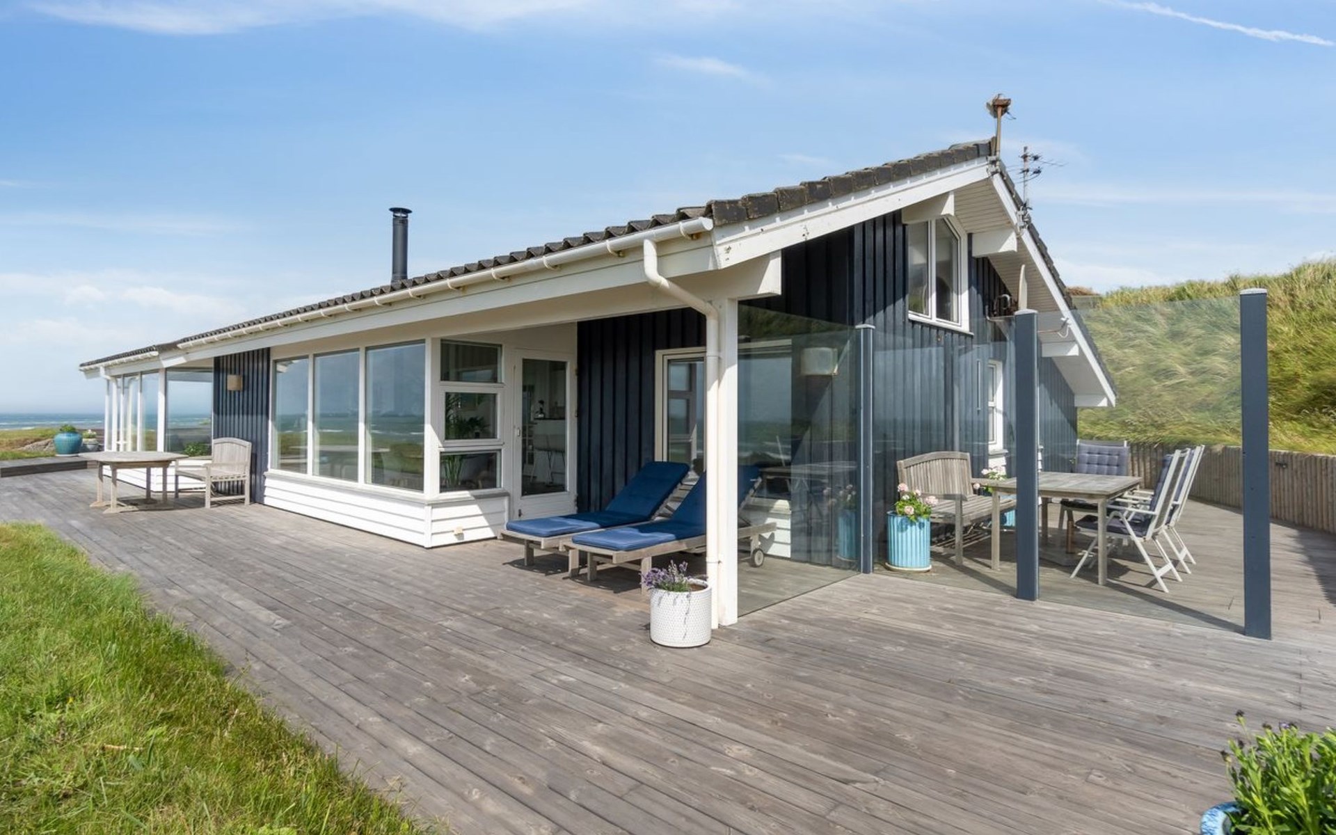 Eengezinswoning, bouwjaar 1996. 300 m van zee. Voor alleengebruik: wild terrein 2.500 m2. Terras (370 m2), barbecue. In het huis: sauna, wasmachine, droger. Parkeerplaats bij het huis. Oplaadstation. Levensmiddelenwinkel 2 km. Golfterrein 5 km. De eigenaar accepteert geen jeugdgroepen.