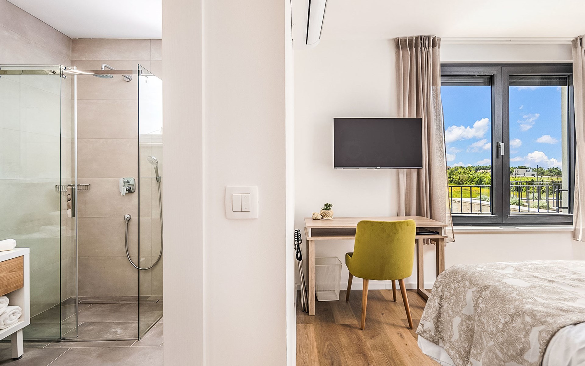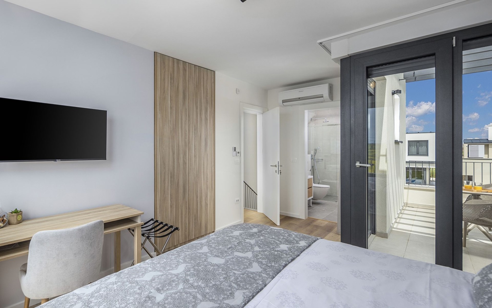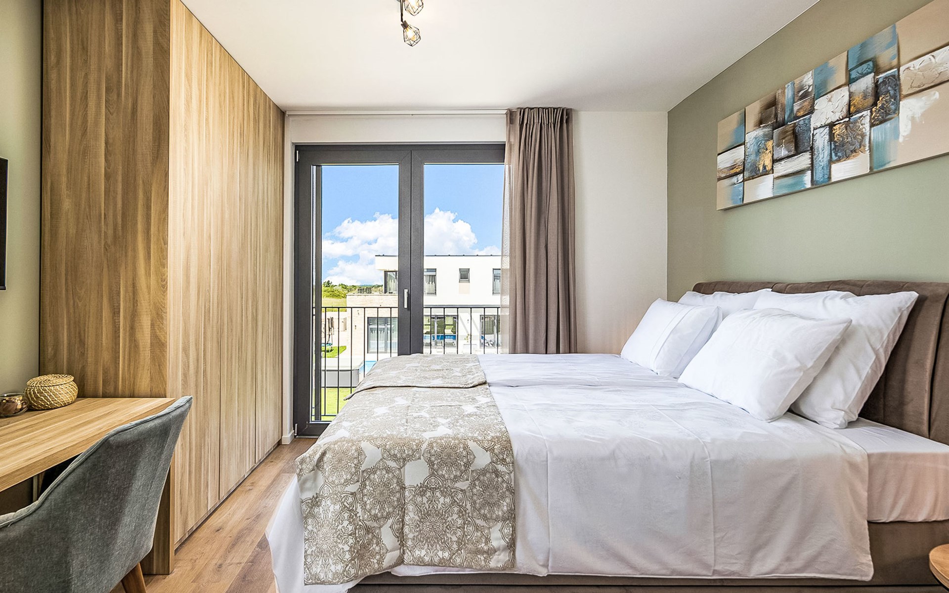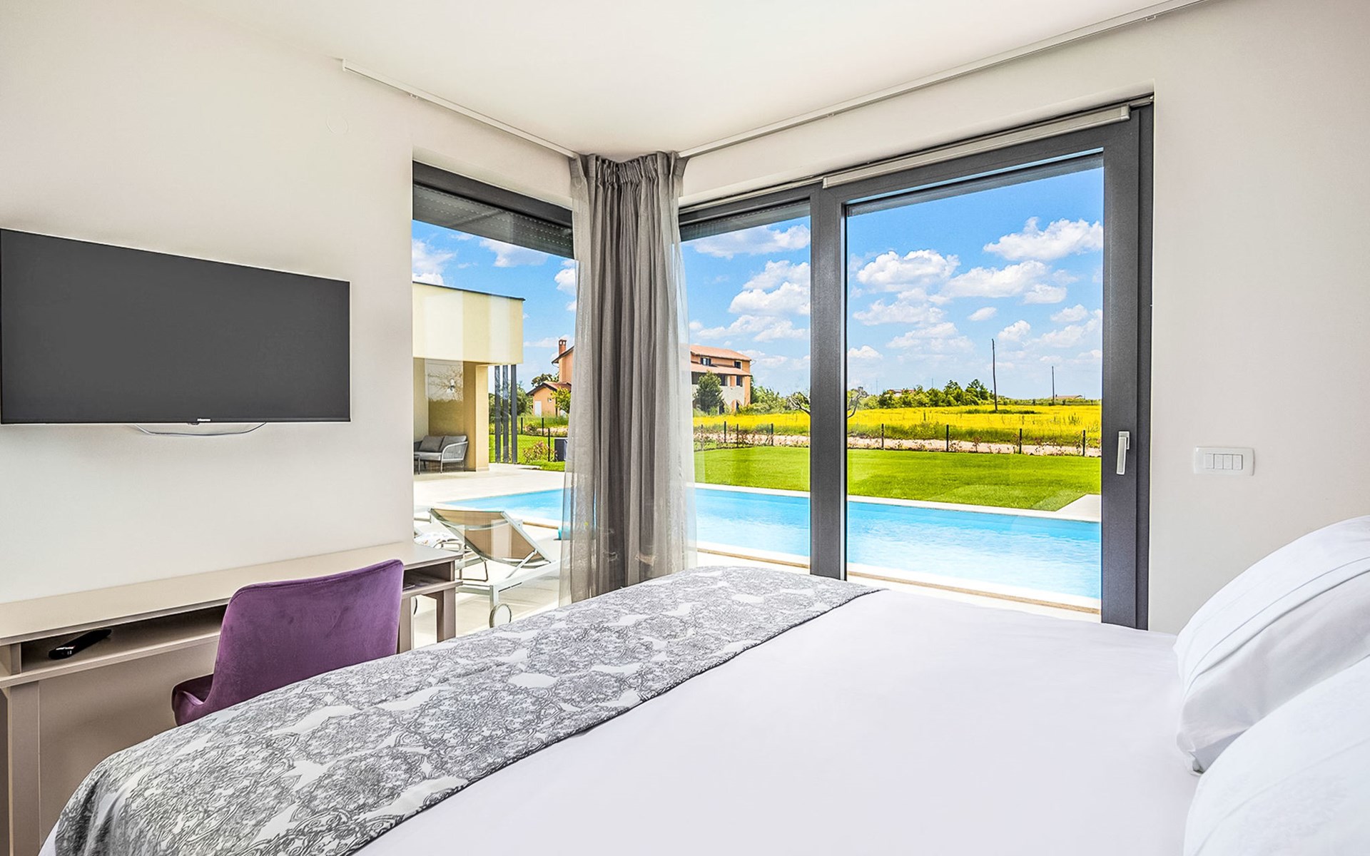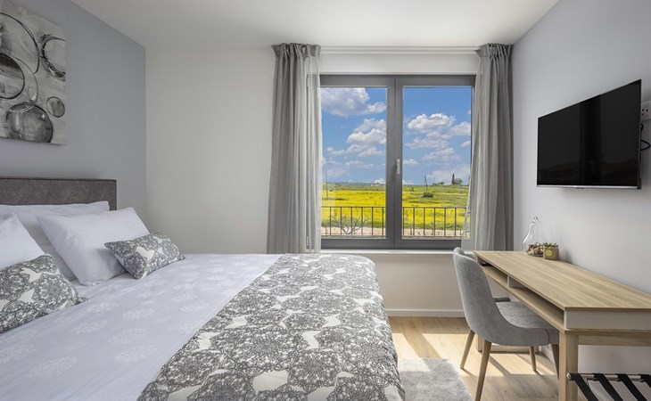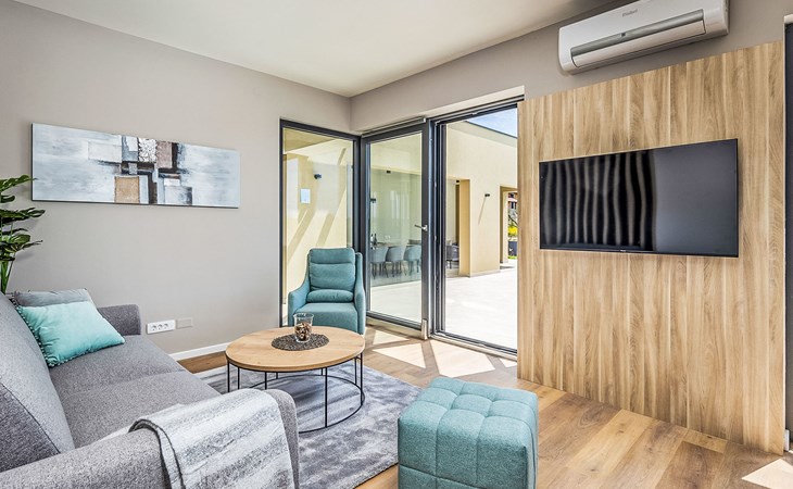 Luxueuze villa "Stella", van 2 verdiepingen, bouwjaar 2021. 1 km van het centrum van Nova Vas, 2 km van het centrum van Brtonigla, 10 km van het centrum van Novigrad, 8.2 km van zee. Voor alleengebruik: terrein 900 m2 (omheind) met gazon, openluchtzwembad hoekig, verwarmd (4 x 10 m, 135 cm diepte, seizoensgebonden beschikbaarheid: 10.Apr. - 01.Nov.) met trap. Buitendouche, hot tub, badminton, terras (10 m2), tuinmeubelen, grill. In het huis: internetaansluiting, trampoline, wasmachine, fietsen beschikbaar. Beschikbaar: fietsen (2), kinderfietsen (1). Toegangsweg (500 m onverharde weg). Parkeerplaats (voor 3 auto's) bij het huis op het terrein. Winkel 1.5 km, restaurant 650 m, bushalte 4 km, kiezelstrand 8.2 km. Wandelroutes, vanaf het huis, fietspad 100 m. Attracties in de buurt: Aquapark 2 km. Groepen jongeren uitsluitend op aanvraag. Vliegveld 20 km van het huis. Openluchtzwembad verwarmd (extra). Videobewaking bij de oprit en parkeerplaats.