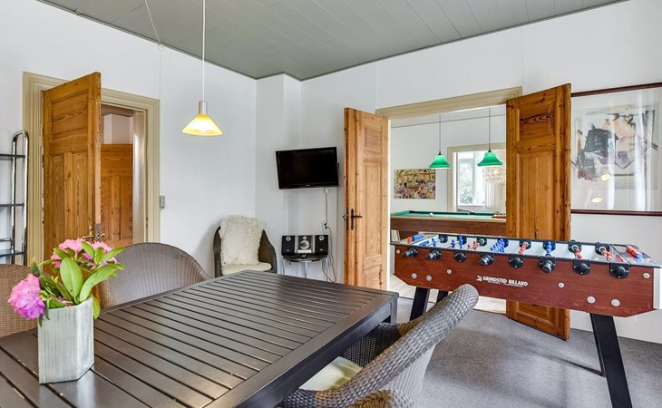 Eengezinswoning, bouwjaar 1900. 4 km van zee. Voor alleengebruik: wild terrein 3.700 m2. Terras (50 m2), kinderspeelplaats (schommel). In het huis: sauna, tafelvoetbal, wasmachine, droger. Parkeerplaats bij het huis. Carport. Oplaadstation. Levensmiddelenwinkel 1 km. De eigenaar accepteert geen jeugdgroepen.