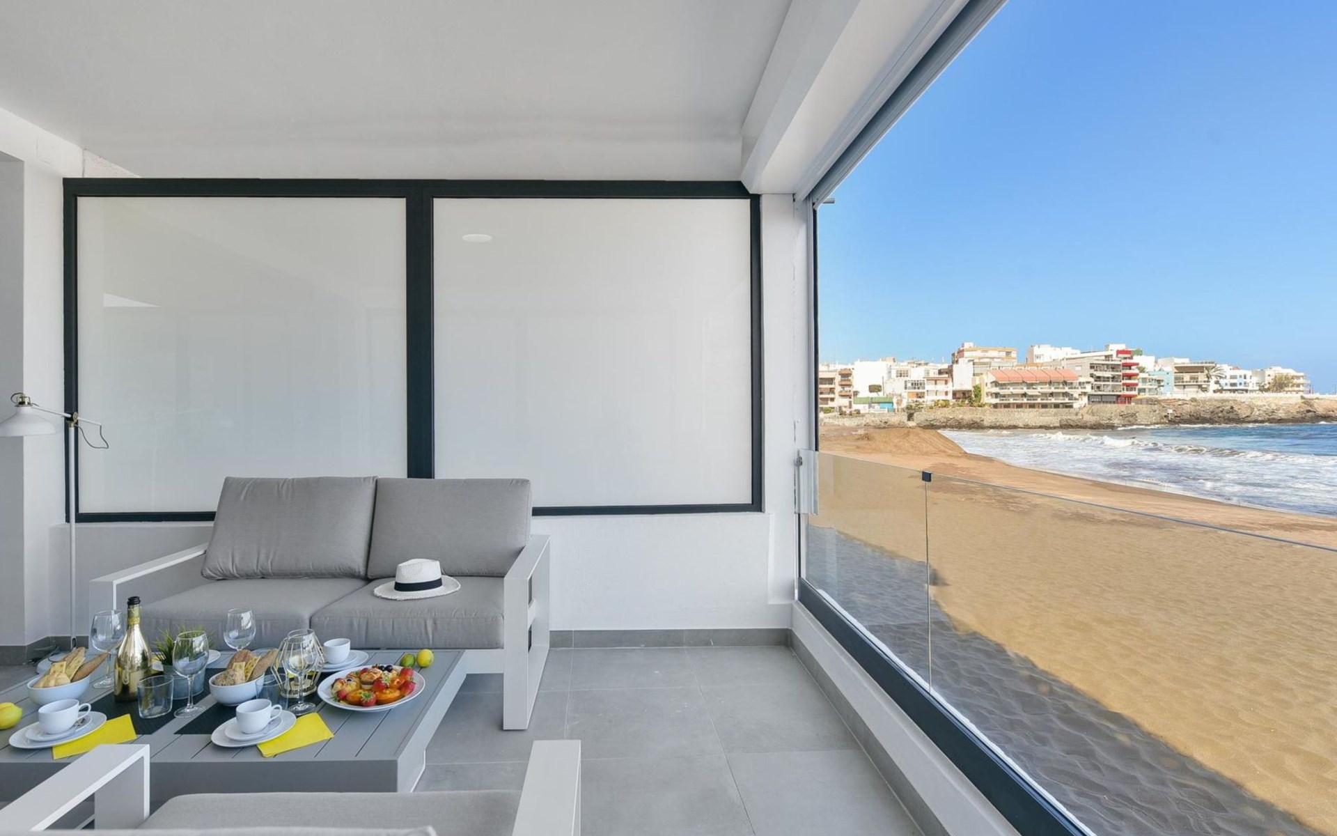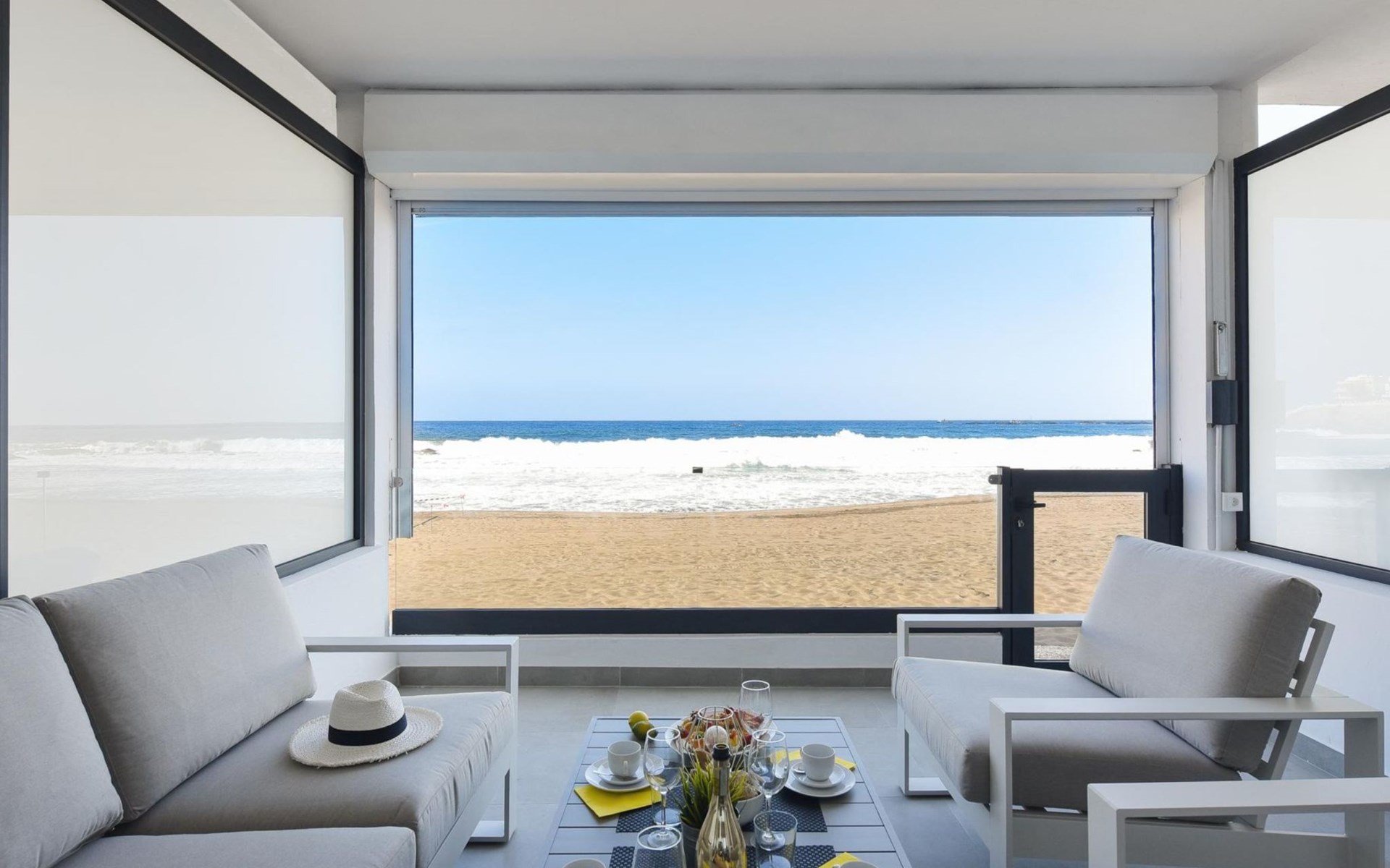 *Bij late aankomst zijn de volgende bedragen in contant te betalen: 20:30-22:00: 30€, 22:00-00:00: 50€, 00:00-01:30: 80€. Zeer moderne, comfortabel Huis met 3 woningen "La Terraza de Salinetas". In de plaats, 2 km van het centrum van Las Palmas capital city, rustige, zonnige ligging, directe toegang tot het strand. In het huis: air-conditioning, wasmachine. Winkel, levensmiddelenwinkel, supermarkt 200 m, winkelcentrum 500 m, restaurant 400 m, bushalte "Las Crucitas" 19 km, zandstrand "Playa de Las Canteras" 2 km kiezelstrand "Playa de Melenara" 100 m, stenenstrand "Playa de La Garita" 50 m. Baby uitrusting op aanvraag. Het objekt is geschikt voor 2 volwassenen + 2 kinderen. De eigenaar accepteert geen jeugdgroepen. De omgeving is gevoelig voor geluidsoverlast. Gelieve geen lawaai te maken en de rust te bewaren.