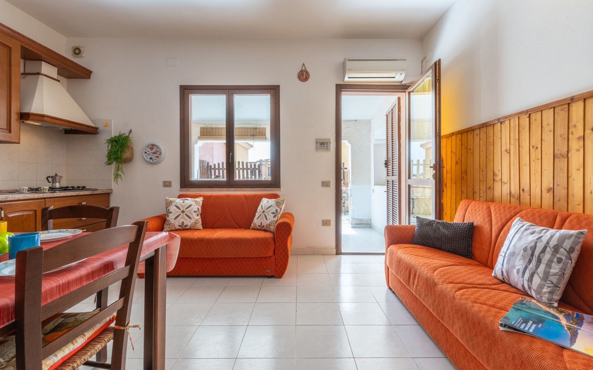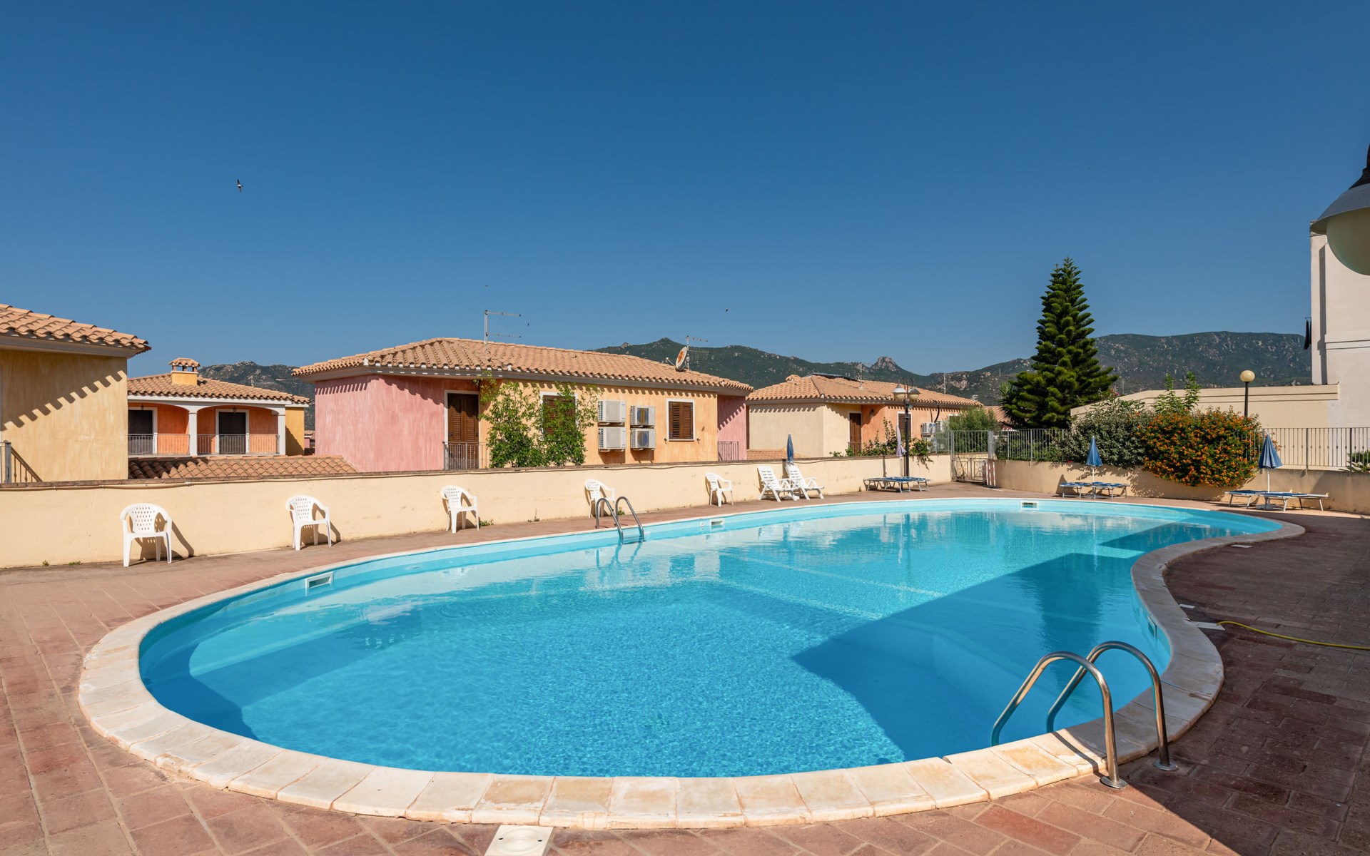 Villasimius: Gezellige, comfortabele residentie. Aan de rand van de plaats Villasimius, rustige, zonnige ligging, 3 km van zee, 3 km van het strand. Voor medegebruik: openluchtzwembad (5 x 17 m, 85 m2, 70 - 220 cm diepte, seizoensgebonden beschikbaarheid: 15.Jun. - 15.Sep. openingstijden zwembad: 10:00-13:00 en 17:00-20:00). Buitendouche, tennisbaan, barbecue. Voor alleengebruik: kleine tuin (omheind), openbare parkeerplaatsen in de straat. Supermarkt 100 m, restaurant 500 m, bar 100 m, bushalte "via Roma La Lanterna" 2 km, station "Cagliari" 60 km, veerboot "Cagliari" 60 km. Jachthaven 4 km, golfterrein (18 holes) 3 km. Attracties in de buurt: Porto Giunco 3 km, Costa Rei 8 km, Cagliari 50 km. Auto noodzakelijk. Badmuts verplicht.