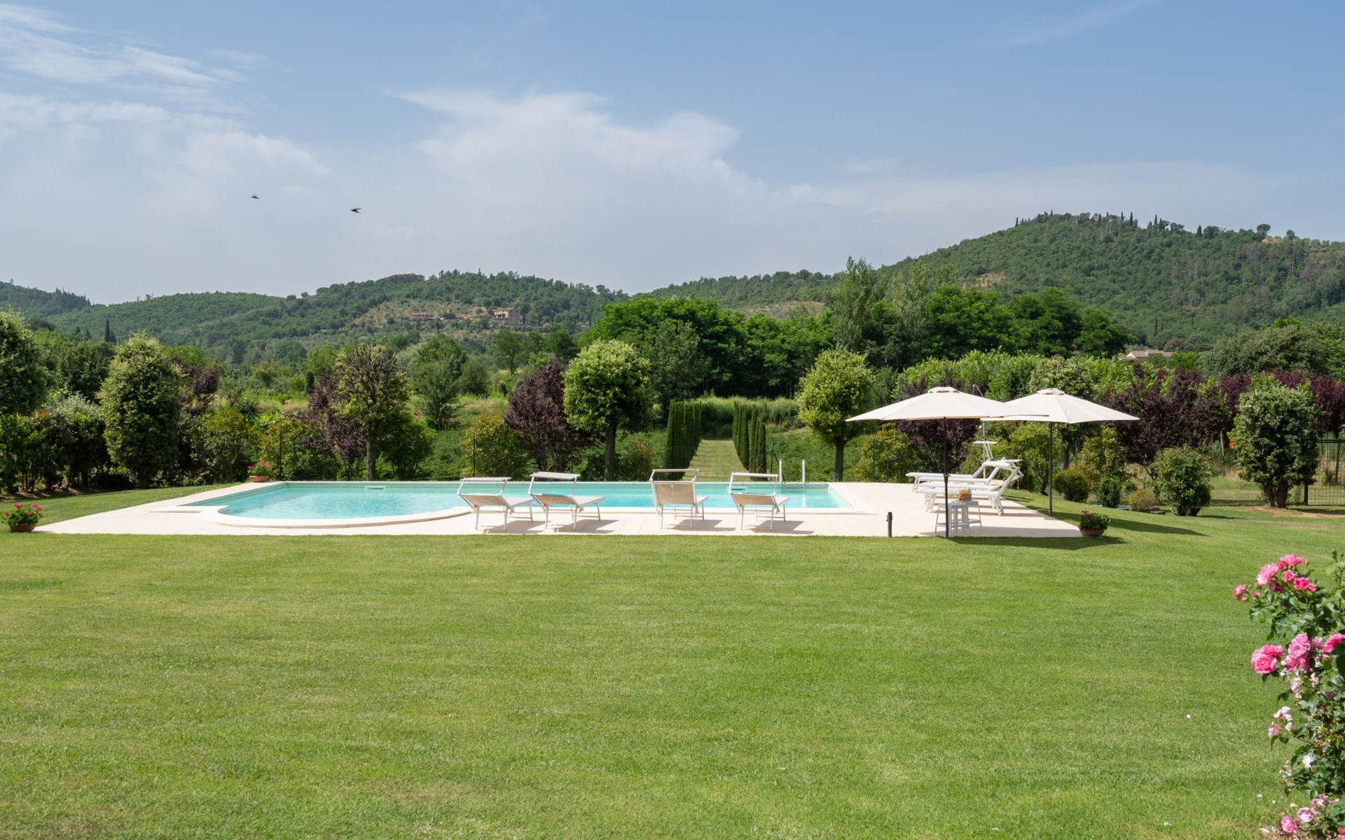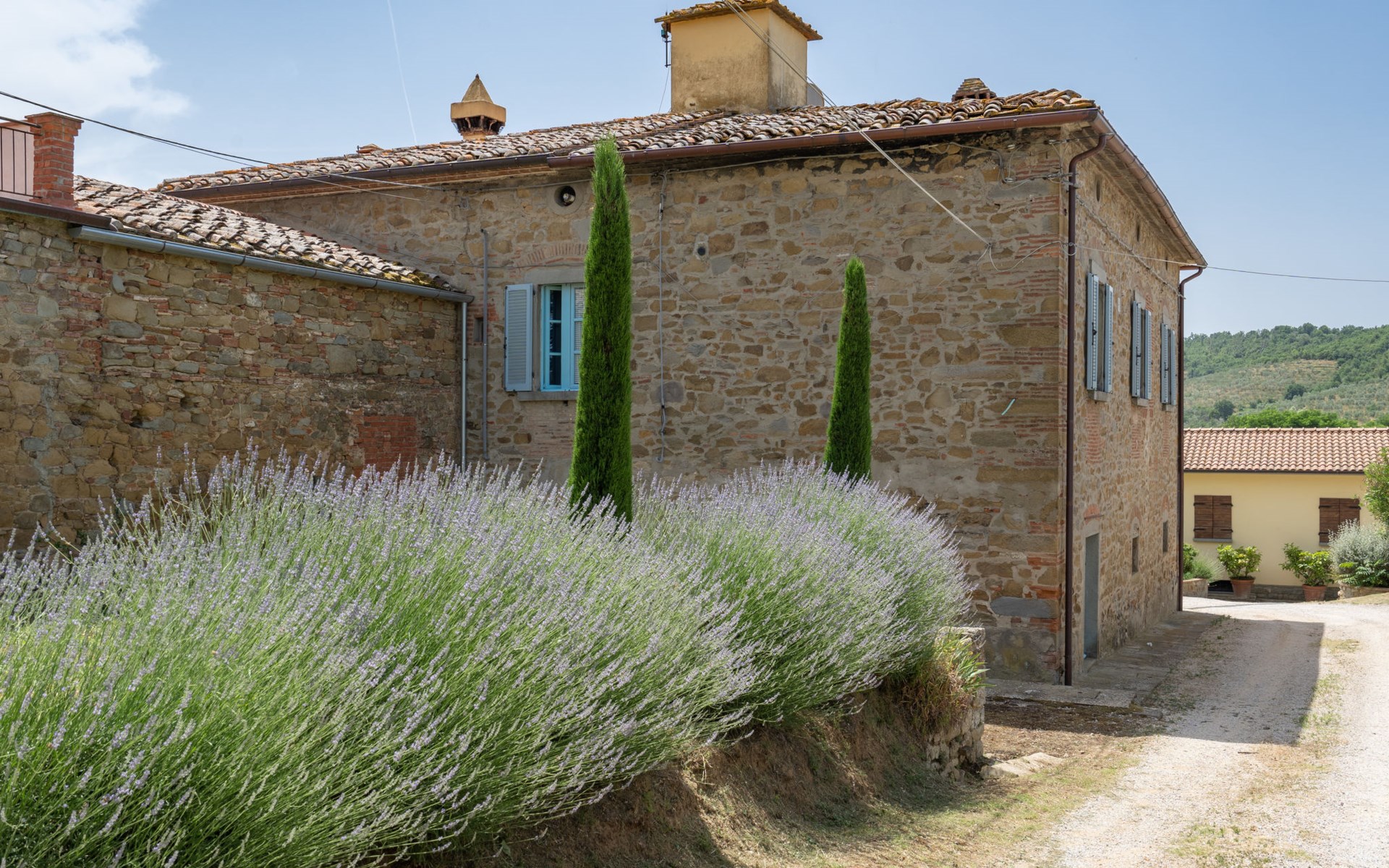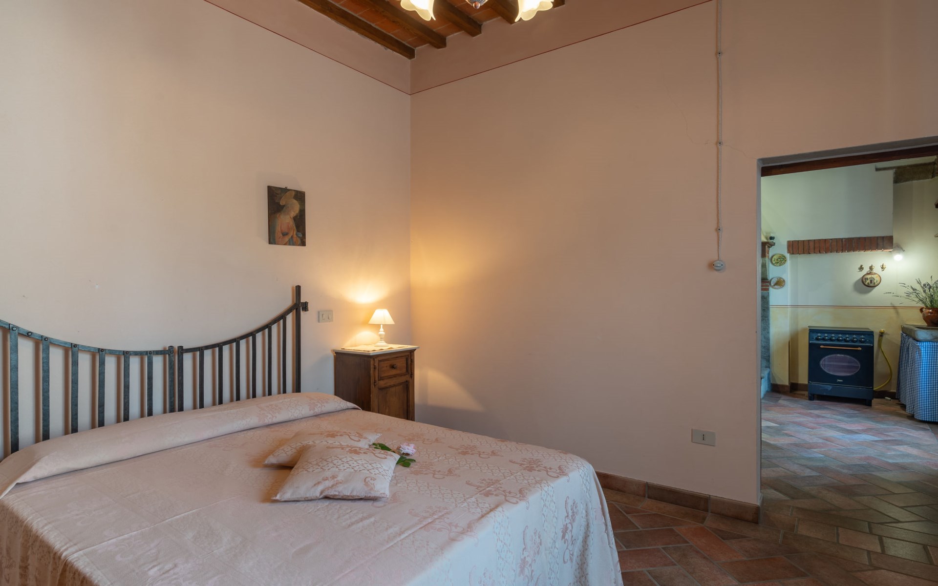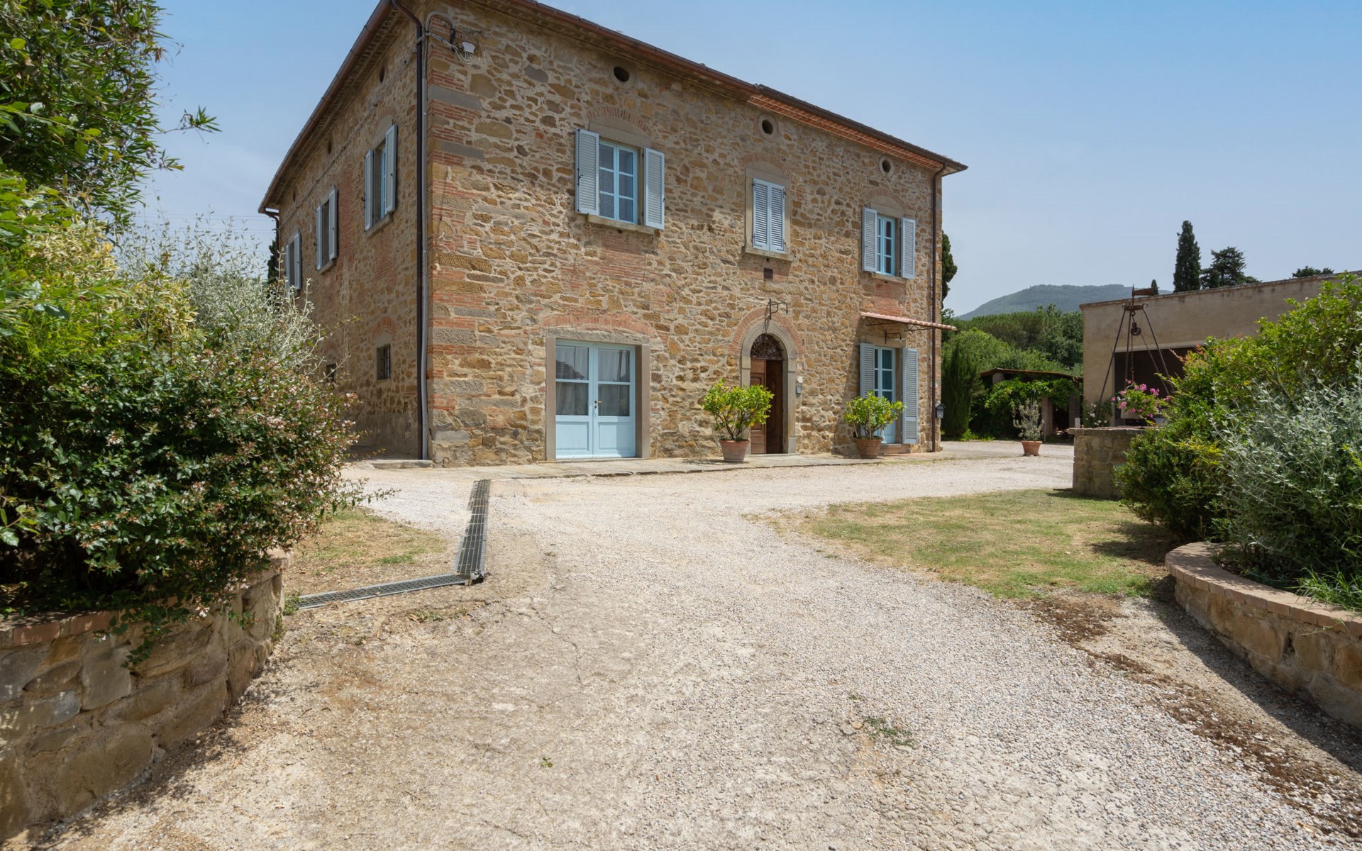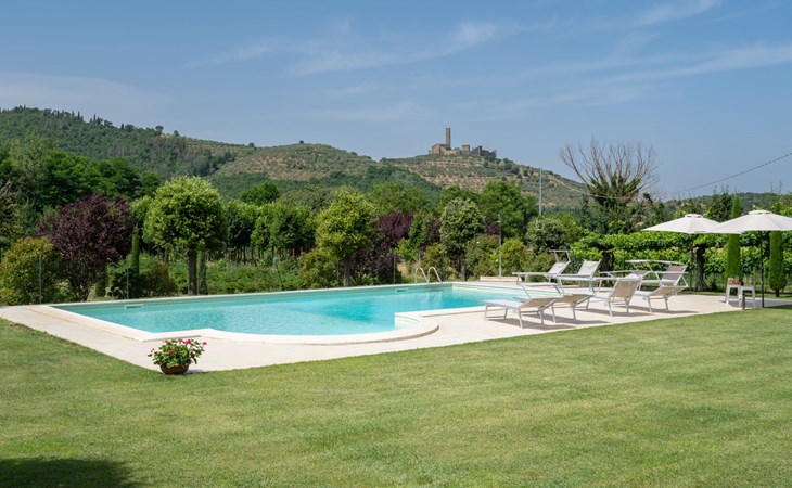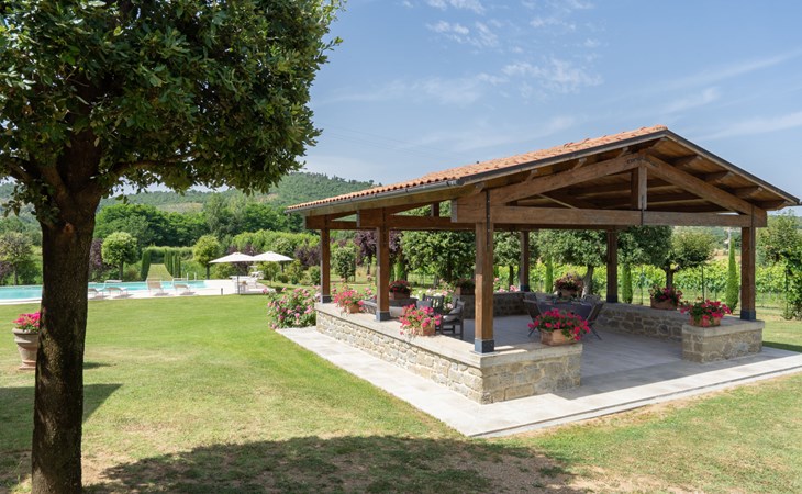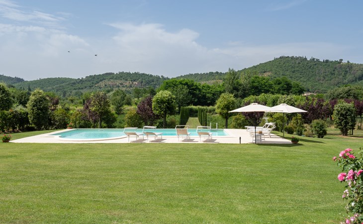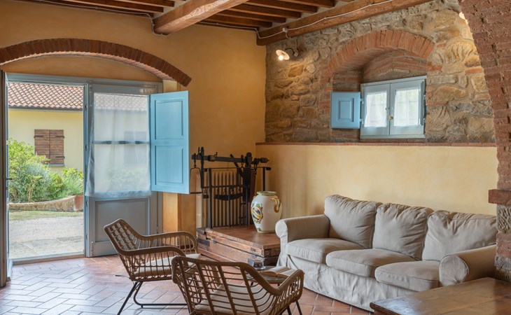 Cottage "Santa Lucia", eenzijdig aangebouwd. 2.5 km van het centrum van Castiglion Fiorentino, 20 km van het centrum van Arezzo, 12 km van het centrum van Cortona, 35 km van het meer. Voor medegebruik: terrein 3 ha, boomgaard. Voor alleengebruik: terrein 1.500 m2, tuin gazon en bomen, openluchtzwembad (12 x 6 m, 140 - 200 cm diepte, seizoensgebonden beschikbaarheid: 01.Mei. - 30.Sep.). Buitendouche, parkeerplaats op het terrein. Winkel 1 km, supermarkt 2.5 km, bushalte 1 km, treinstation "Castiglion Fiorentino" 2.5 km, meer (zwemmen) "Trasimeno" 35 km. Golfterrein (9 holes) 20 km. Attracties in de buurt: Valdichiana Outlet Village 25 km.