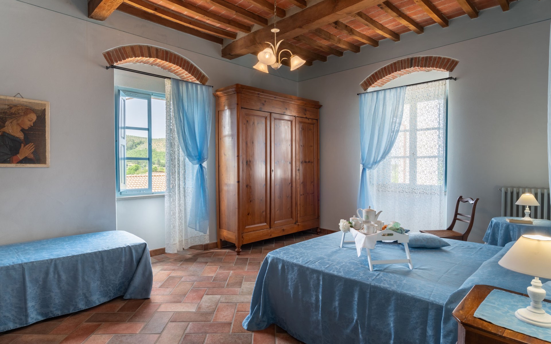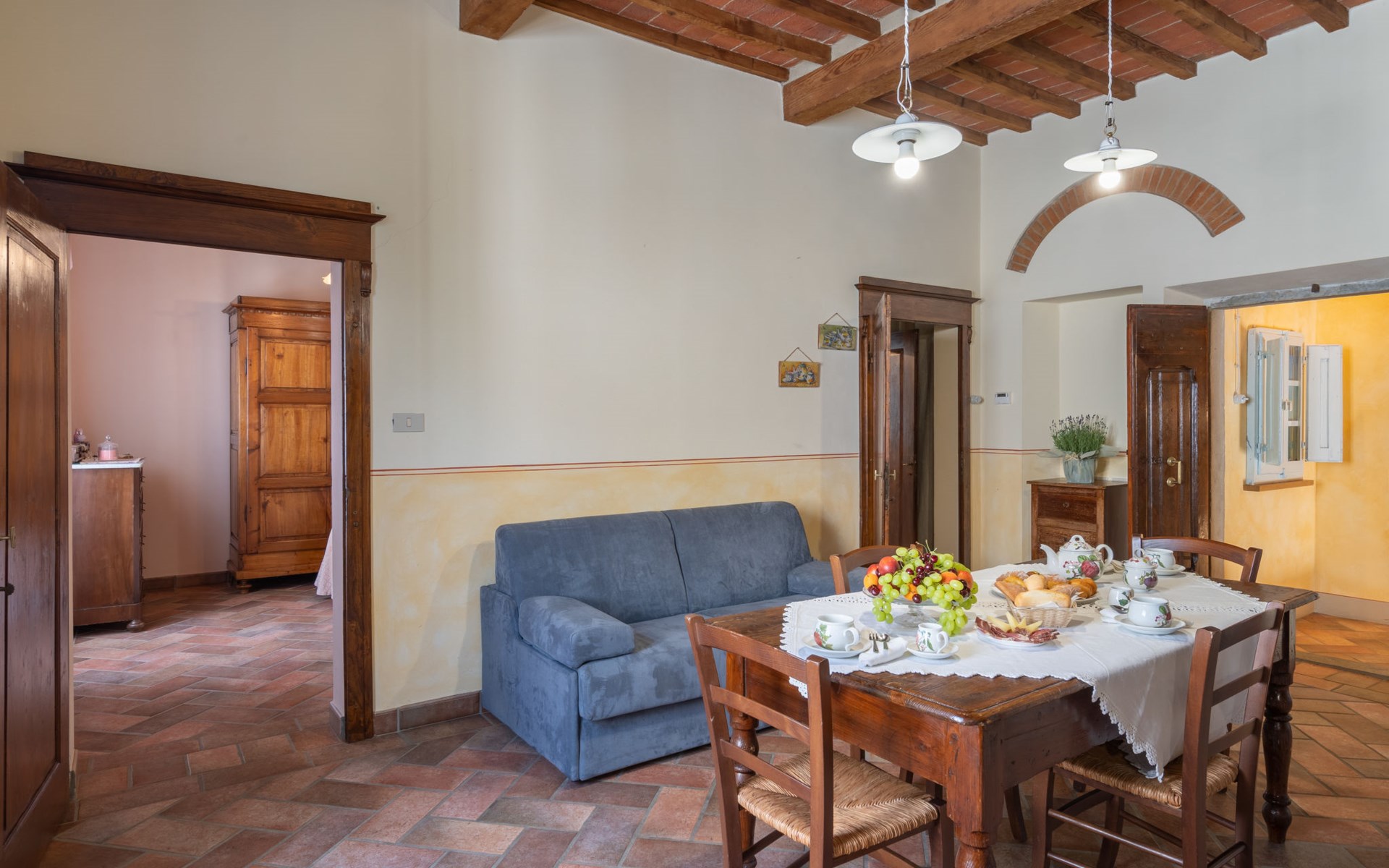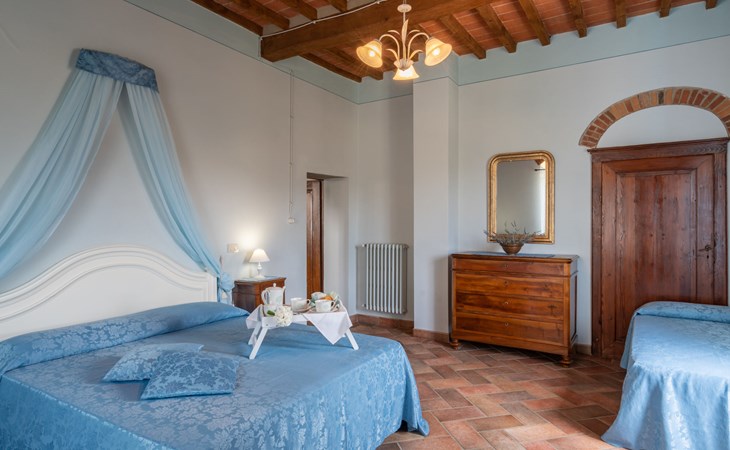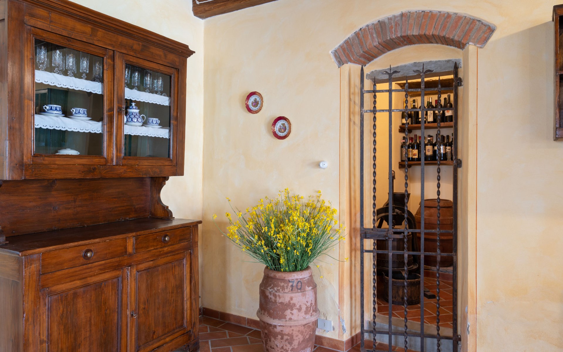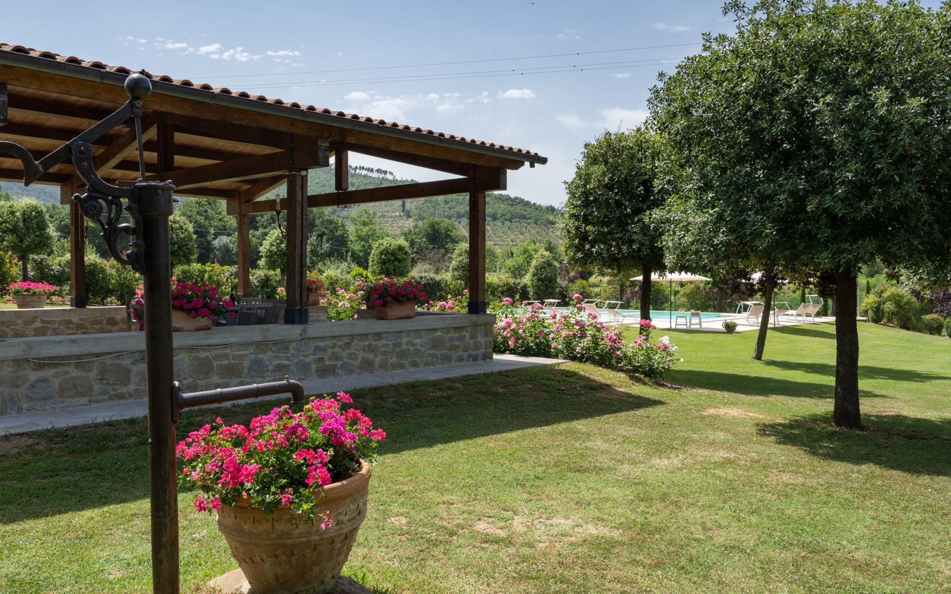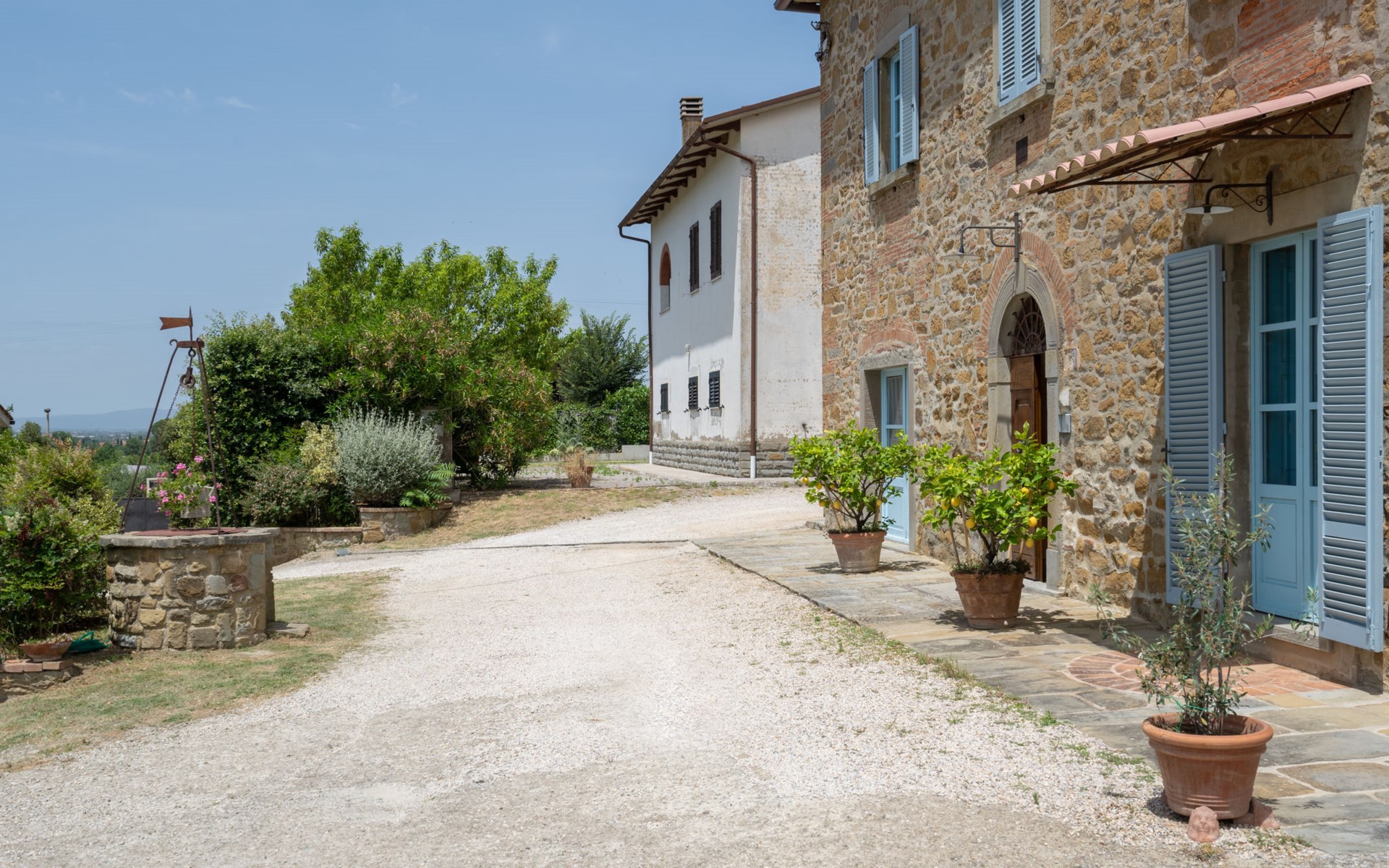 Cottage "Santa Lucia", eenzijdig aangebouwd. 2.5 km van het centrum van Castiglion Fiorentino, 20 km van het centrum van Arezzo, 12 km van het centrum van Cortona, 35 km van het meer. Voor medegebruik: terrein 3 ha, boomgaard. Voor alleengebruik: terrein 1.500 m2, tuin gazon en bomen, openluchtzwembad (12 x 6 m, 140 - 200 cm diepte, seizoensgebonden beschikbaarheid: 01.Mei. - 30.Sep.). Buitendouche, parkeerplaats op het terrein. Winkel 1 km, supermarkt 2.5 km, bushalte 1 km, treinstation "Castiglion Fiorentino" 2.5 km, meer (zwemmen) "Trasimeno" 35 km. Golfterrein (9 holes) 20 km. Attracties in de buurt: Valdichiana Outlet Village 25 km.