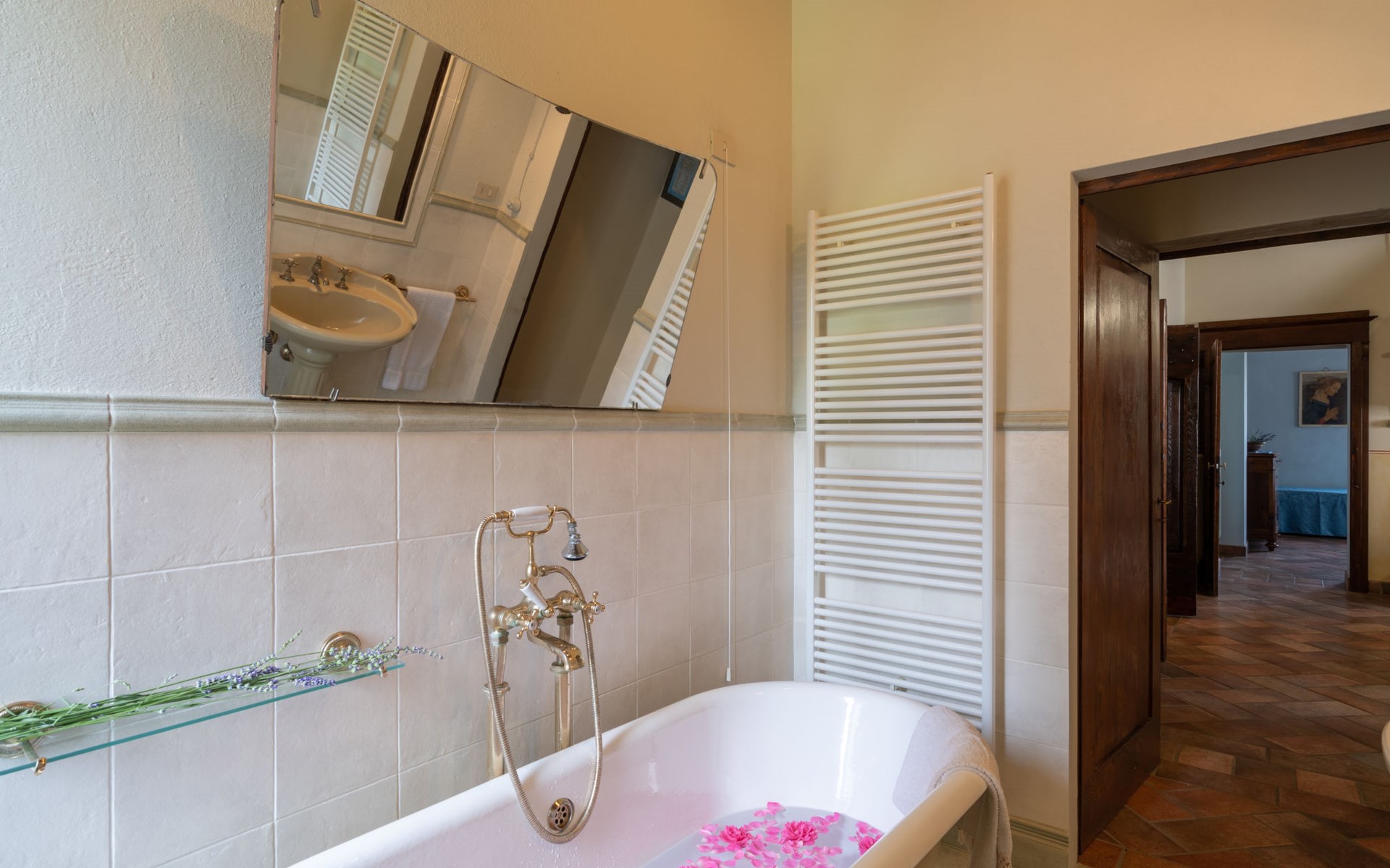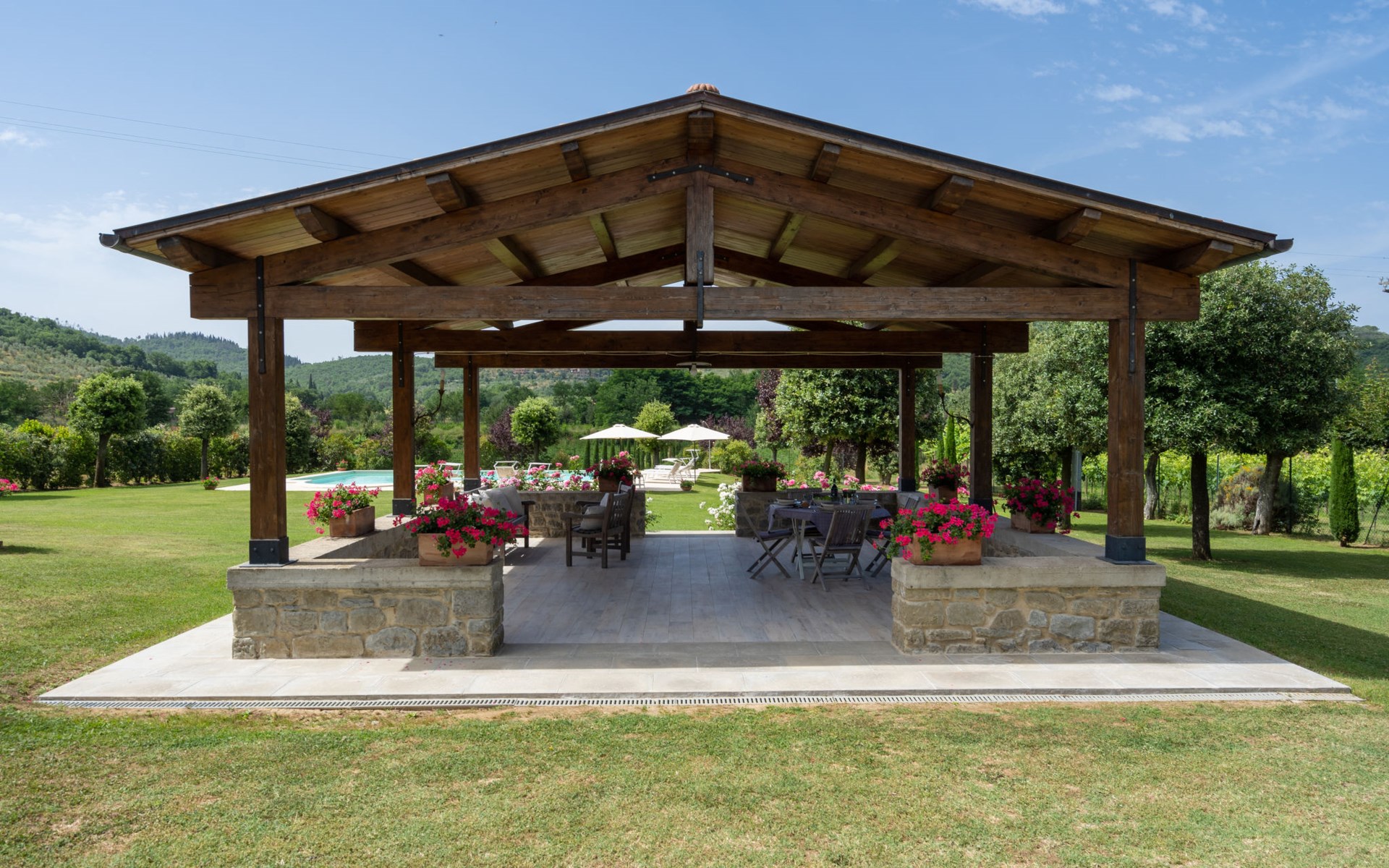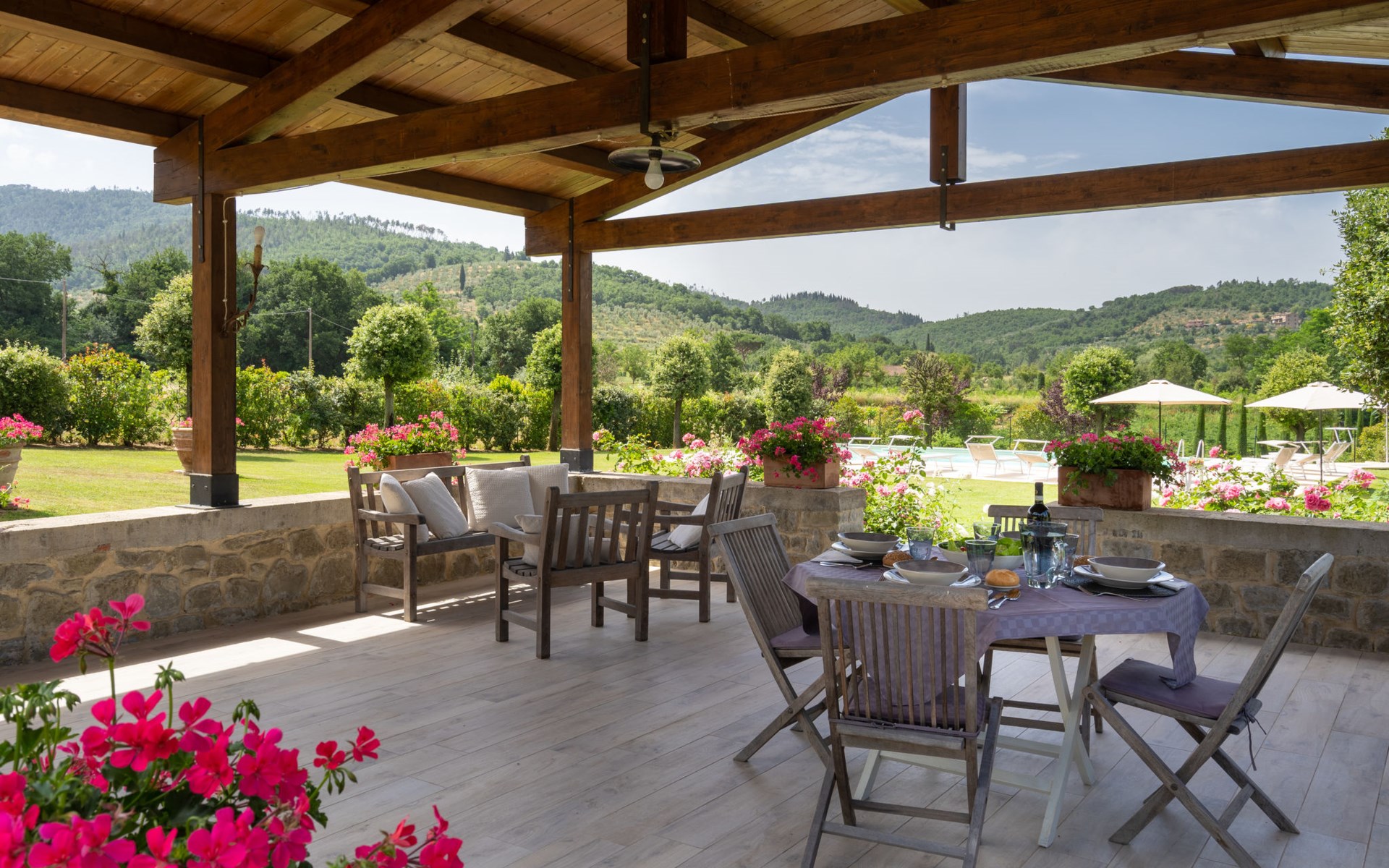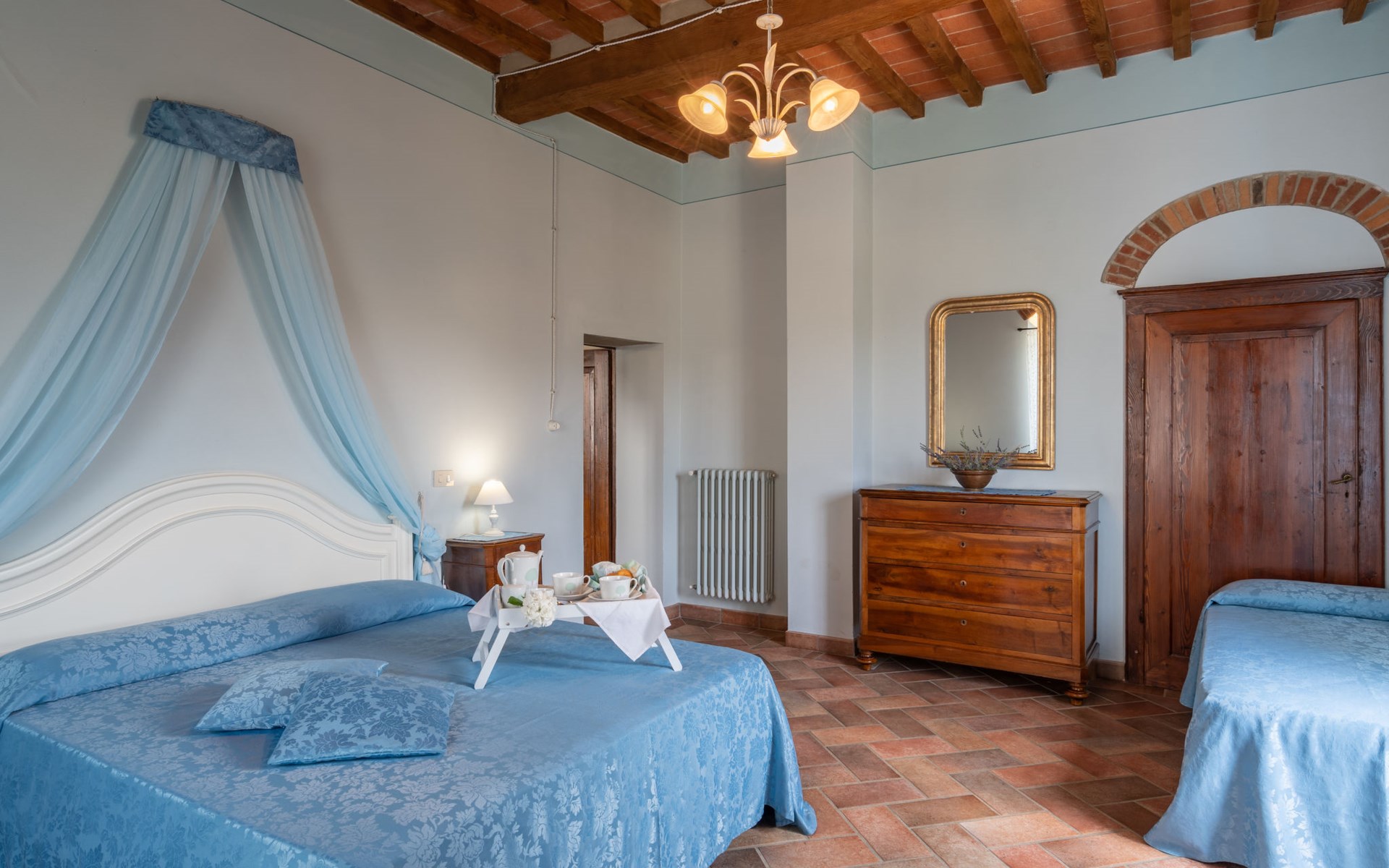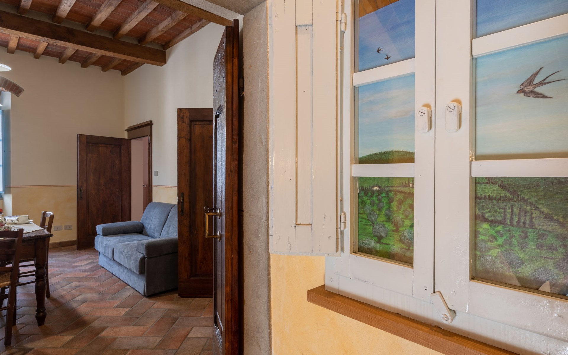 Cottage "Santa Lucia", eenzijdig aangebouwd. 2.5 km van het centrum van Castiglion Fiorentino, 20 km van het centrum van Arezzo, 12 km van het centrum van Cortona, 35 km van het meer. Voor medegebruik: terrein 3 ha, boomgaard. Voor alleengebruik: terrein 1.500 m2, tuin gazon en bomen, openluchtzwembad (12 x 6 m, 140 - 200 cm diepte, seizoensgebonden beschikbaarheid: 01.Mei. - 30.Sep.). Buitendouche, parkeerplaats op het terrein. Winkel 1 km, supermarkt 2.5 km, bushalte 1 km, treinstation "Castiglion Fiorentino" 2.5 km, meer (zwemmen) "Trasimeno" 35 km. Golfterrein (9 holes) 20 km. Attracties in de buurt: Valdichiana Outlet Village 25 km.