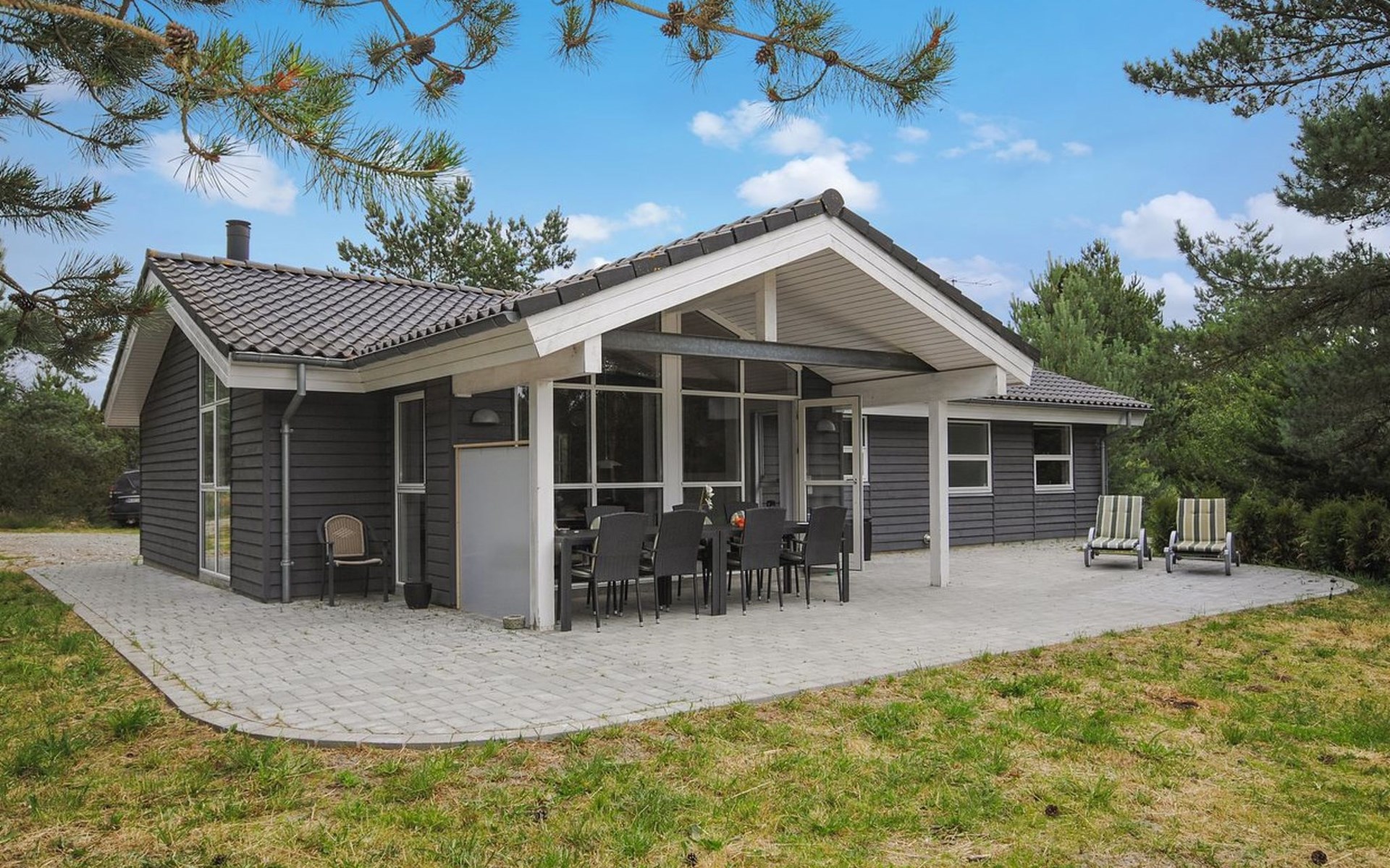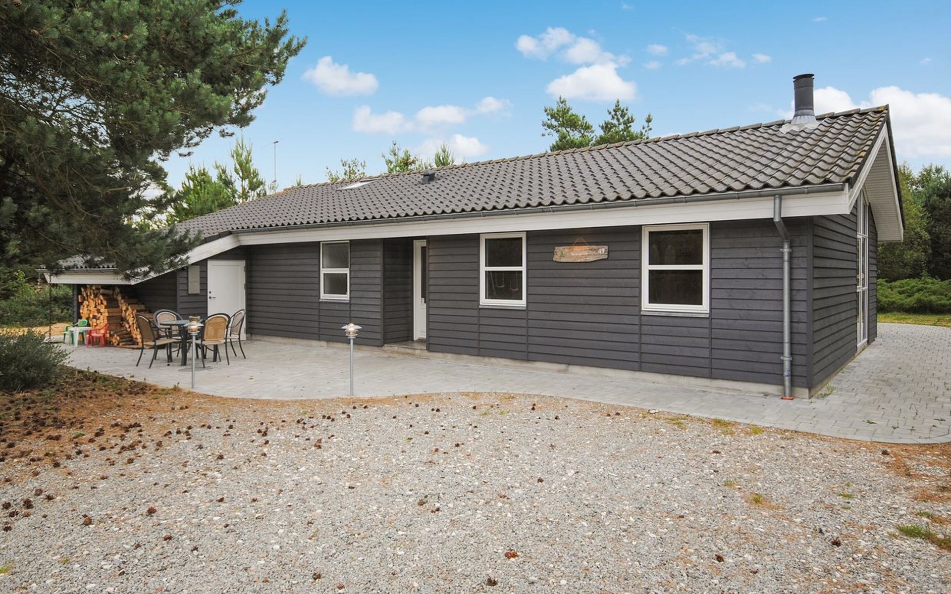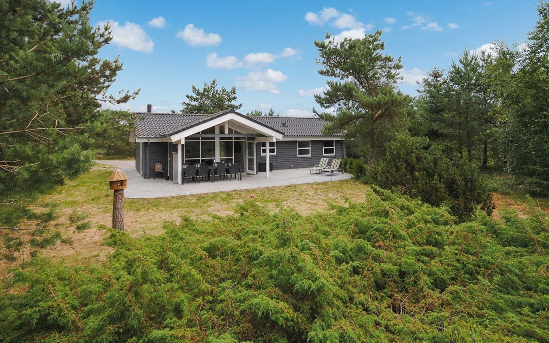 Eengezinswoning, bouwjaar 2006. 950 m van zee. Voor alleengebruik: wild terrein 2.400 m2. Terras (80 m2), kinderspeelplaats (schommel). In het huis: sauna, wasmachine, droger. Parkeerplaats bij het huis. Oplaadstation. Levensmiddelenwinkel 5 km. De eigenaar accepteert geen jeugdgroepen.