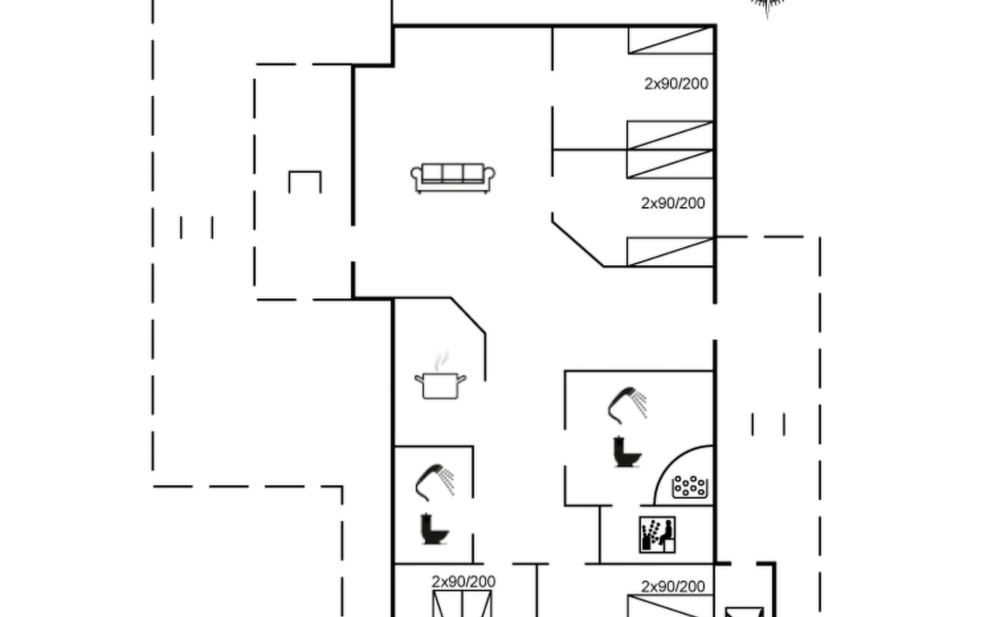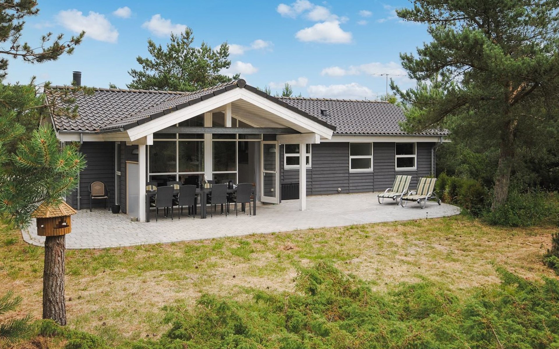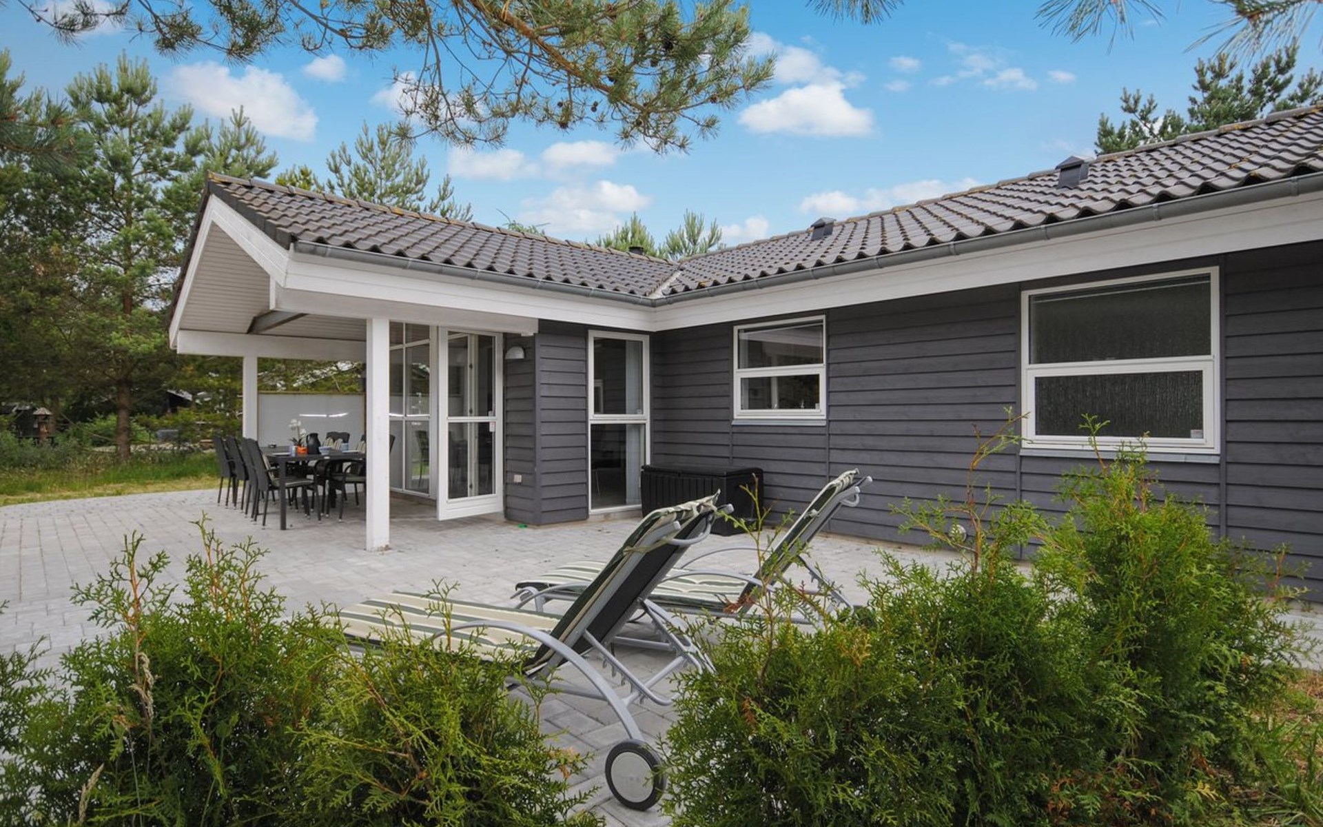Eengezinswoning, bouwjaar 2006. 950 m van zee. Voor alleengebruik: wild terrein 2.400 m2. Terras (80 m2), kinderspeelplaats (schommel). In het huis: sauna, wasmachine, droger. Parkeerplaats bij het huis. Oplaadstation. Levensmiddelenwinkel 5 km. De eigenaar accepteert geen jeugdgroepen.
