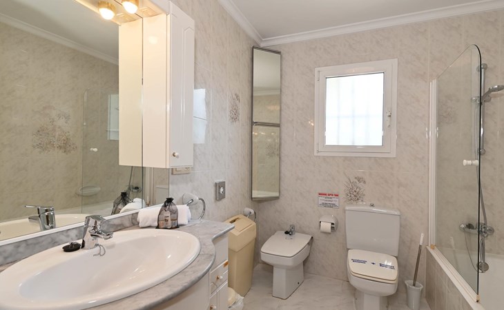 - badkamer met wastafel, douche/badcombinatie, bidet en toilet