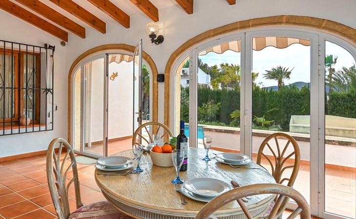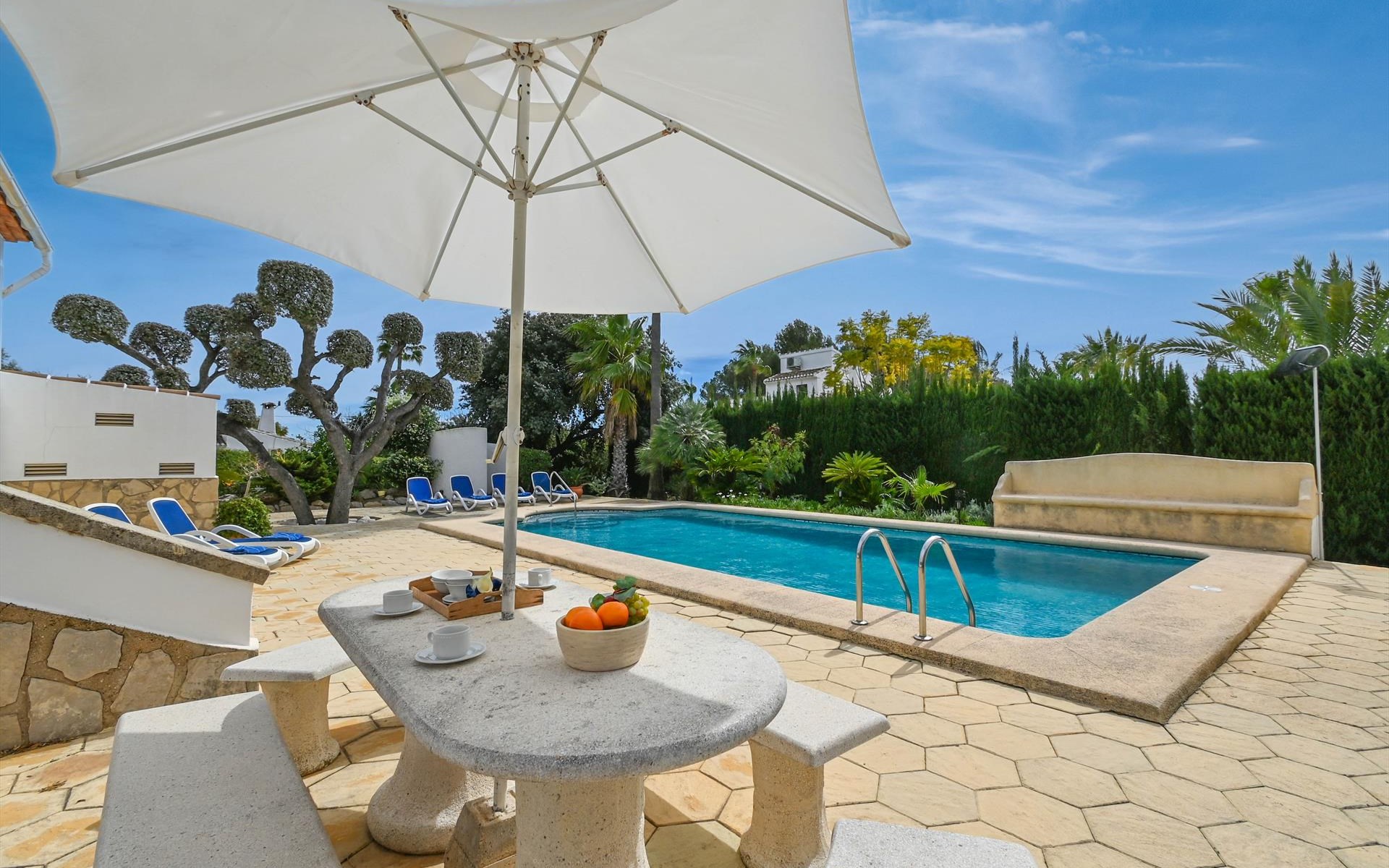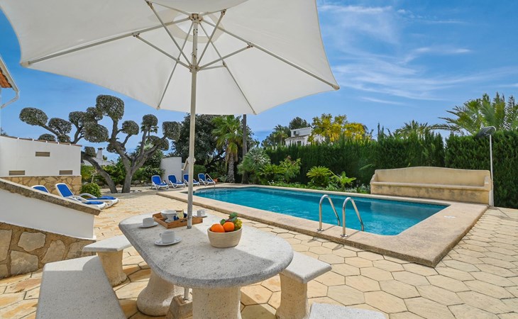 Mooi en comfortabel vakantiehuis met privé zwembad in Javea, Costa Blanca, Spanje voor 8 personen. De vakantiewoning ligt in een residentiële omgeving en op 4 km van het strand van La Grava, Javea.